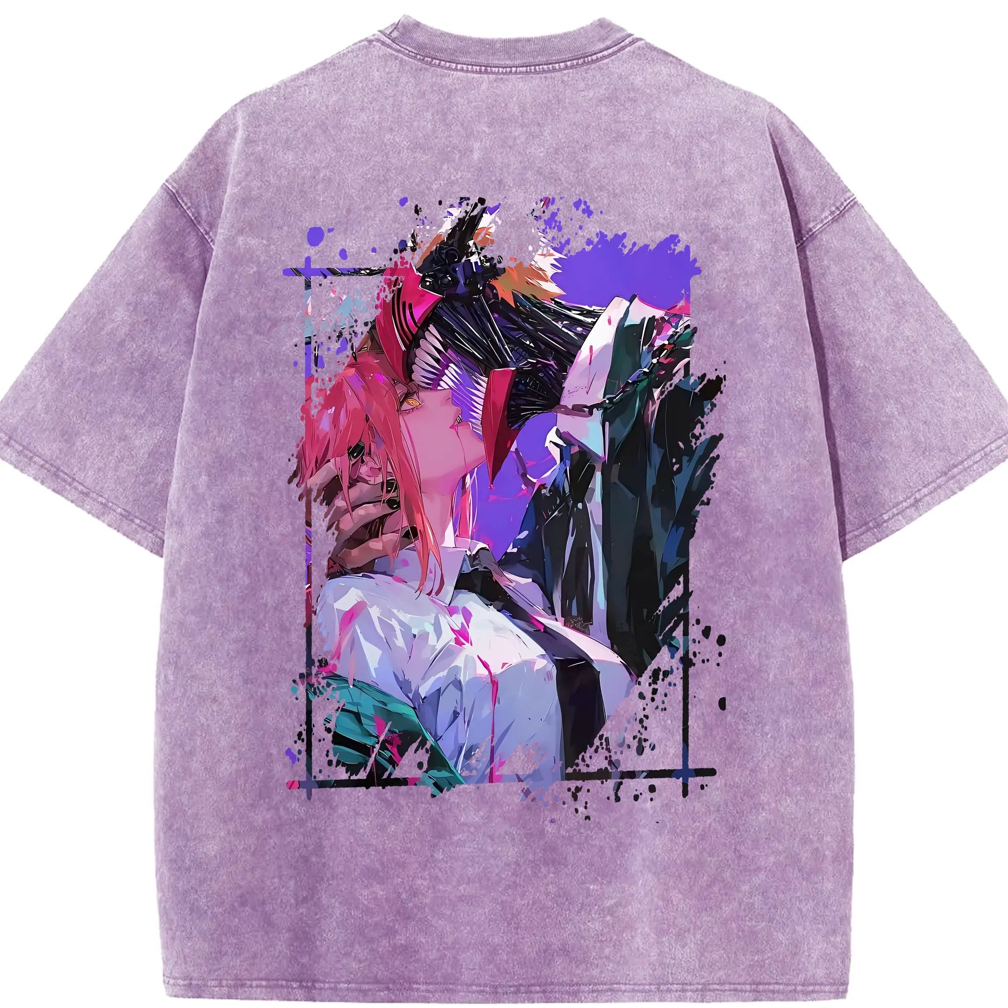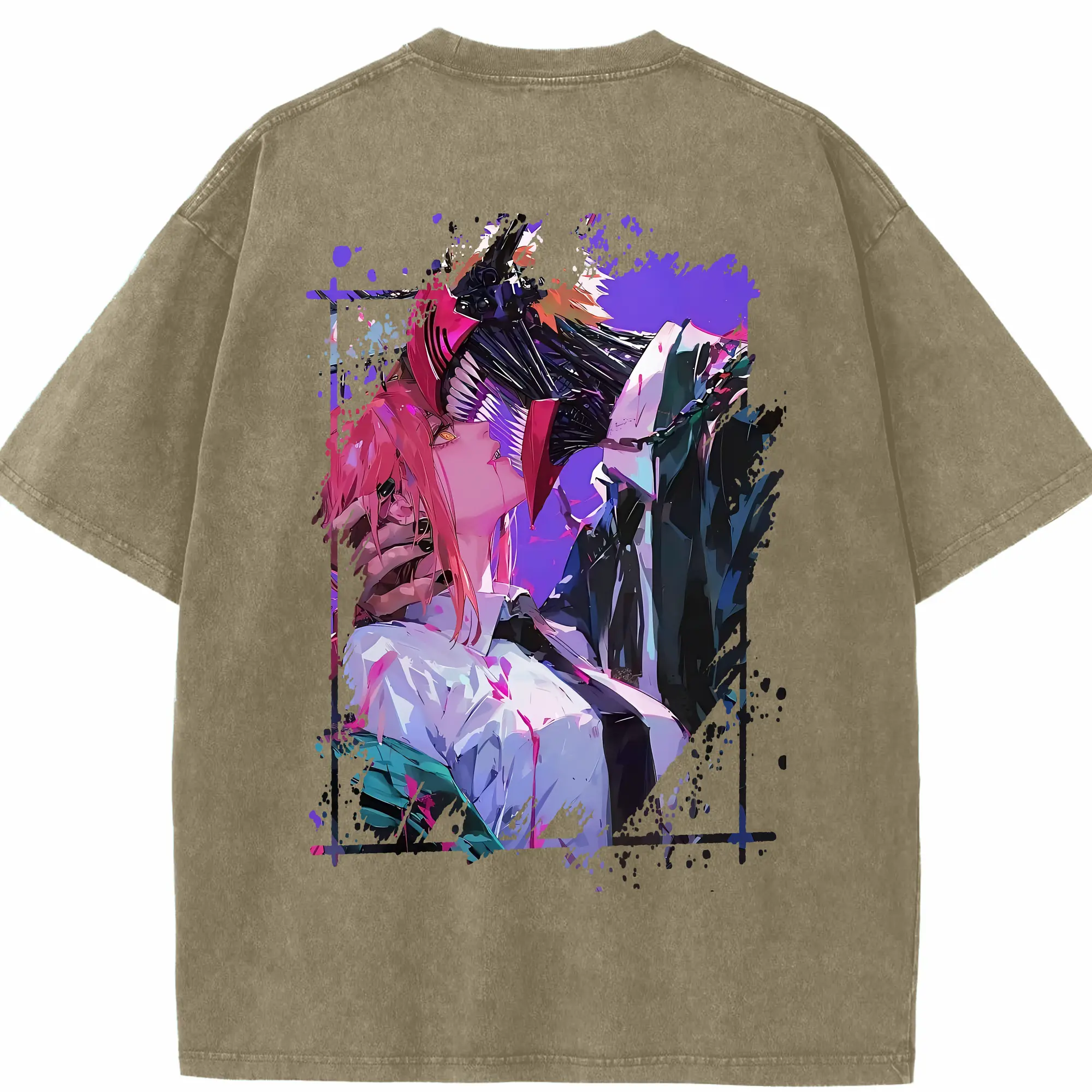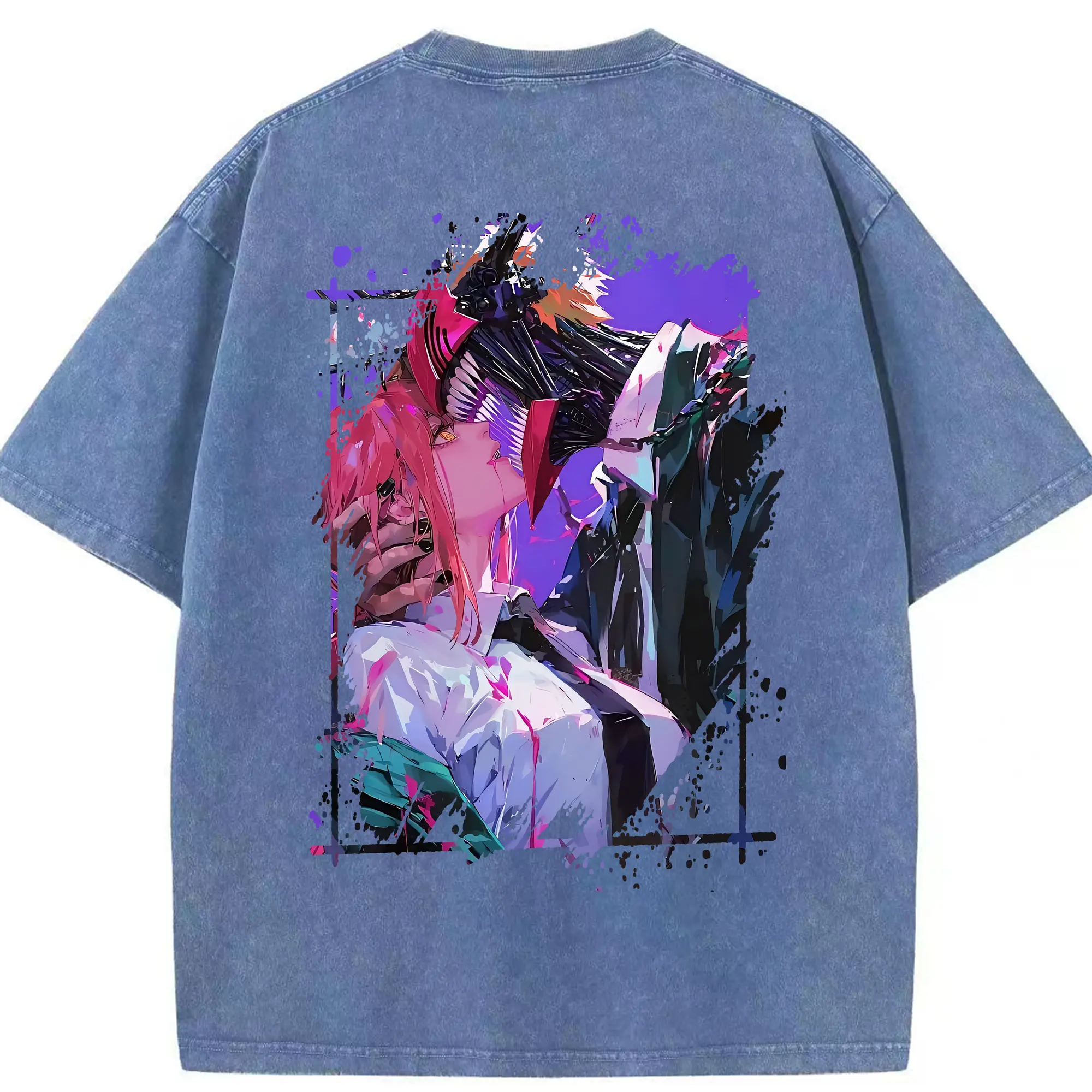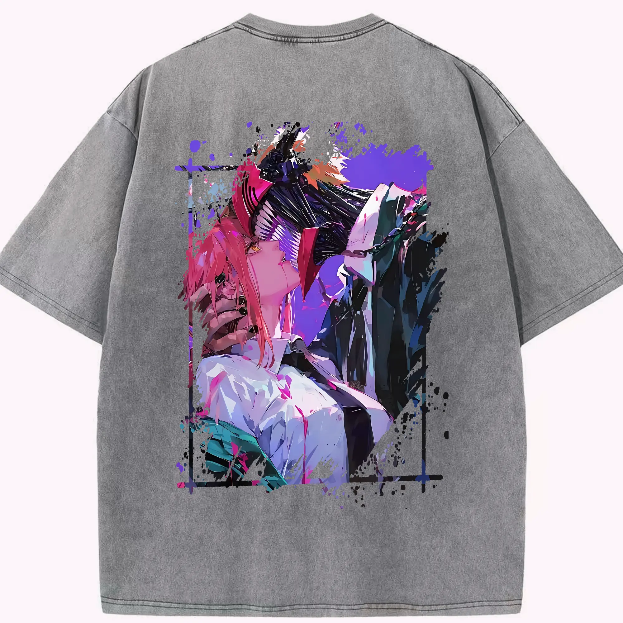 チェンソーマン グッズ,デンジ - 綿100% ヴィンテージ風 半袖Tシャツ ・ フロントプリント ・ 柔らか肌触り ・ 通気性 快適 ・ スポーツ カジュアル 外出用