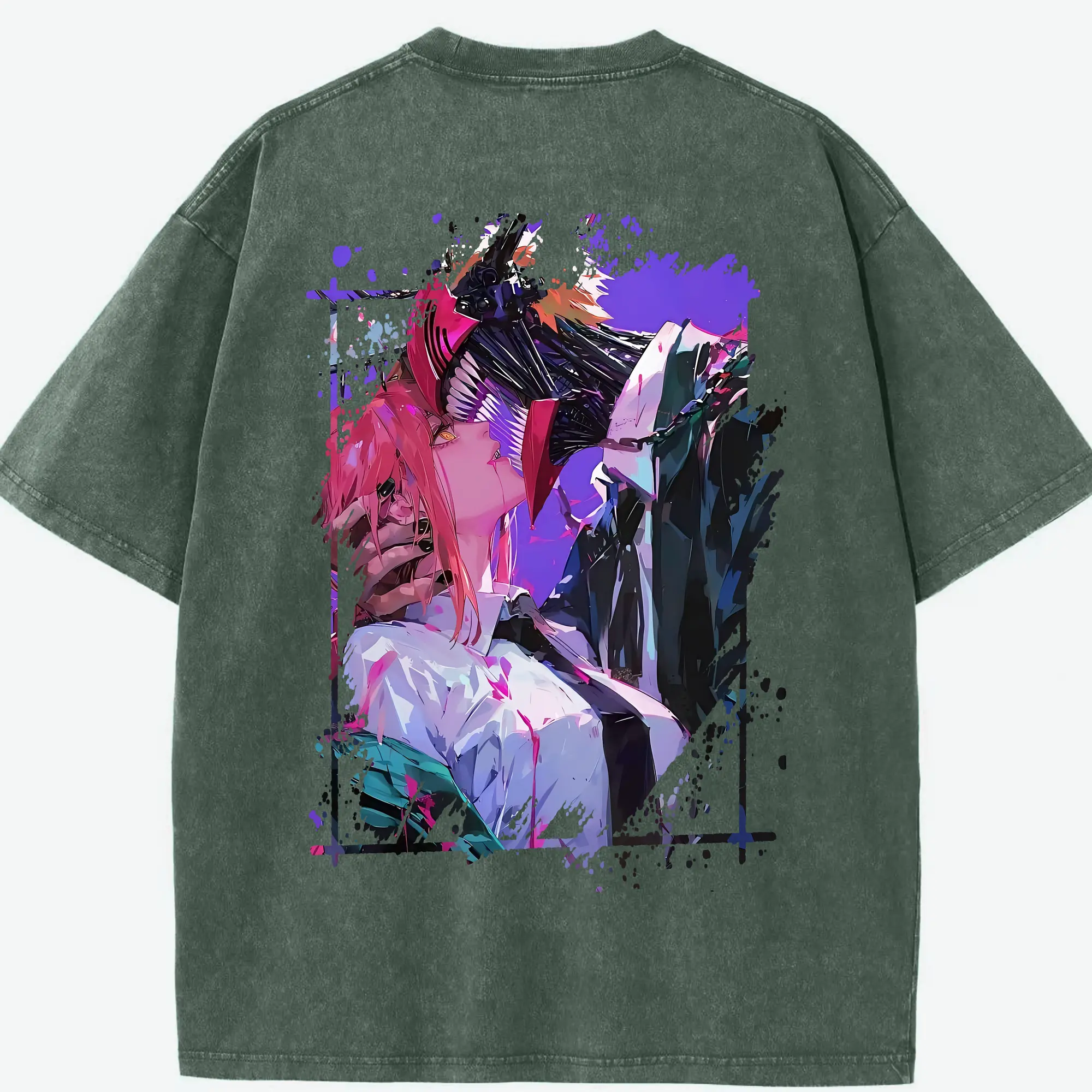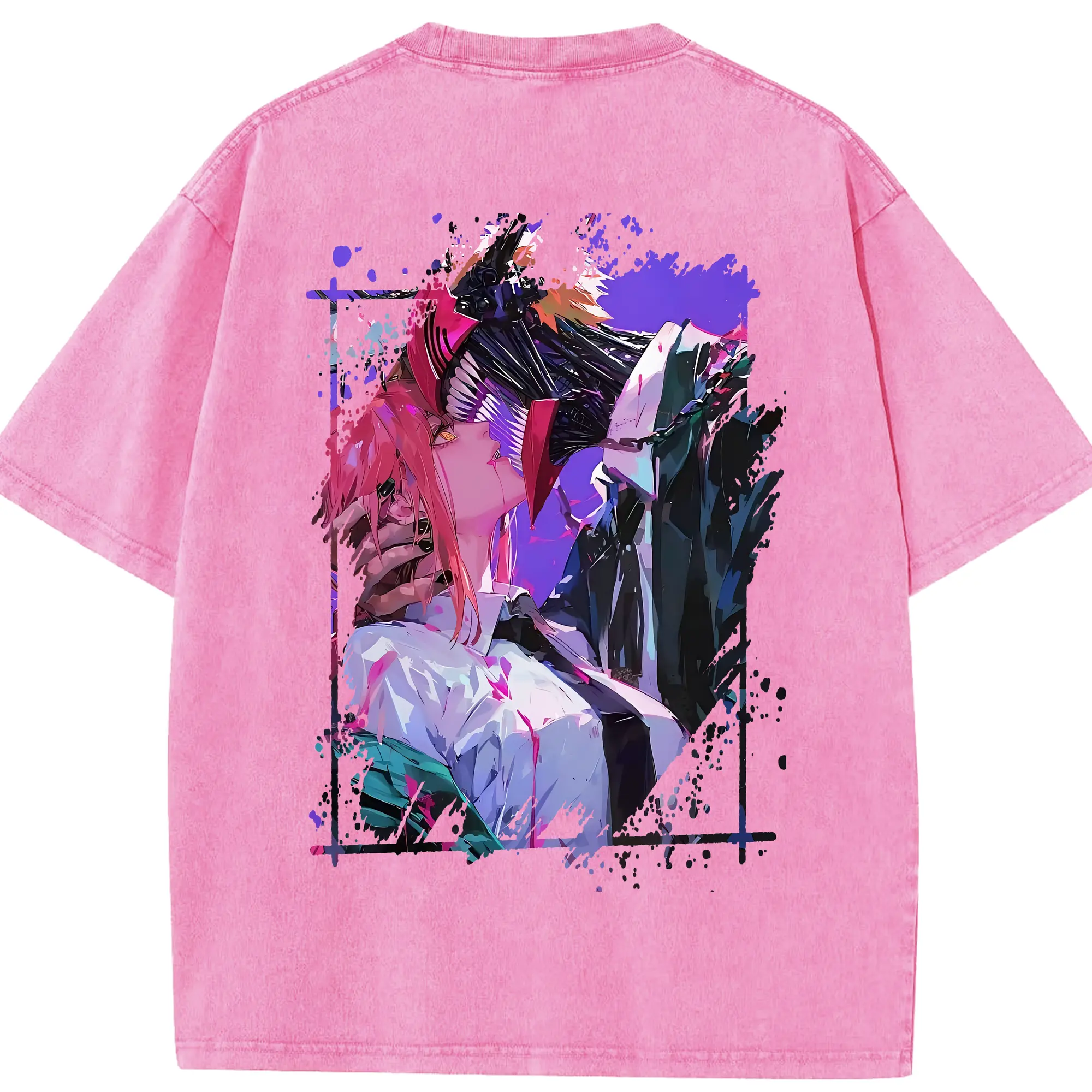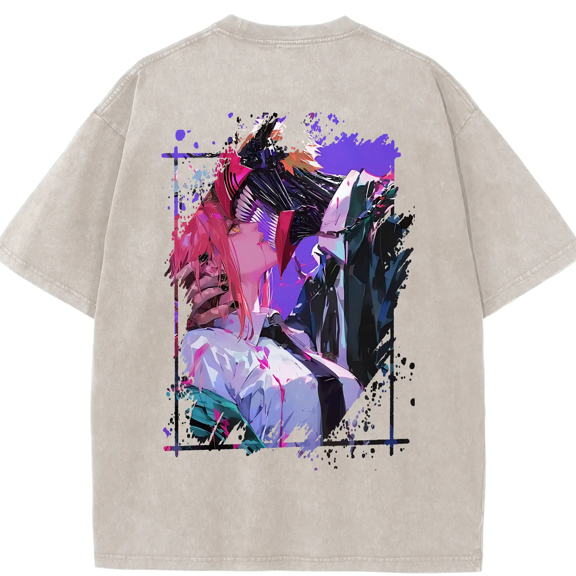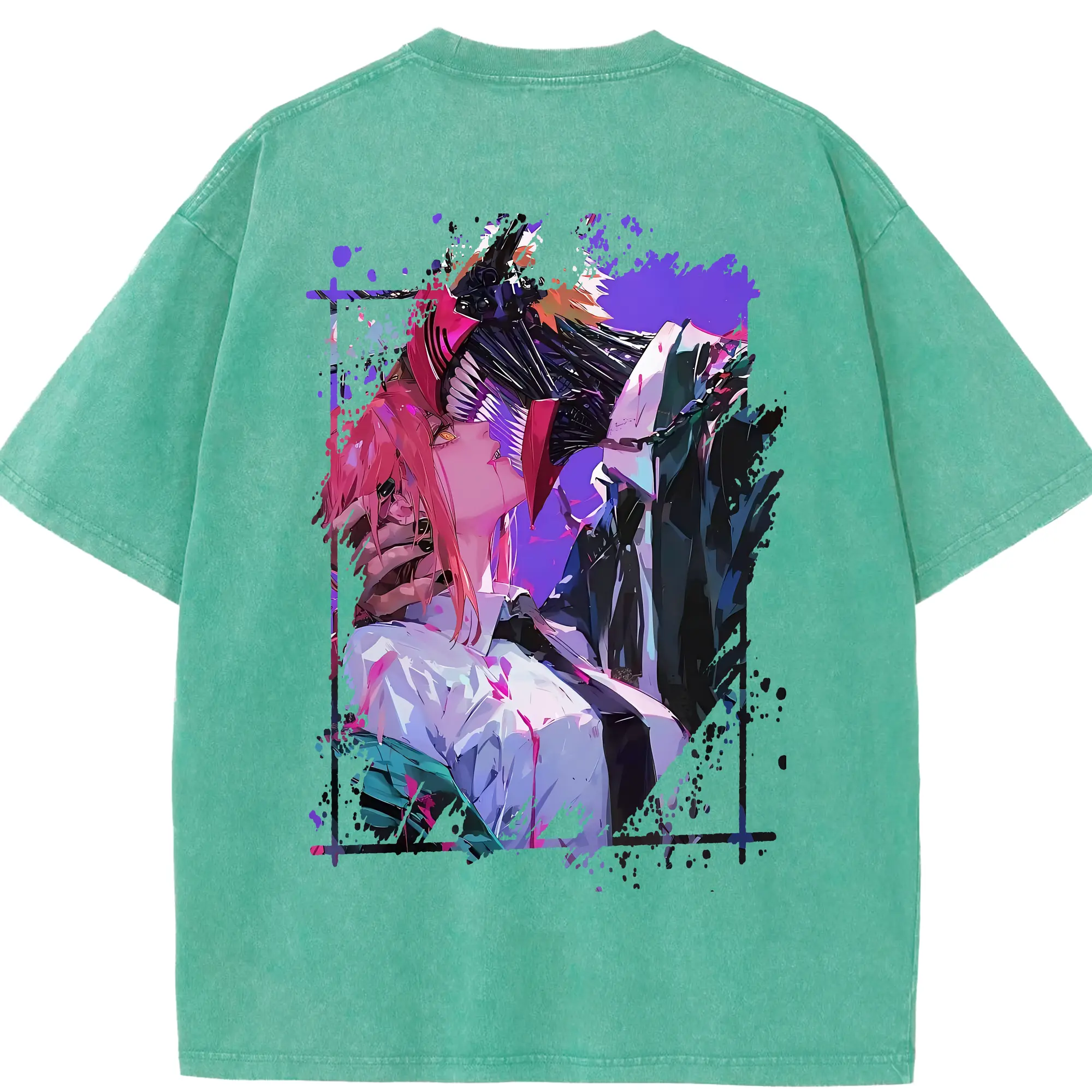 チェンソーマン グッズ,デンジ - 綿100% ヴィンテージ風 半袖Tシャツ ・ フロントプリント ・ 柔らか肌触り ・ 通気性 快適 ・ スポーツ カジュアル 外出用
