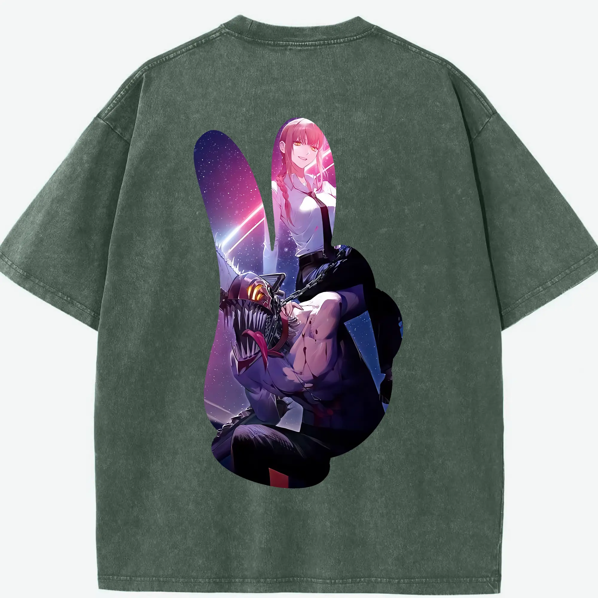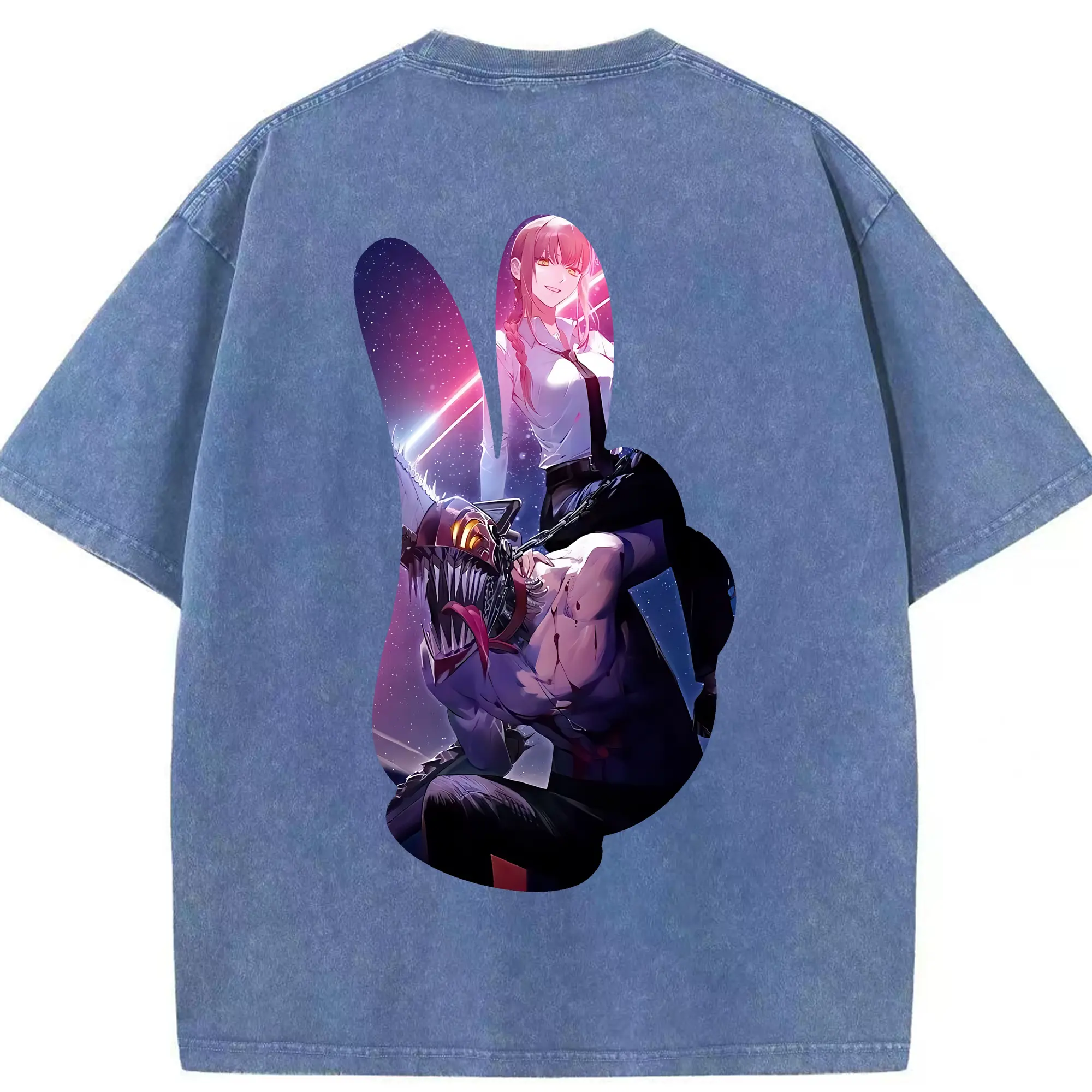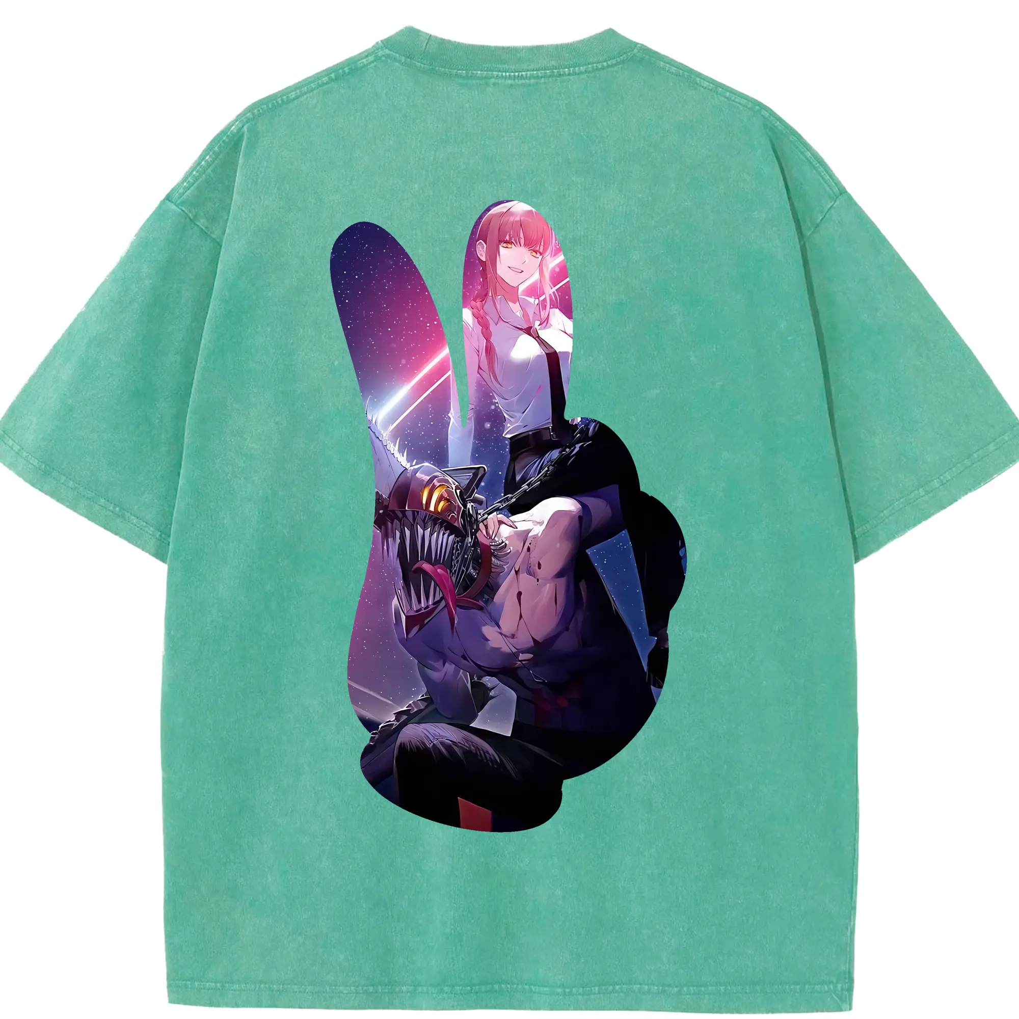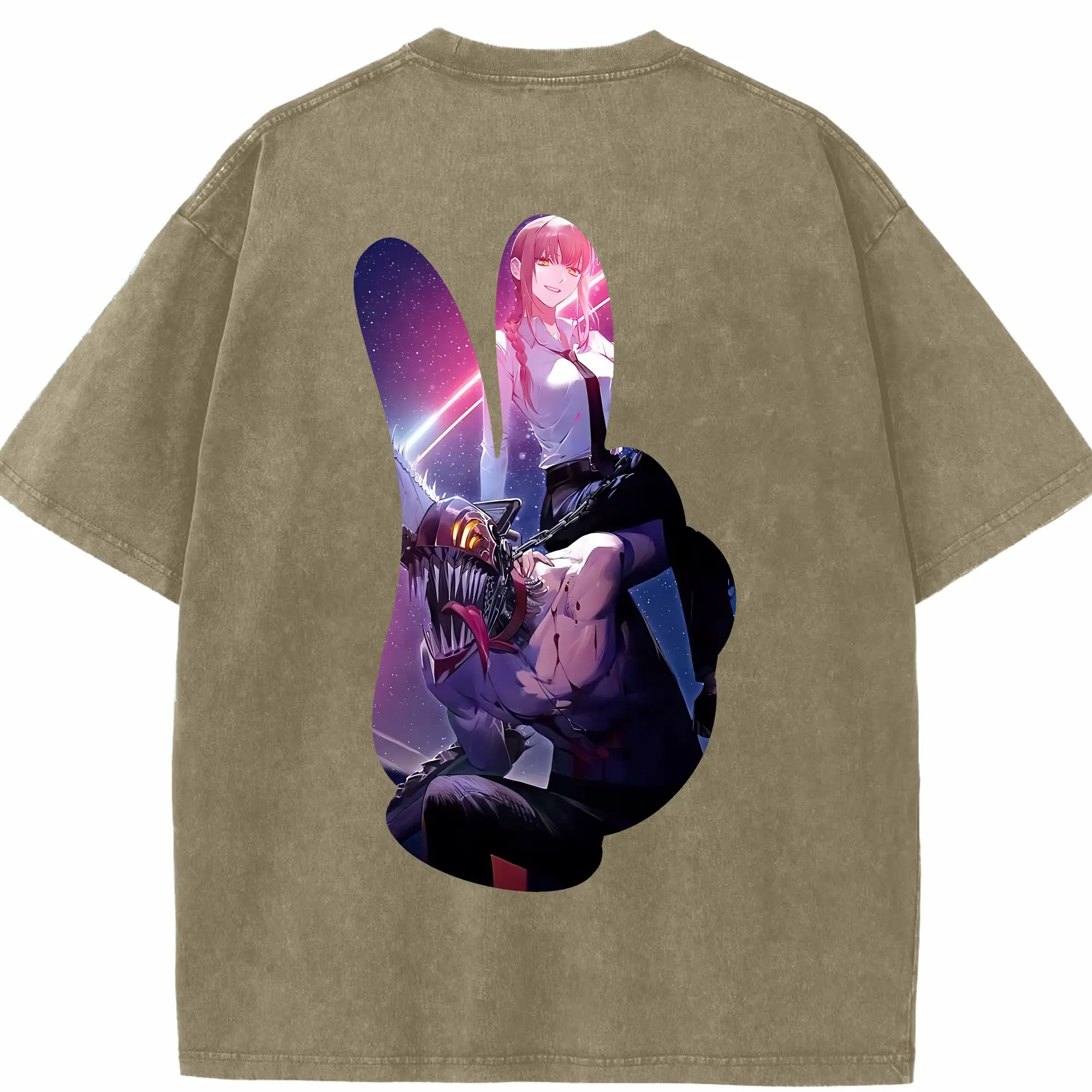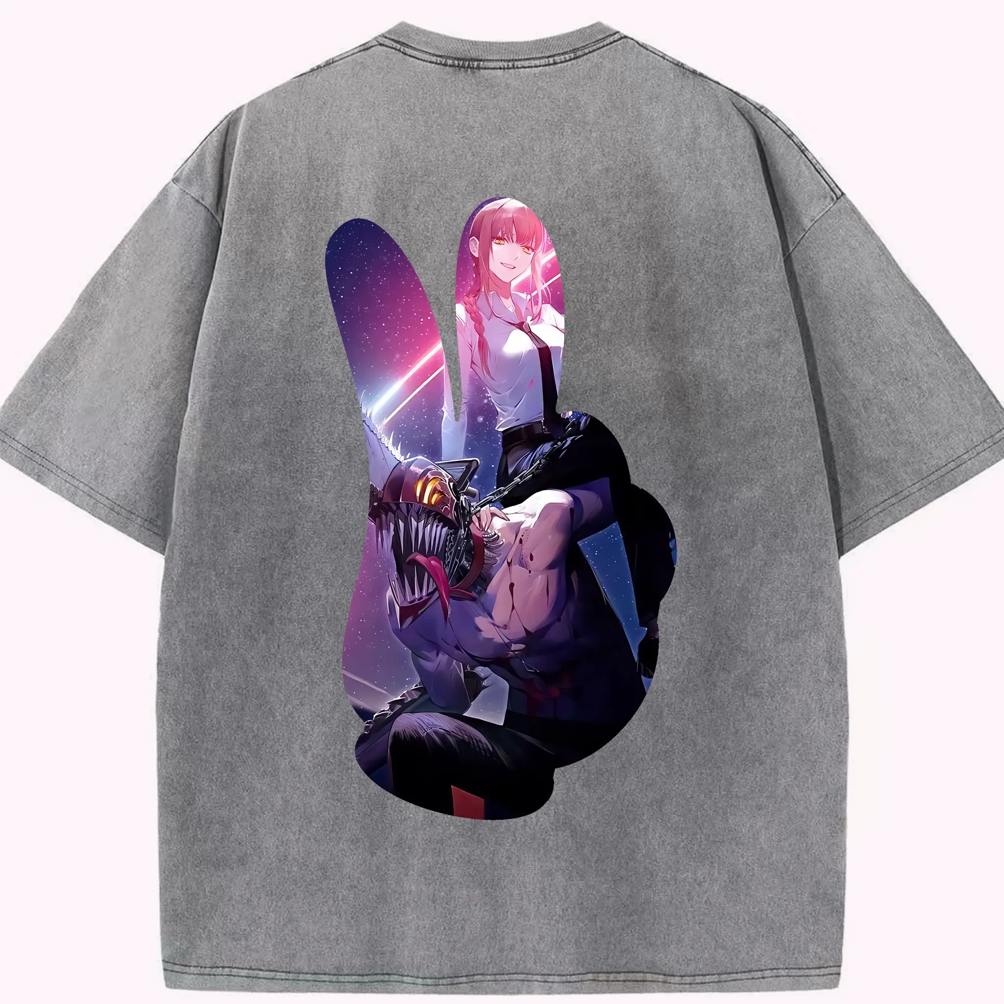 チェンソーマン グッズ,デンジ - 綿100% ヴィンテージ風 半袖Tシャツ ・ フロントプリント ・ 柔らか肌触り ・ 通気性 快適 ・ スポーツ カジュアル 外出用