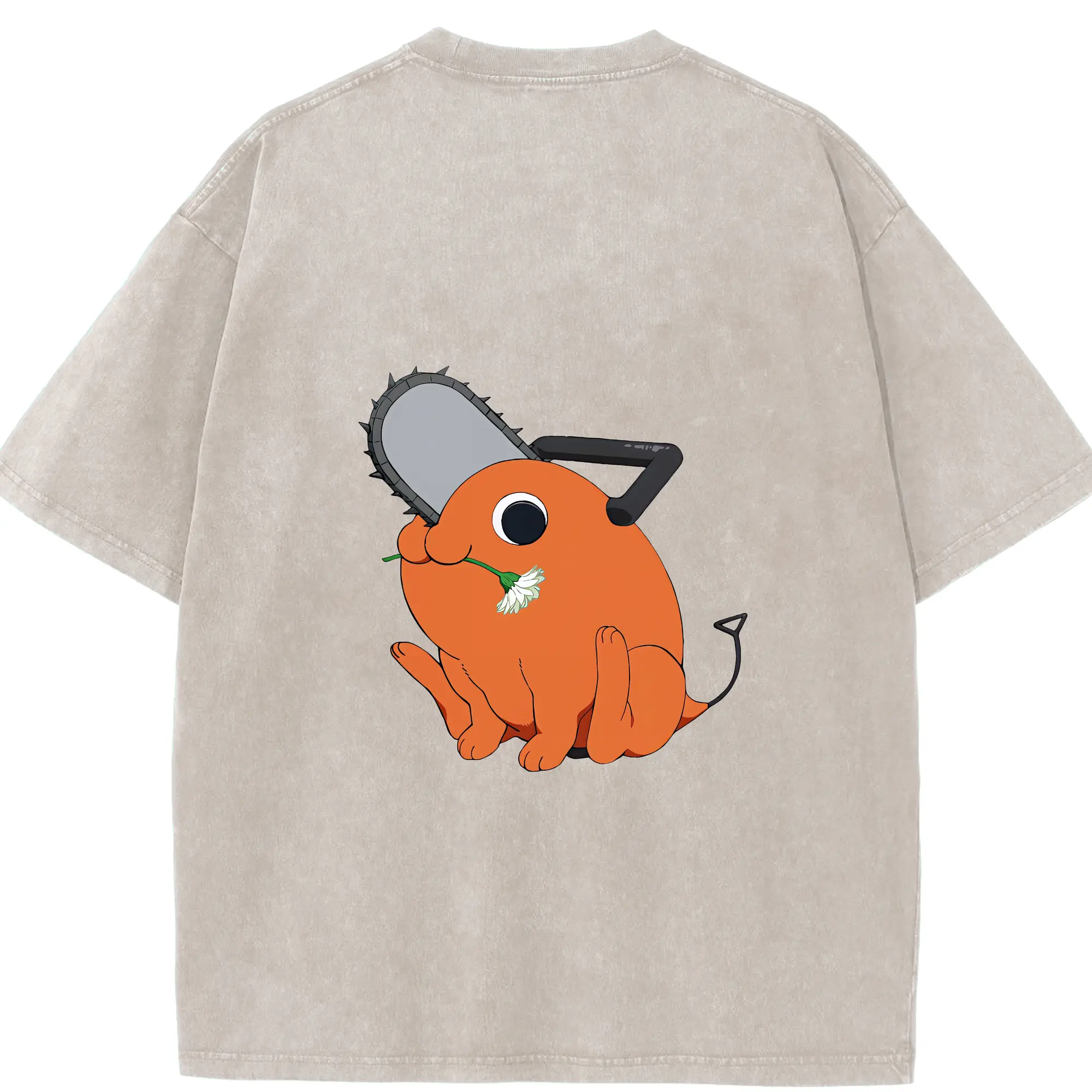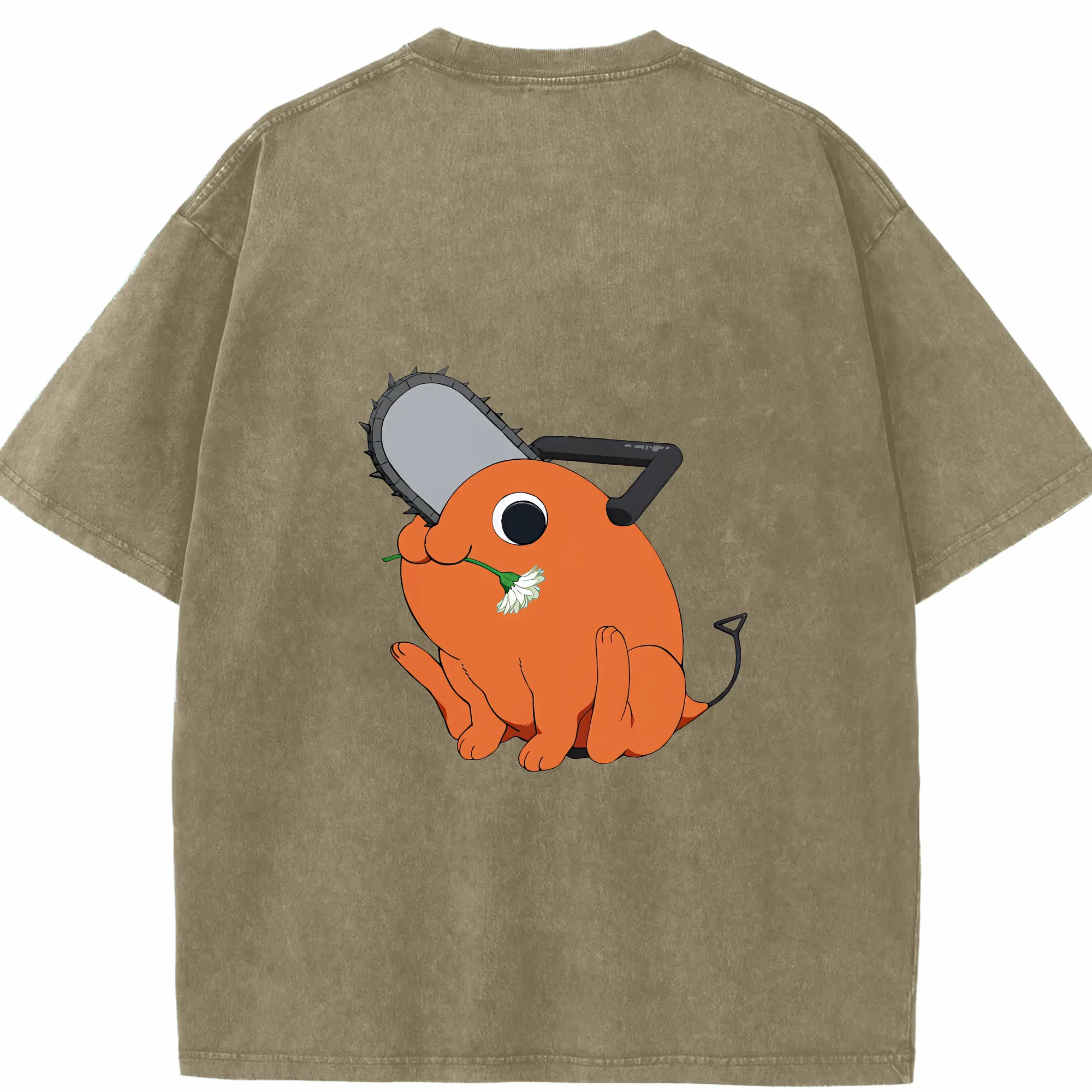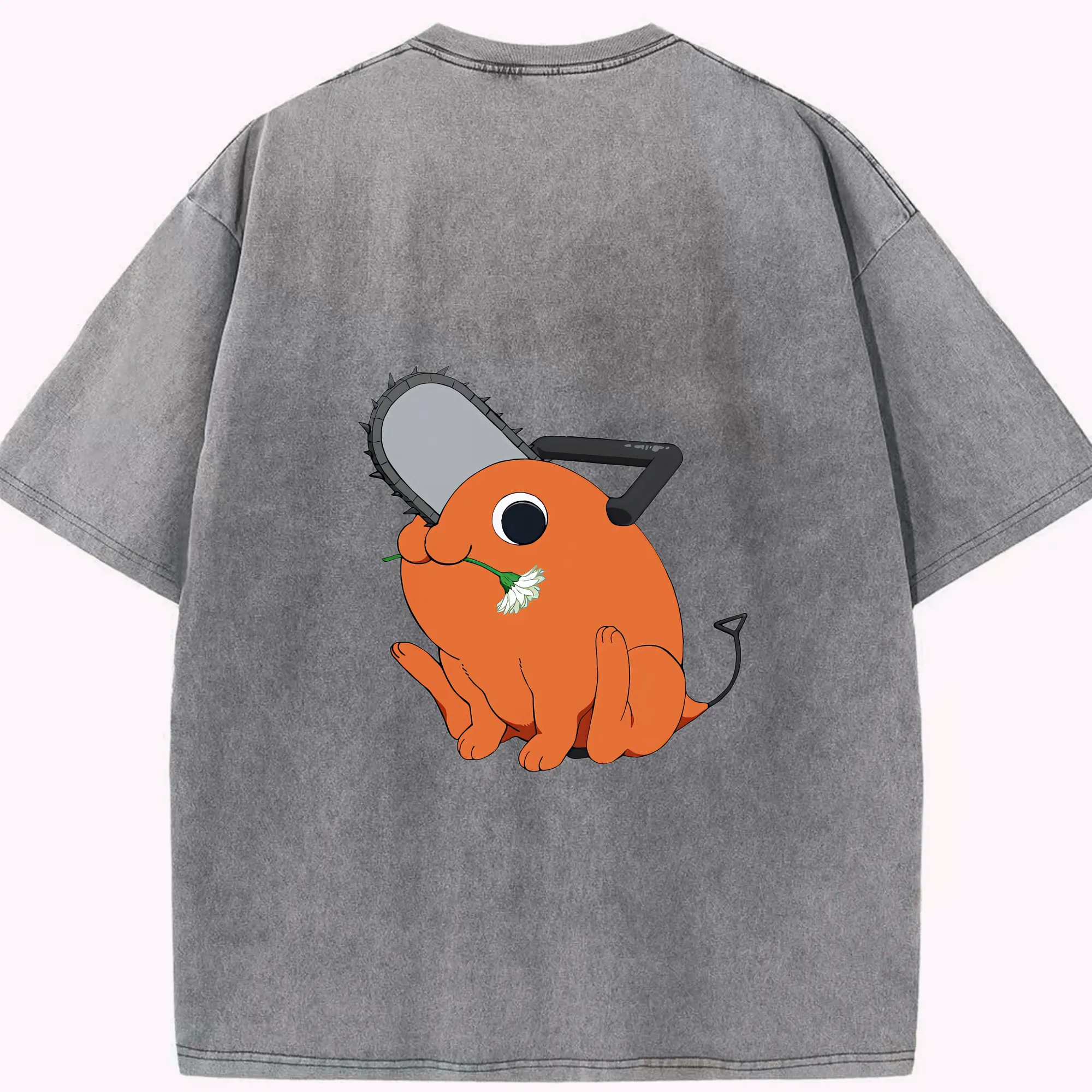 チェンソーマン グッズ,ポチタ - 綿100% ヴィンテージ風 半袖Tシャツ ・ フロントプリント ・ 柔らか肌触り ・ 通気性 快適 ・ スポーツ カジュアル 外出用