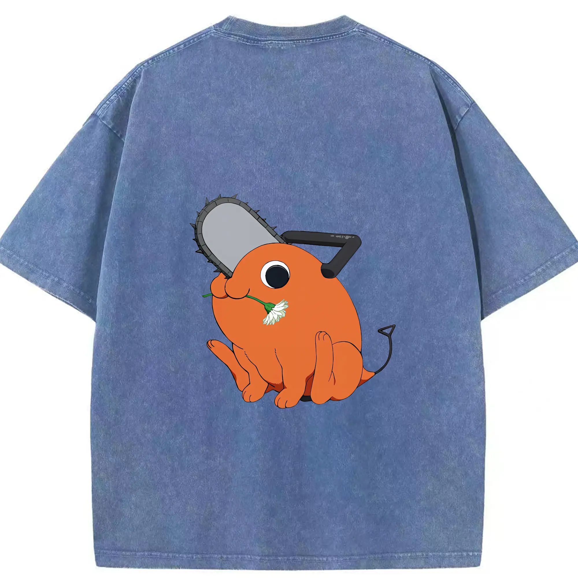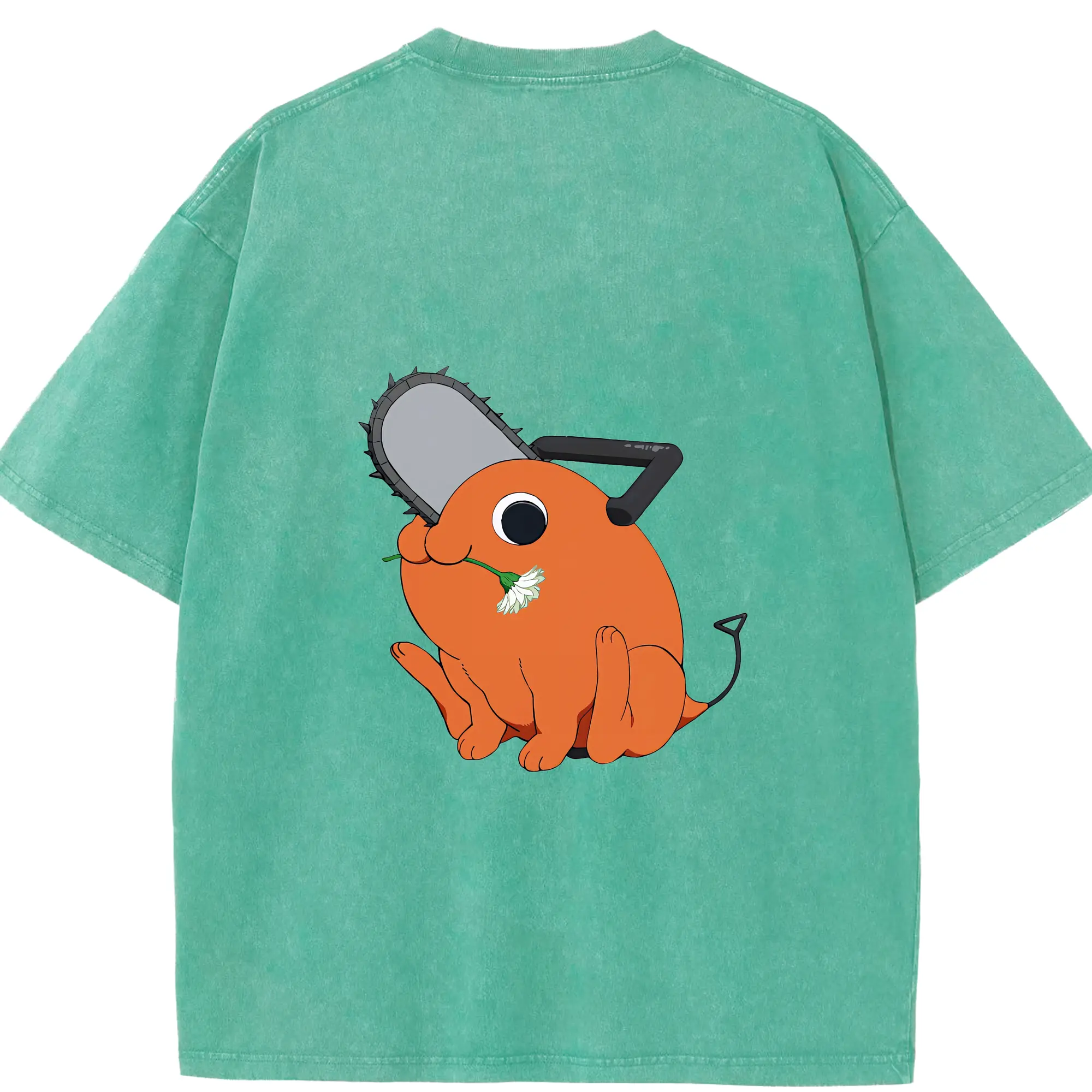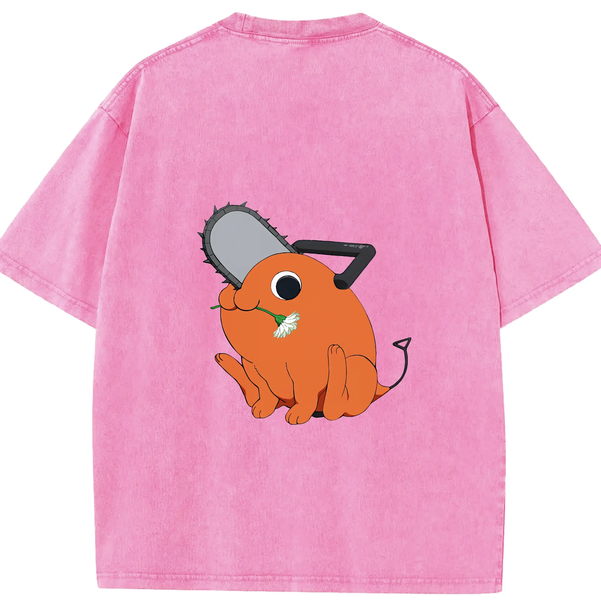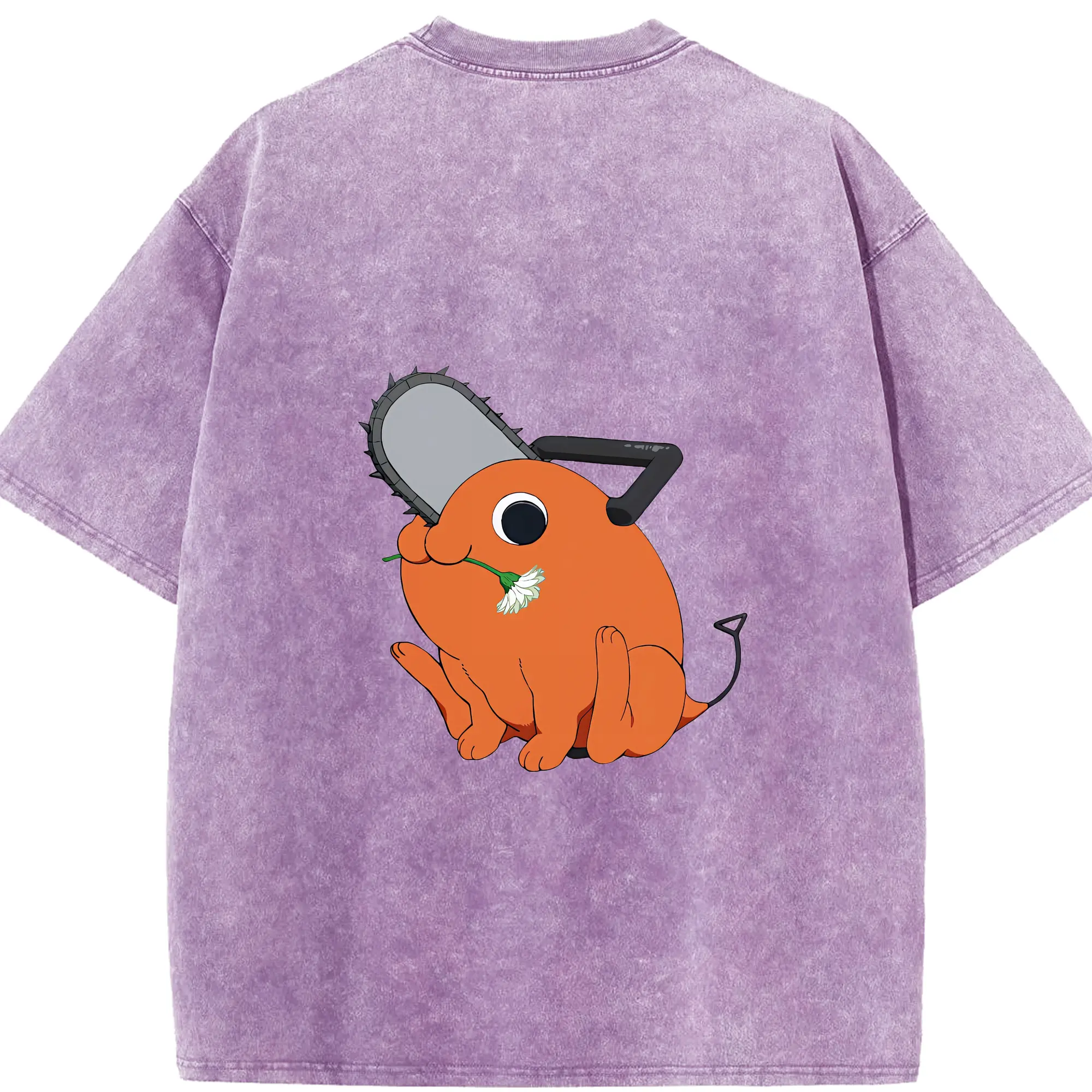 チェンソーマン グッズ,ポチタ - 綿100% ヴィンテージ風 半袖Tシャツ ・ フロントプリント ・ 柔らか肌触り ・ 通気性 快適 ・ スポーツ カジュアル 外出用