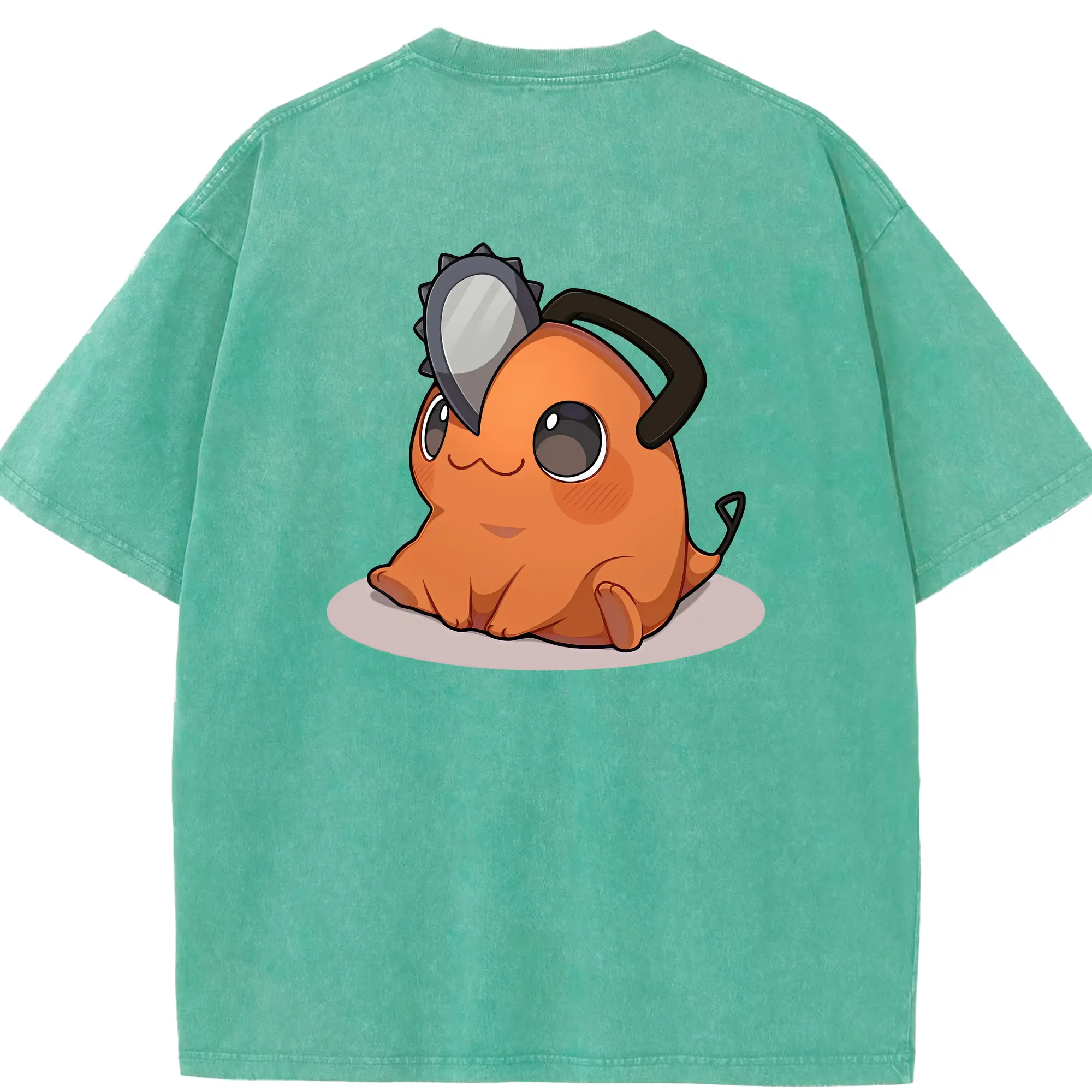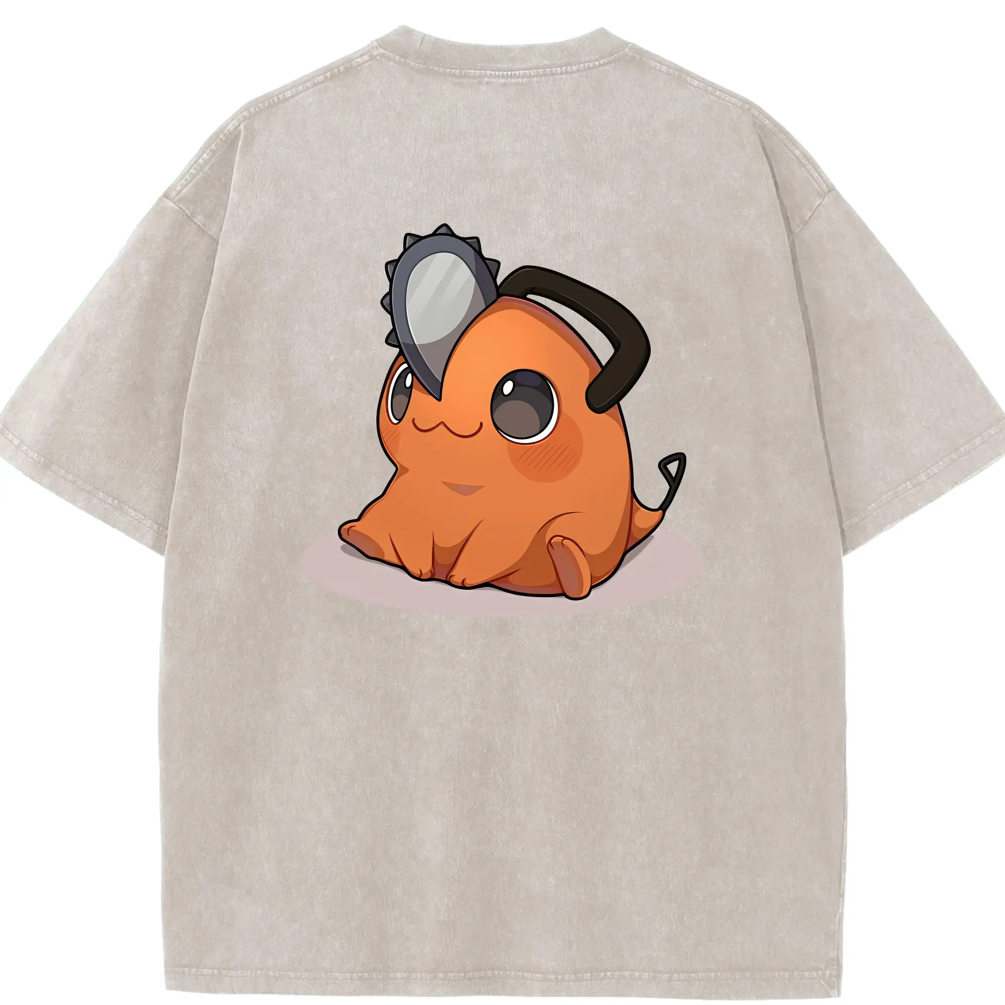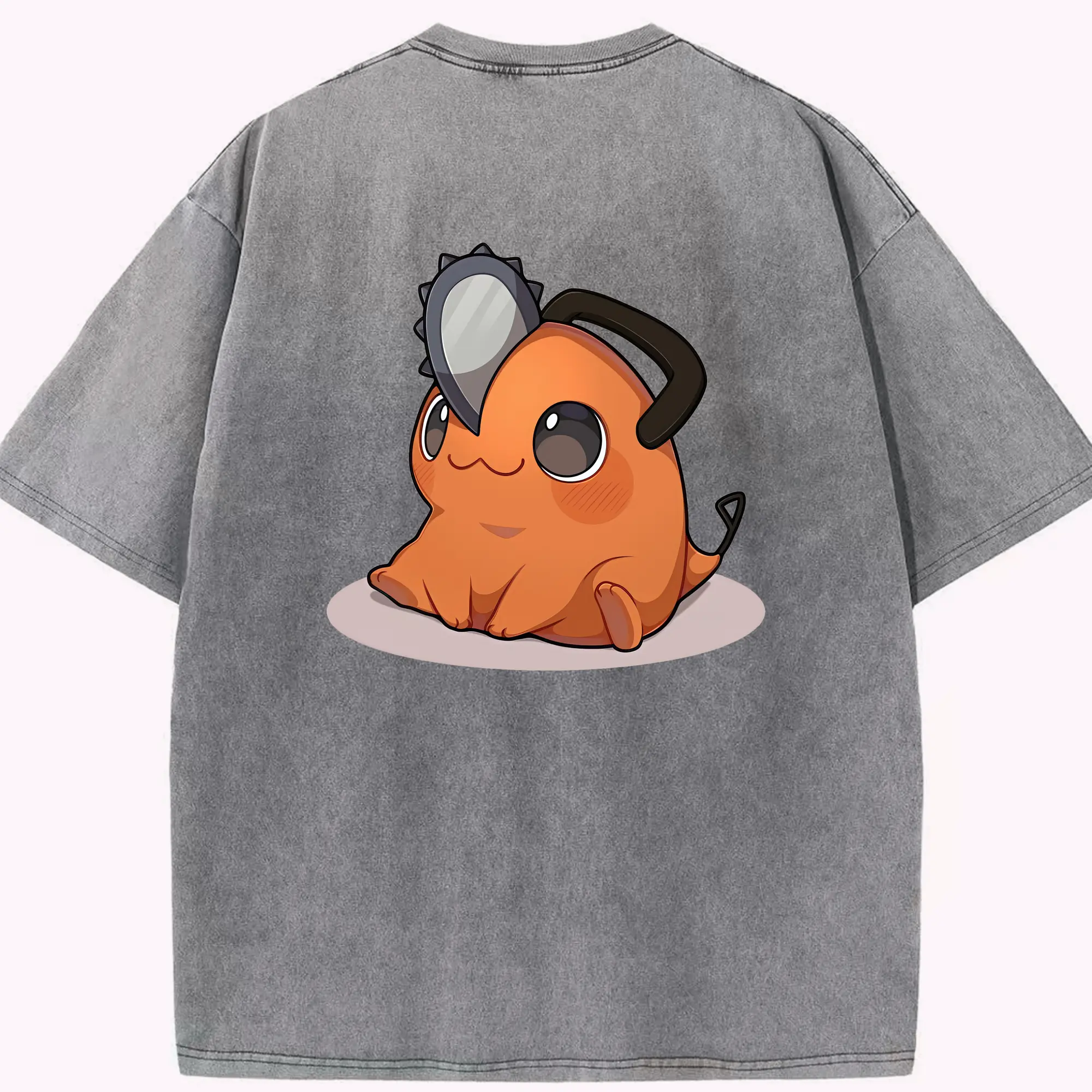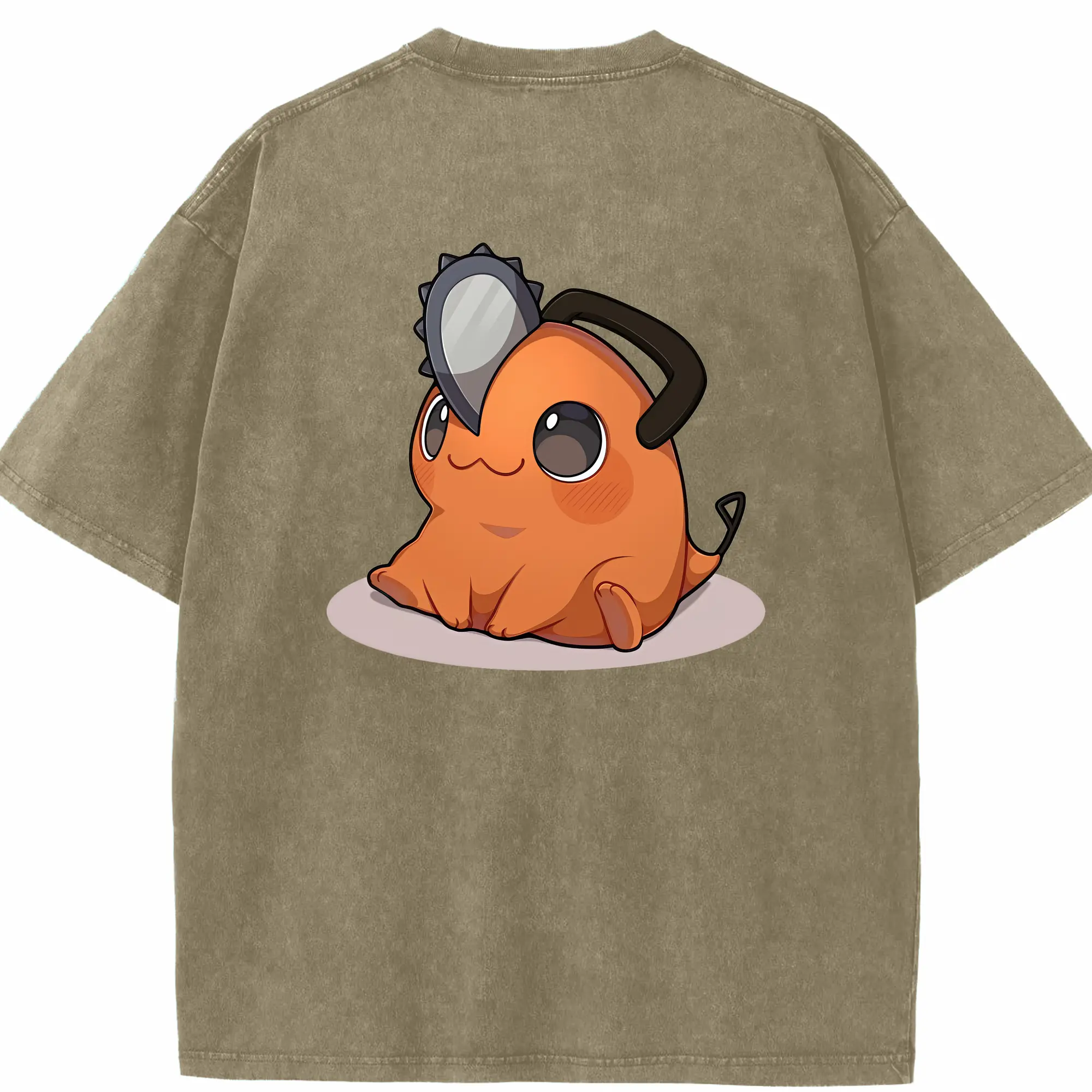 チェンソーマン グッズ,ポチタ - 綿100% ヴィンテージ風 半袖Tシャツ ・ フロントプリント ・ 柔らか肌触り ・ 通気性 快適 ・ スポーツ カジュアル 外出用