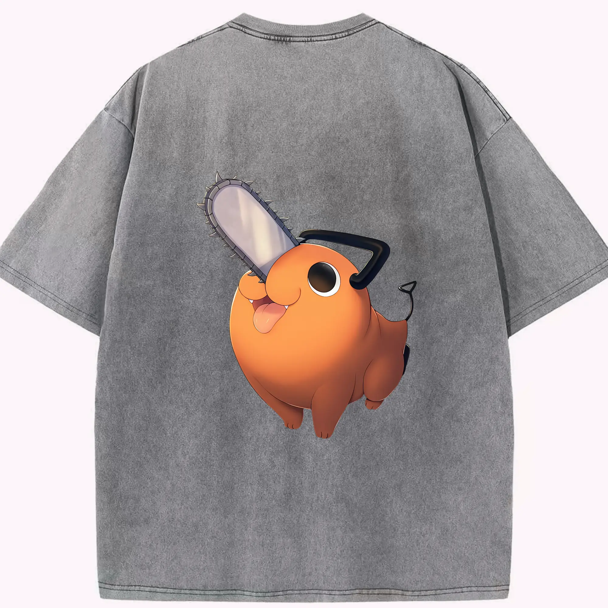 チェンソーマン グッズ,ポチタ - 綿100% ヴィンテージ風 半袖Tシャツ ・ フロントプリント ・ 柔らか肌触り ・ 通気性 快適 ・ スポーツ カジュアル 外出用