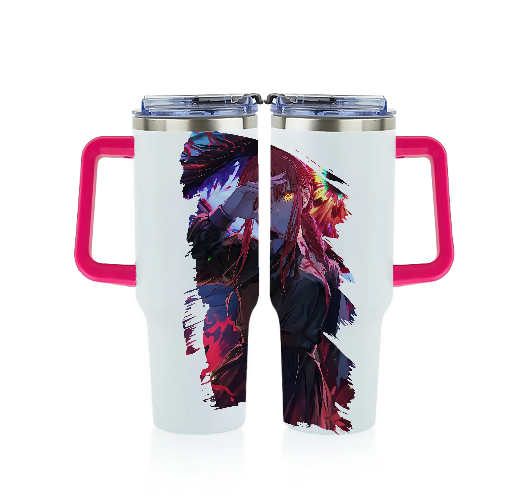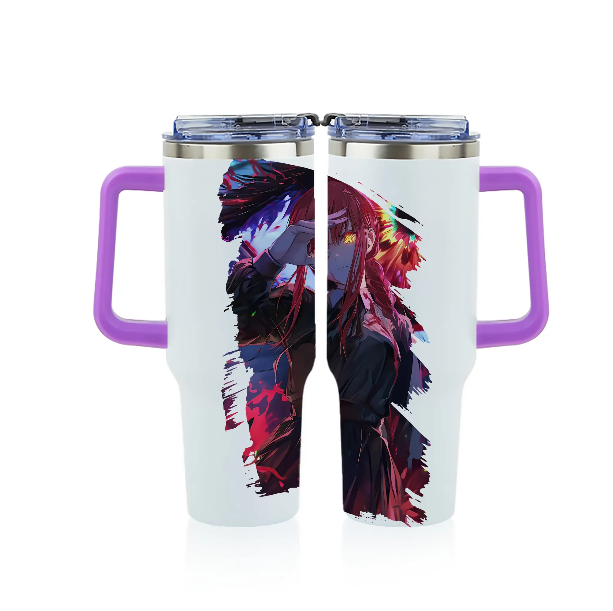 チェンソーマン グッズ,マキマ - 1200mL フルプリント車用タンブラー ・ 304ステンレス 内側 ・ 201ステンレス 外側 ・ 保温 保冷 ・ 通勤 ドライブ アウトドア用