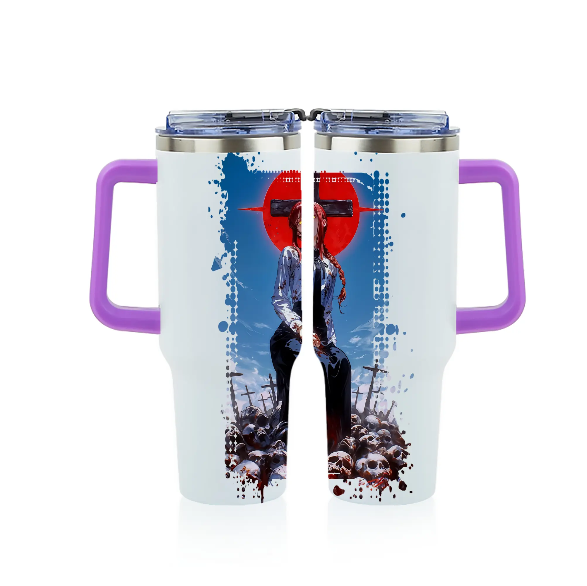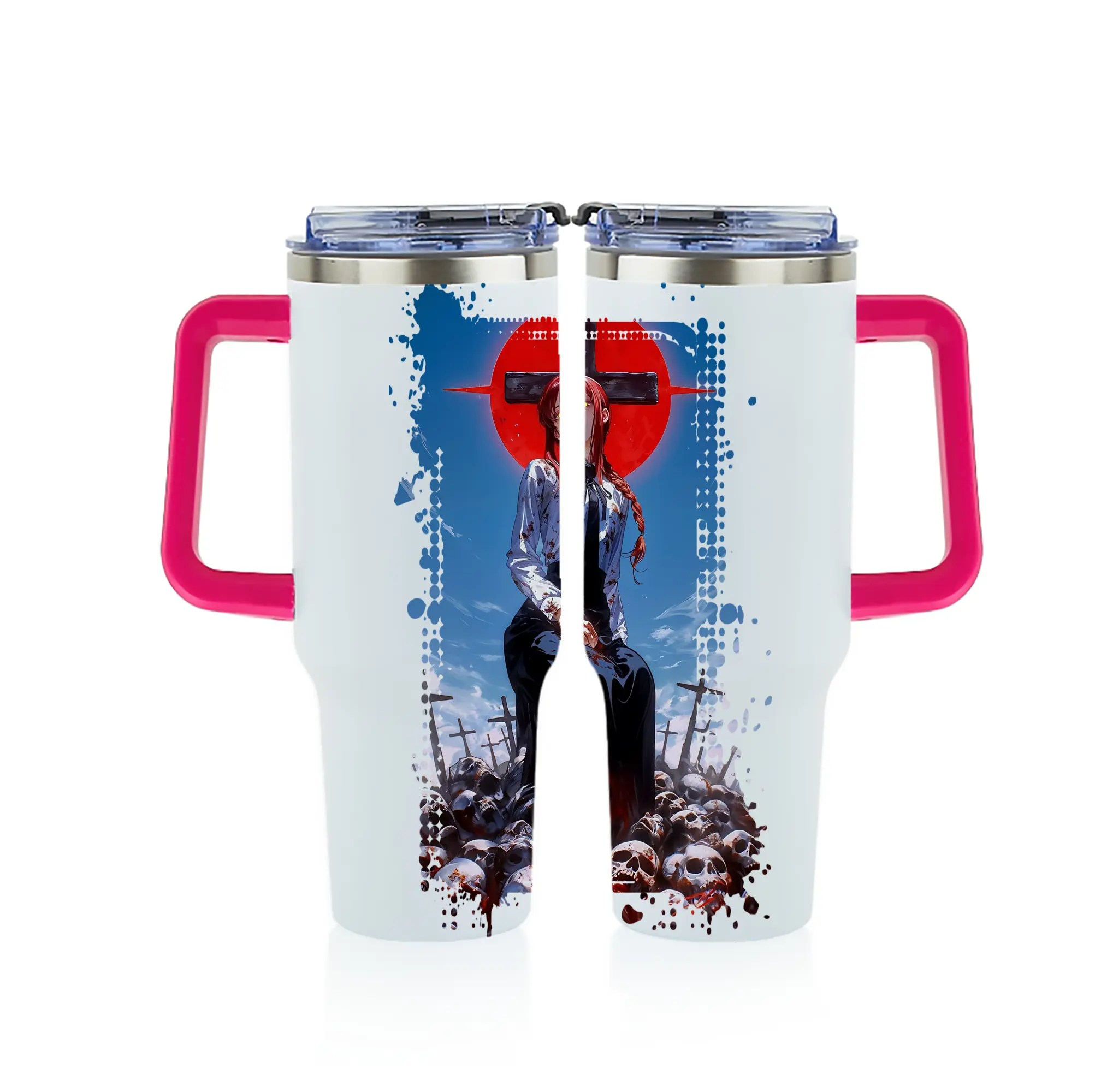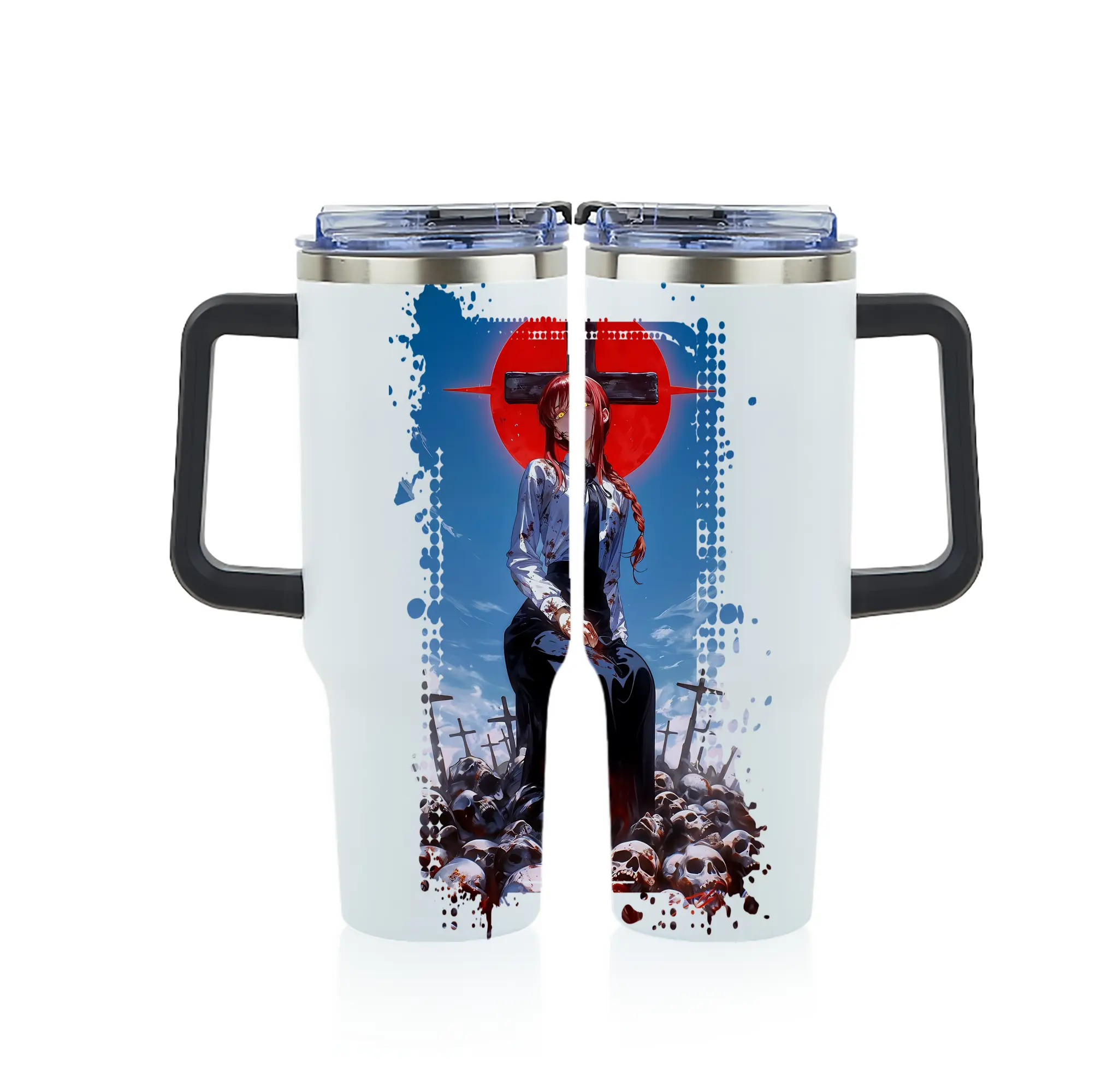 チェンソーマン グッズ,マキマ - 1200mL フルプリント車用タンブラー ・ 304ステンレス 内側 ・ 201ステンレス 外側 ・ 保温 保冷 ・ 通勤 ドライブ アウトドア用
