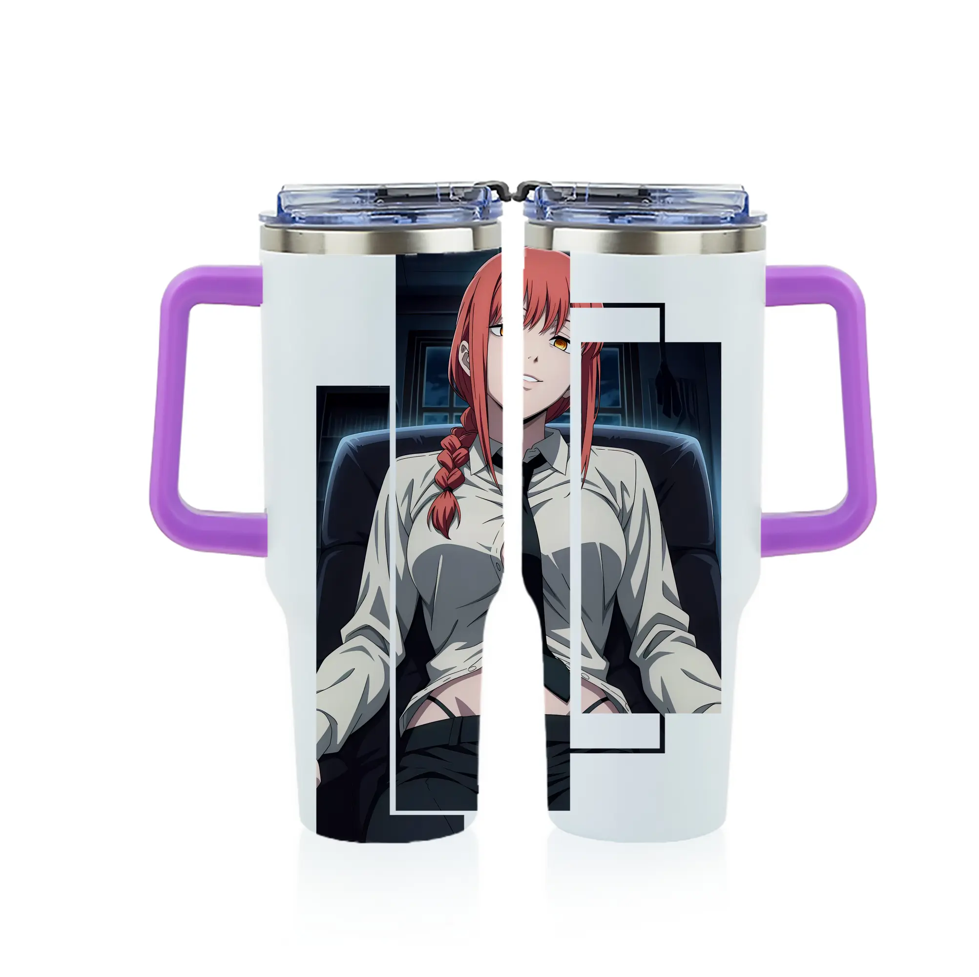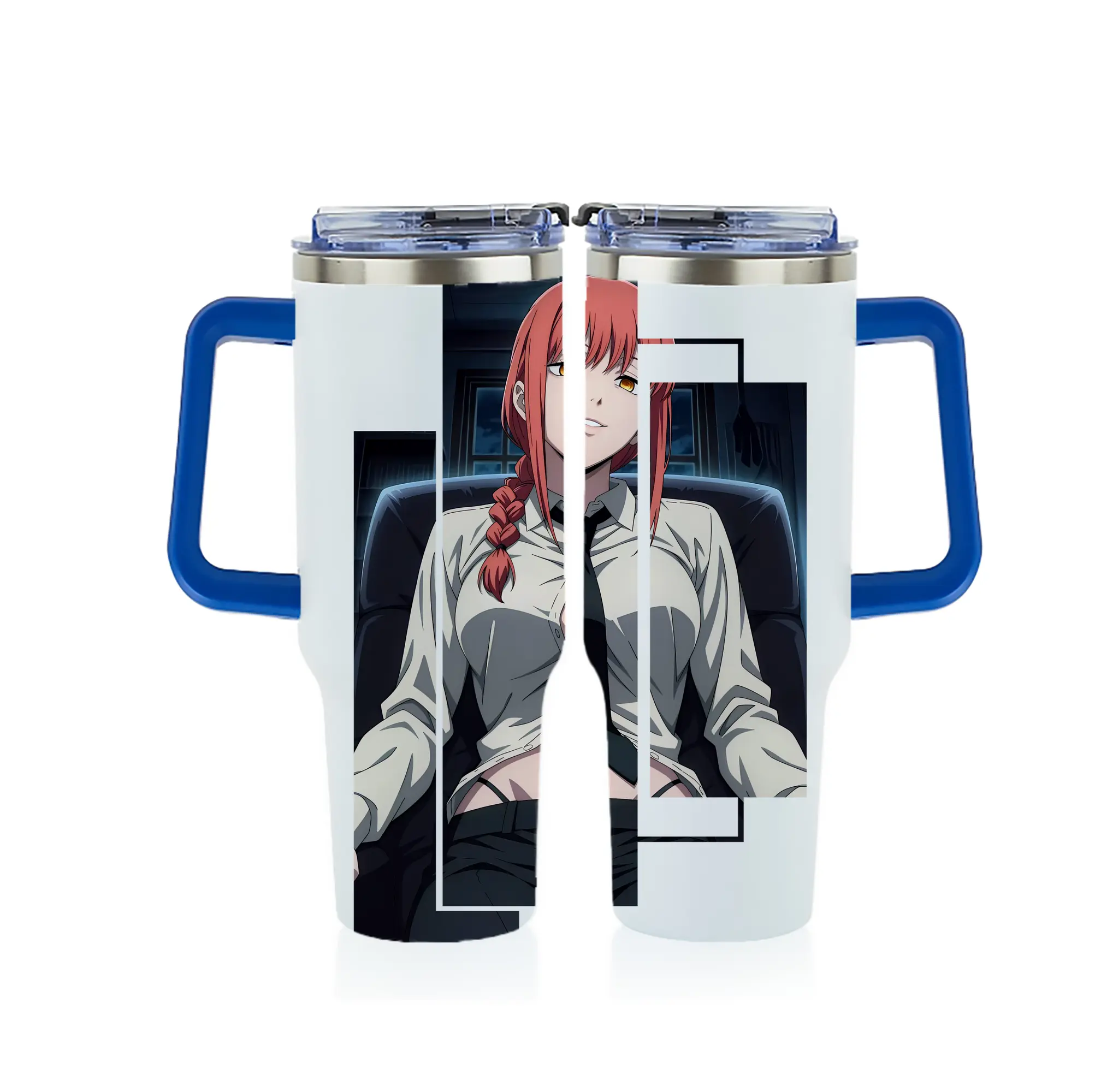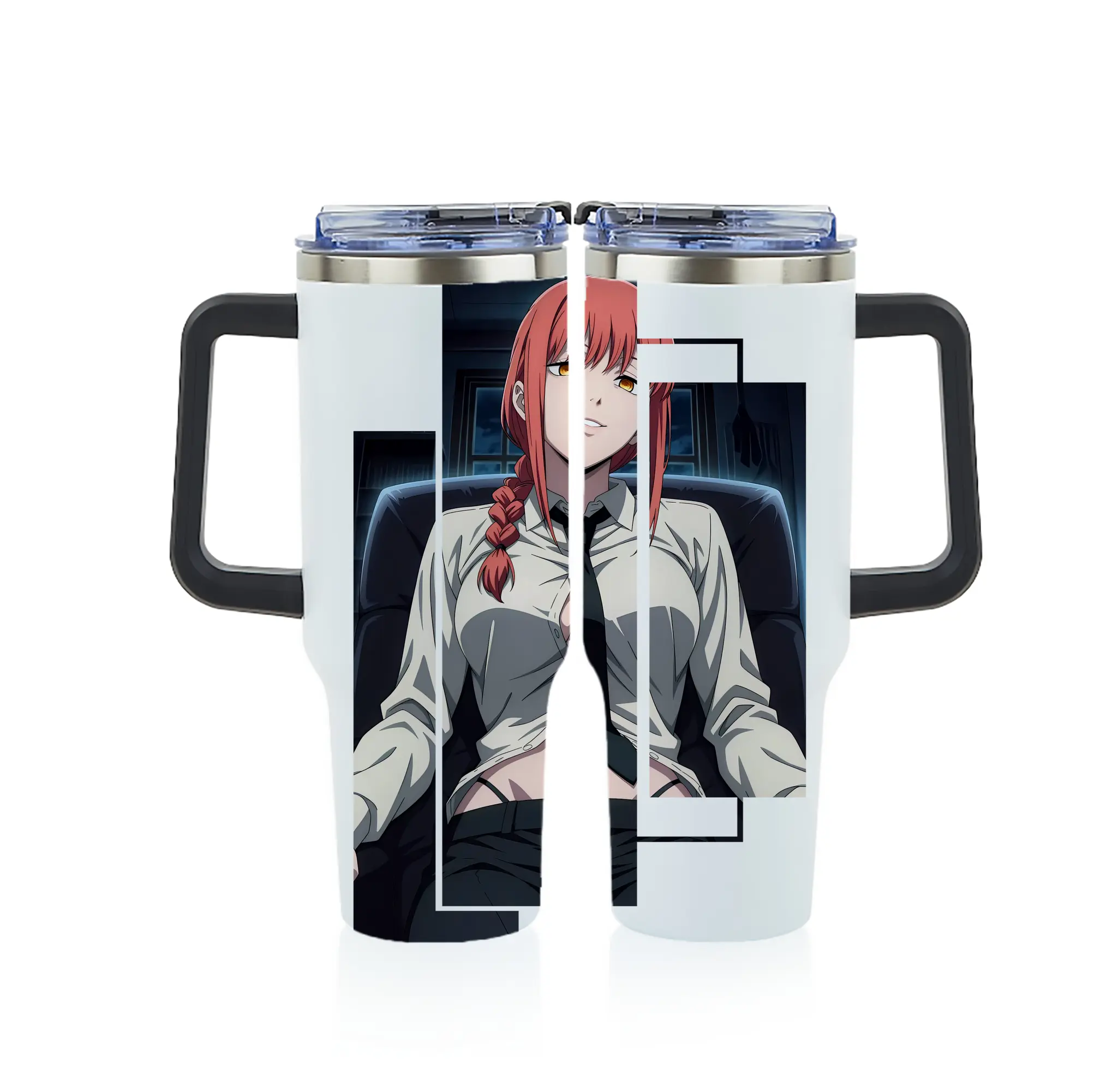 チェンソーマン グッズ,マキマ - 1200mL フルプリント車用タンブラー ・ 304ステンレス 内側 ・ 201ステンレス 外側 ・ 保温 保冷 ・ 通勤 ドライブ アウトドア用