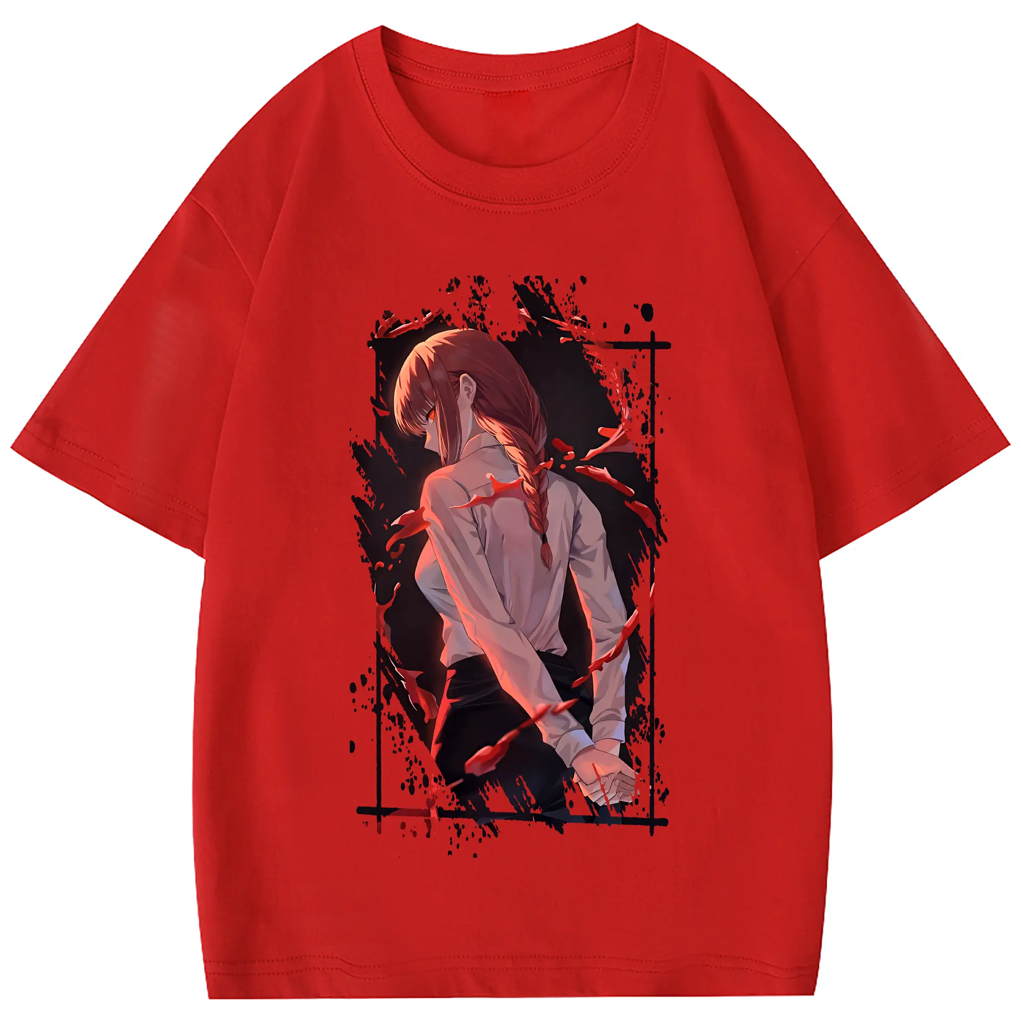 チェンソーマン グッズ,マキマ - 綿100% 半袖Tシャツ ・ フロントプリント ・ 快適 通気性 ・ 日常使い 散歩 スポーツ用