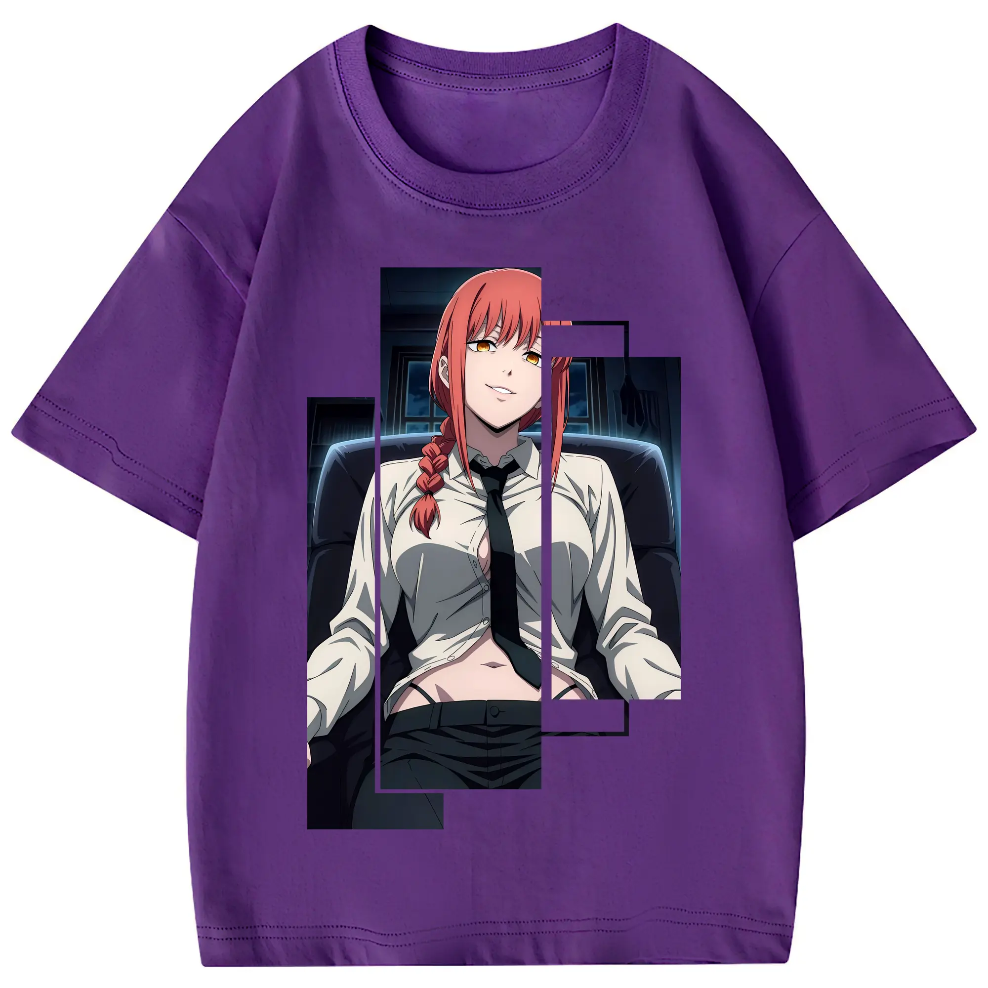 チェンソーマン グッズ,マキマ - 綿100% 半袖Tシャツ ・ フロントプリント ・ 快適 通気性 ・ 日常使い 散歩 スポーツ用