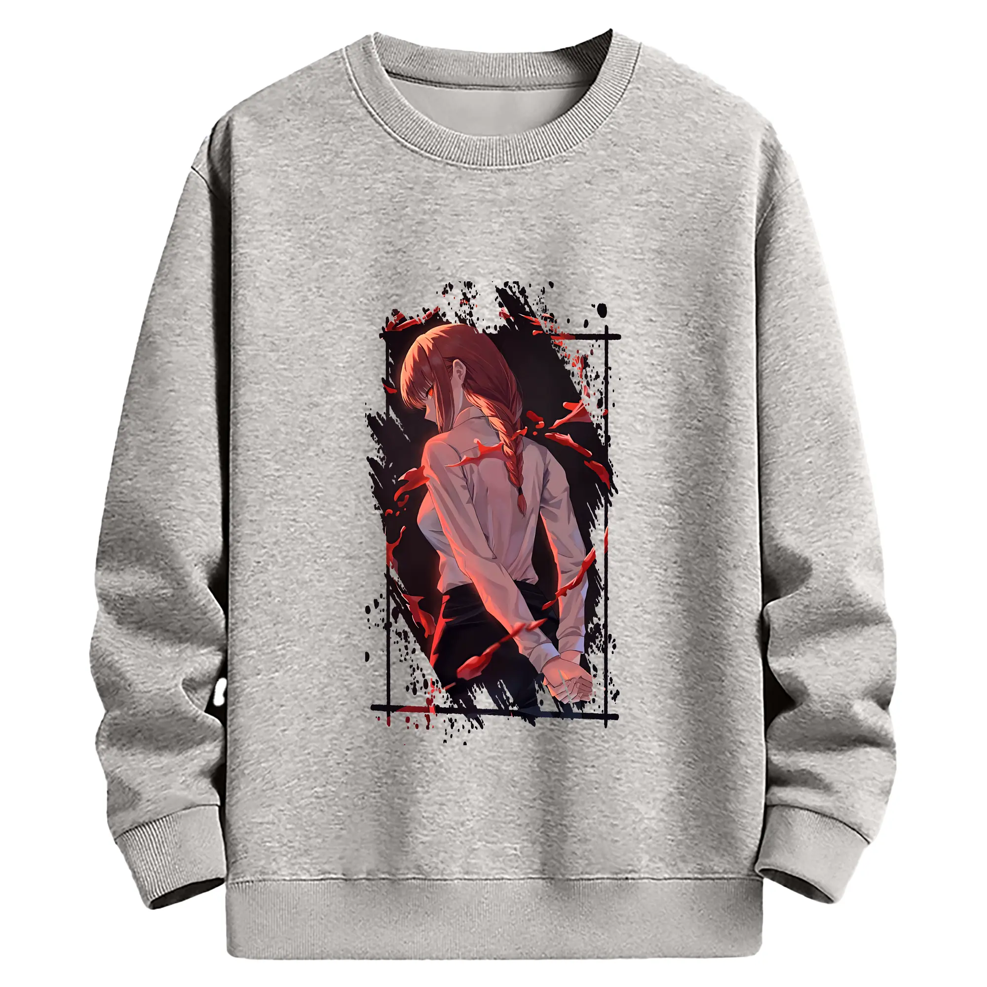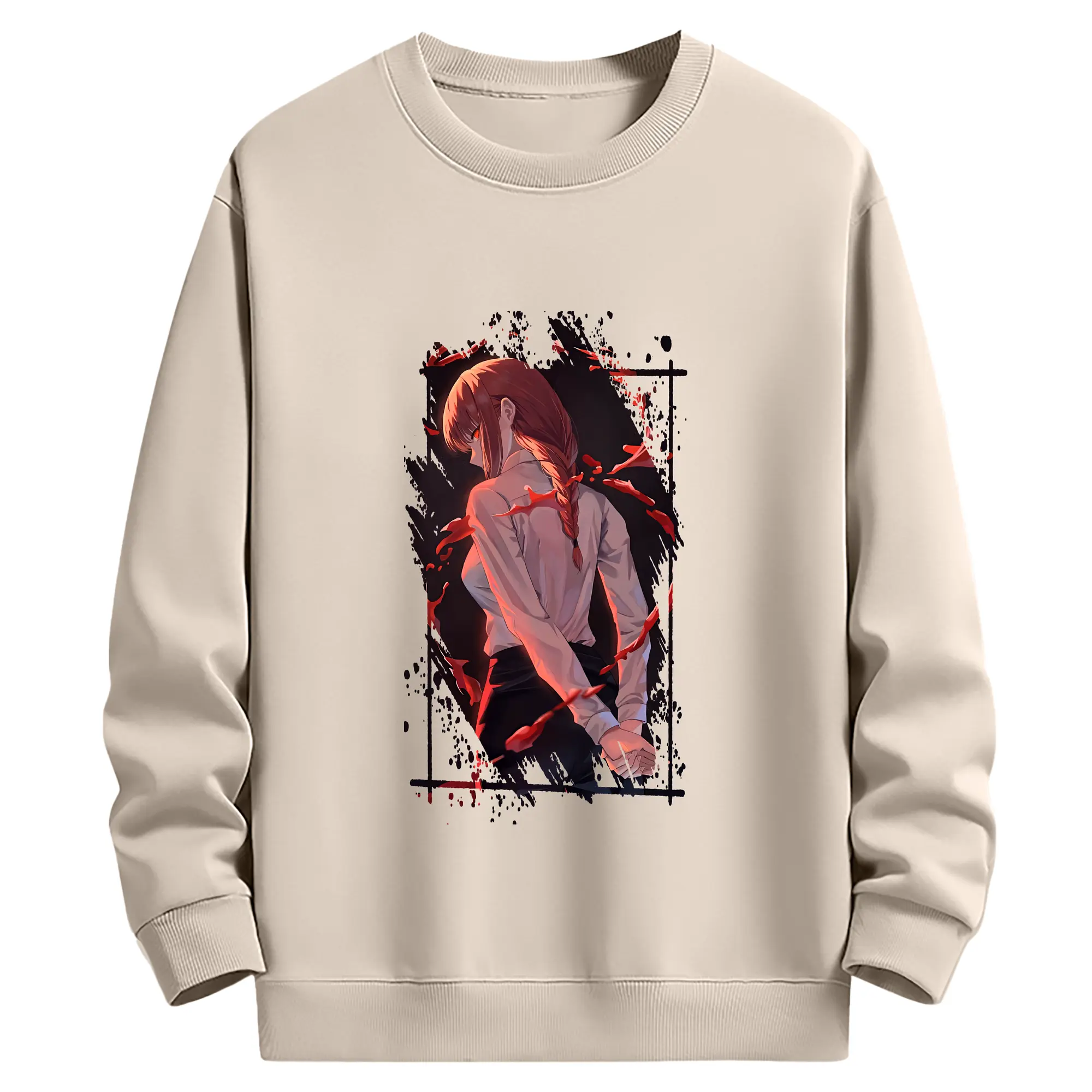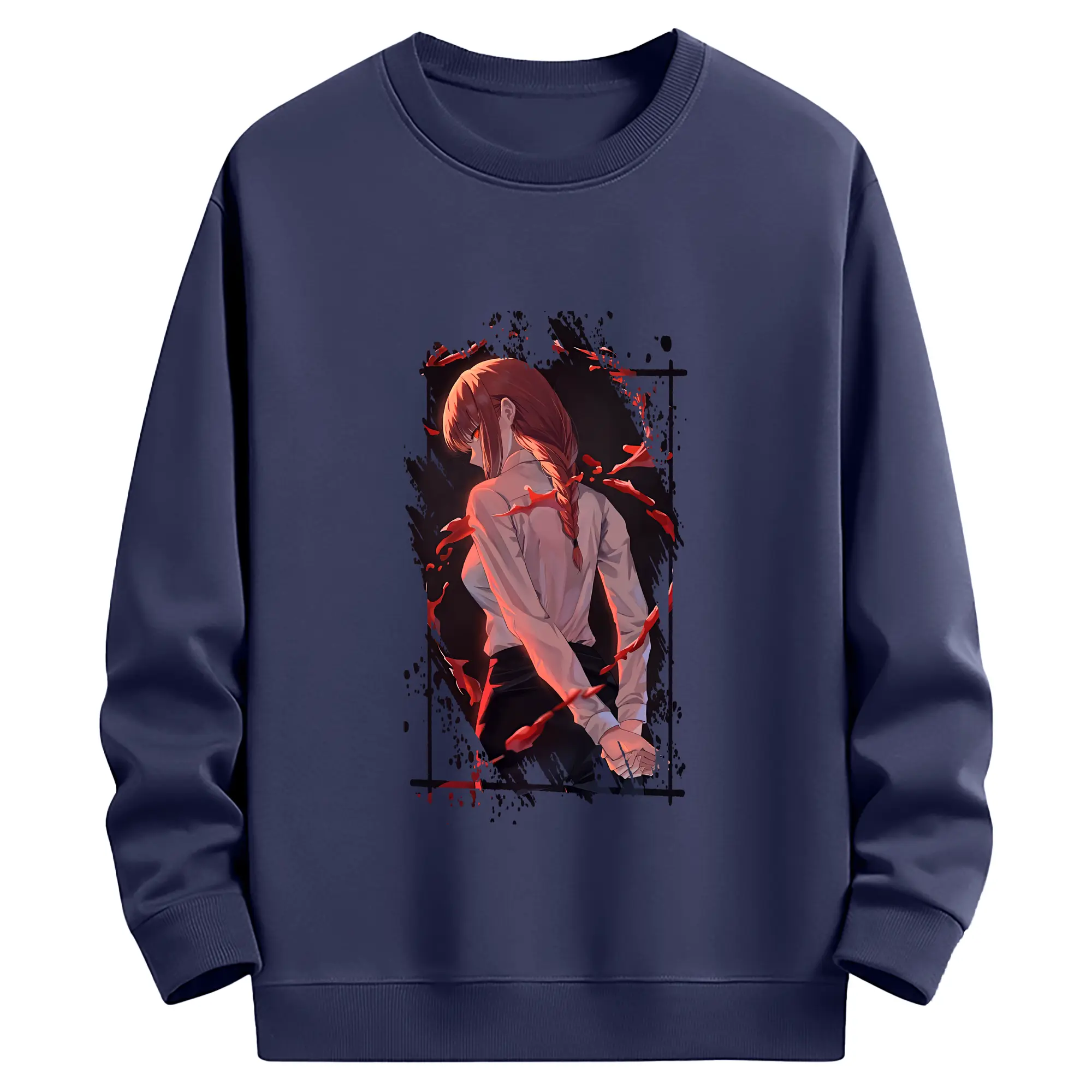 チェンソーマン グッズ,マキマ - 薄手 クルーネック スウェット 裏毛260g · ポリエステル 春秋向け カジュアル 男女兼用 · トレーナー デイリー スポーツ 散歩に最適
