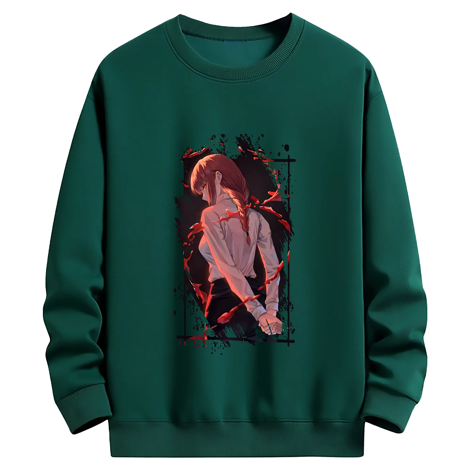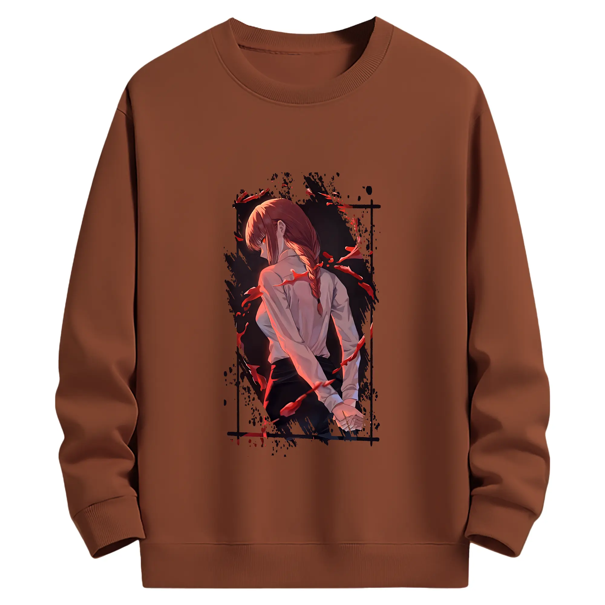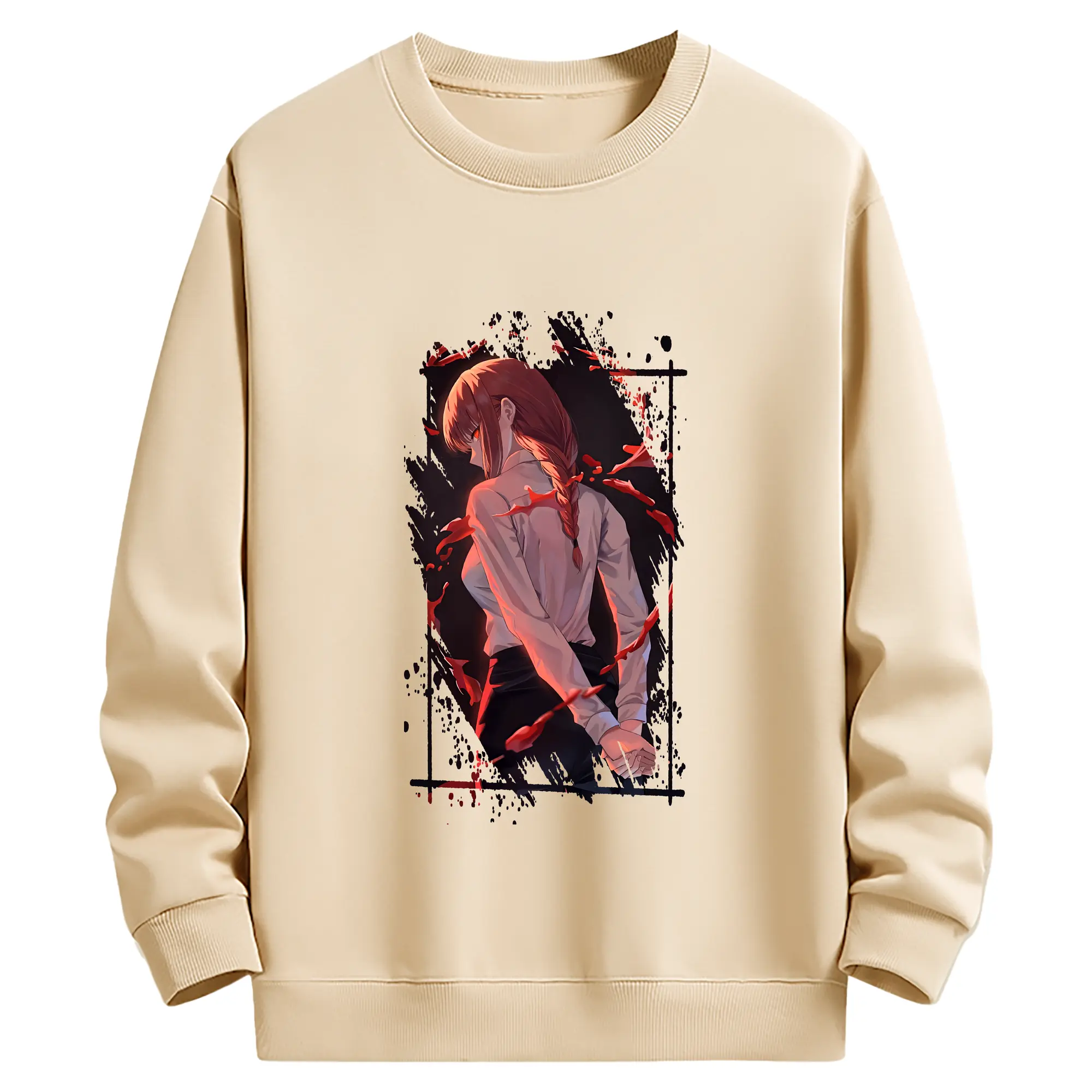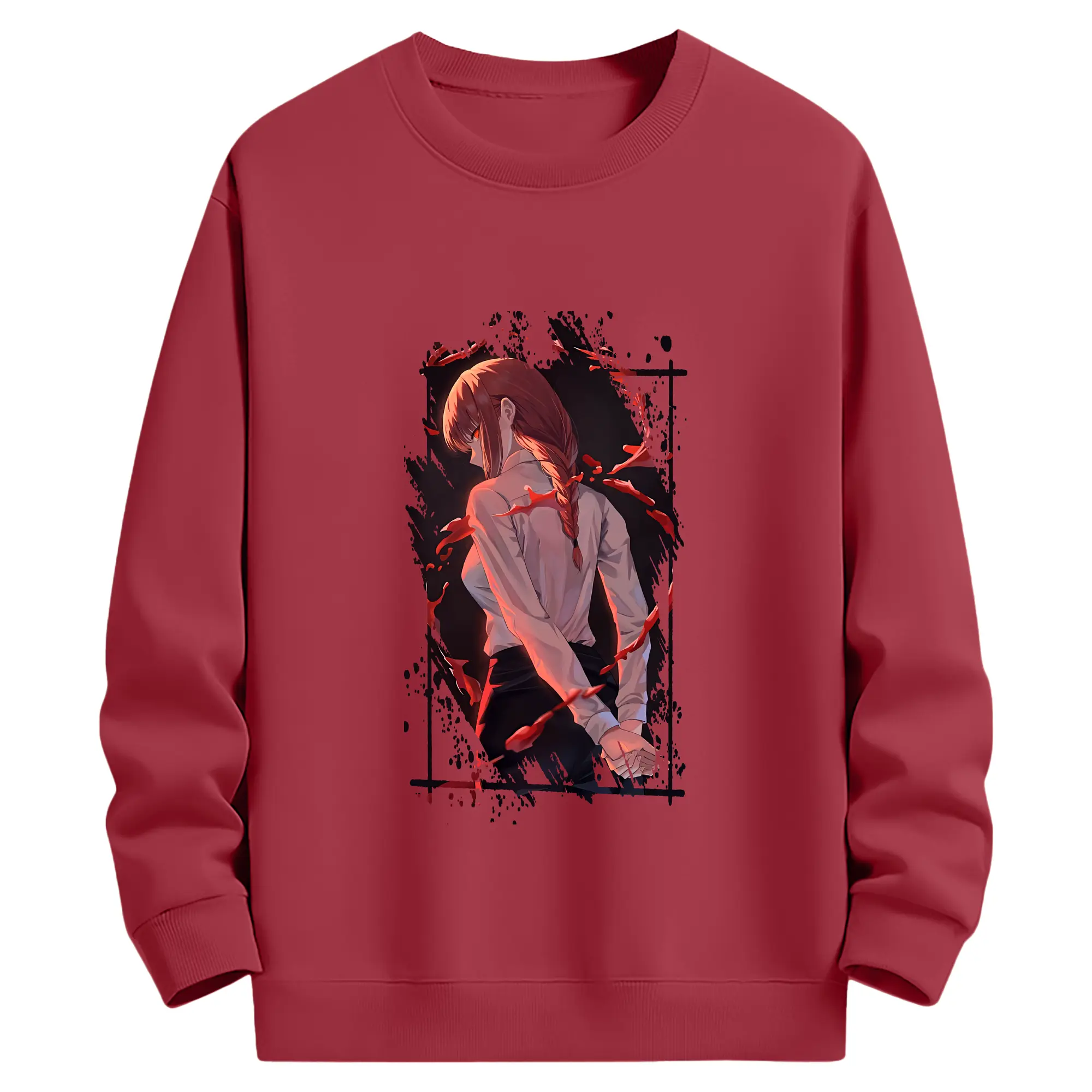 チェンソーマン グッズ,マキマ - 薄手 クルーネック スウェット 裏毛260g · ポリエステル 春秋向け カジュアル 男女兼用 · トレーナー デイリー スポーツ 散歩に最適