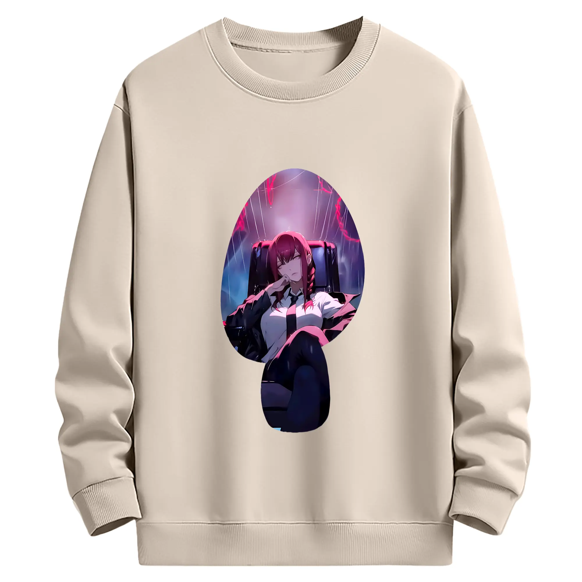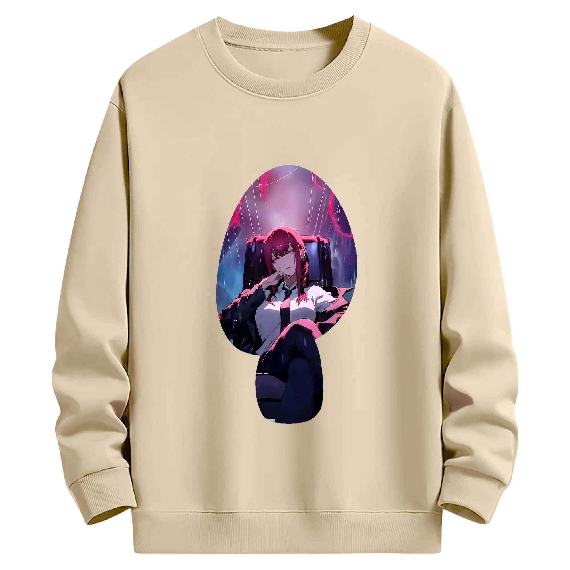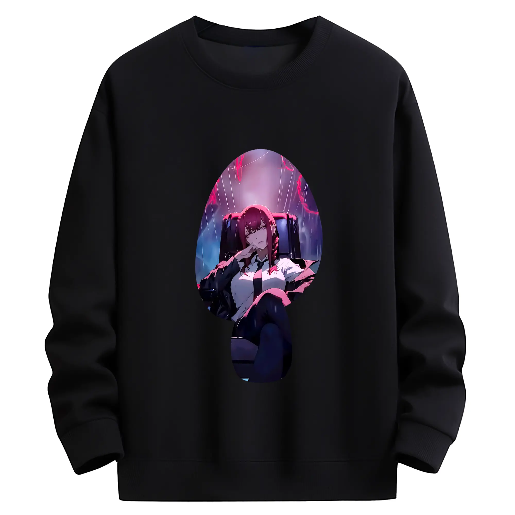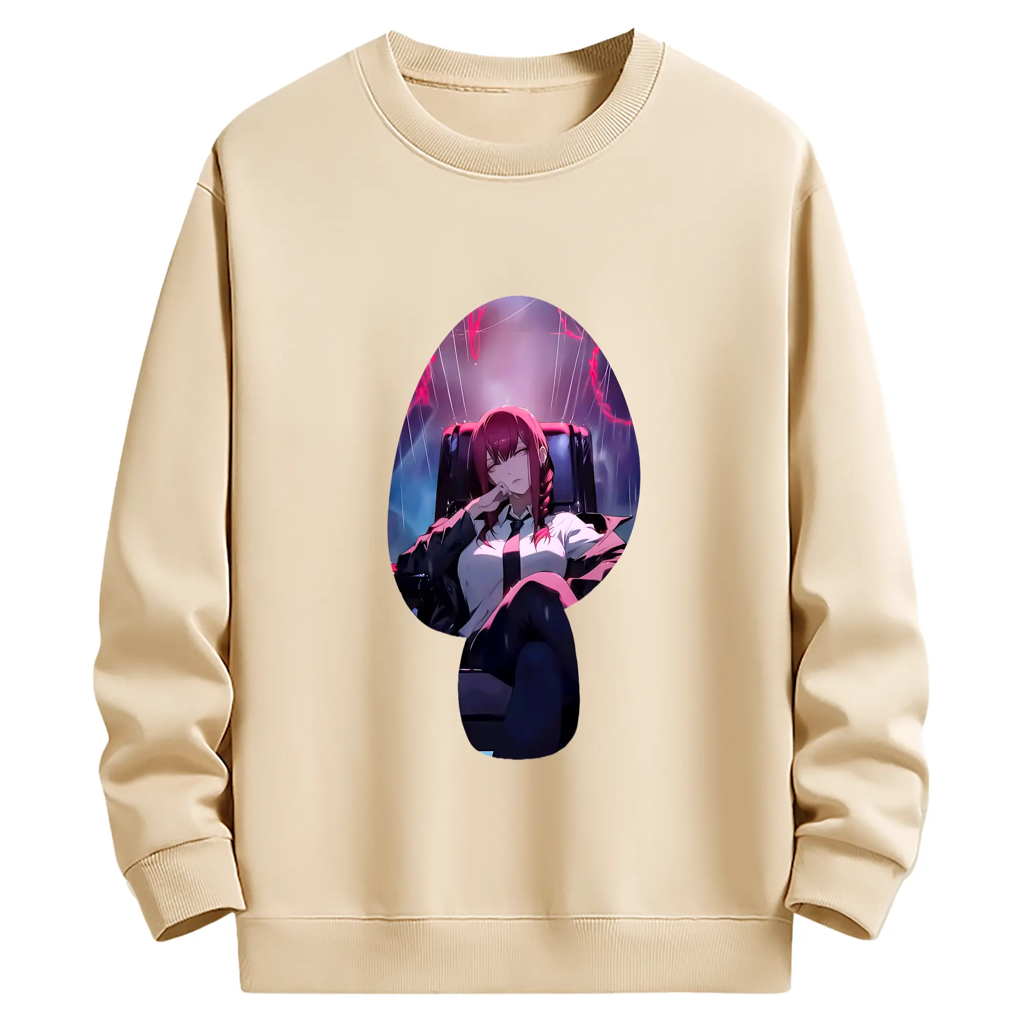チェンソーマン グッズ,マキマ - 薄手 クルーネック スウェット 裏毛260g · ポリエステル 春秋向け カジュアル 男女兼用 · トレーナー デイリー スポーツ 散歩に最適