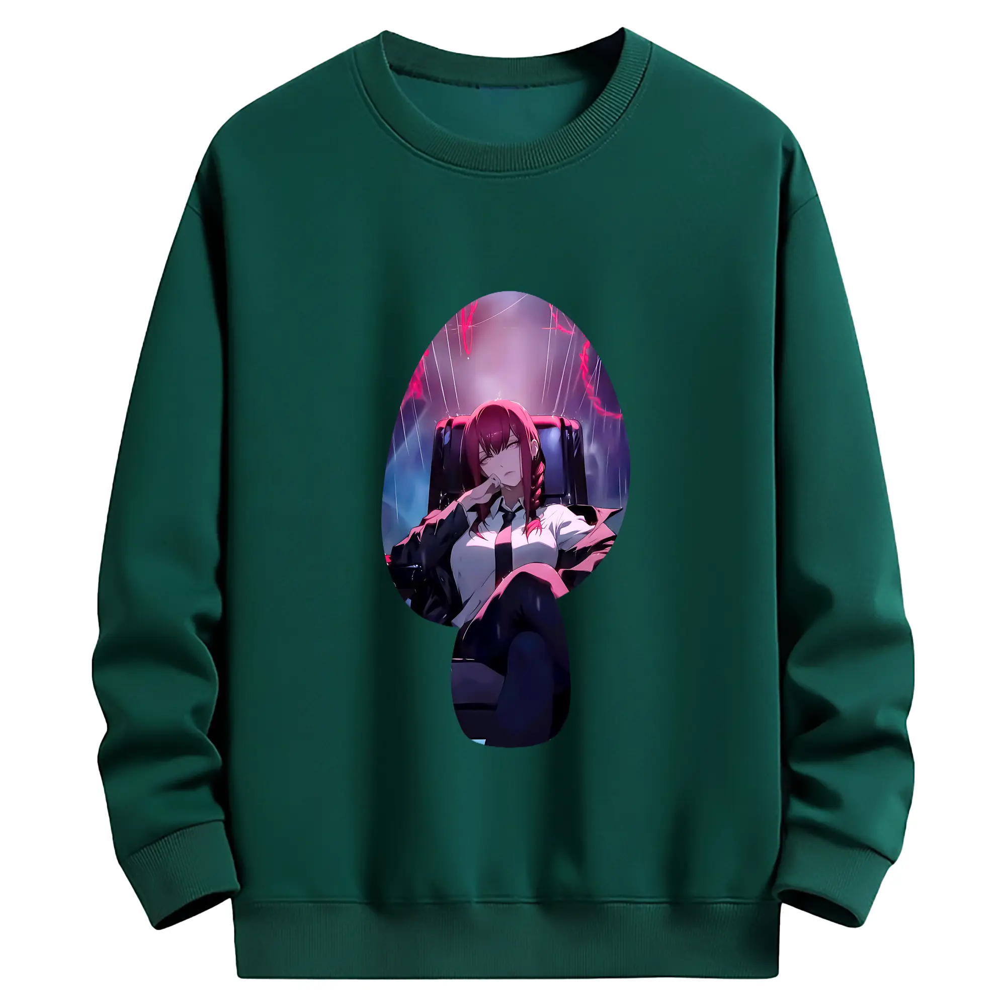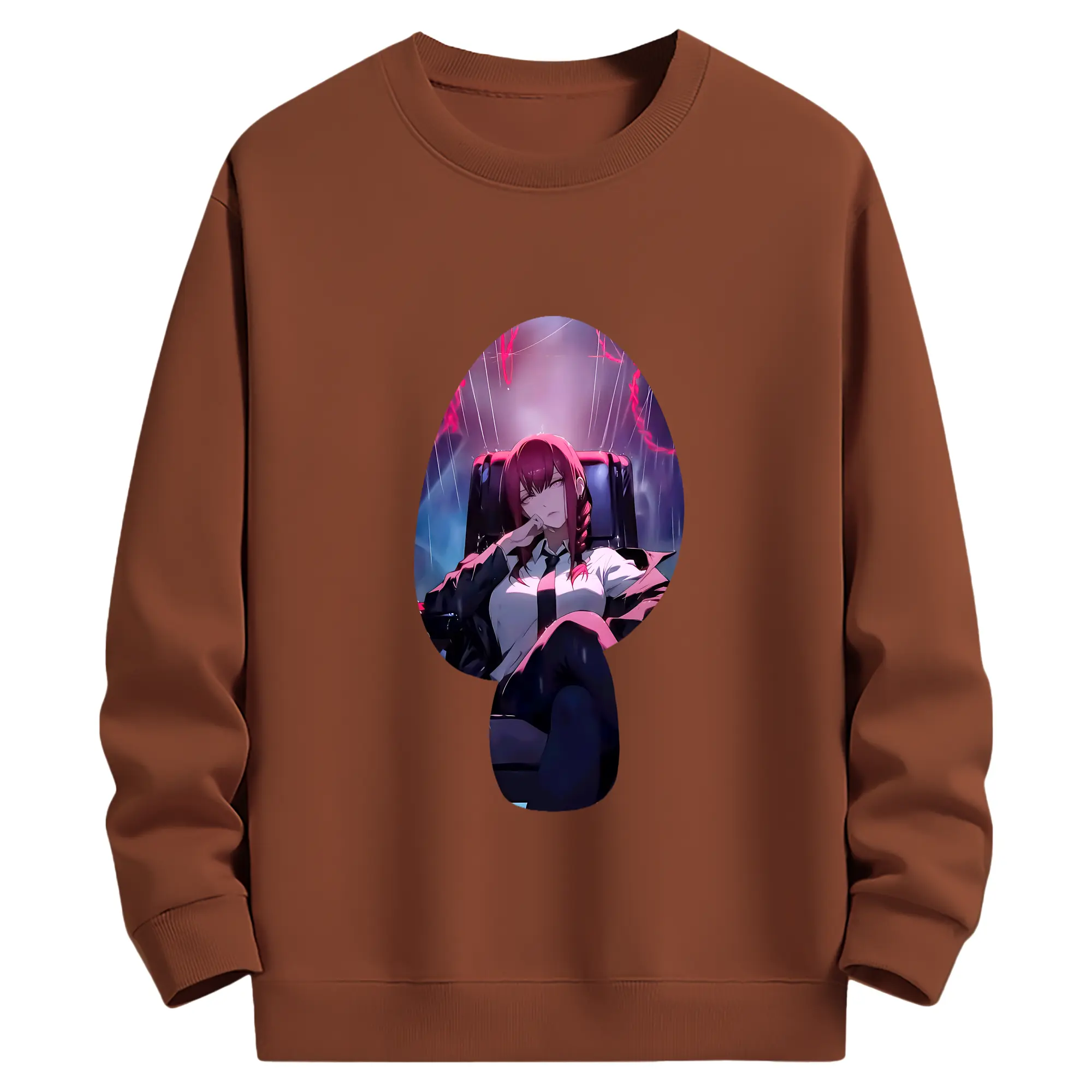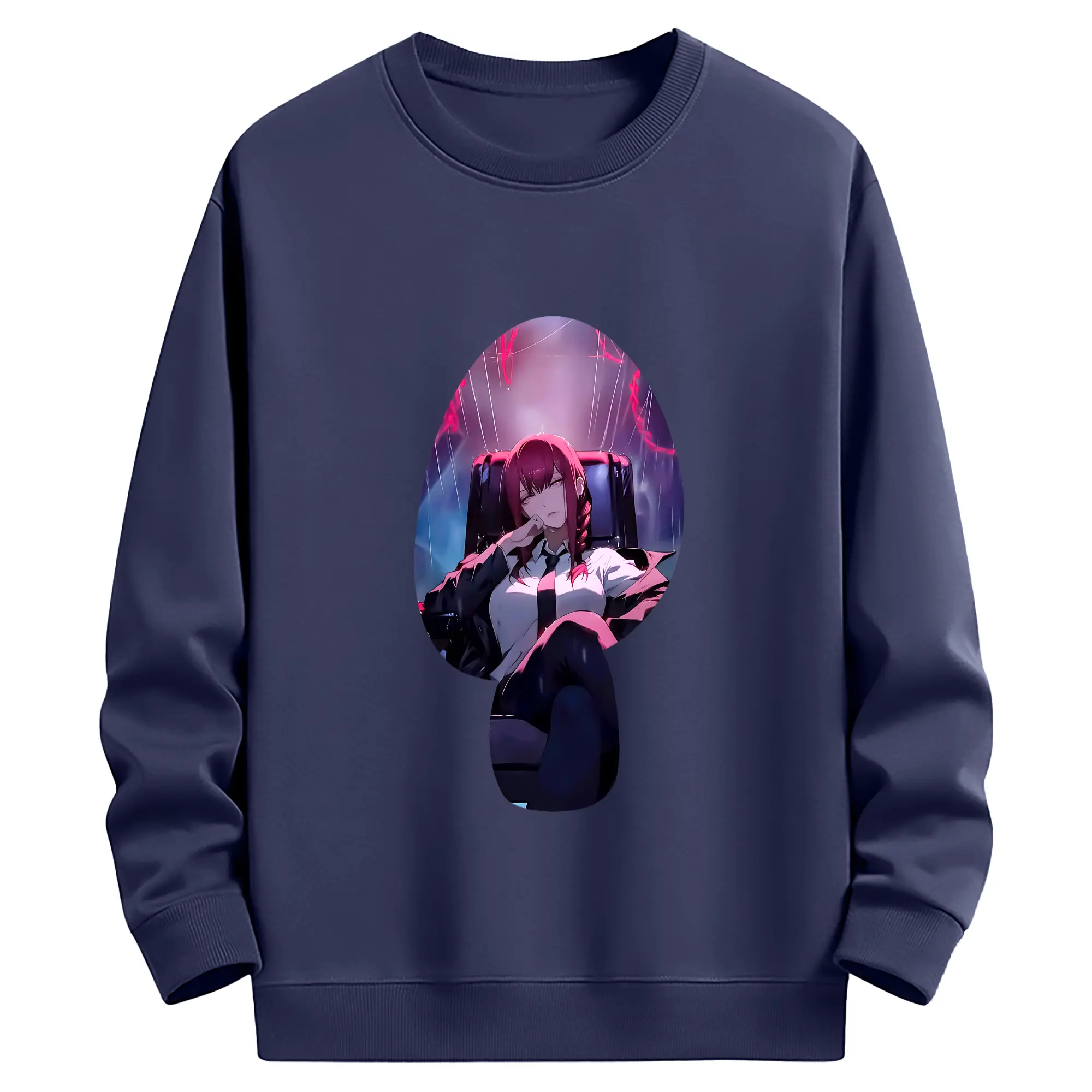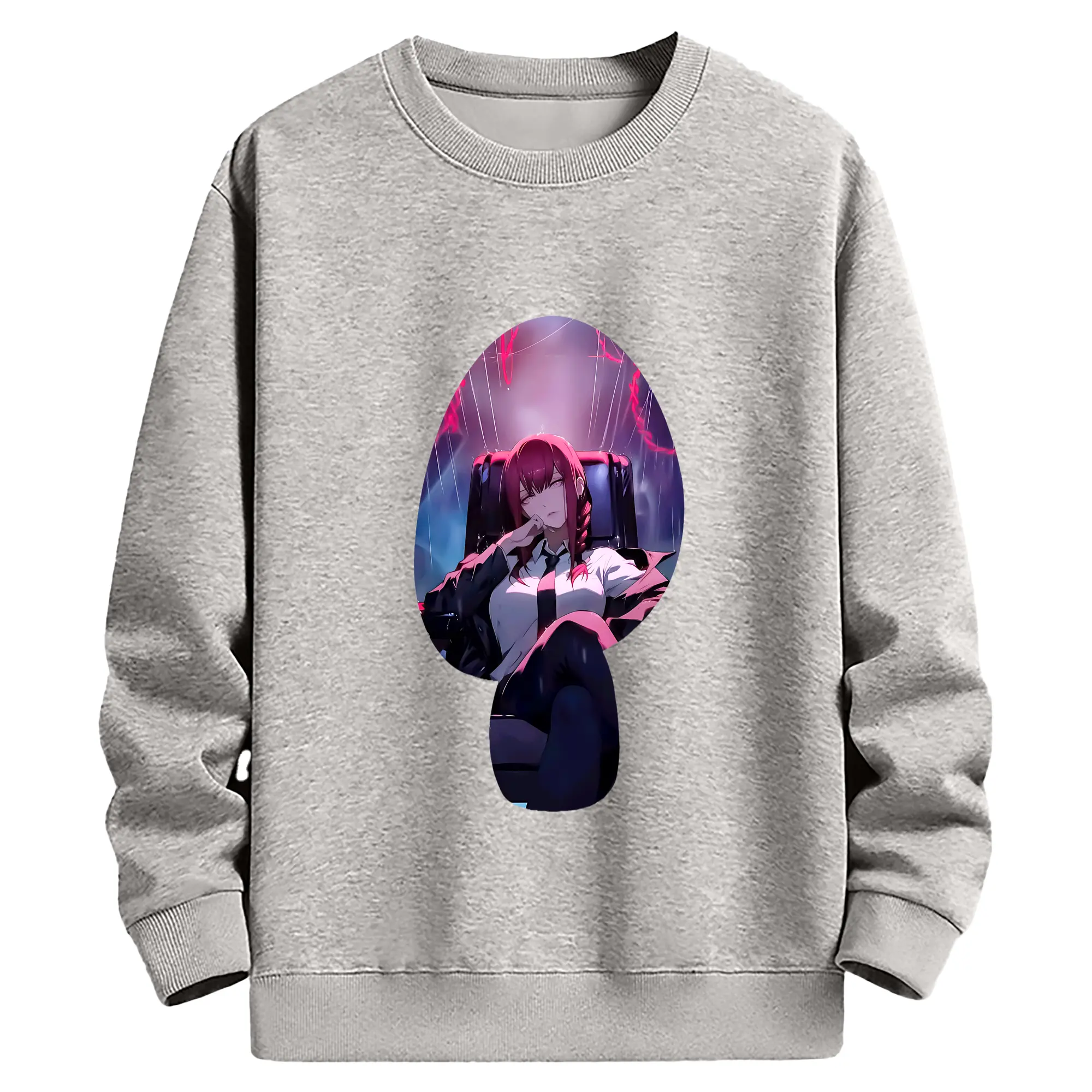 チェンソーマン グッズ,マキマ - 薄手 クルーネック スウェット 裏毛260g · ポリエステル 春秋向け カジュアル 男女兼用 · トレーナー デイリー スポーツ 散歩に最適