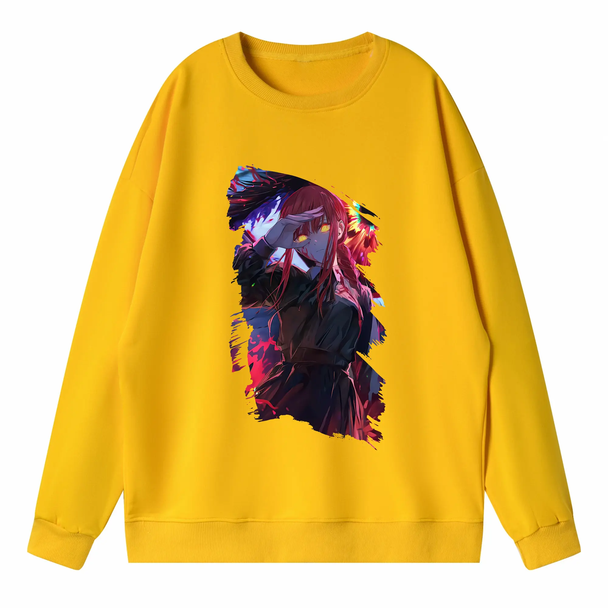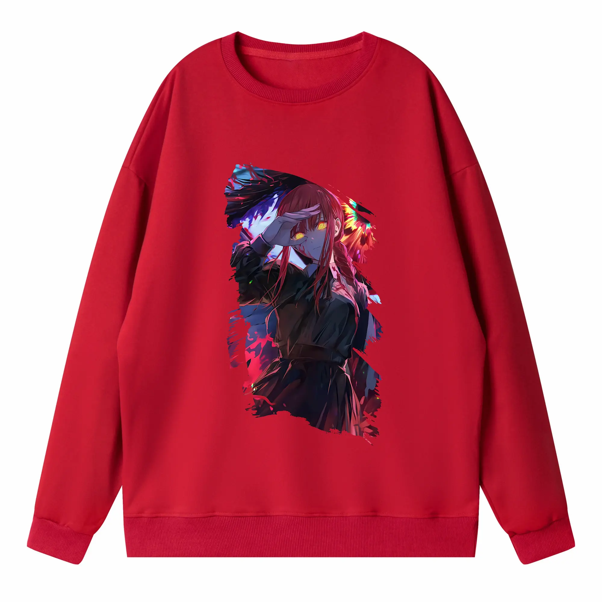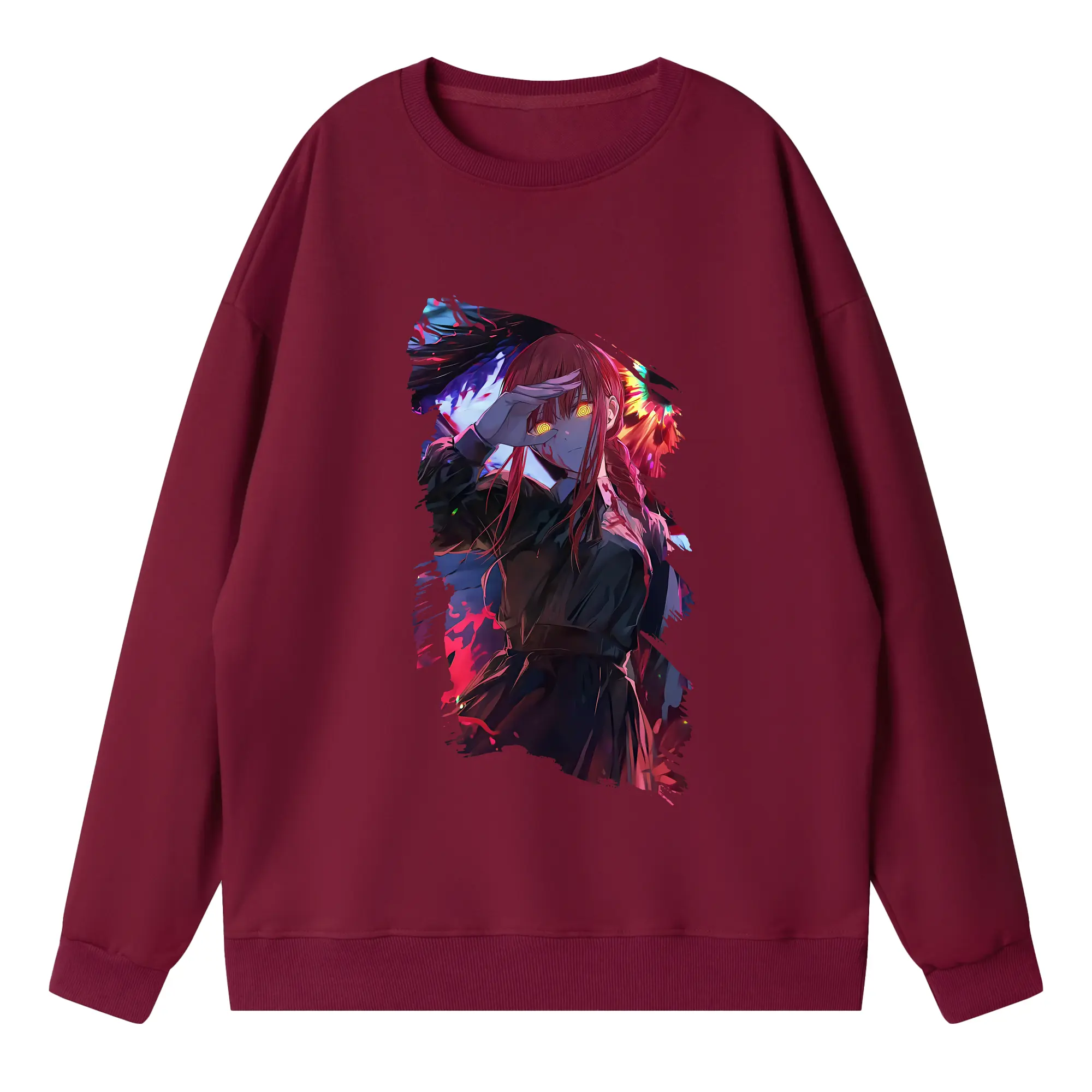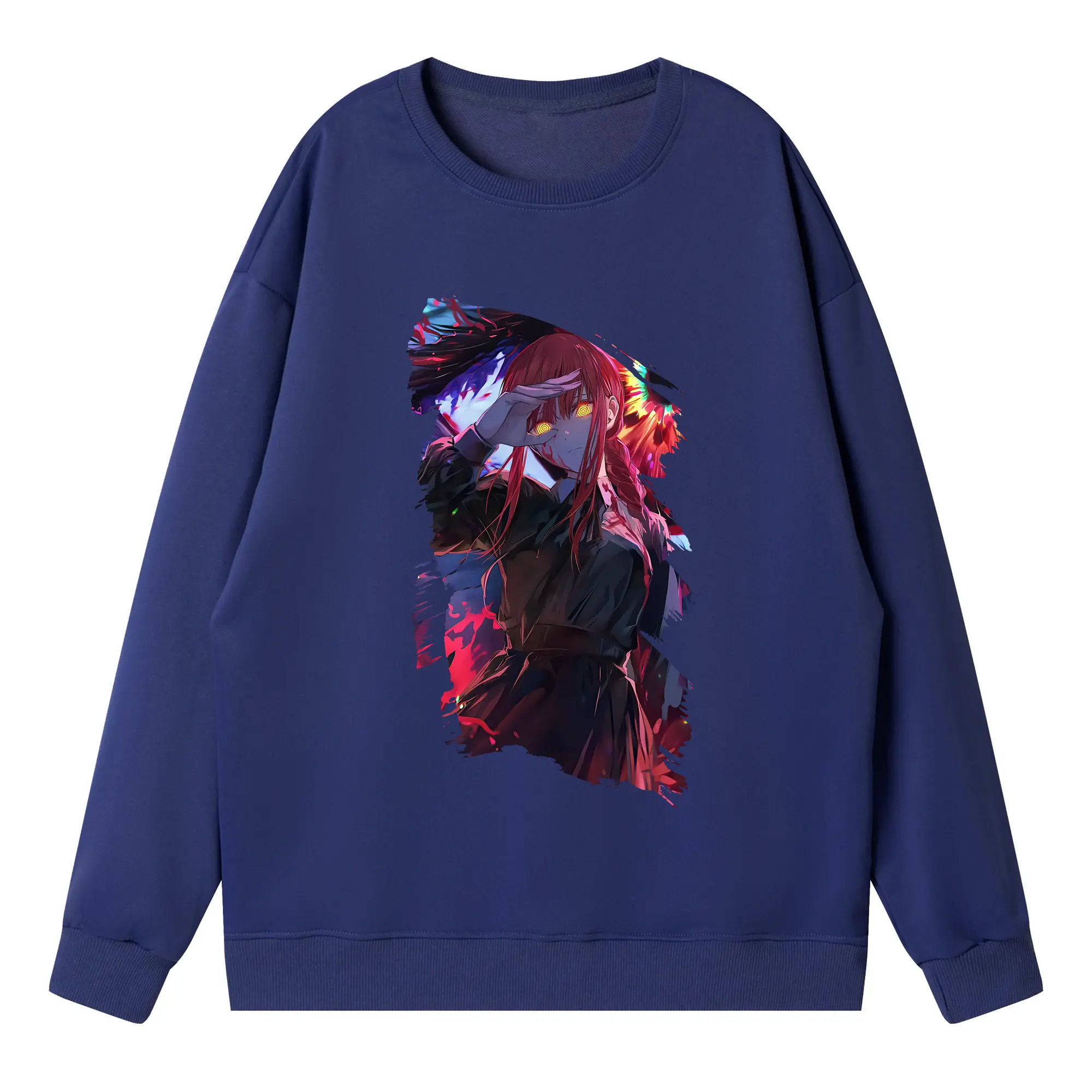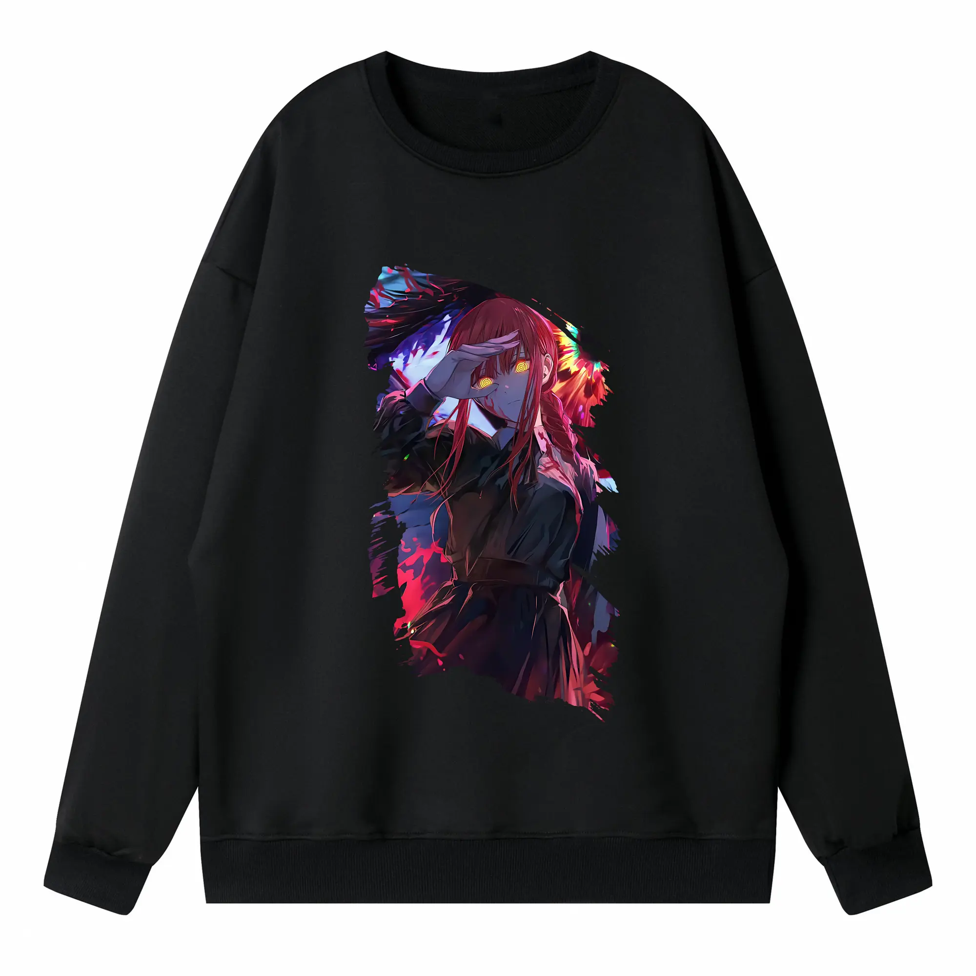 チェンソーマン グッズ,マキマ - 高品質 クルーネック スウェット ・ コットン59% ポリエステル41% ・ ユニセックス 長袖 トレーナー ・ カジュアル デイリー スポーツ 散歩用