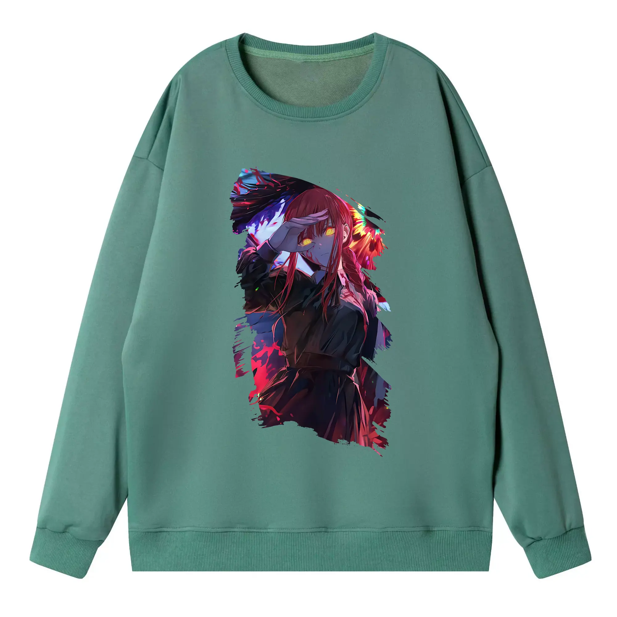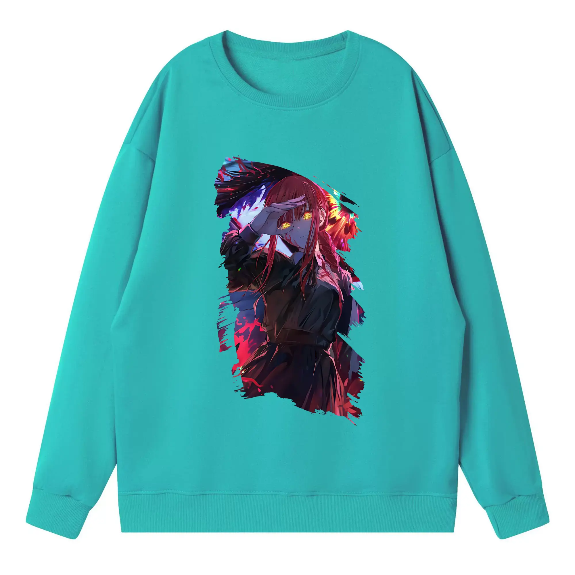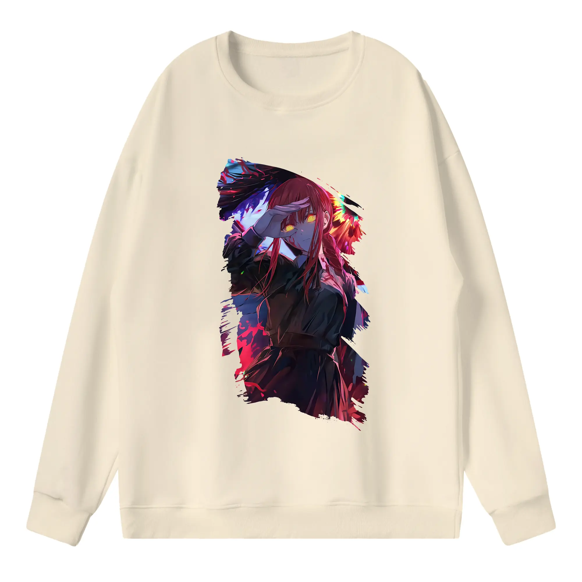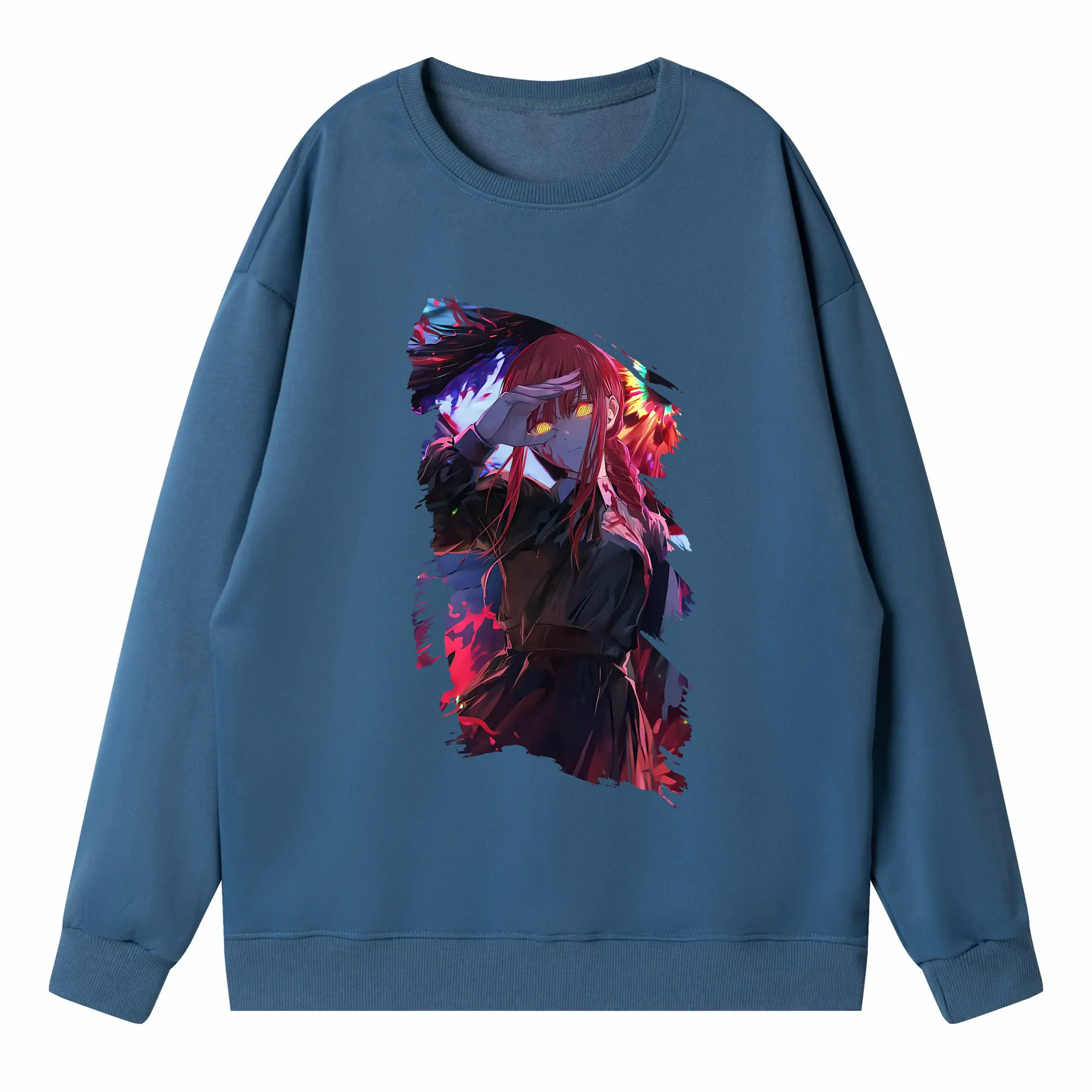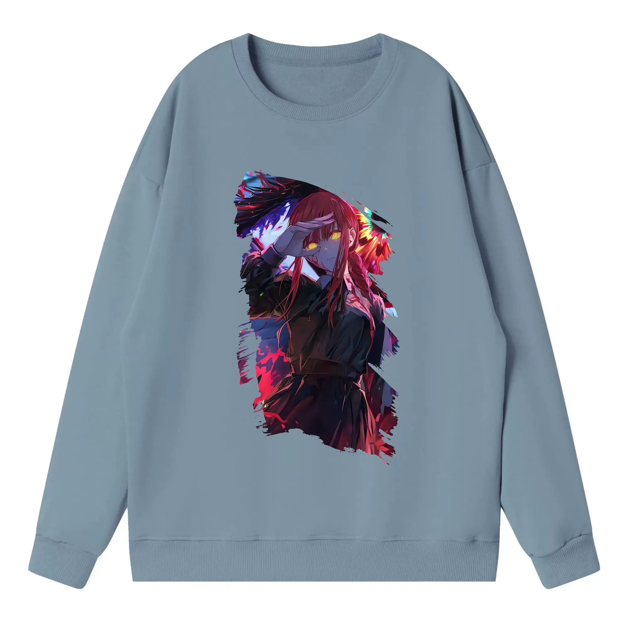 チェンソーマン グッズ,マキマ - 高品質 クルーネック スウェット ・ コットン59% ポリエステル41% ・ ユニセックス 長袖 トレーナー ・ カジュアル デイリー スポーツ 散歩用
