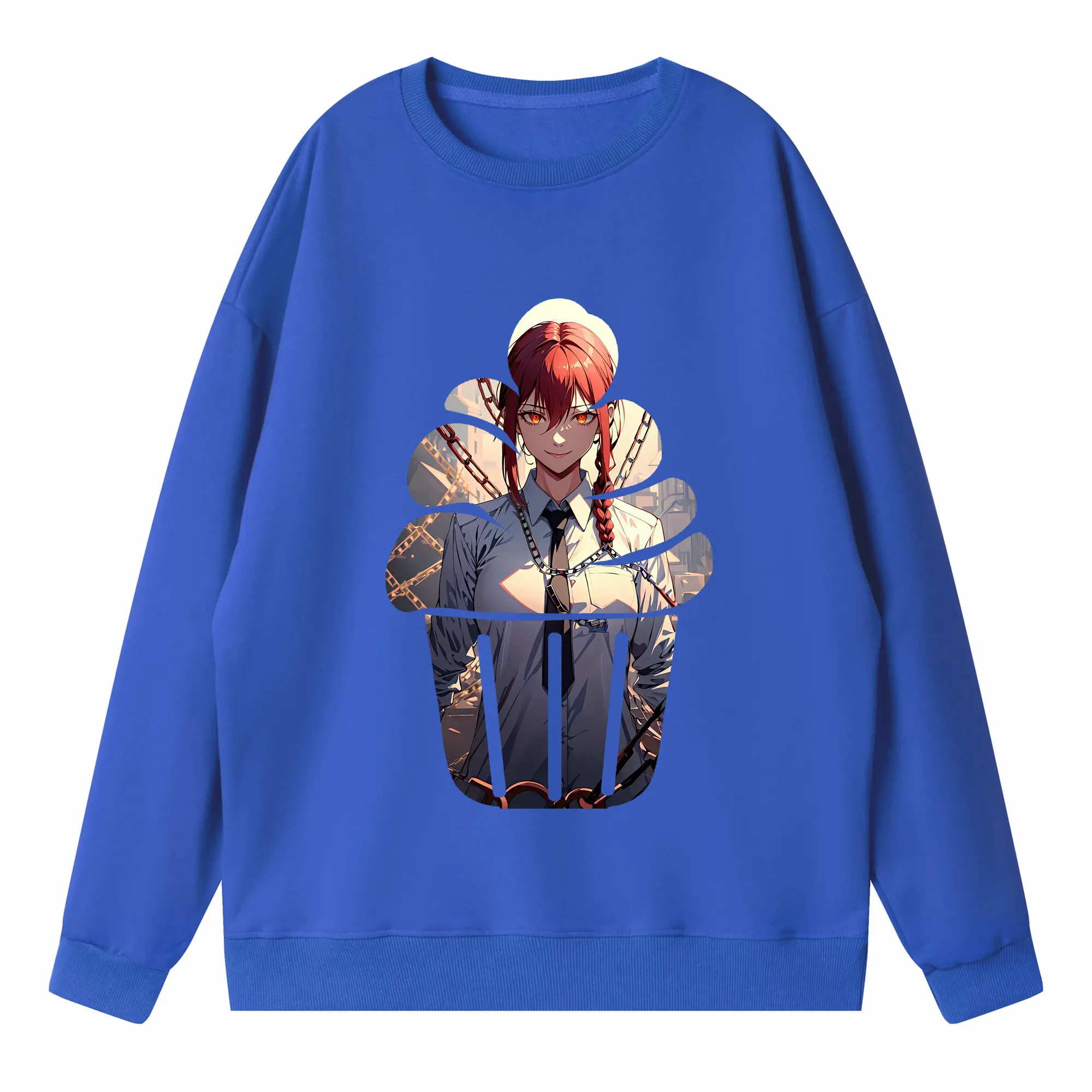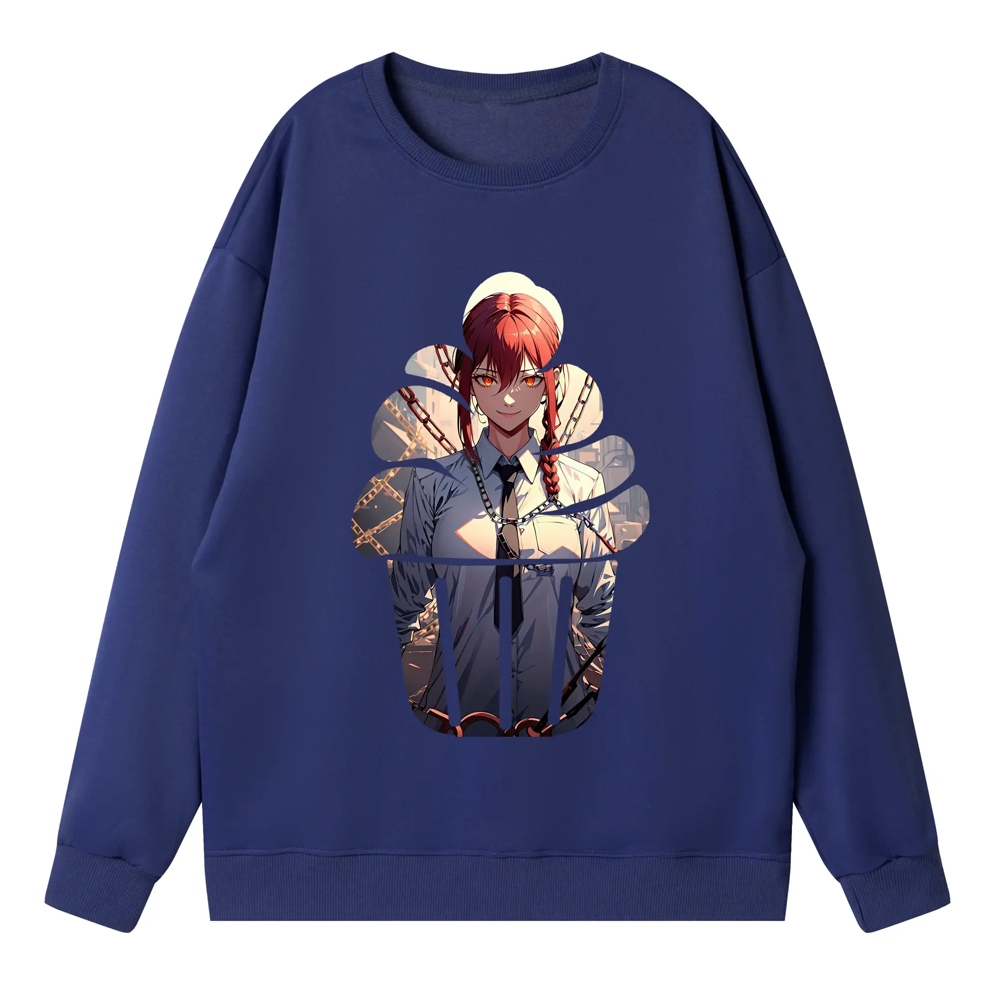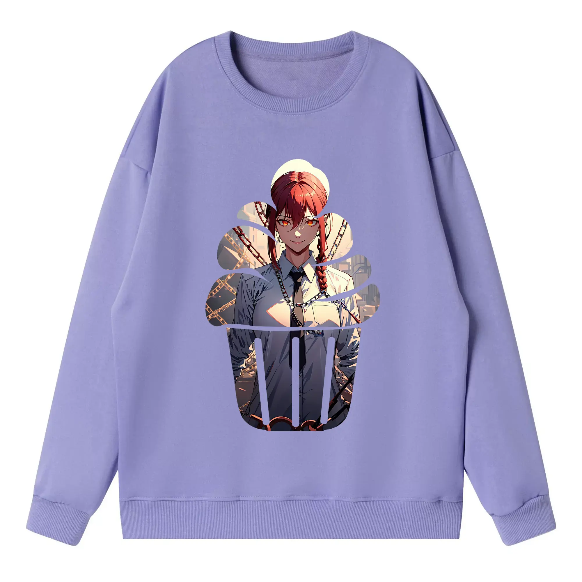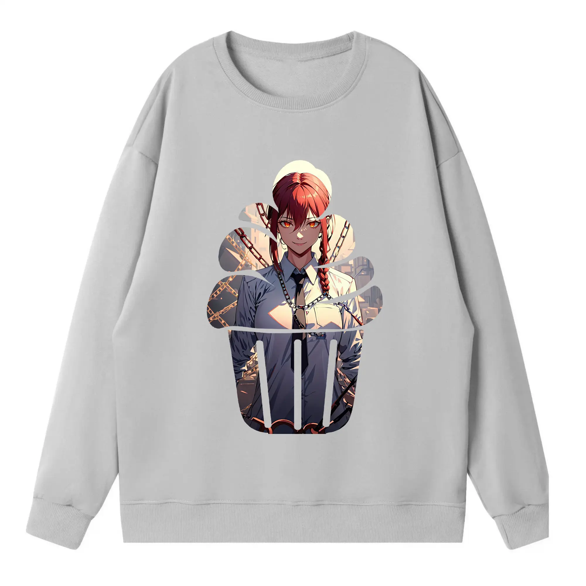 チェンソーマン グッズ,マキマ - 高品質 クルーネック スウェット ・ コットン59% ポリエステル41% ・ ユニセックス 長袖 トレーナー ・ カジュアル デイリー スポーツ 散歩用