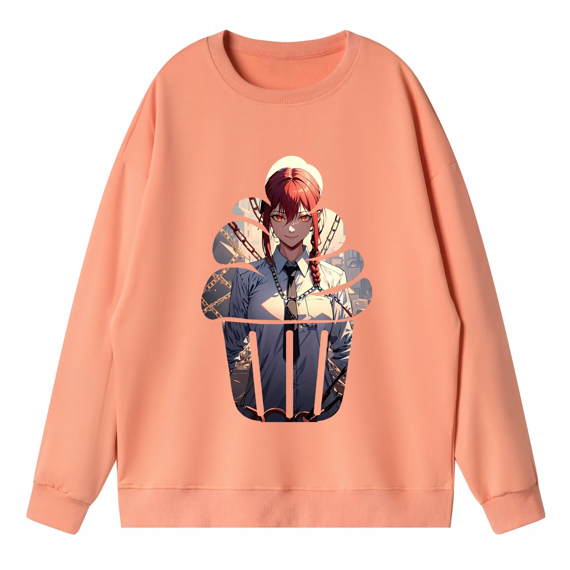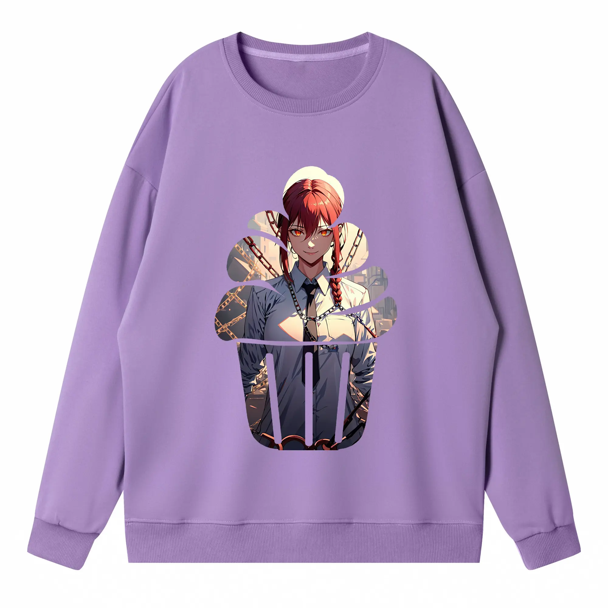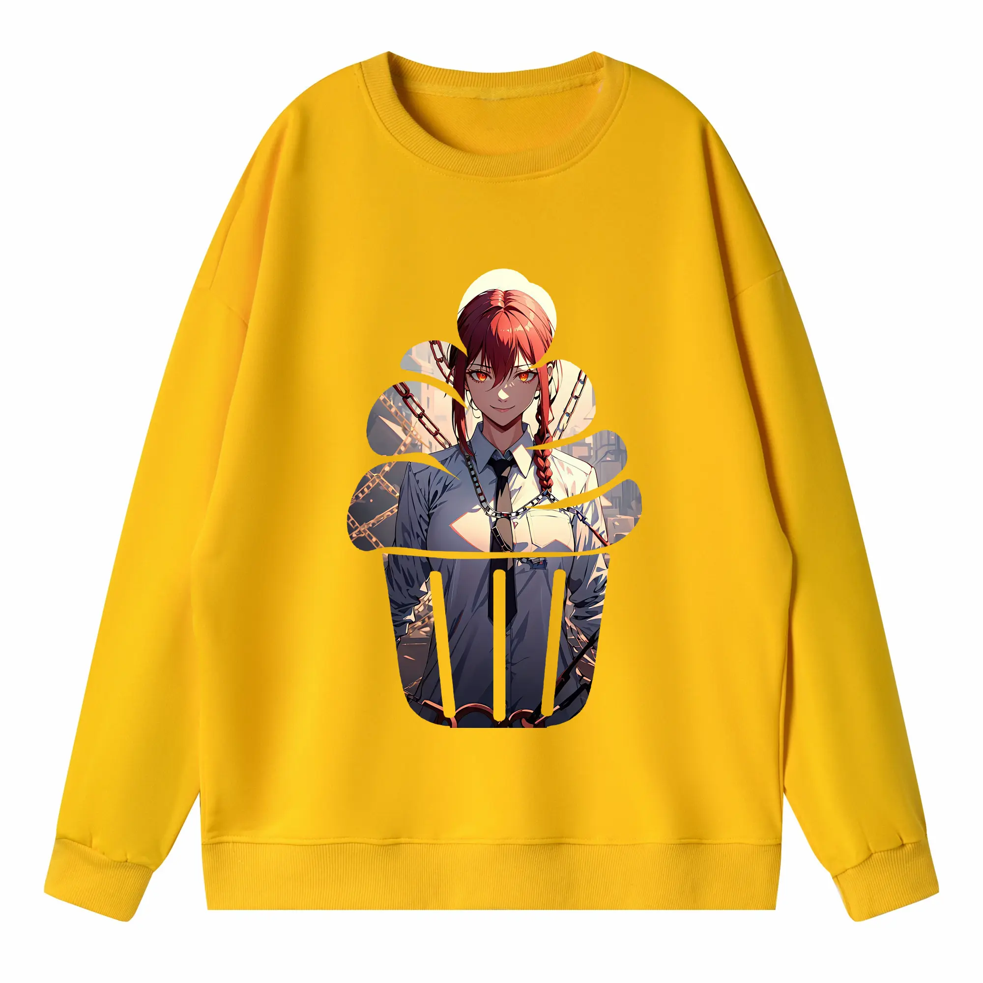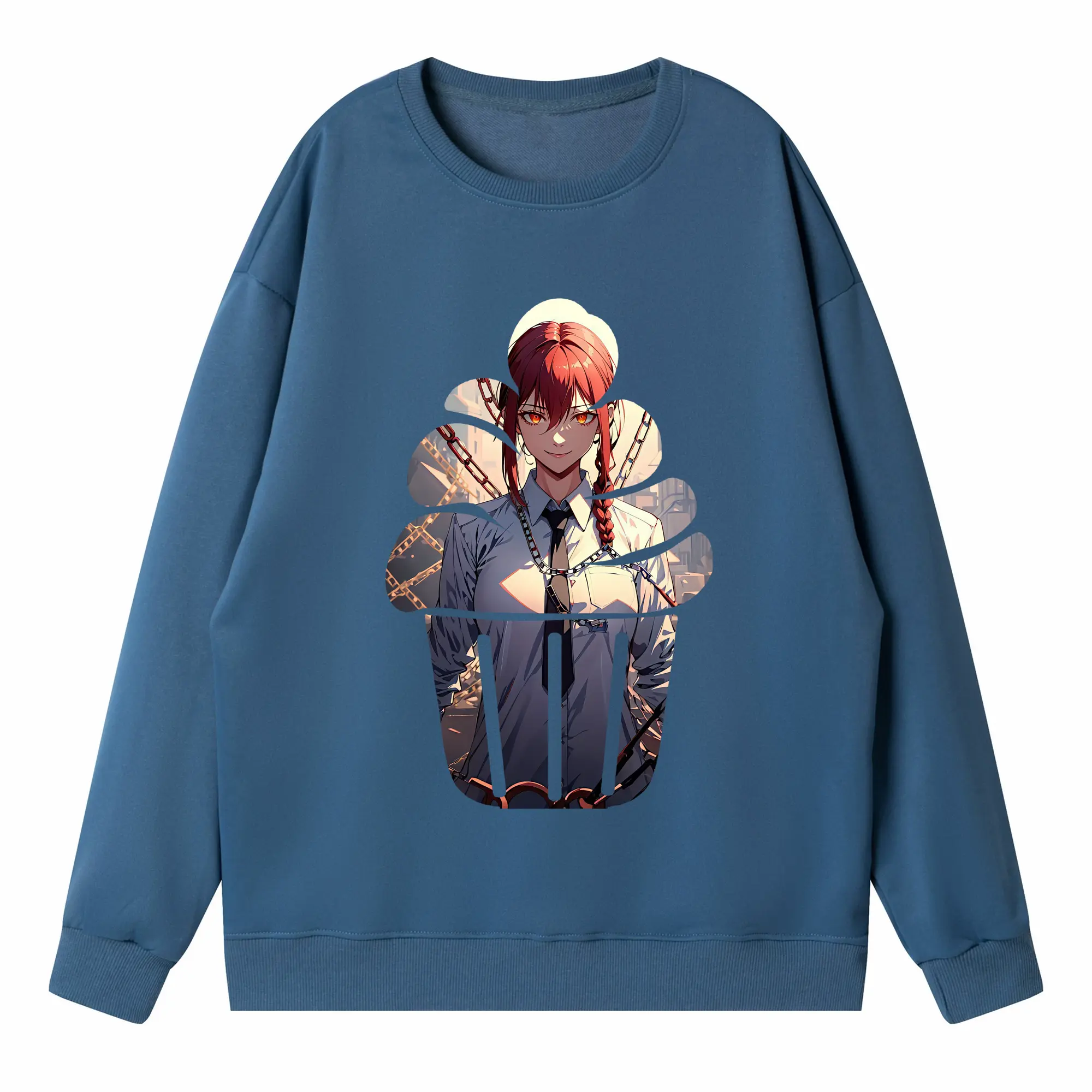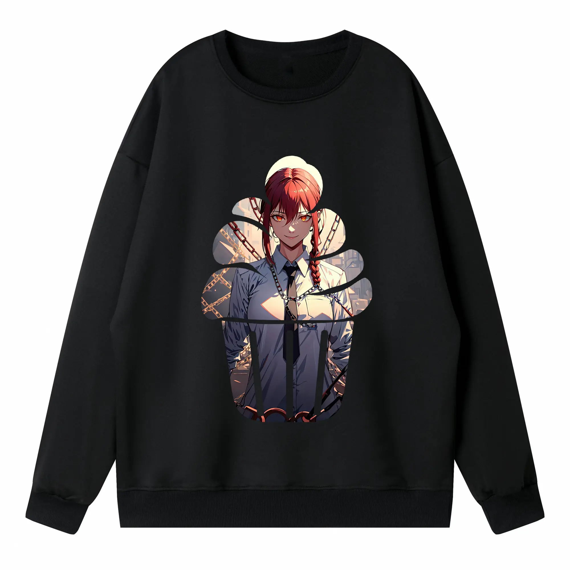 チェンソーマン グッズ,マキマ - 高品質 クルーネック スウェット ・ コットン59% ポリエステル41% ・ ユニセックス 長袖 トレーナー ・ カジュアル デイリー スポーツ 散歩用