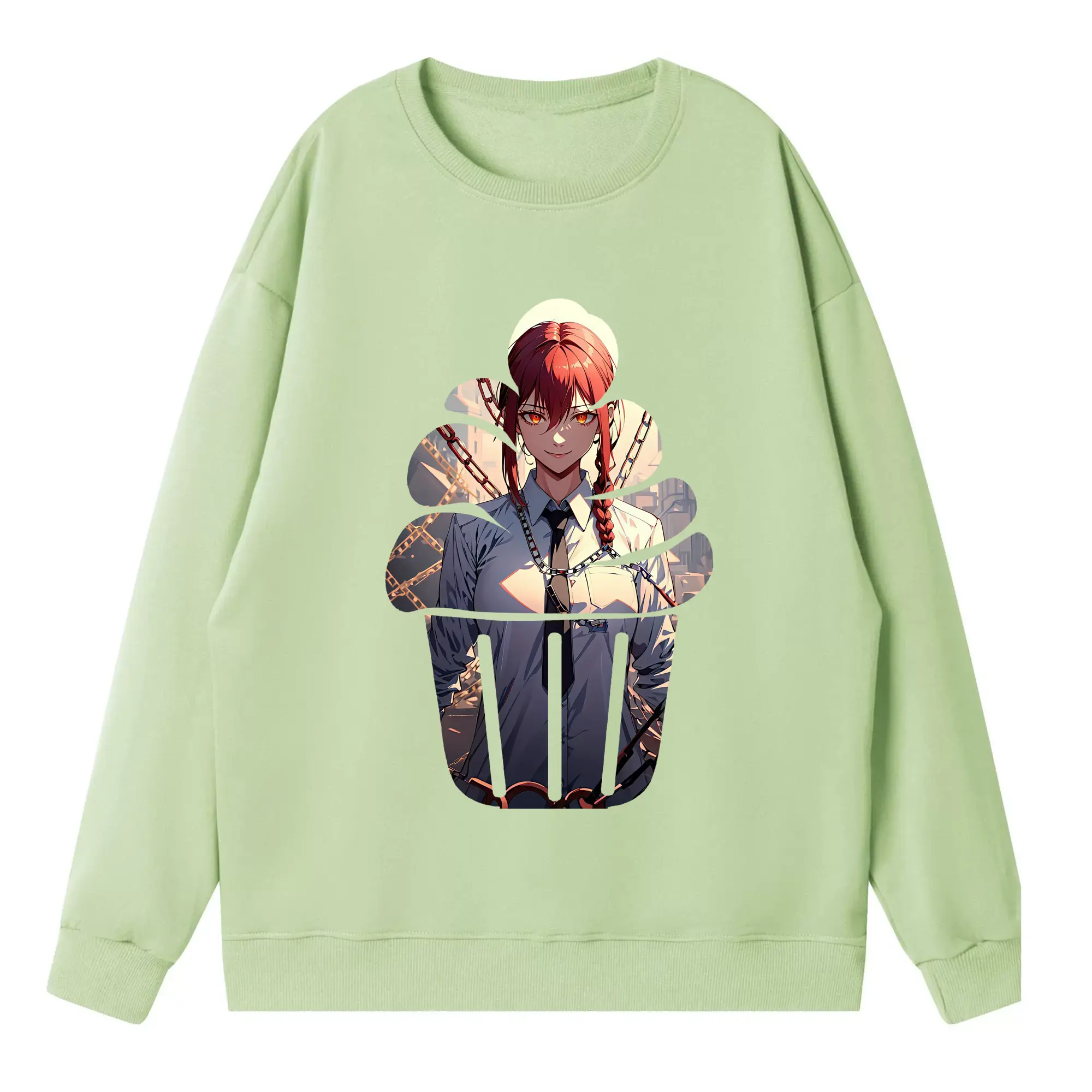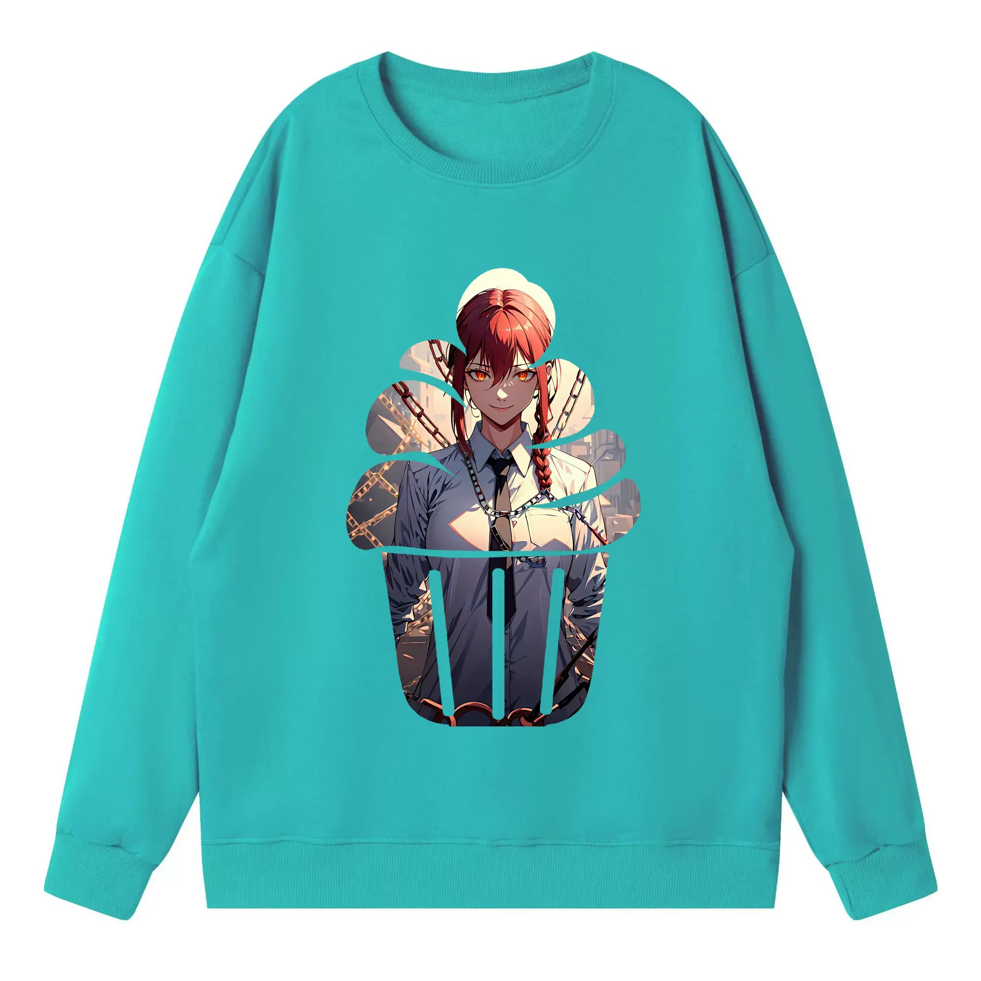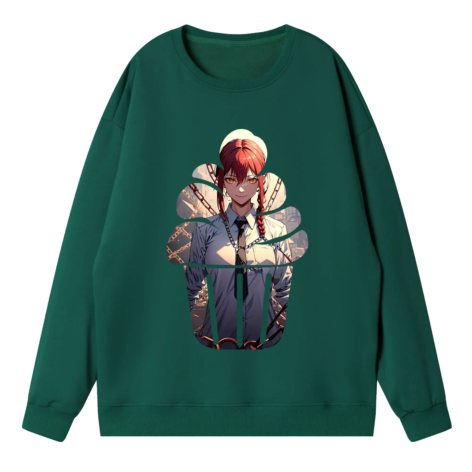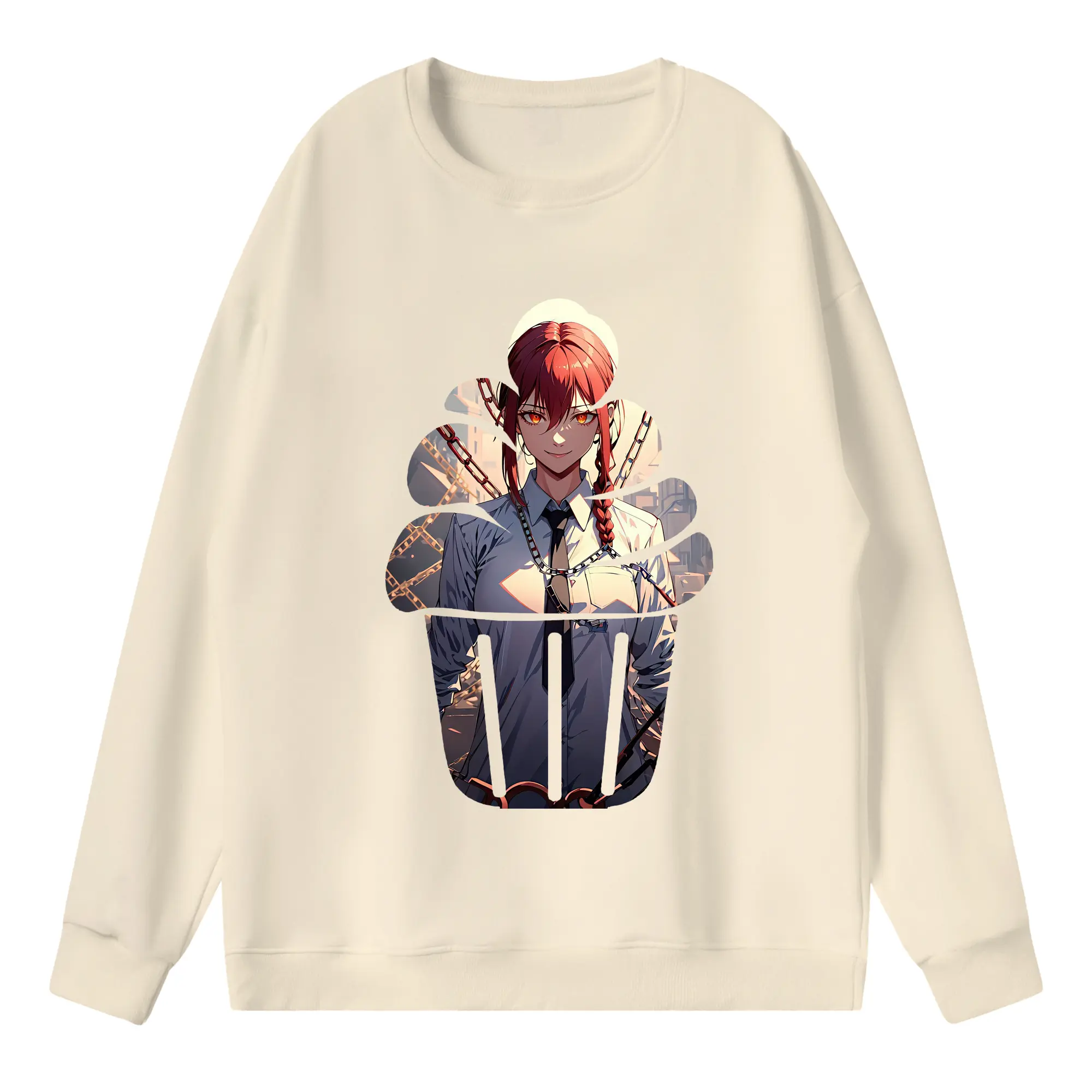 チェンソーマン グッズ,マキマ - 高品質 クルーネック スウェット ・ コットン59% ポリエステル41% ・ ユニセックス 長袖 トレーナー ・ カジュアル デイリー スポーツ 散歩用