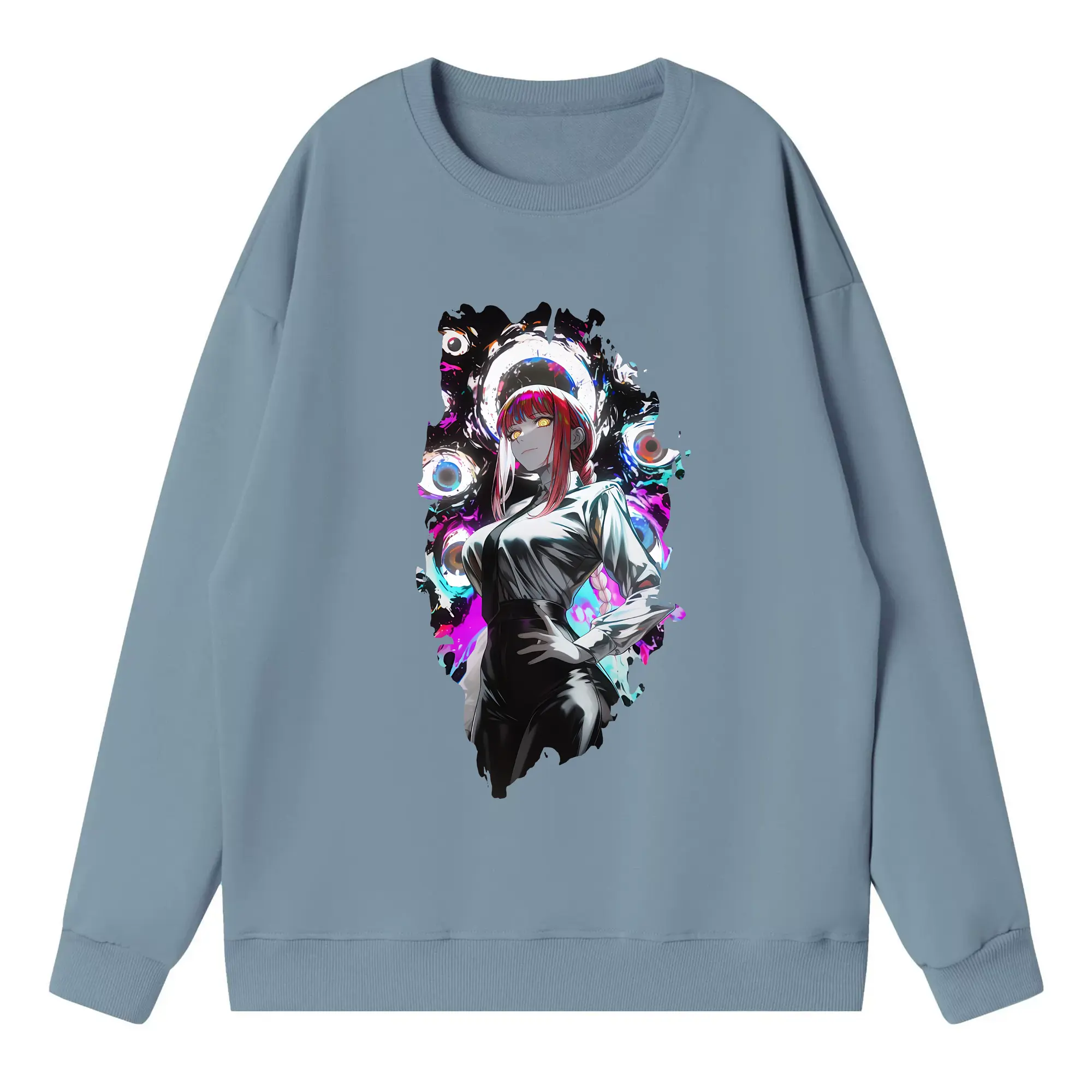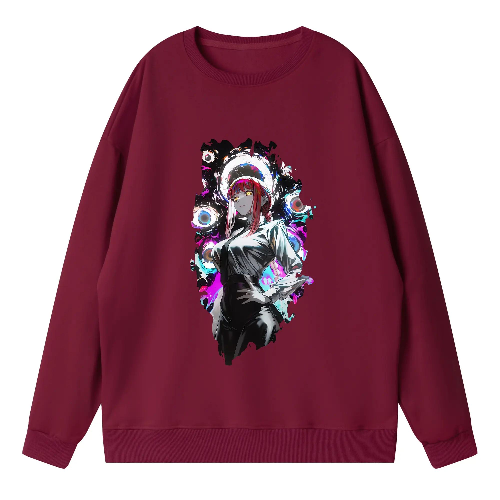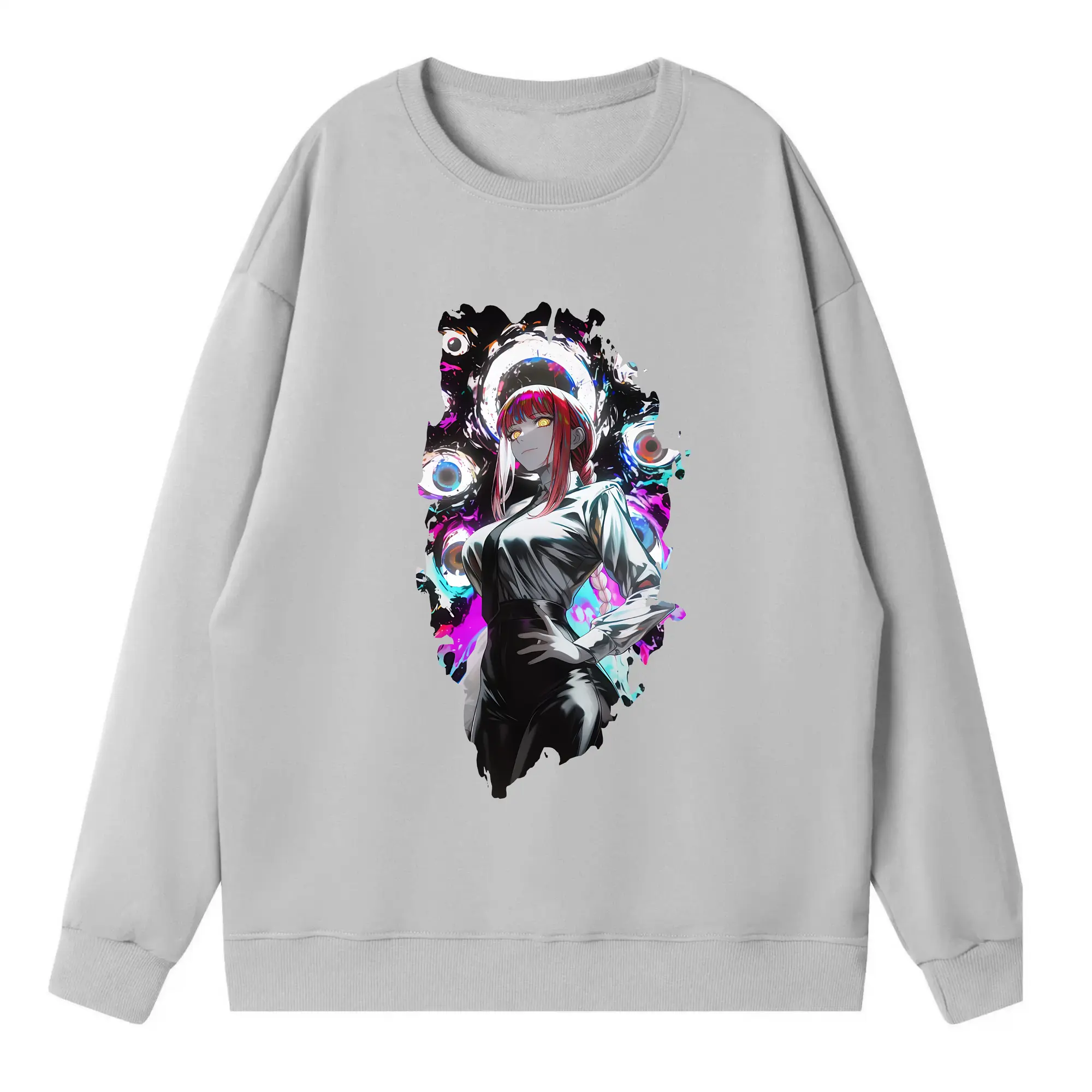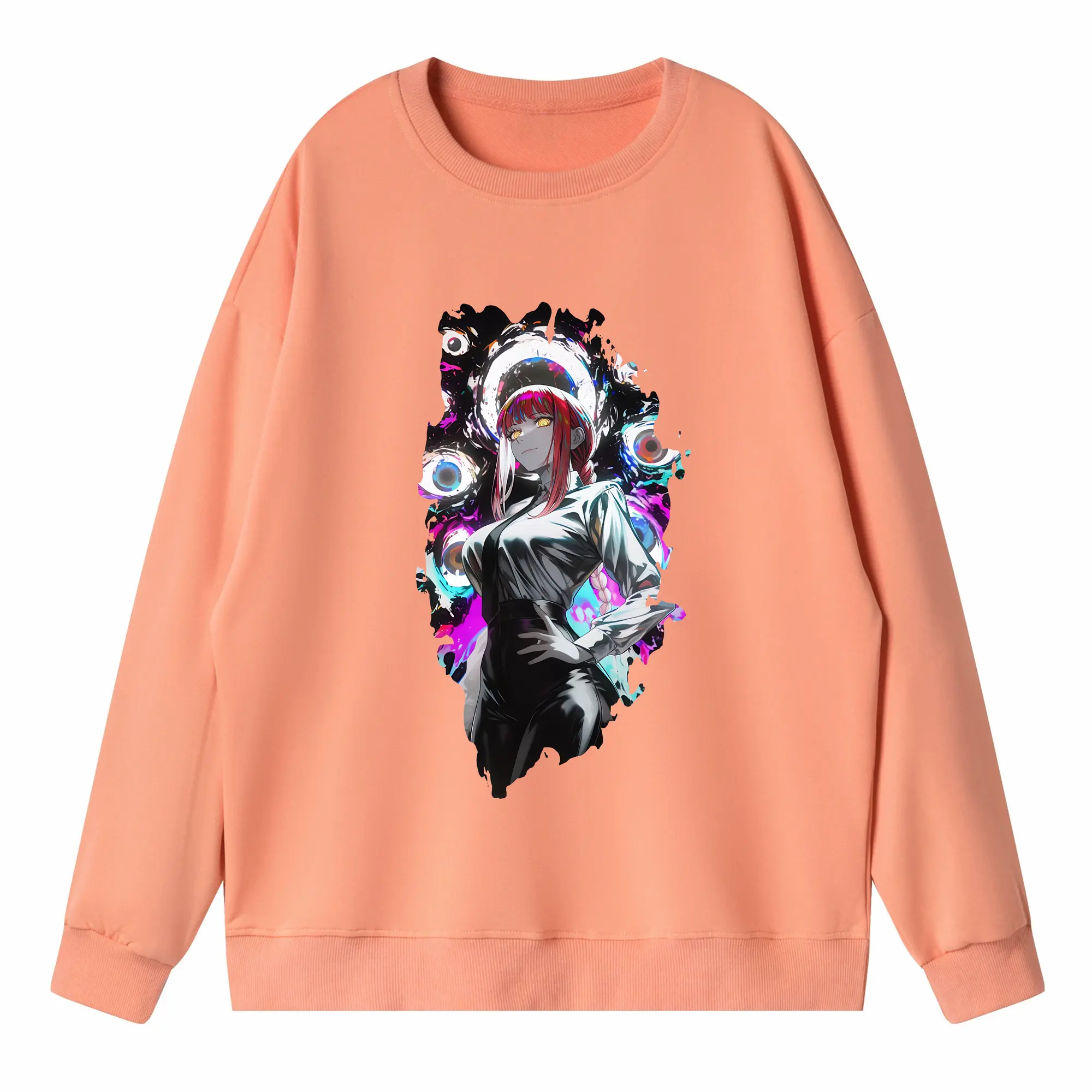 チェンソーマン グッズ,マキマ - 高品質 クルーネック スウェット ・ コットン59% ポリエステル41% ・ ユニセックス 長袖 トレーナー ・ カジュアル デイリー スポーツ 散歩用
