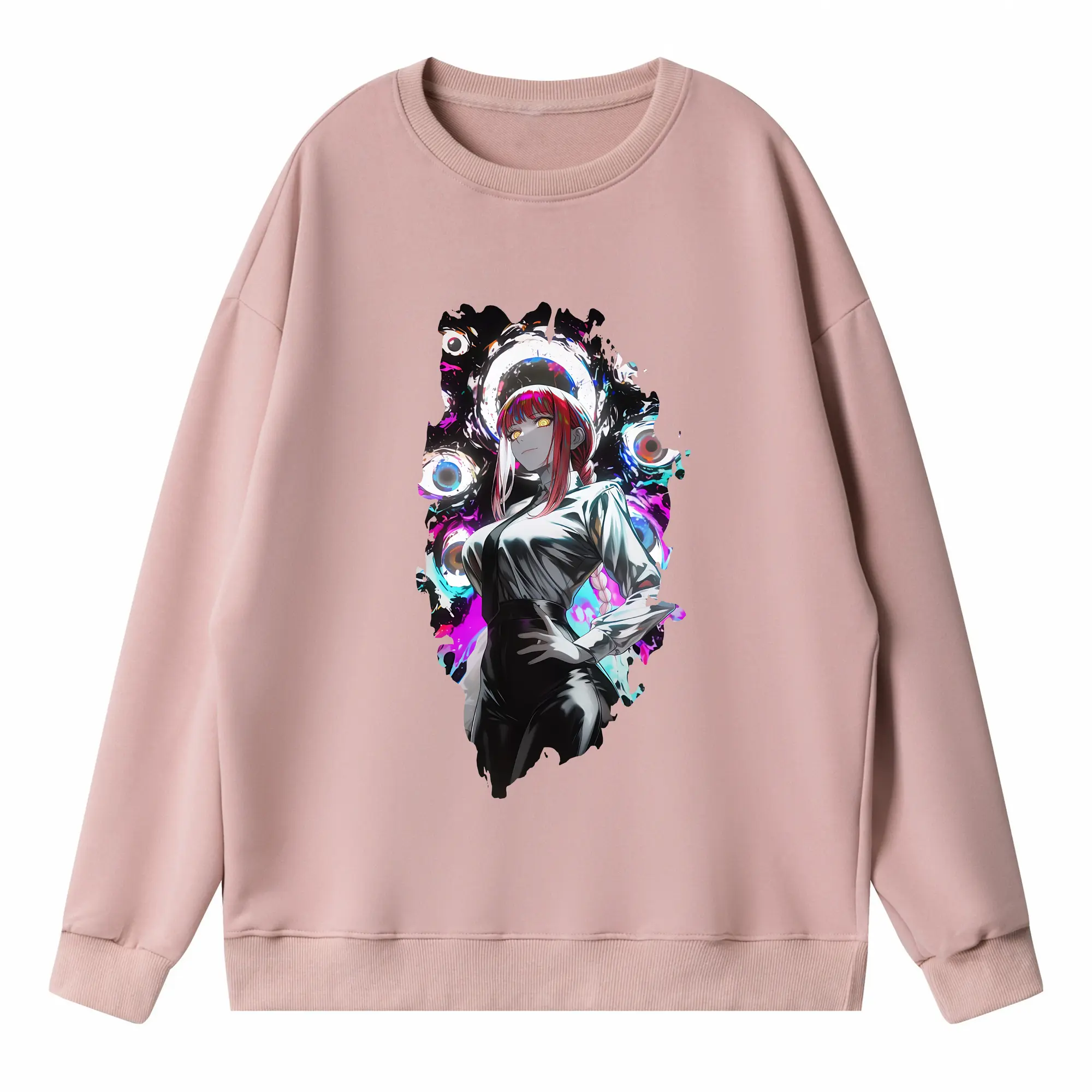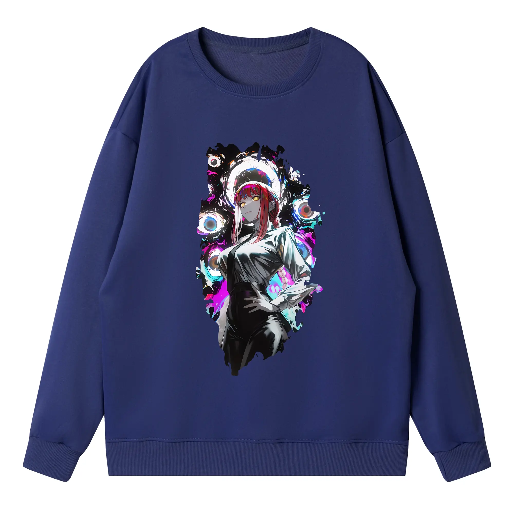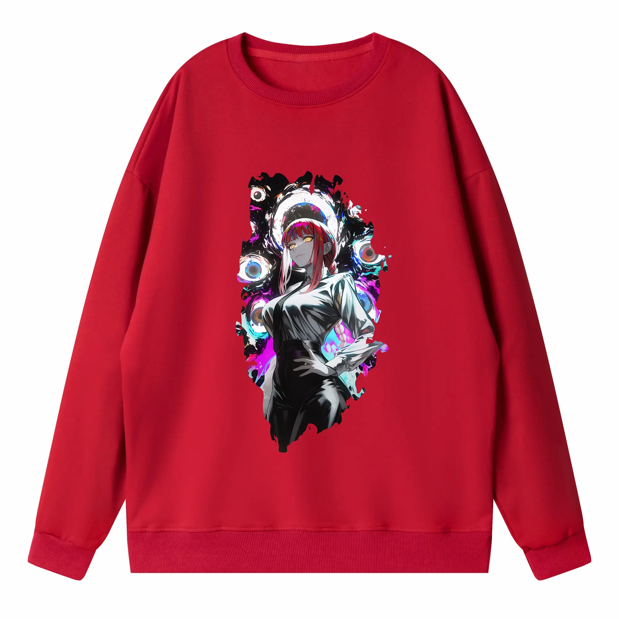 チェンソーマン グッズ,マキマ - 高品質 クルーネック スウェット ・ コットン59% ポリエステル41% ・ ユニセックス 長袖 トレーナー ・ カジュアル デイリー スポーツ 散歩用