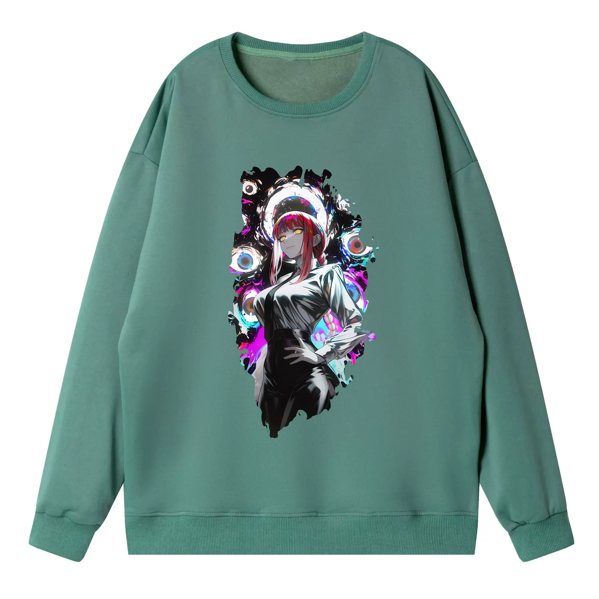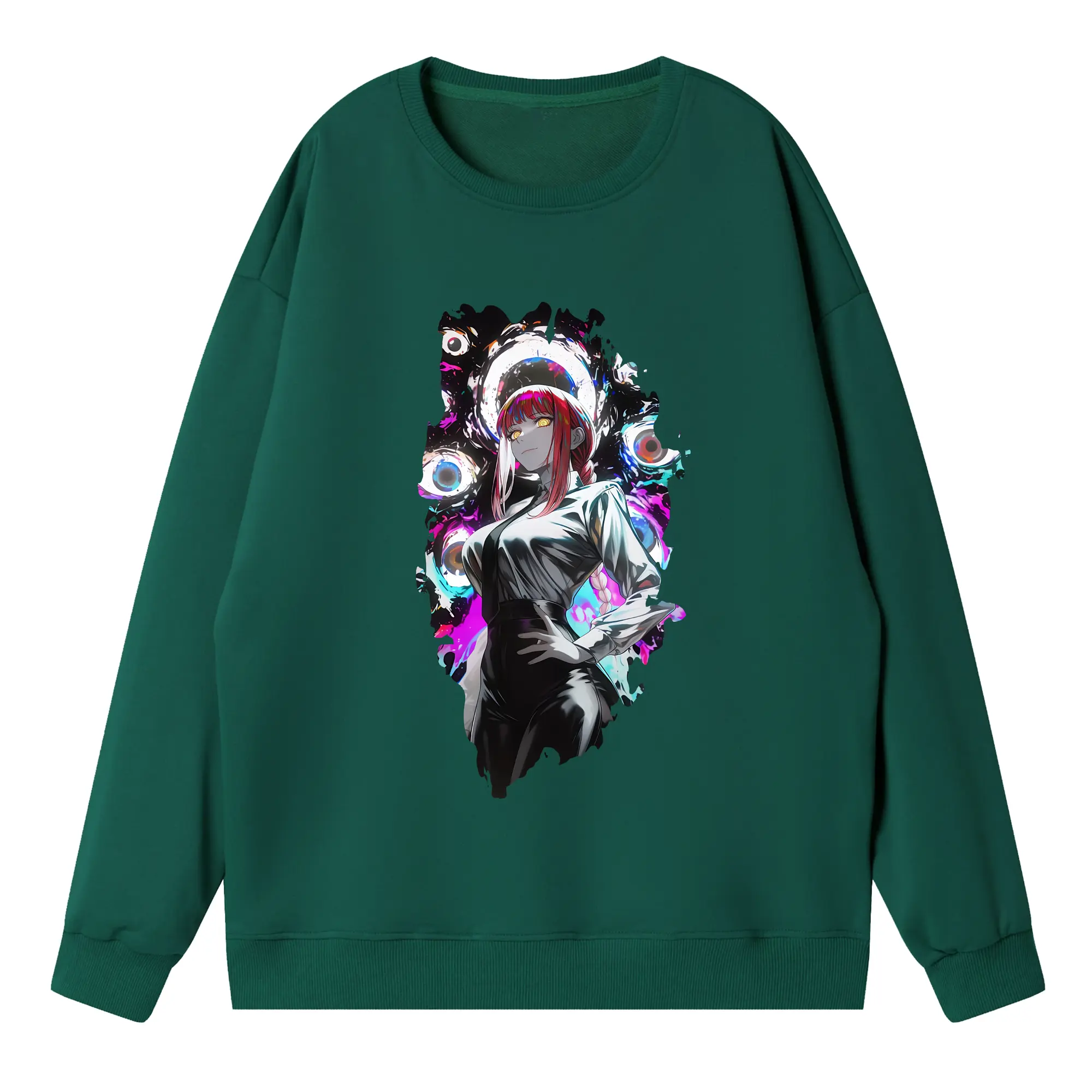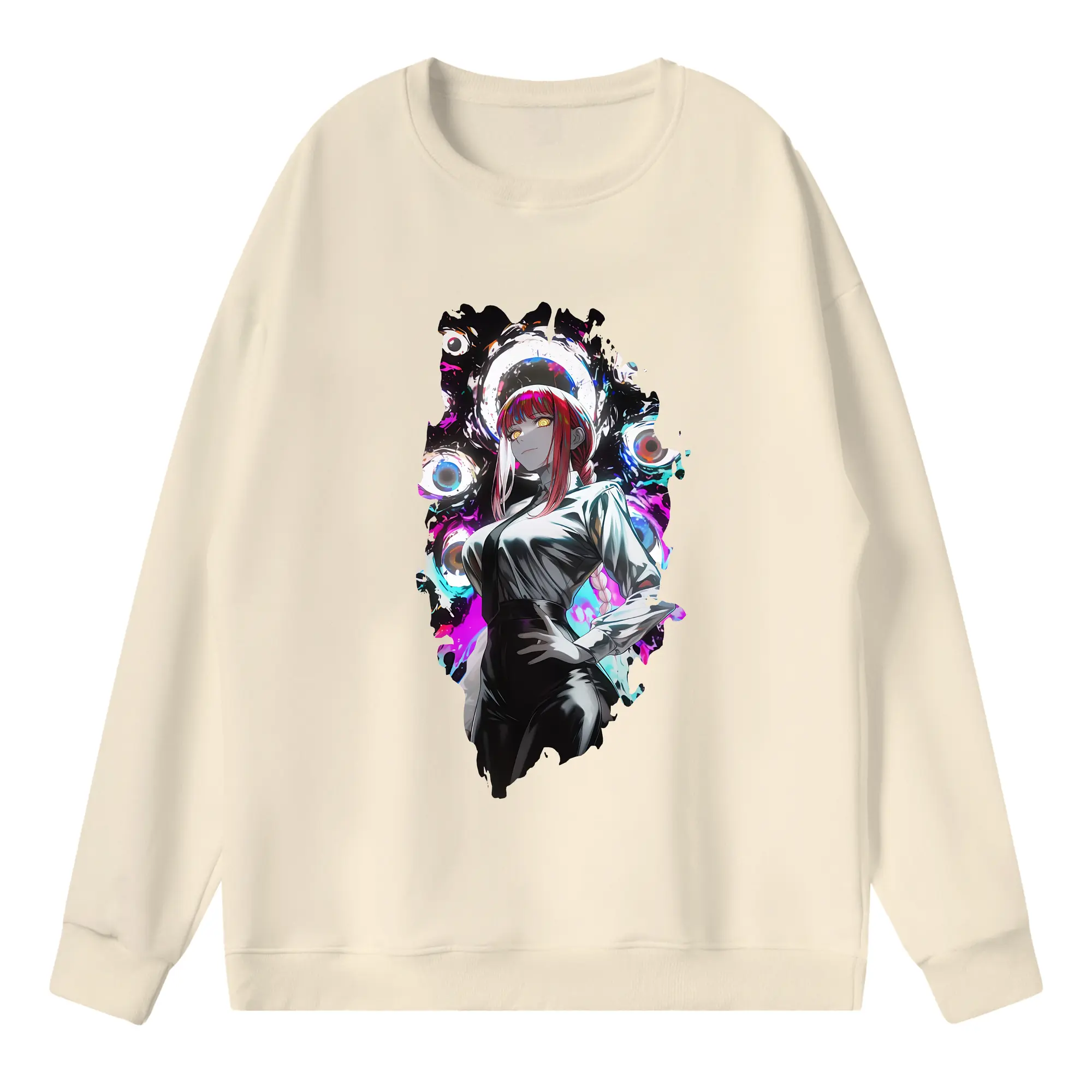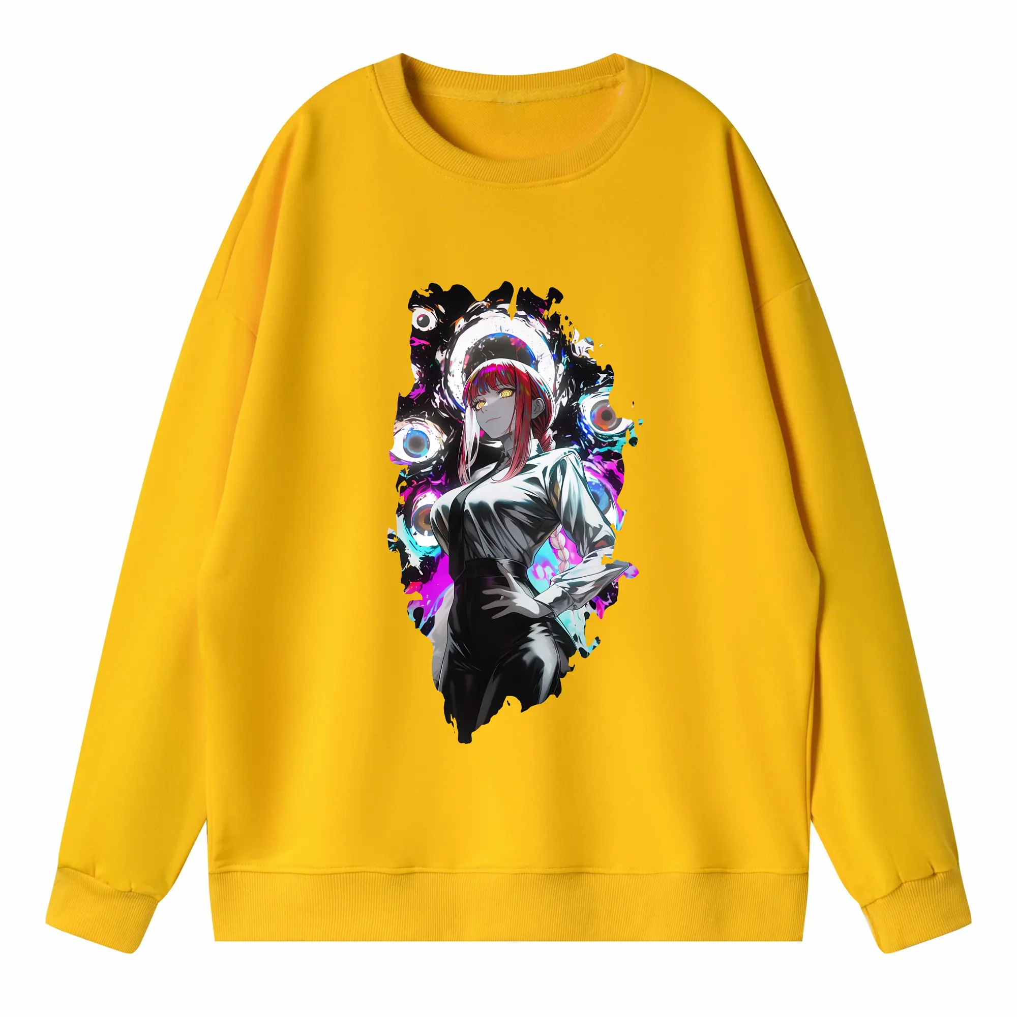 チェンソーマン グッズ,マキマ - 高品質 クルーネック スウェット ・ コットン59% ポリエステル41% ・ ユニセックス 長袖 トレーナー ・ カジュアル デイリー スポーツ 散歩用