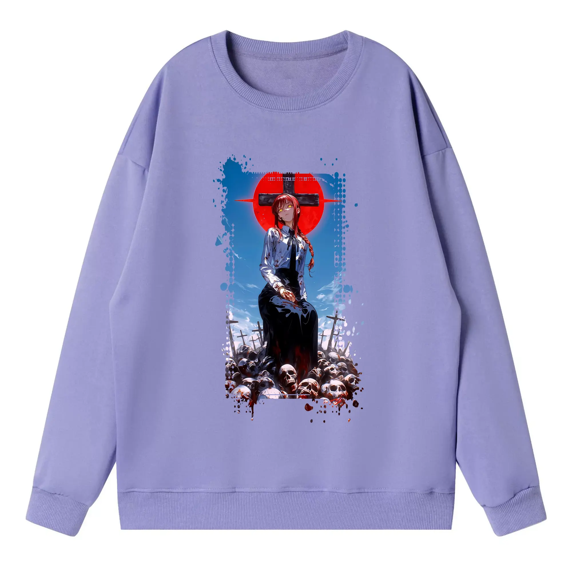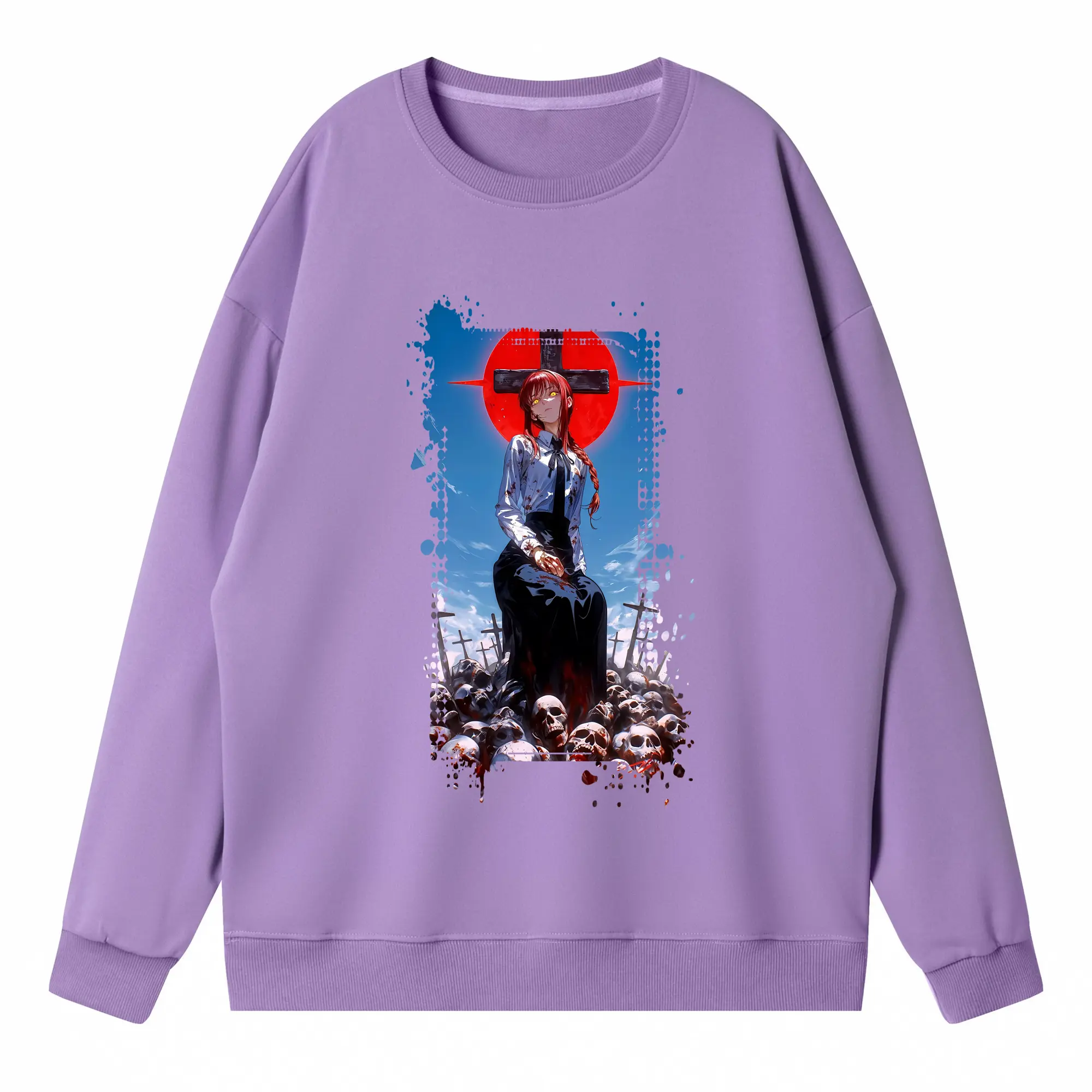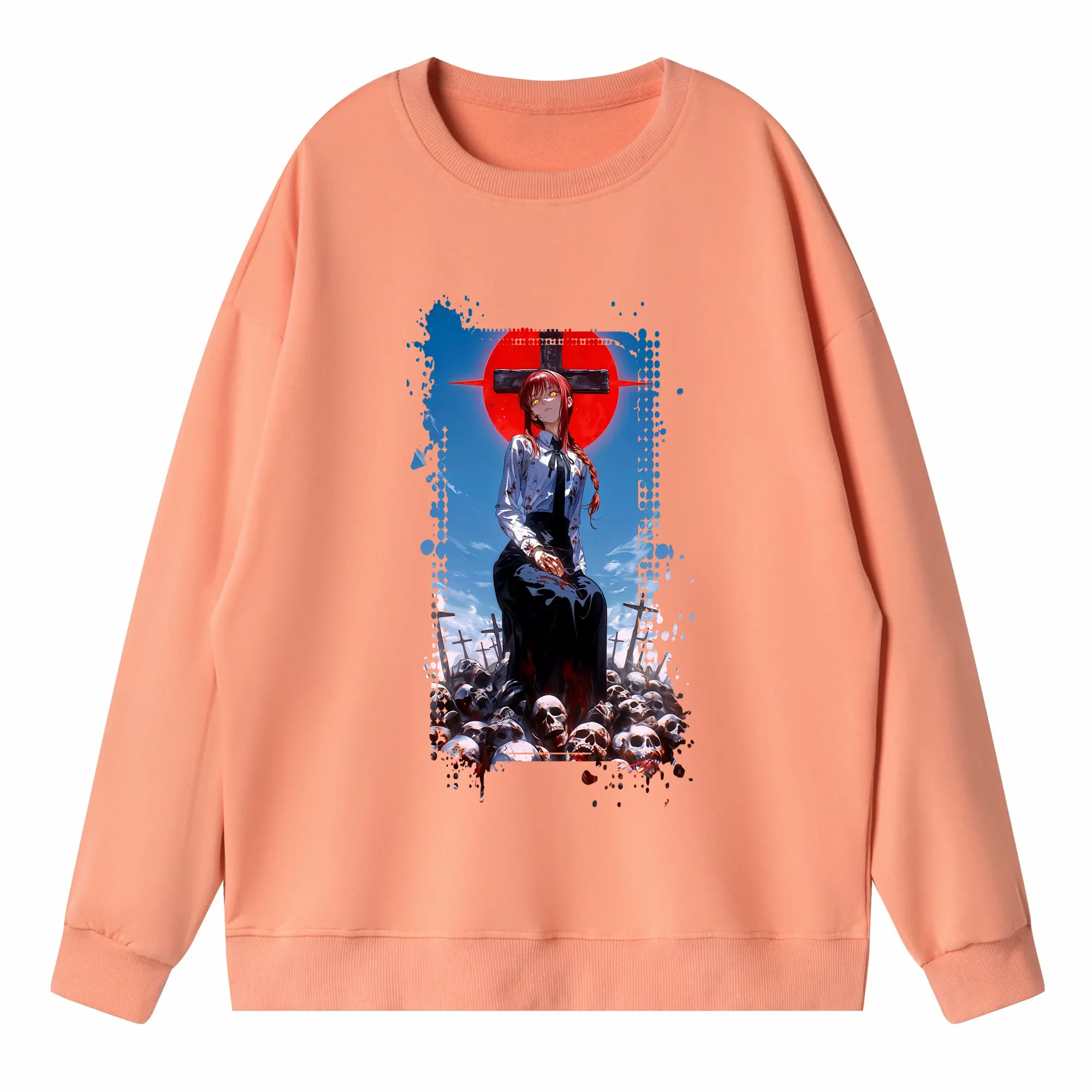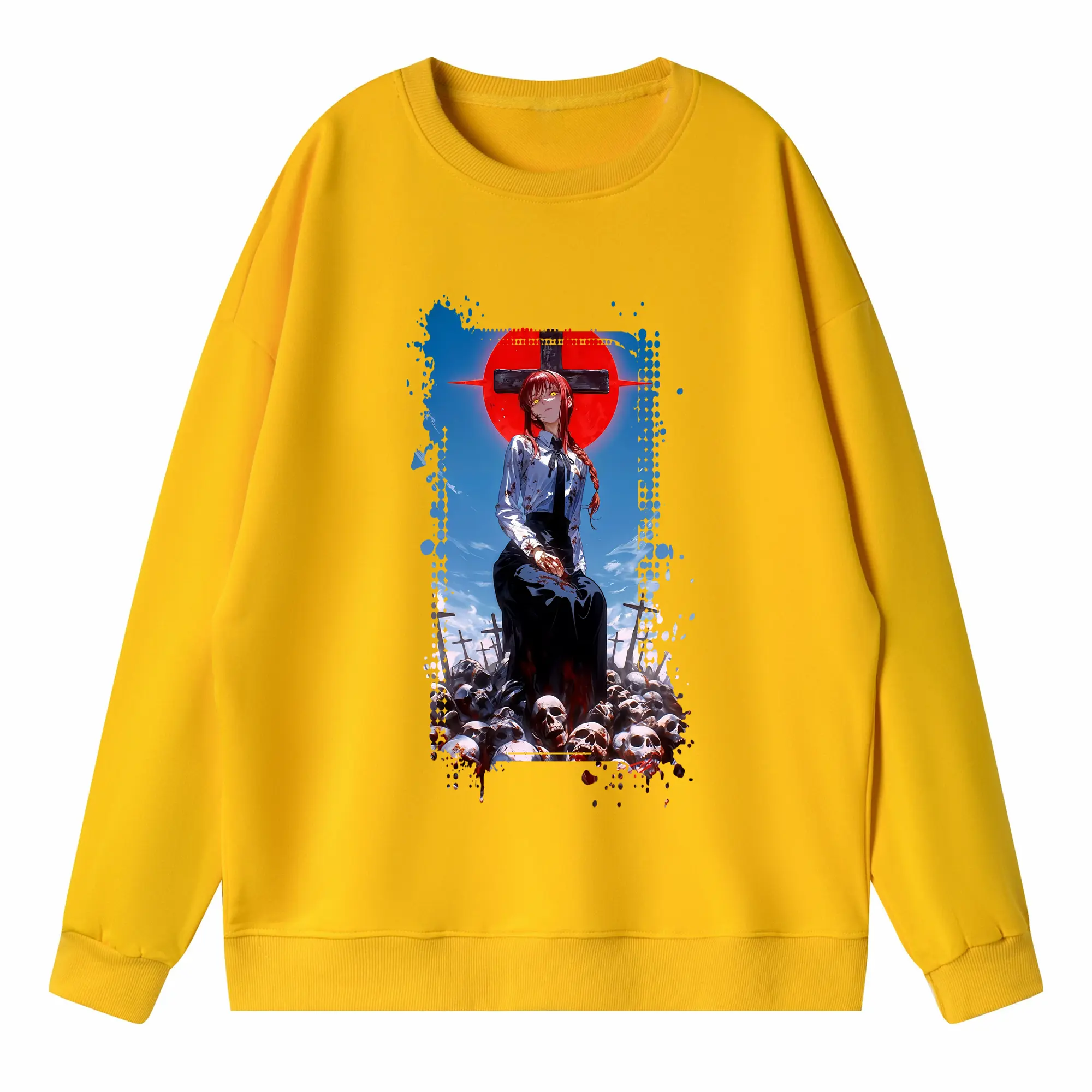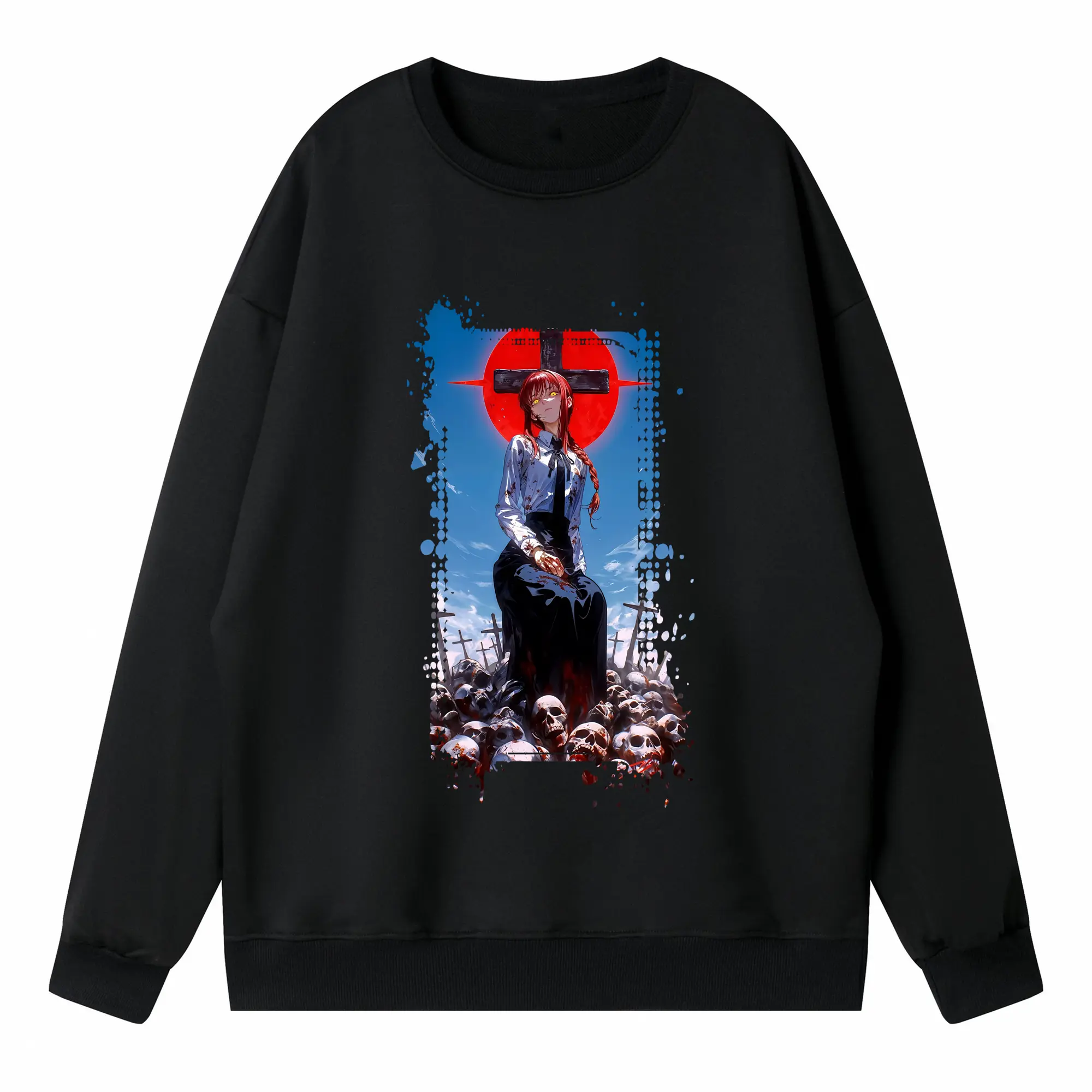 チェンソーマン グッズ,マキマ - 高品質 クルーネック スウェット ・ コットン59% ポリエステル41% ・ ユニセックス 長袖 トレーナー ・ カジュアル デイリー スポーツ 散歩用