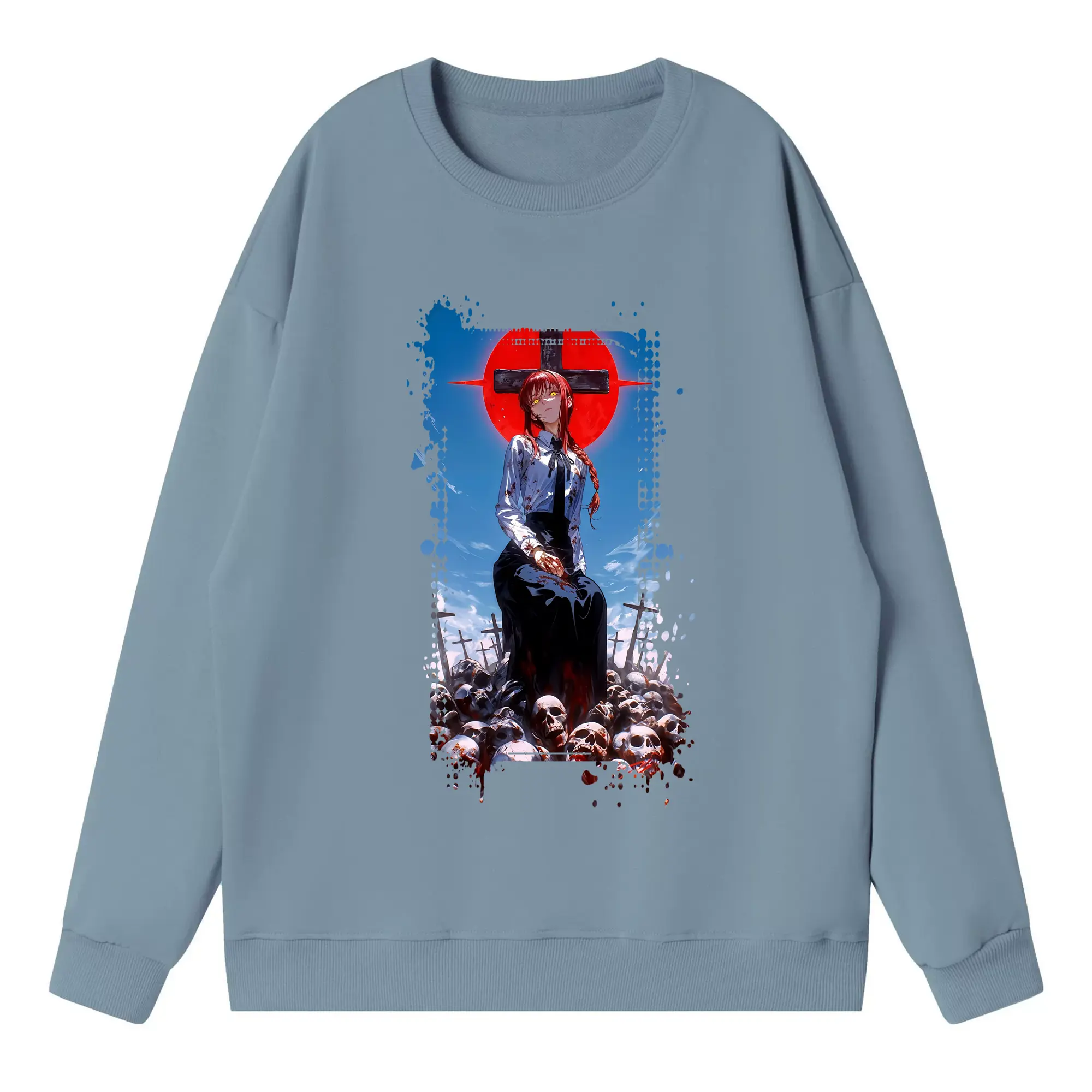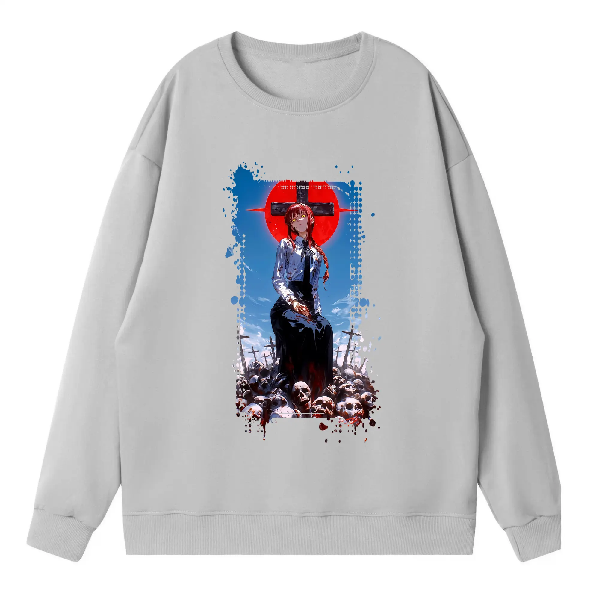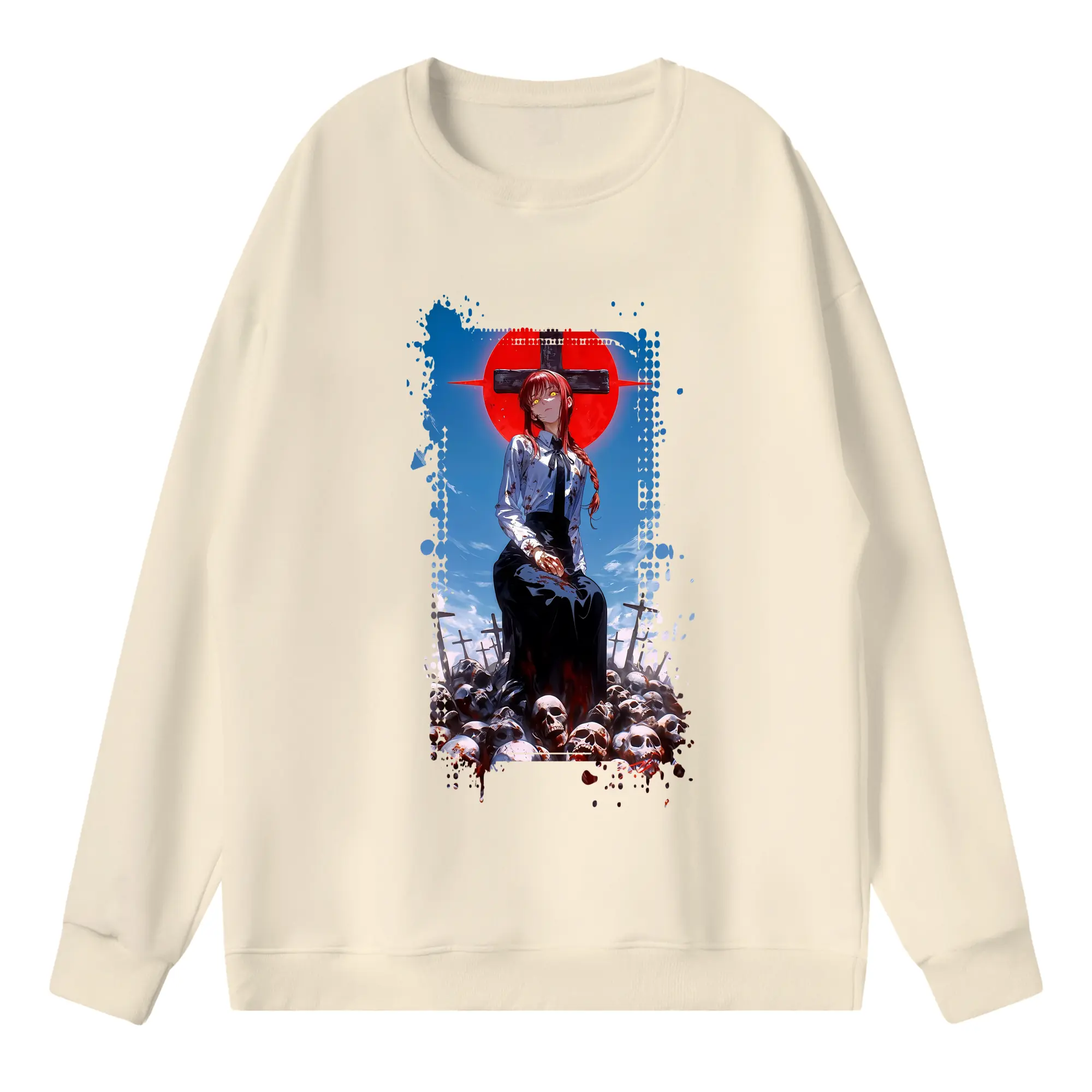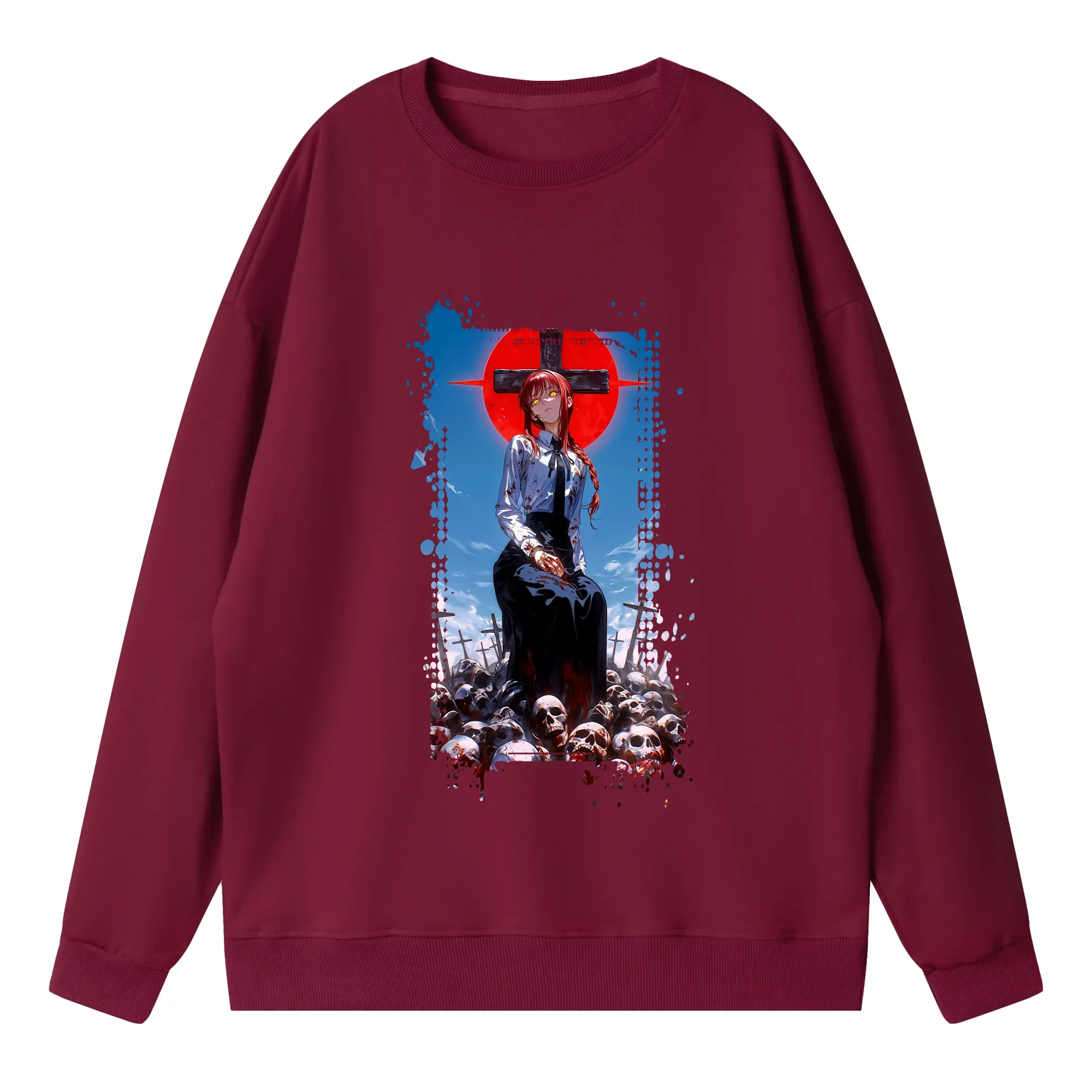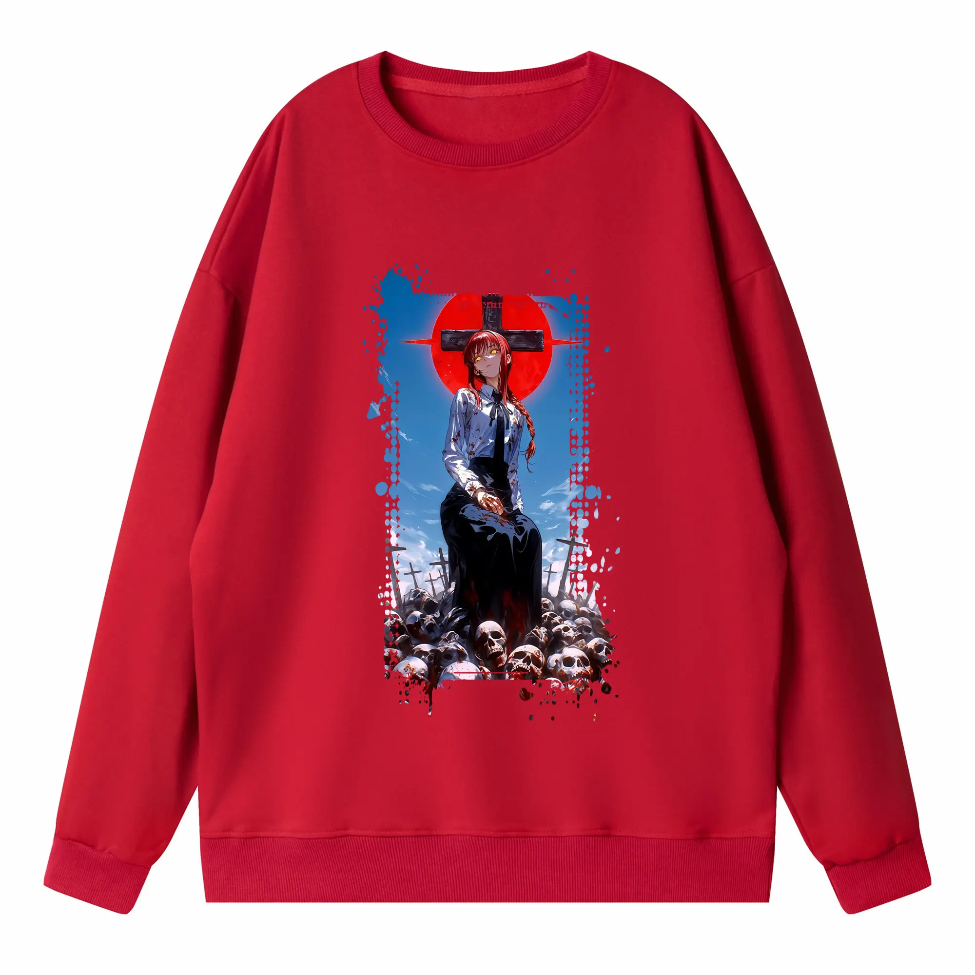 チェンソーマン グッズ,マキマ - 高品質 クルーネック スウェット ・ コットン59% ポリエステル41% ・ ユニセックス 長袖 トレーナー ・ カジュアル デイリー スポーツ 散歩用
