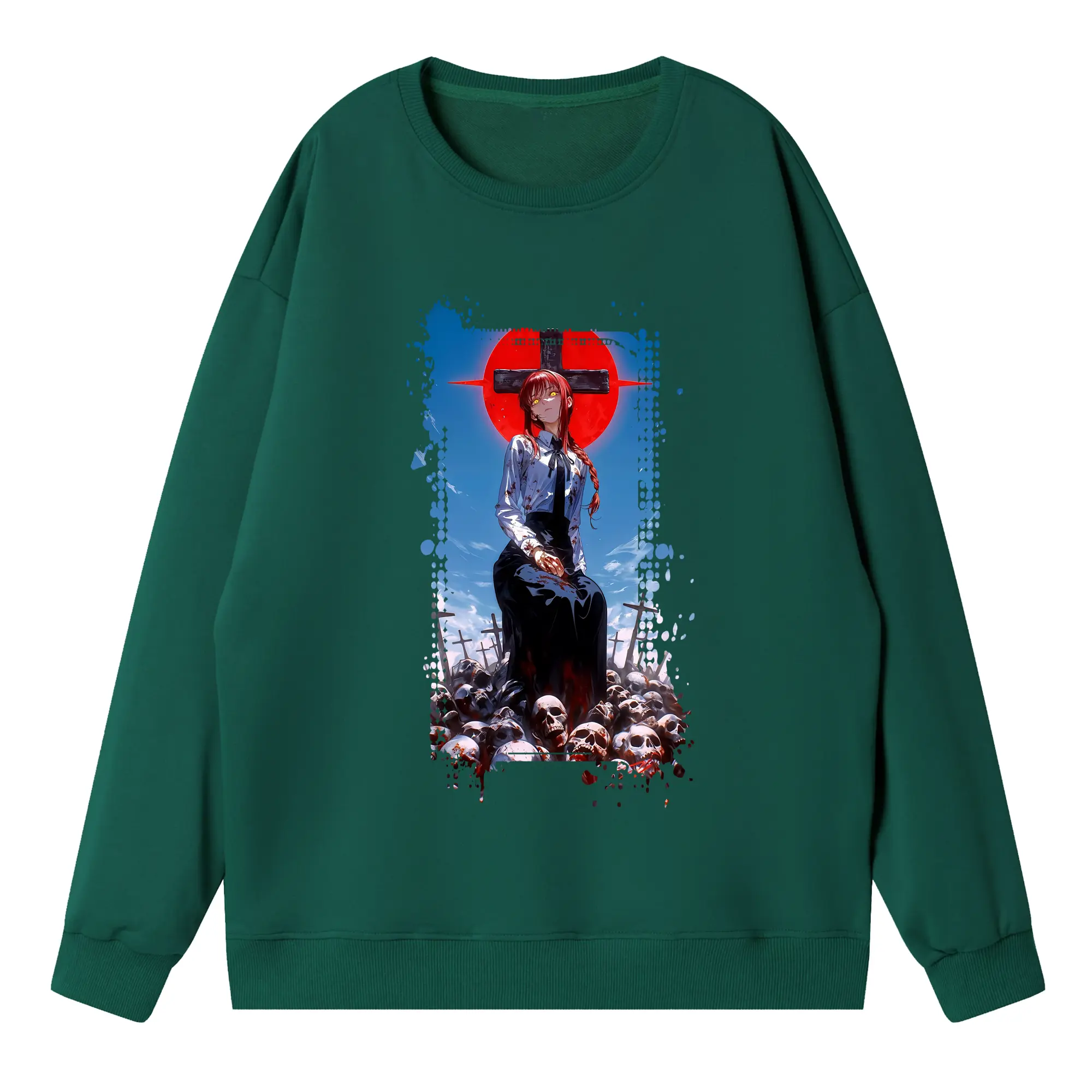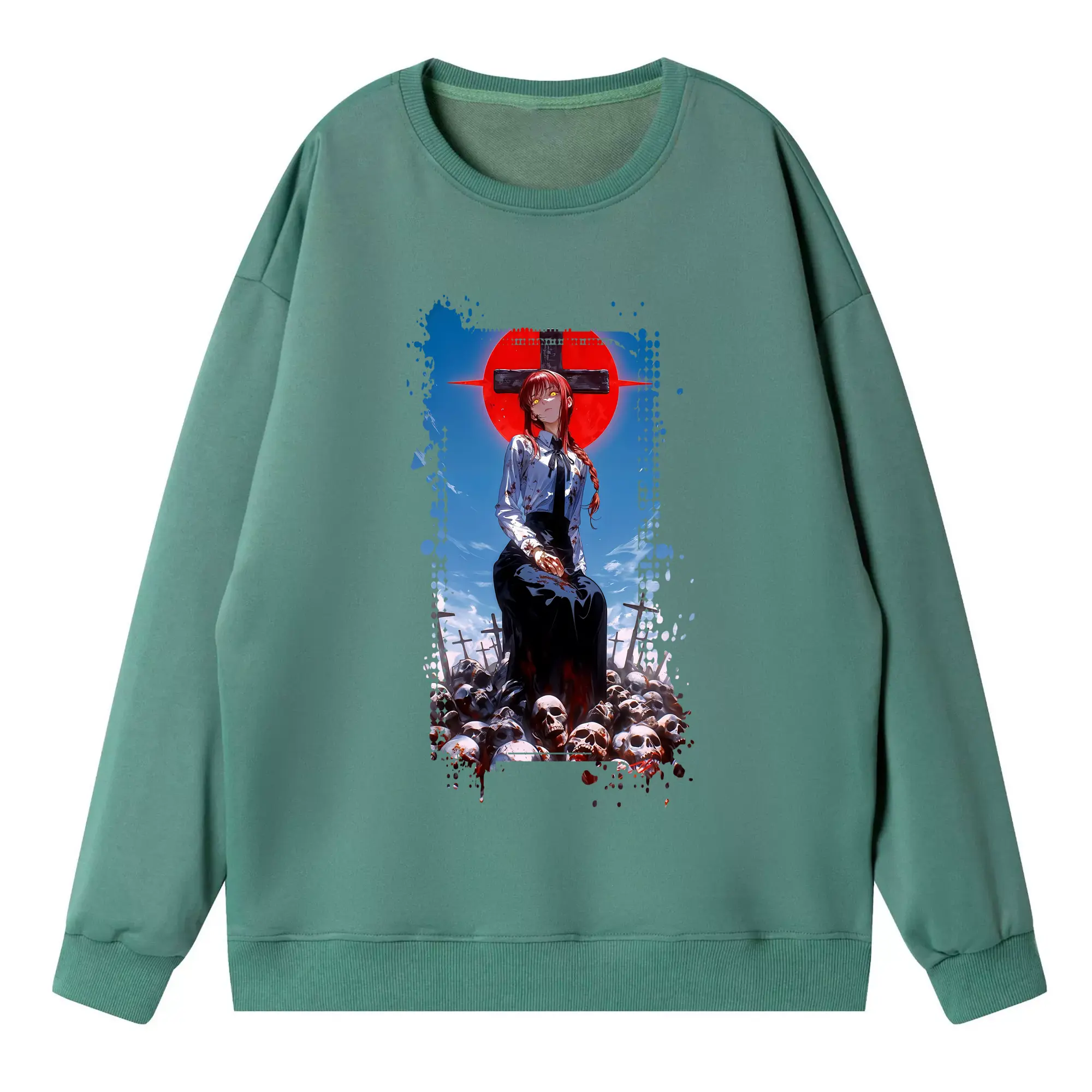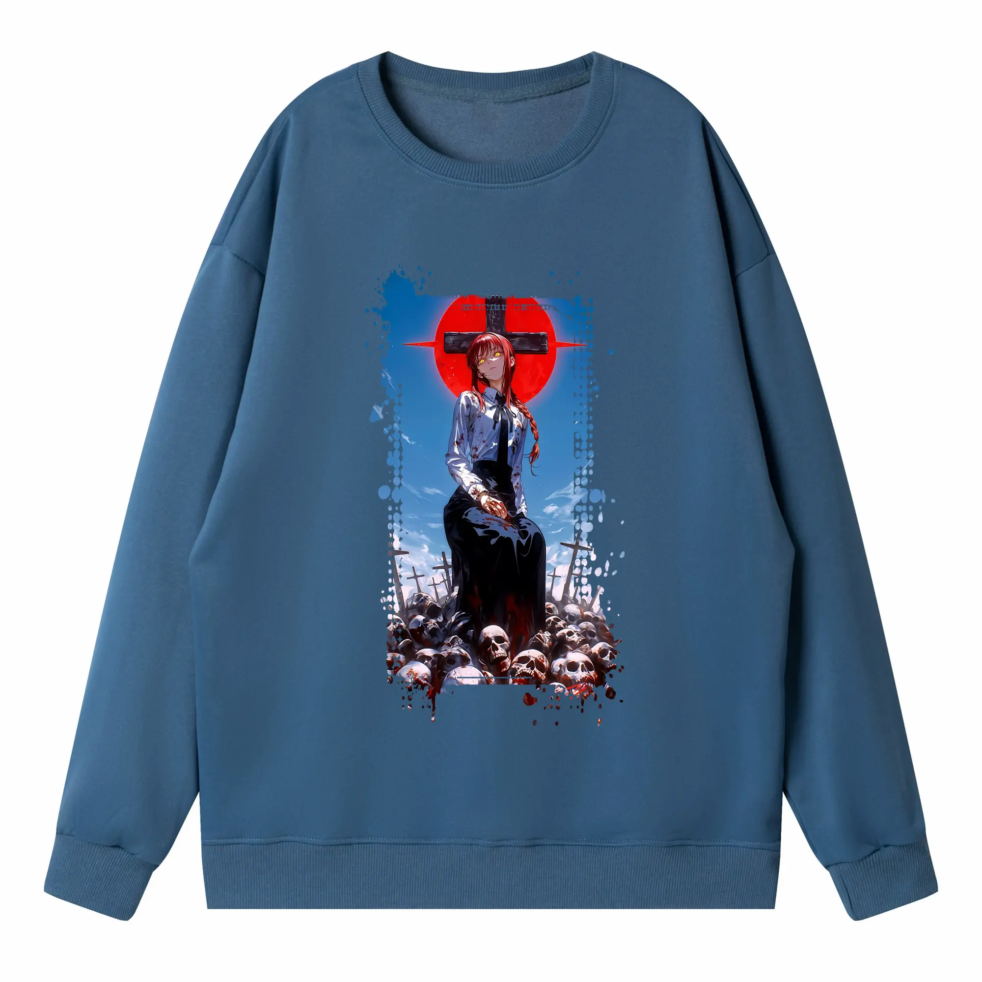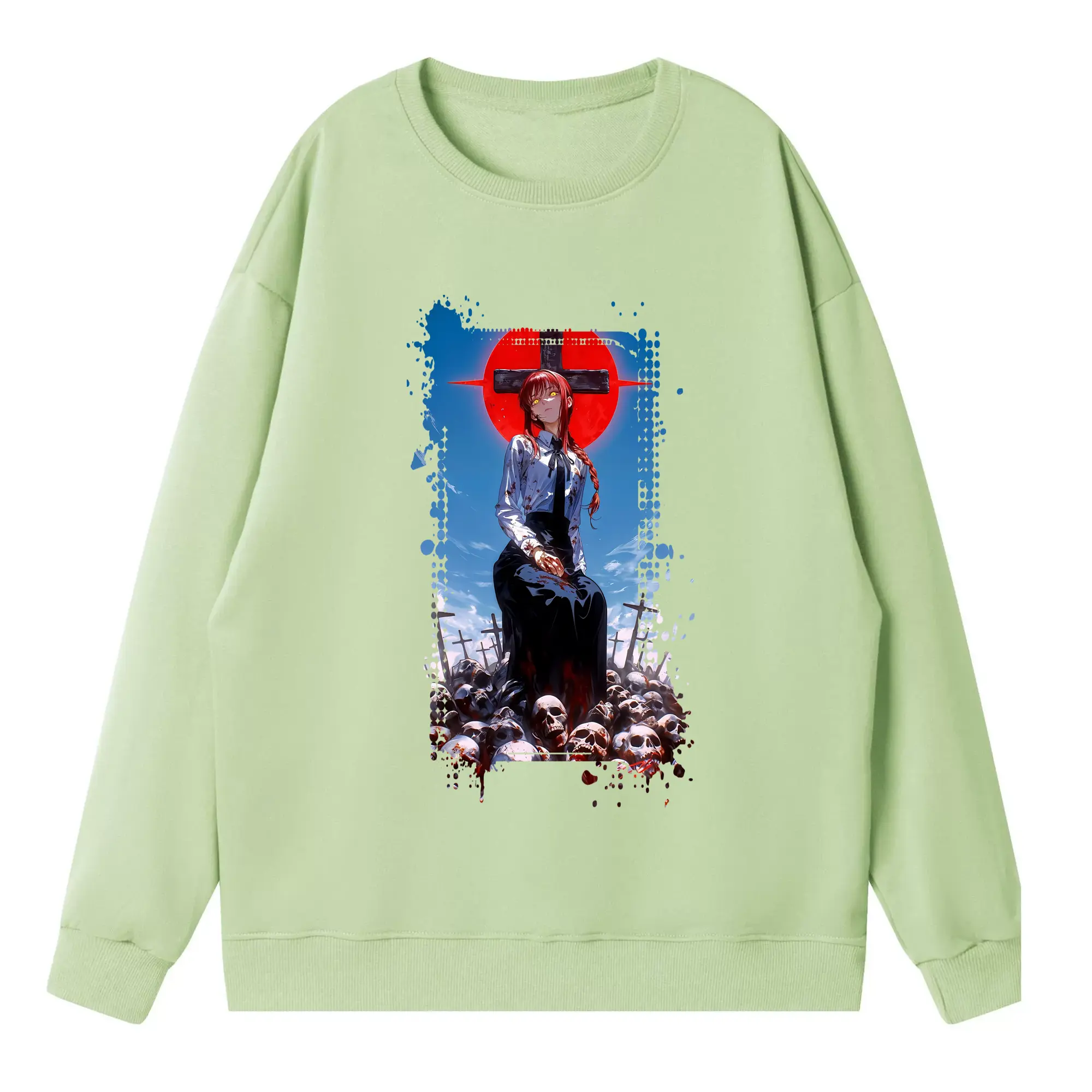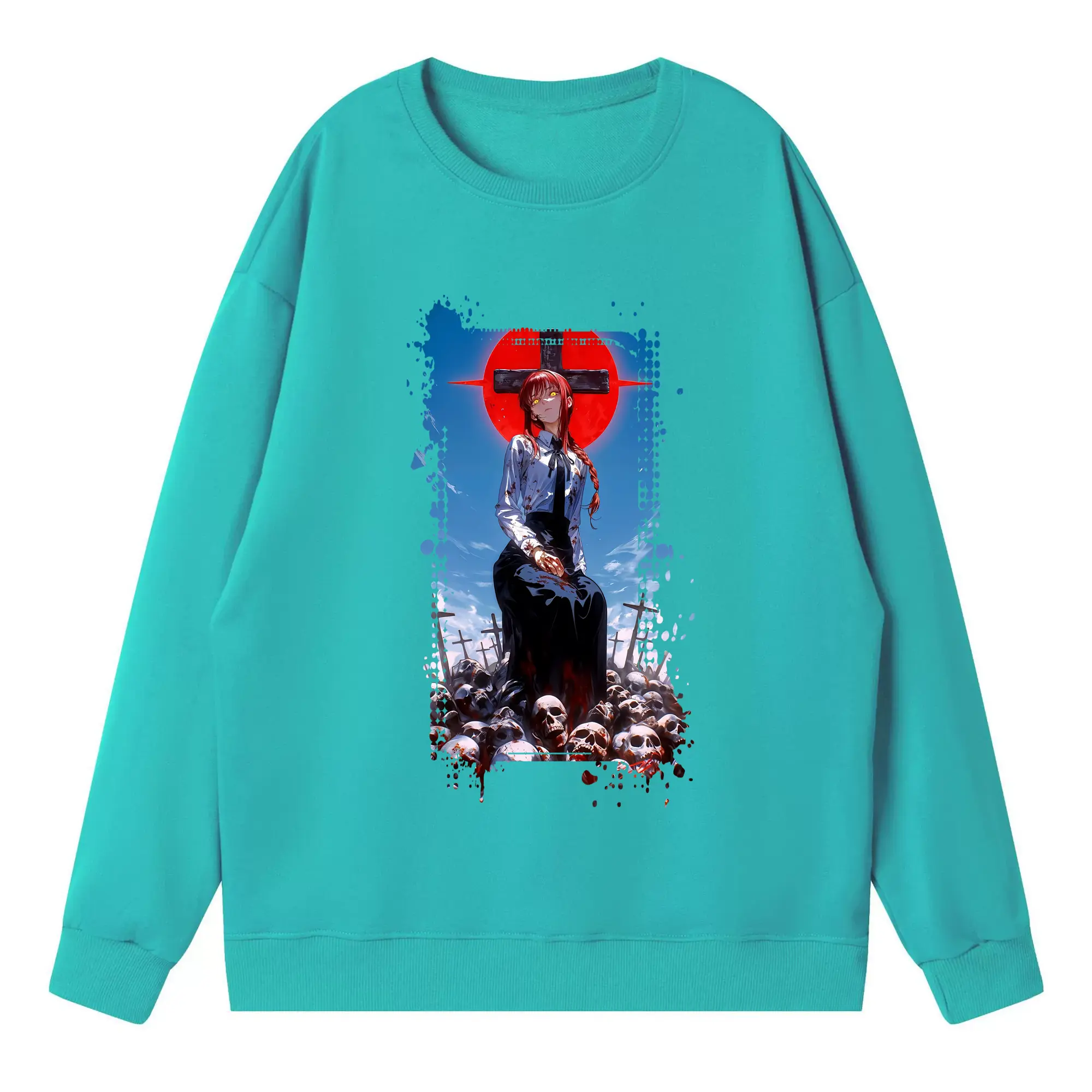 チェンソーマン グッズ,マキマ - 高品質 クルーネック スウェット ・ コットン59% ポリエステル41% ・ ユニセックス 長袖 トレーナー ・ カジュアル デイリー スポーツ 散歩用