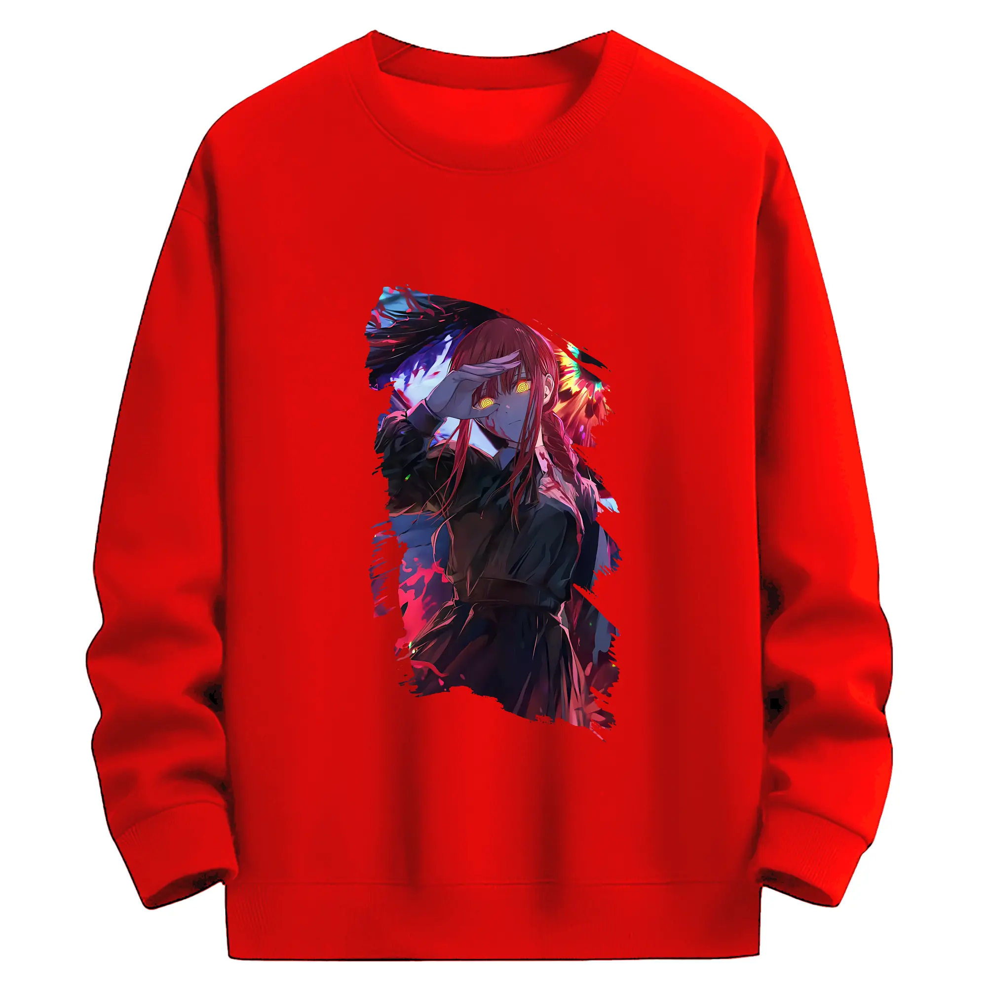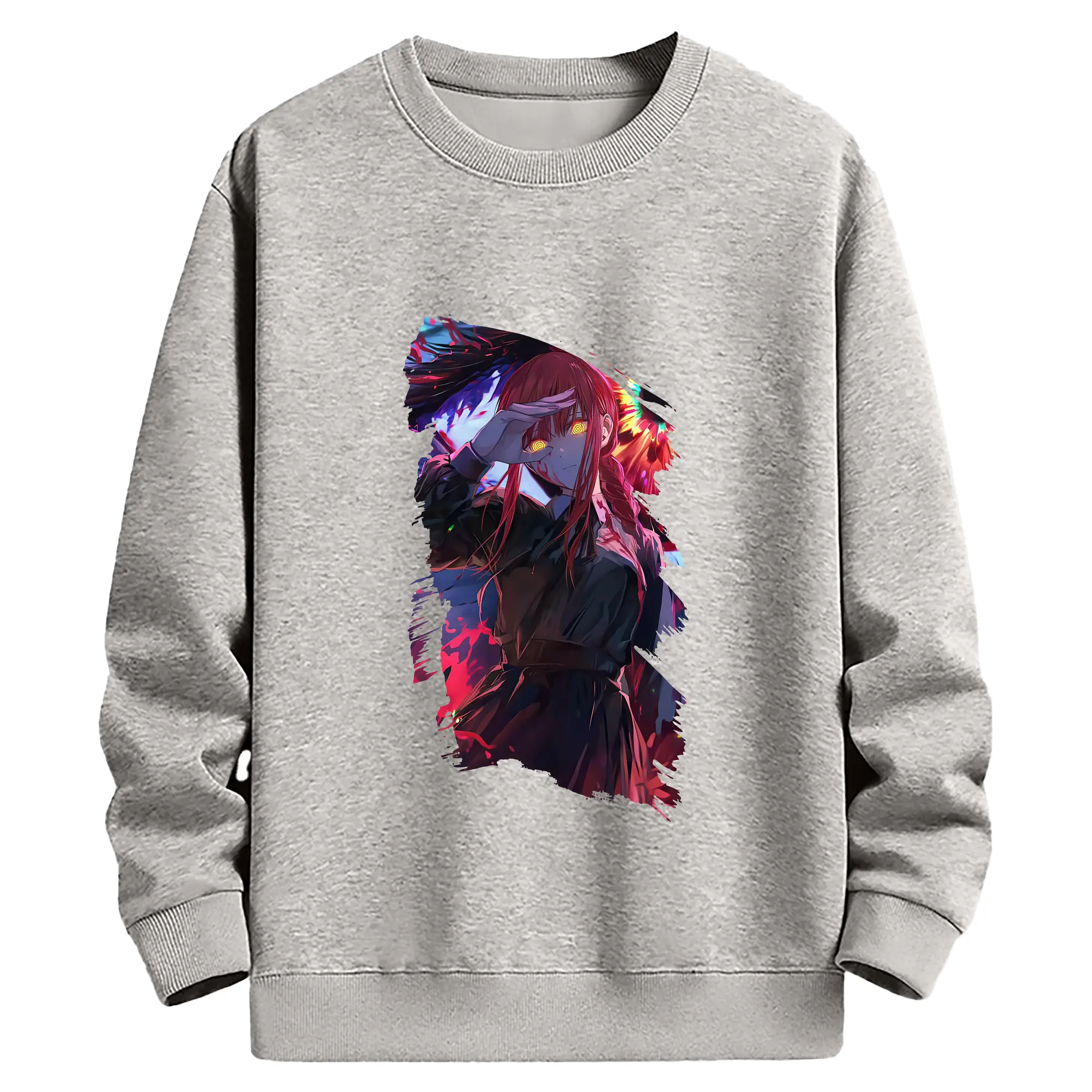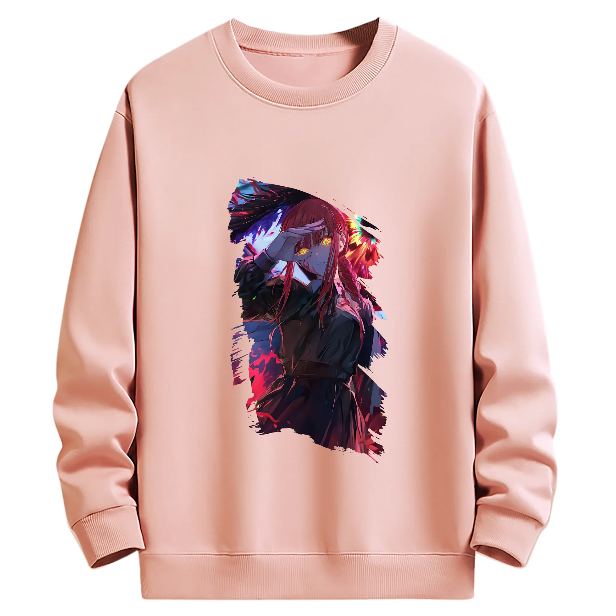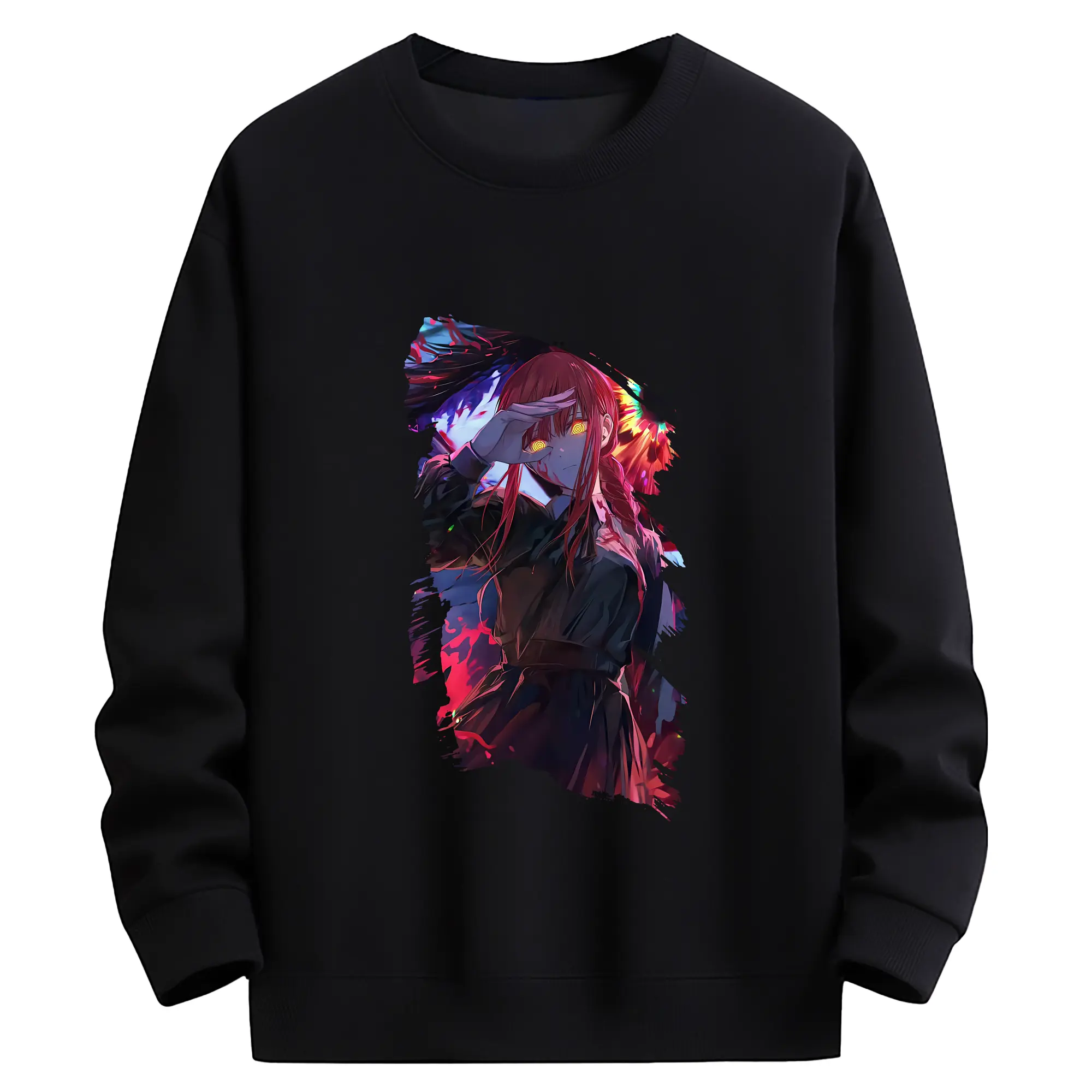 チェンソーマン グッズ,マキマ - 薄手 クルーネック スウェット 裏毛260g · ポリエステル 春秋向け カジュアル 男女兼用 · トレーナー デイリー スポーツ 散歩に最適