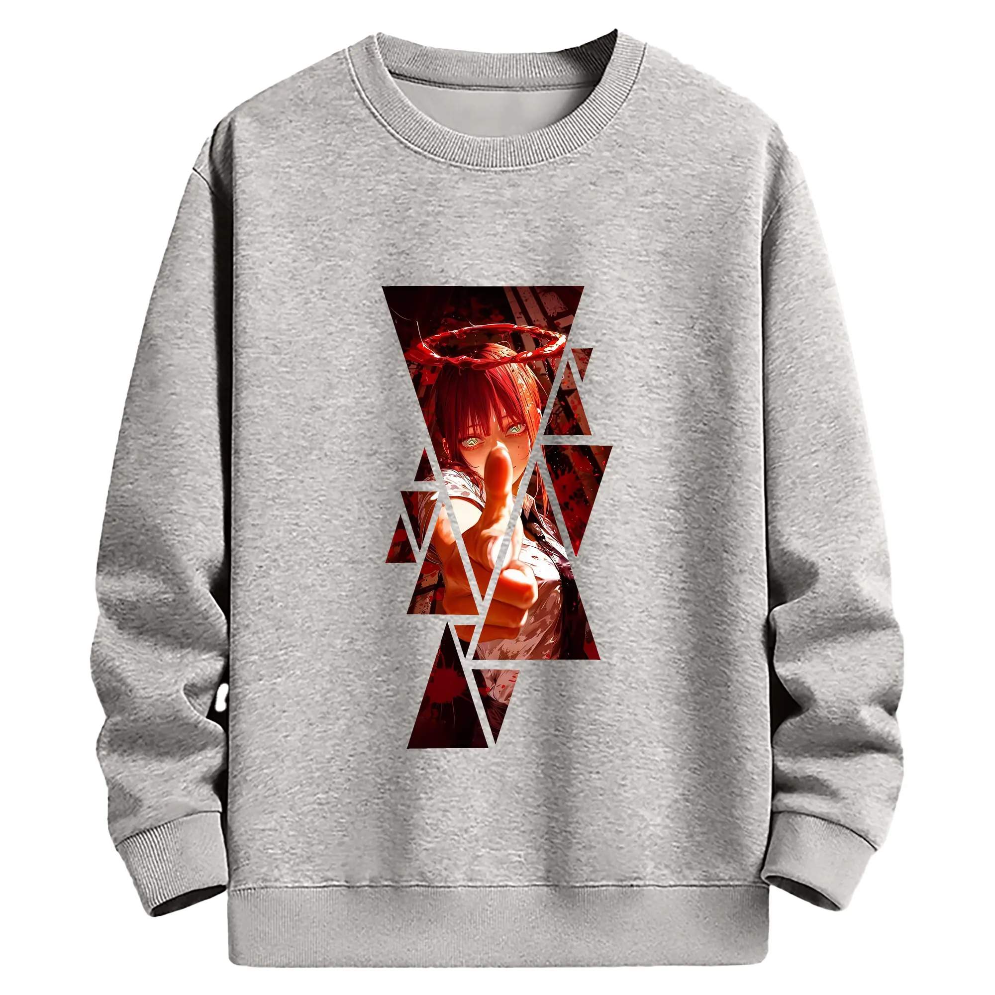 チェンソーマン グッズ,マキマ - 高品質 クルーネック スウェット ・ コットン59% ポリエステル41% ・ ユニセックス 長袖 トレーナー ・ カジュアル デイリー スポーツ 散歩用