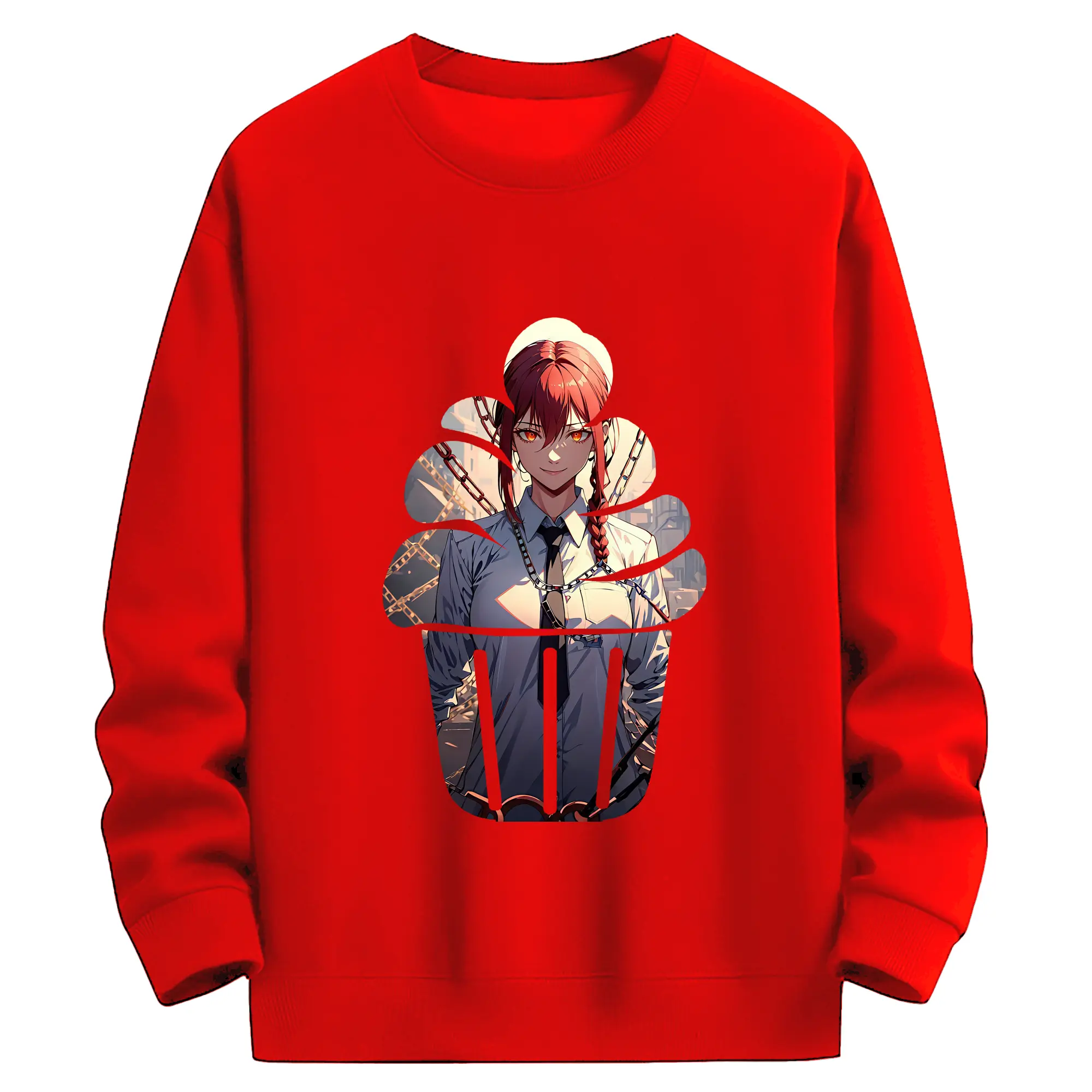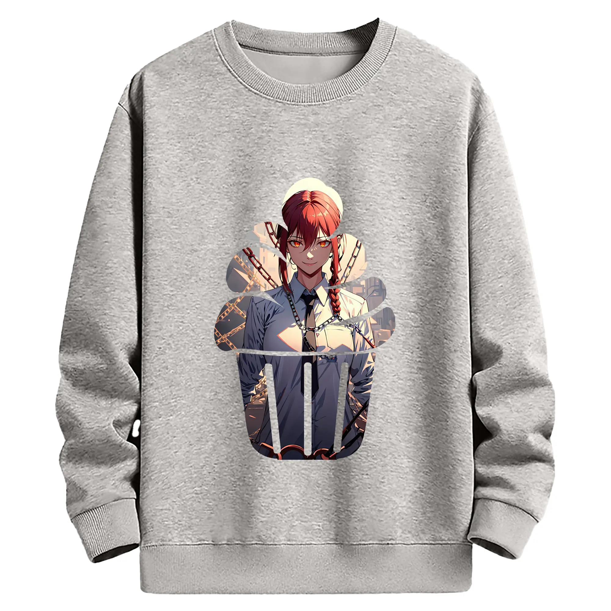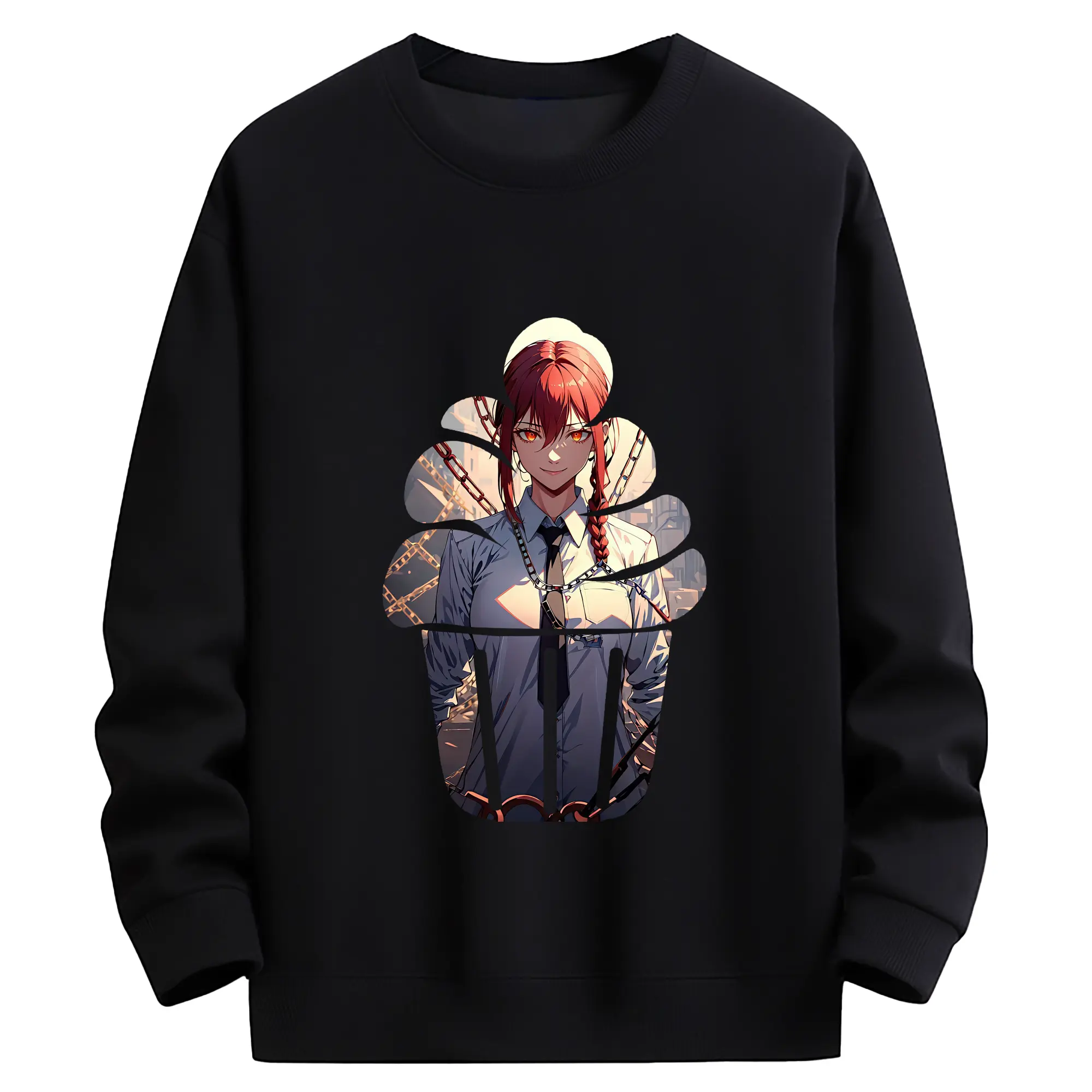 チェンソーマン グッズ,マキマ - 薄手 クルーネック スウェット 裏毛260g · ポリエステル 春秋向け カジュアル 男女兼用 · トレーナー デイリー スポーツ 散歩に最適