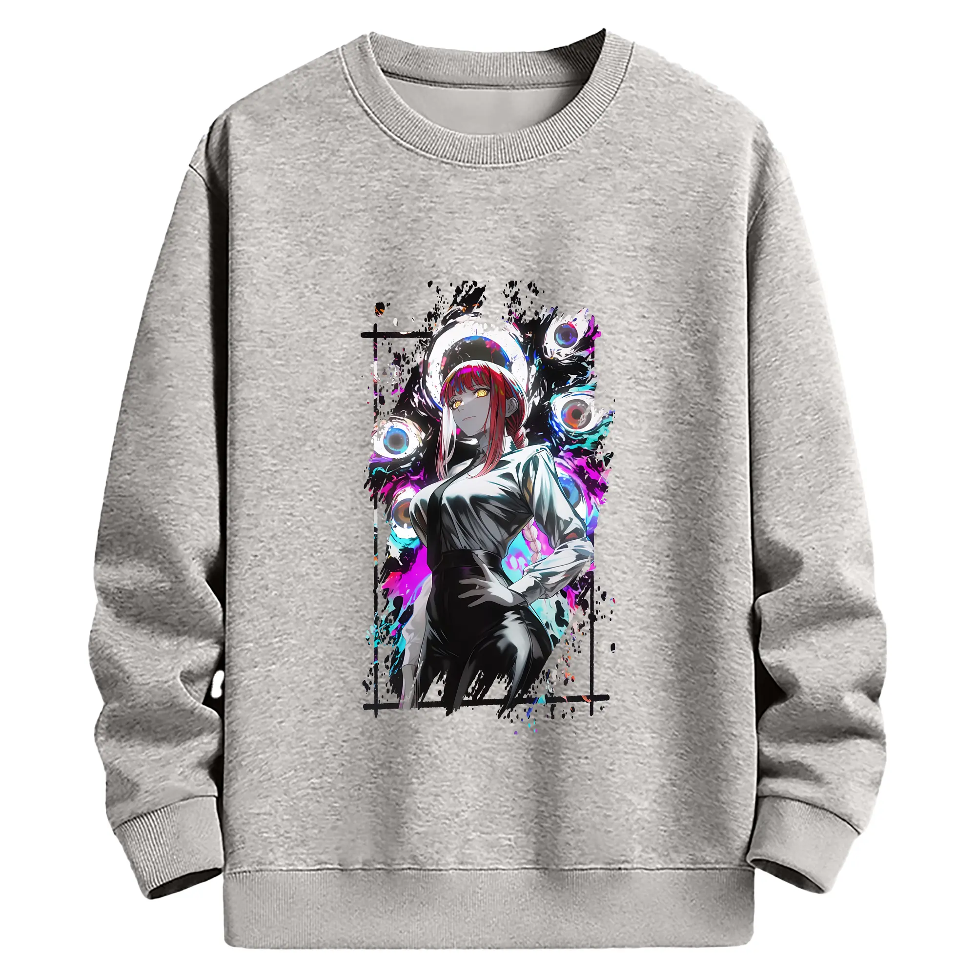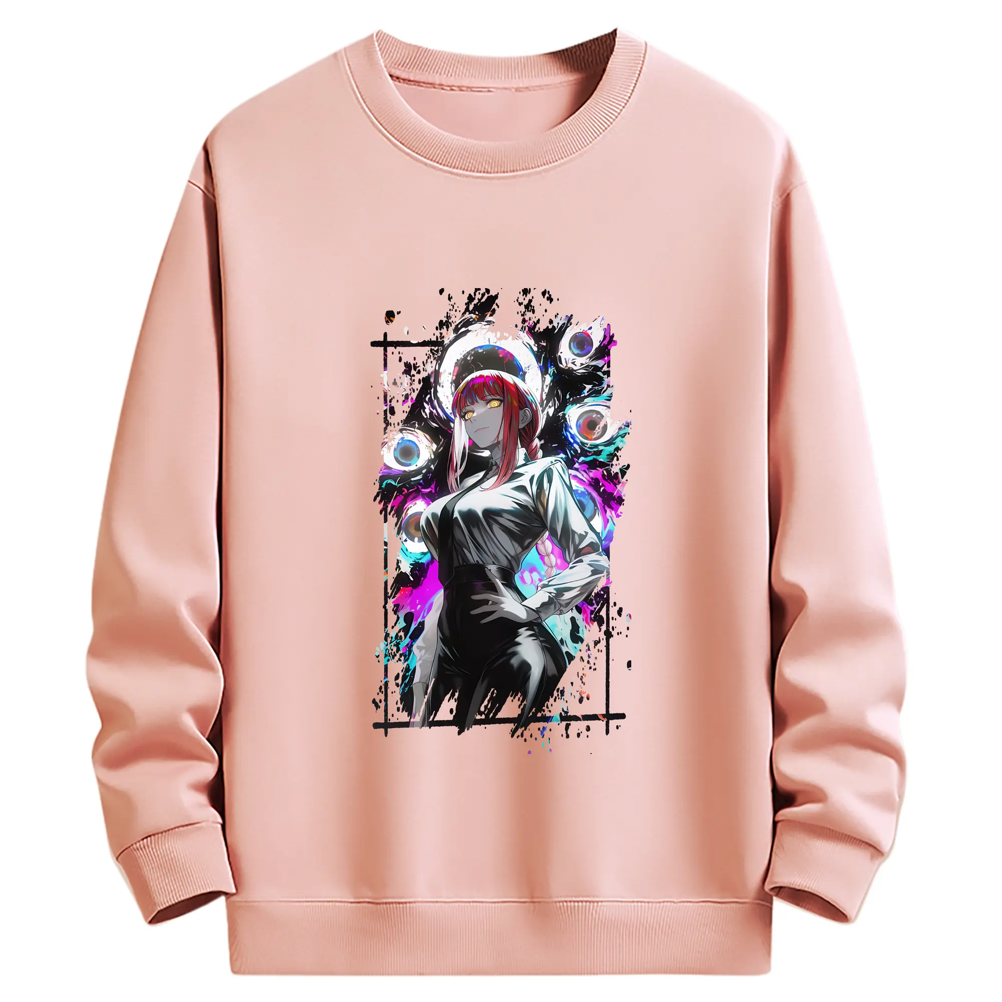 チェンソーマン グッズ,マキマ - 薄手 クルーネック スウェット 裏毛260g · ポリエステル 春秋向け カジュアル 男女兼用 · トレーナー デイリー スポーツ 散歩に最適