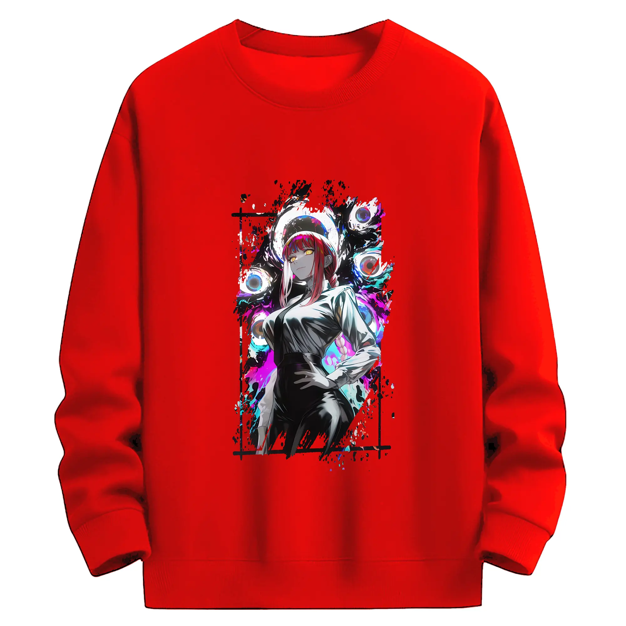 チェンソーマン グッズ,マキマ - 高品質 クルーネック スウェット ・ コットン59% ポリエステル41% ・ ユニセックス 長袖 トレーナー ・ カジュアル デイリー スポーツ 散歩用