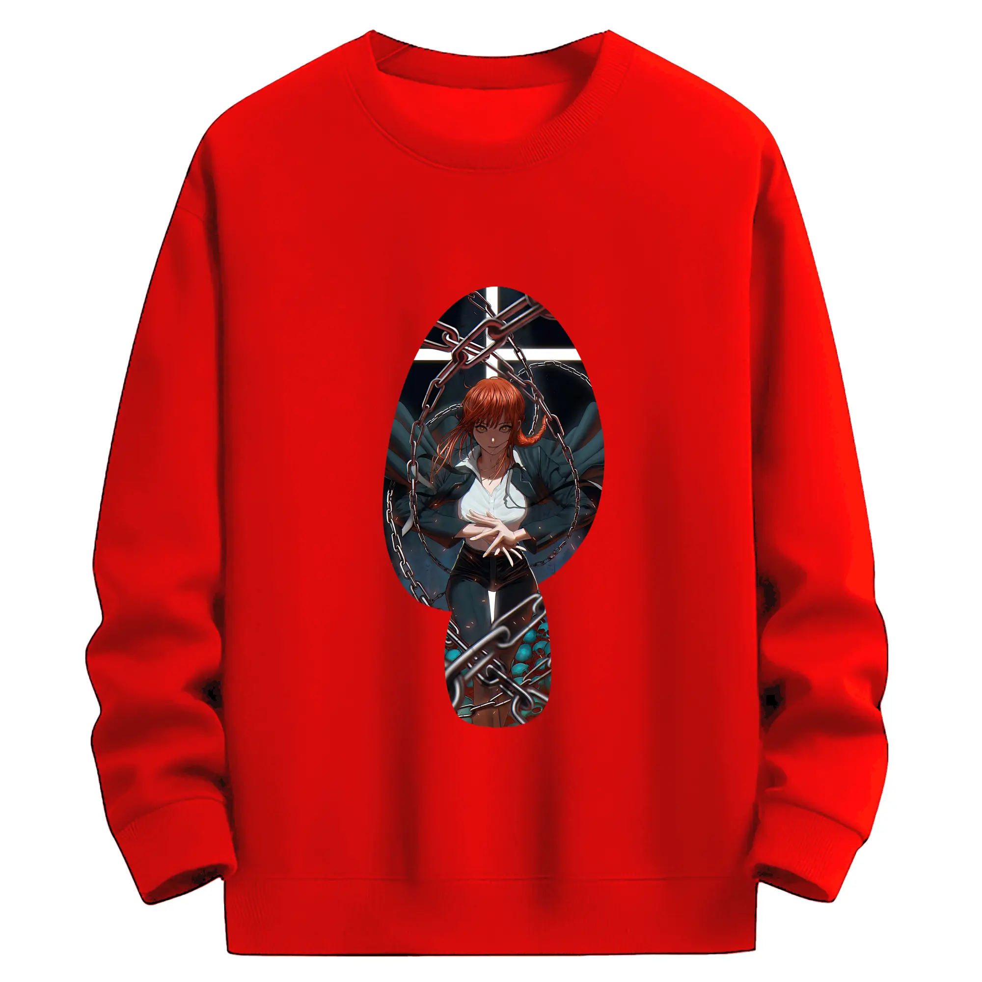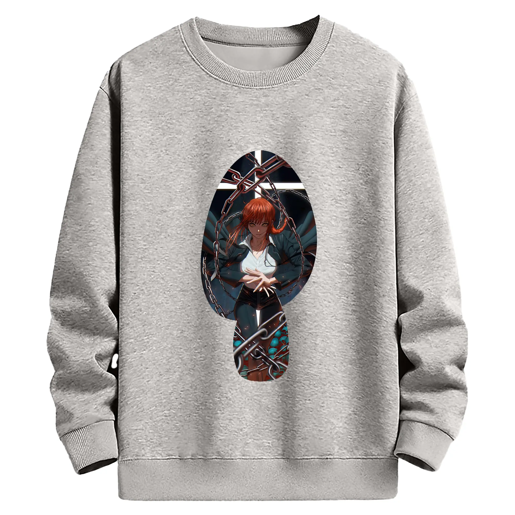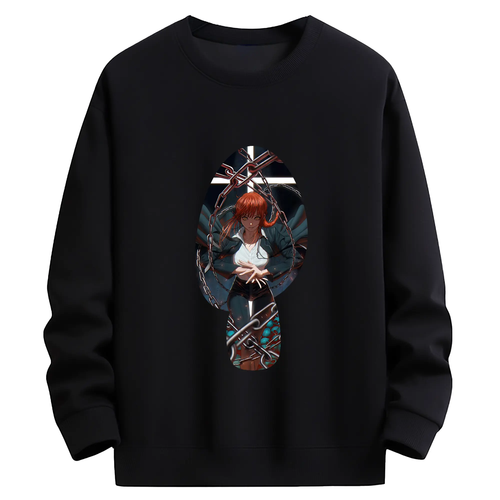 チェンソーマン グッズ,マキマ - 薄手 クルーネック スウェット 裏毛260g · ポリエステル 春秋向け カジュアル 男女兼用 · トレーナー デイリー スポーツ 散歩に最適