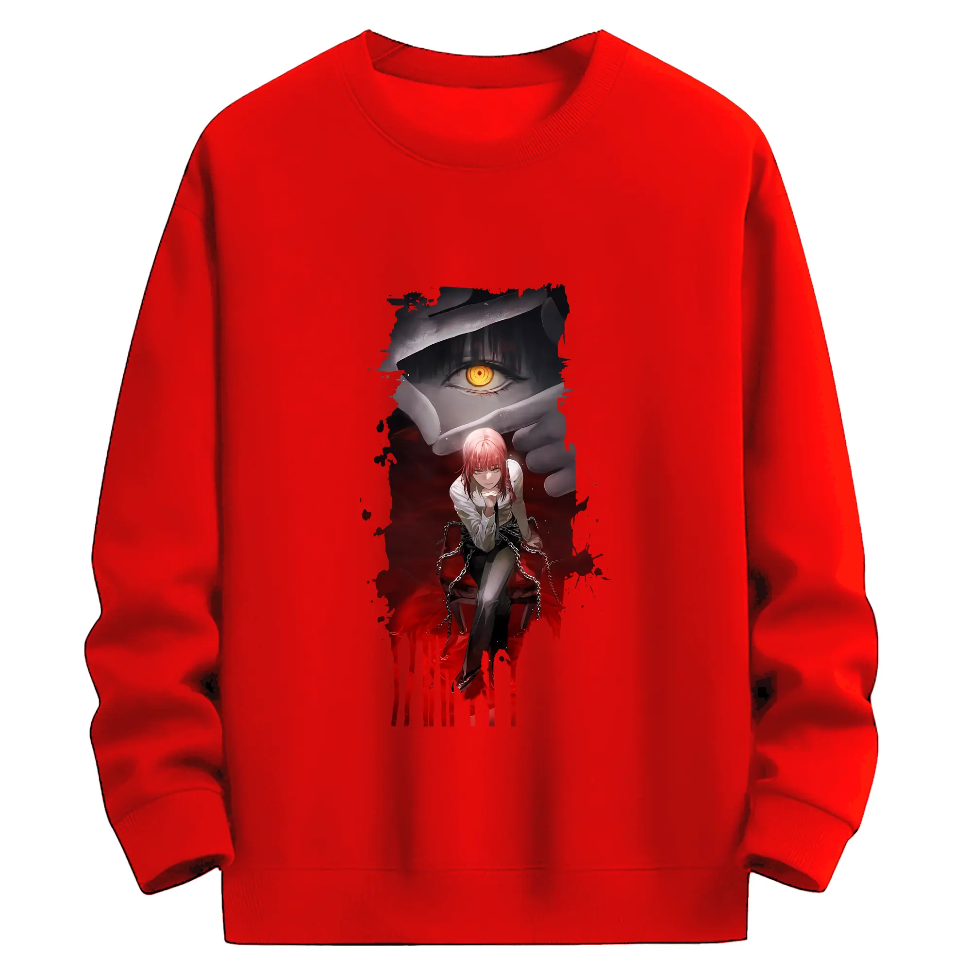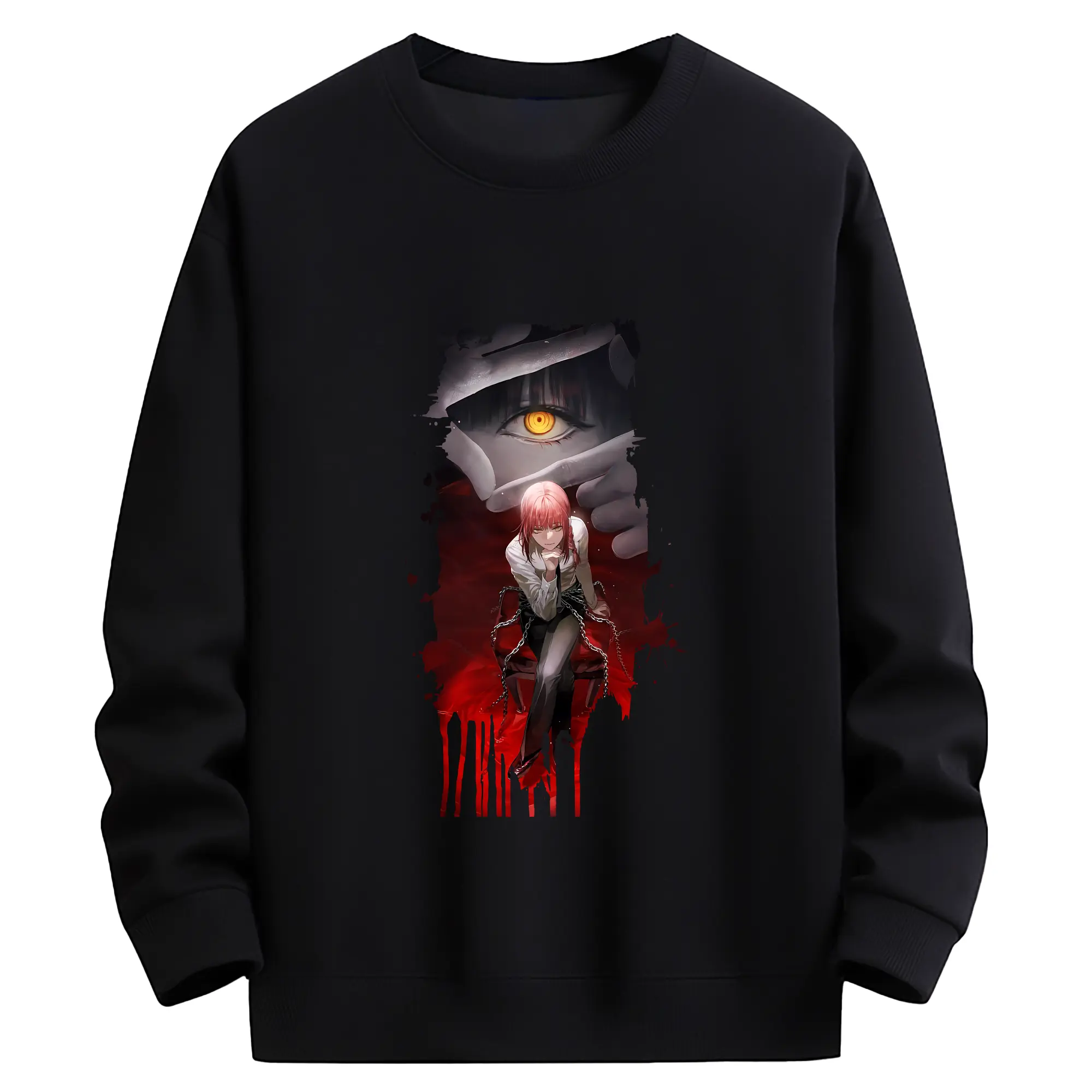 チェンソーマン グッズ,マキマ - 高品質 クルーネック スウェット ・ コットン59% ポリエステル41% ・ ユニセックス 長袖 トレーナー ・ カジュアル デイリー スポーツ 散歩用