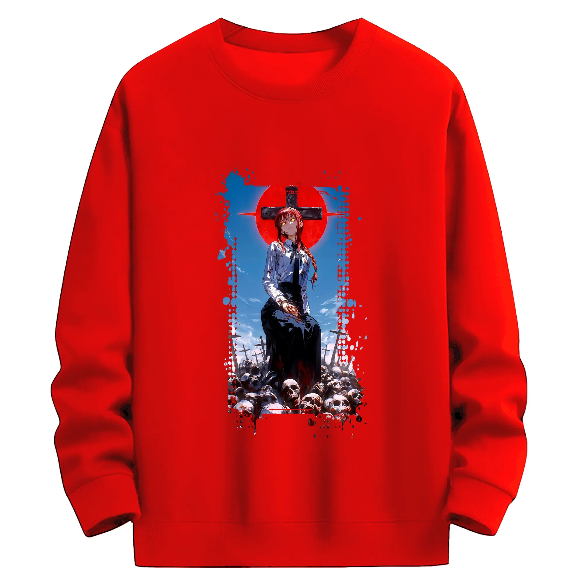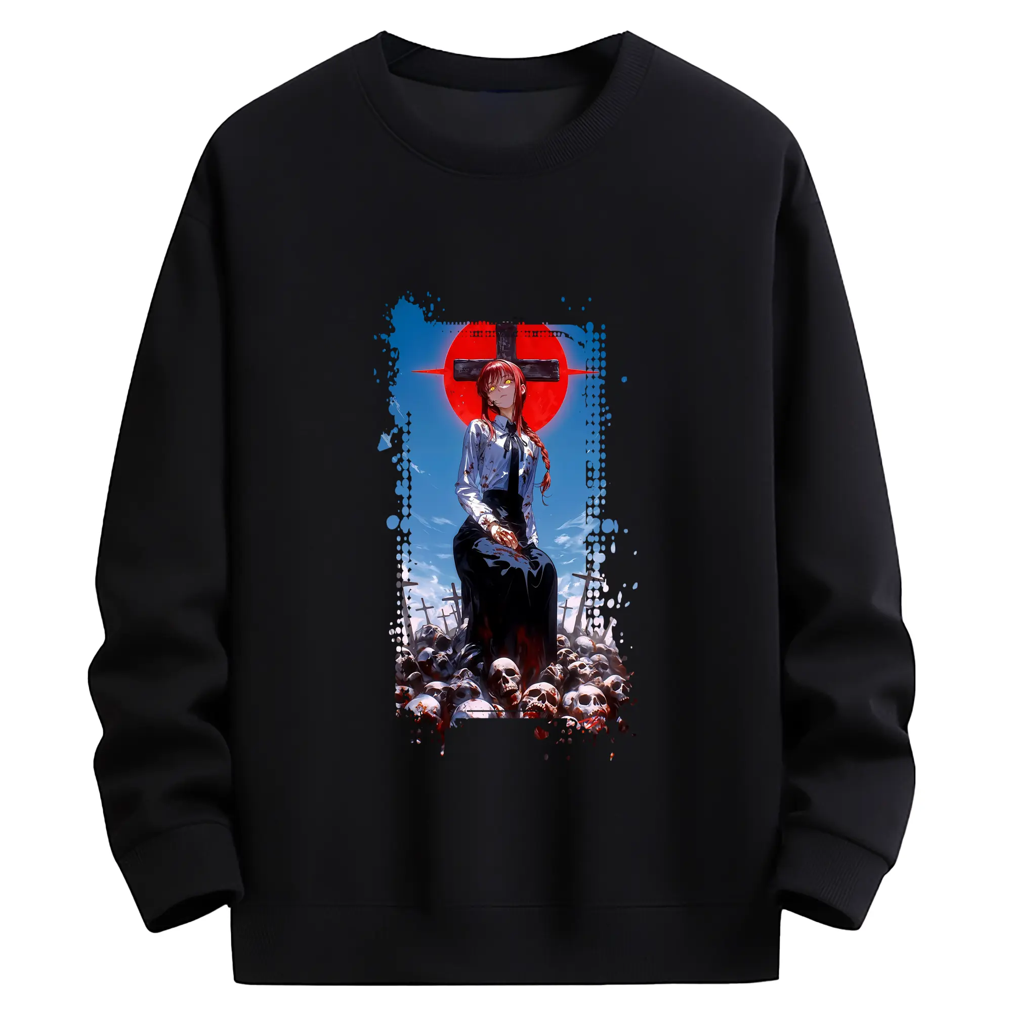 チェンソーマン グッズ,マキマ - 高品質 クルーネック スウェット ・ コットン59% ポリエステル41% ・ ユニセックス 長袖 トレーナー ・ カジュアル デイリー スポーツ 散歩用