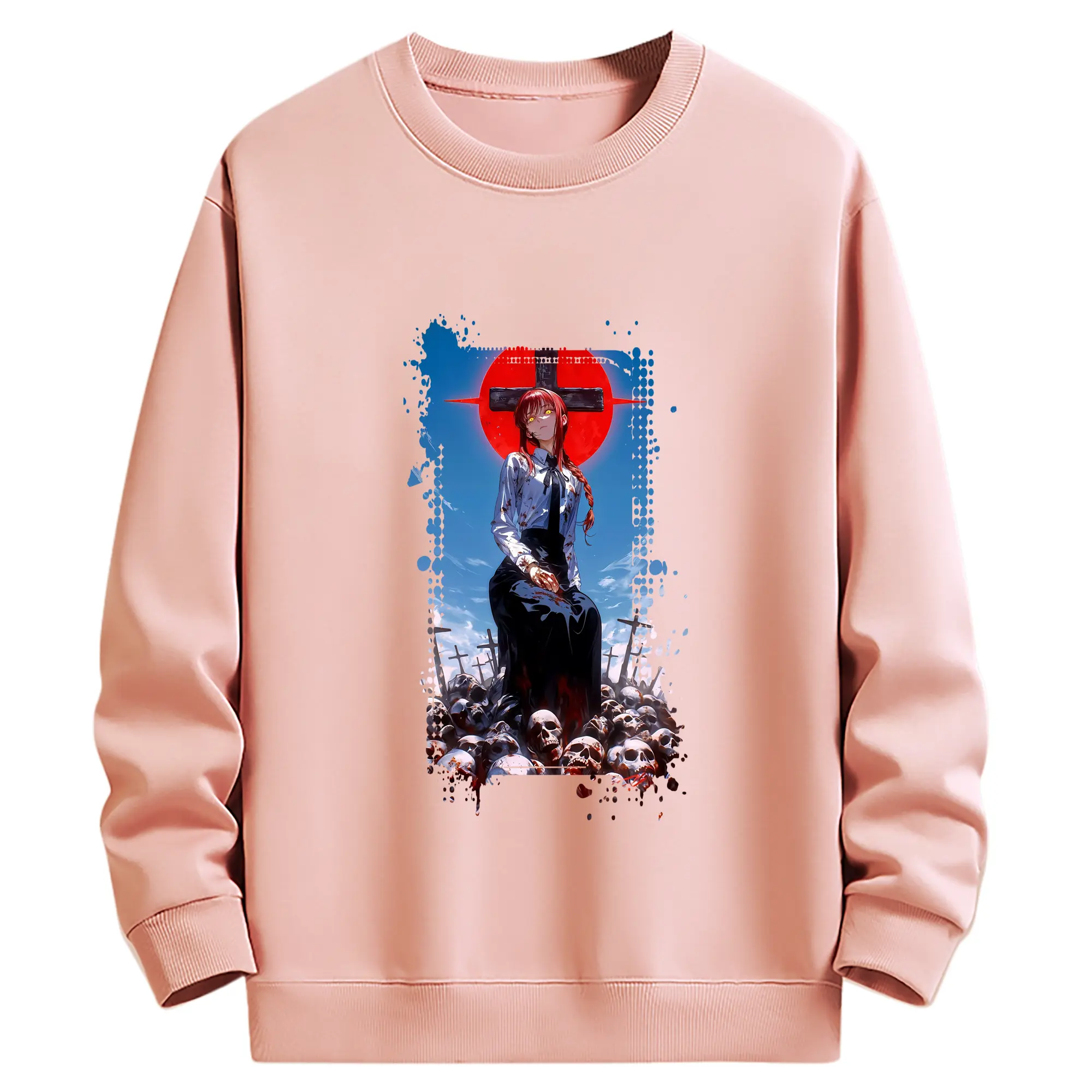 チェンソーマン グッズ,マキマ - 薄手 クルーネック スウェット 裏毛260g · ポリエステル 春秋向け カジュアル 男女兼用 · トレーナー デイリー スポーツ 散歩に最適
