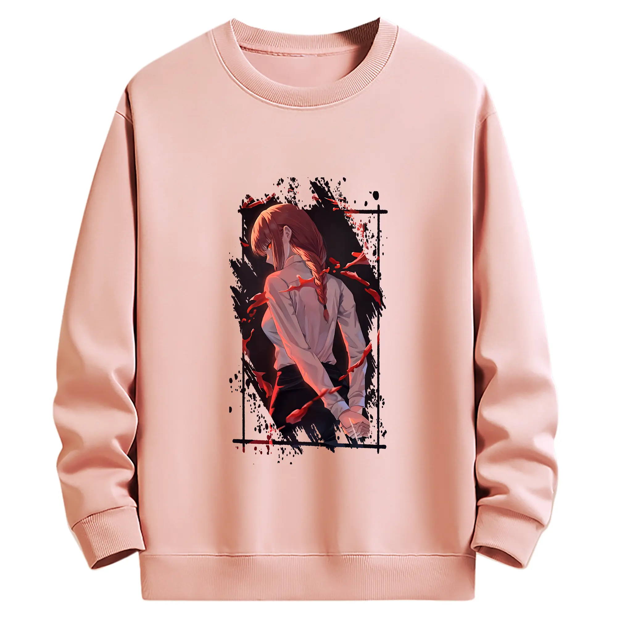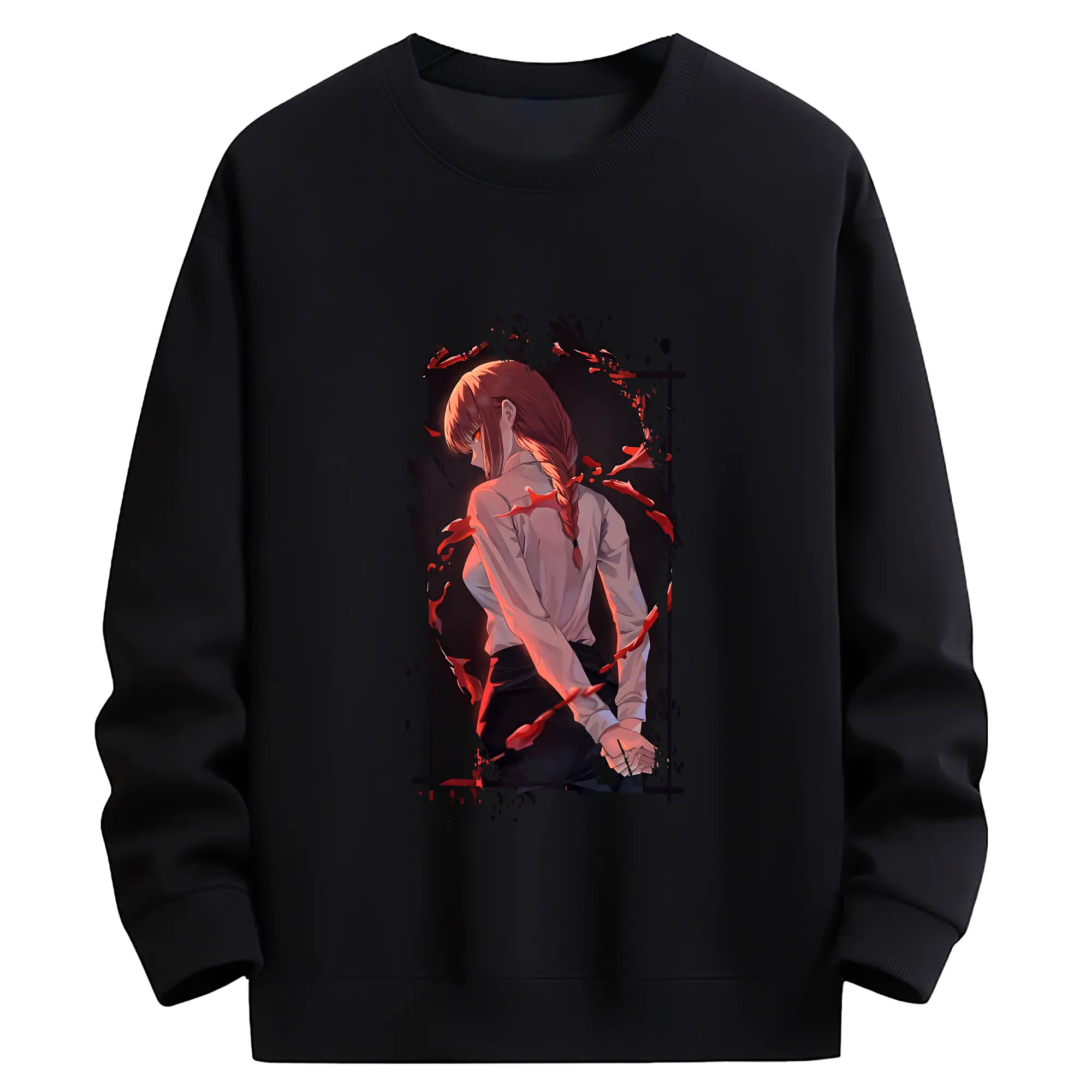 チェンソーマン グッズ,マキマ - 薄手 クルーネック スウェット 裏毛260g · ポリエステル 春秋向け カジュアル 男女兼用 · トレーナー デイリー スポーツ 散歩に最適