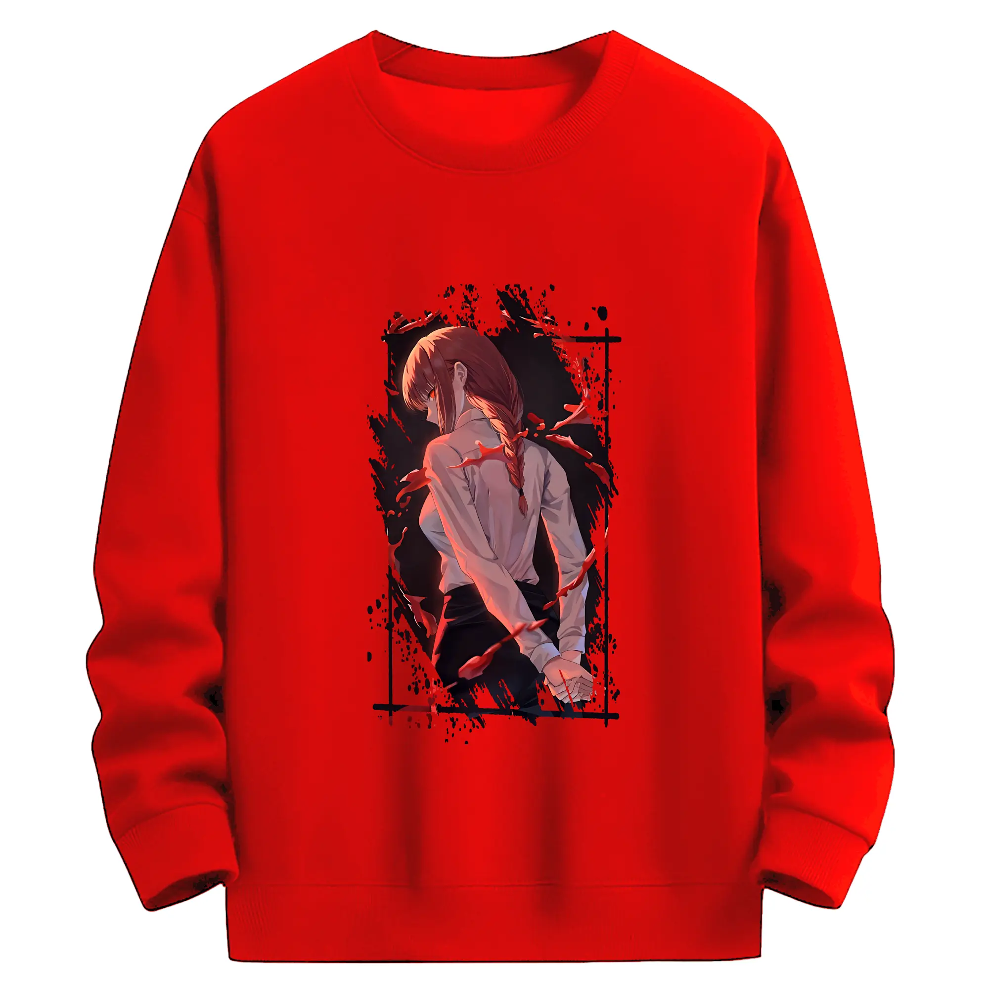 チェンソーマン グッズ,マキマ - 高品質 クルーネック スウェット ・ コットン59% ポリエステル41% ・ ユニセックス 長袖 トレーナー ・ カジュアル デイリー スポーツ 散歩用