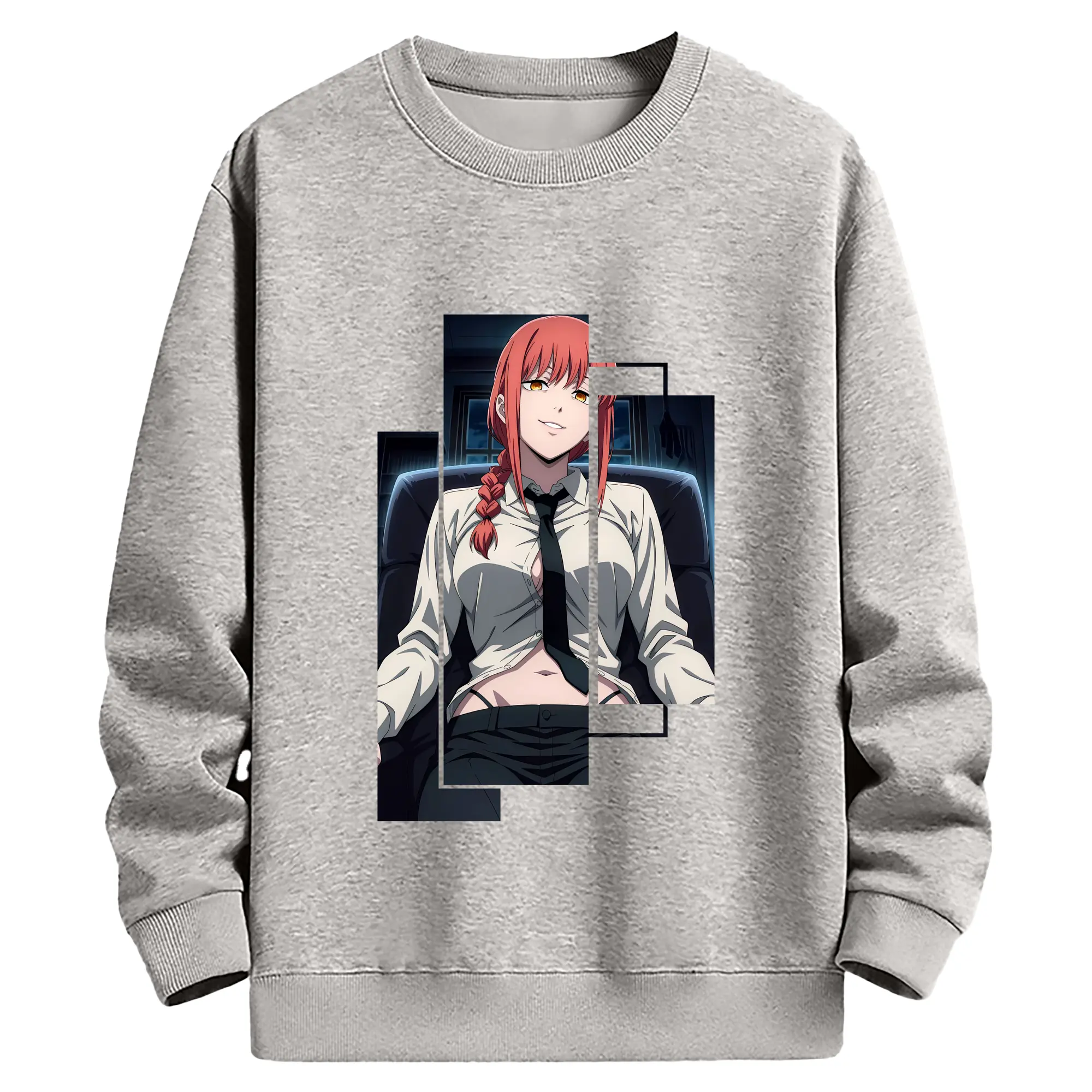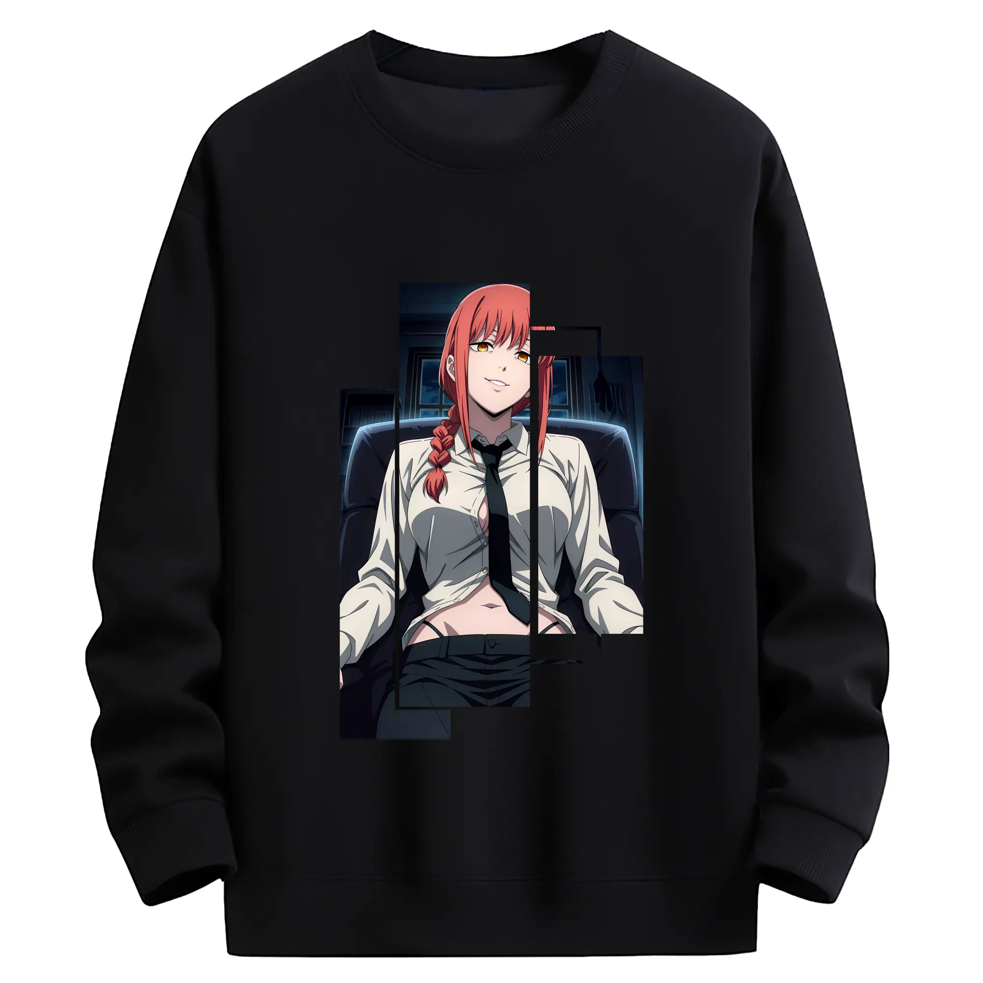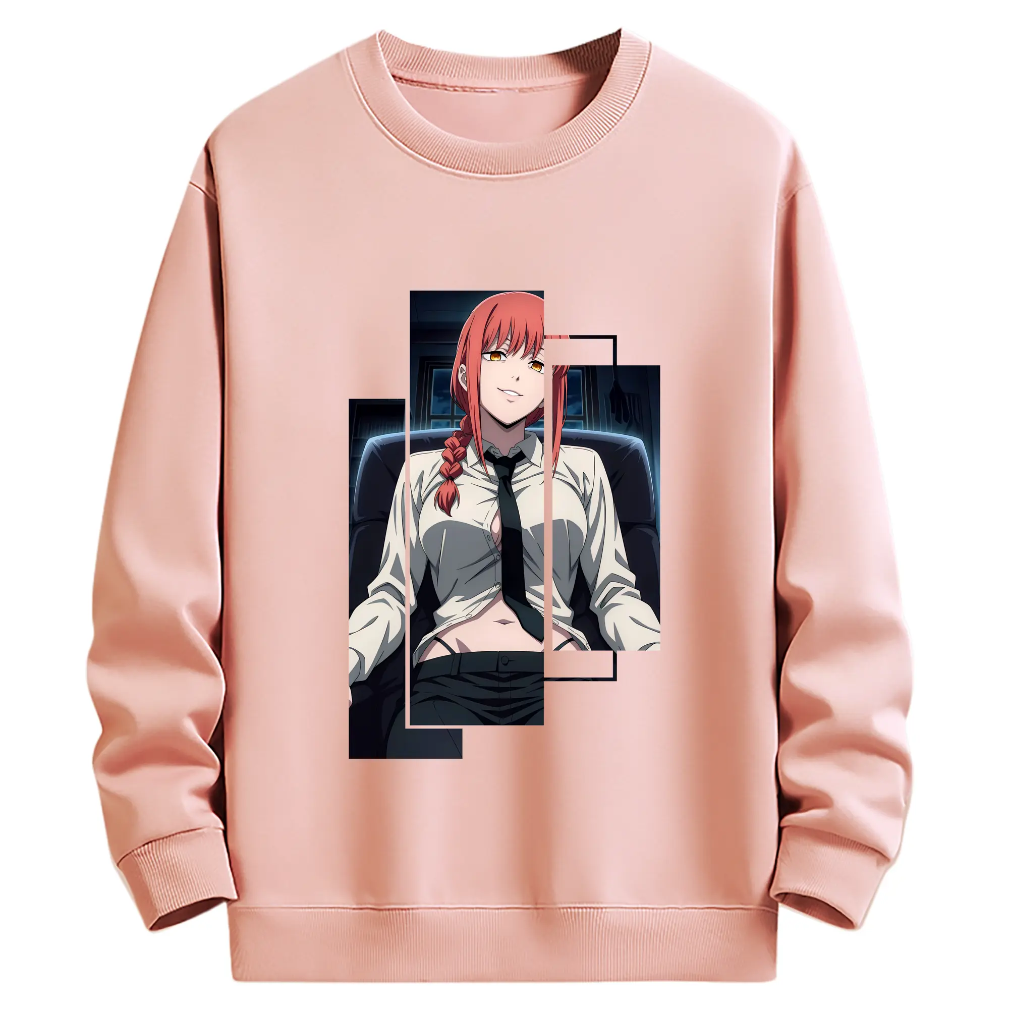 チェンソーマン グッズ,マキマ - 薄手 クルーネック スウェット 裏毛260g · ポリエステル 春秋向け カジュアル 男女兼用 · トレーナー デイリー スポーツ 散歩に最適