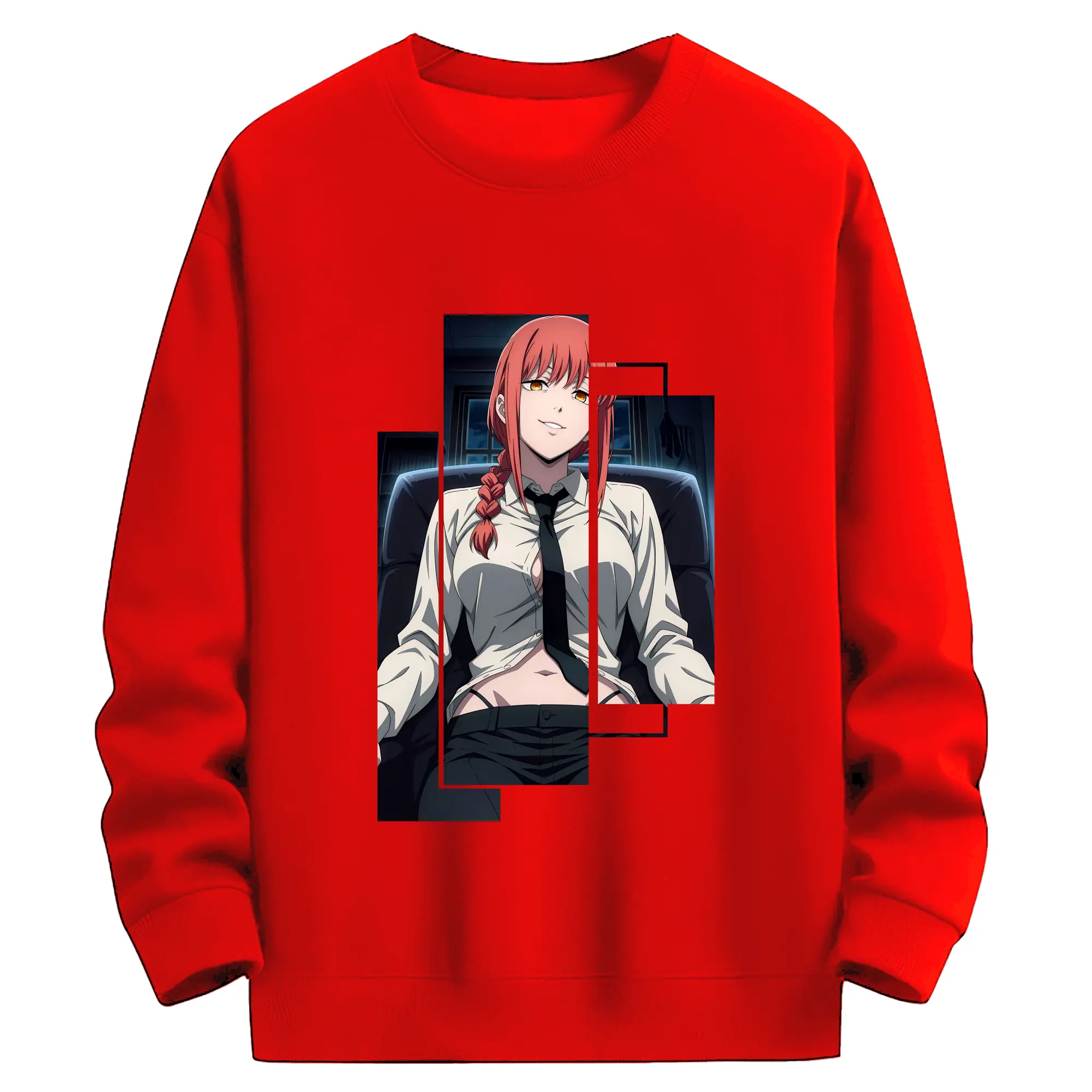 チェンソーマン グッズ,マキマ - 高品質 クルーネック スウェット ・ コットン59% ポリエステル41% ・ ユニセックス 長袖 トレーナー ・ カジュアル デイリー スポーツ 散歩用