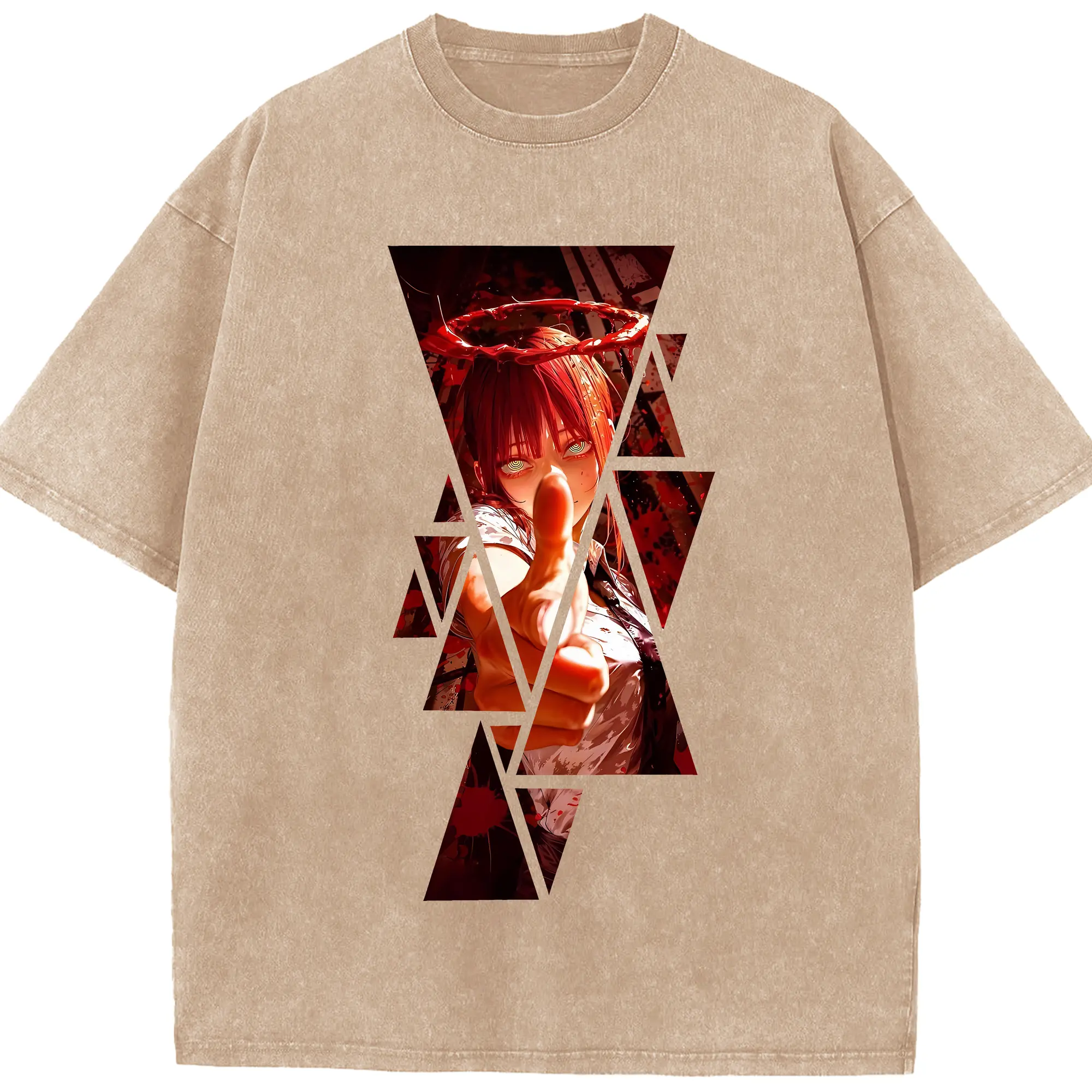 チェンソーマン グッズ,マキマ - 綿100% ヴィンテージ風 半袖Tシャツ ・ 背面プリント ・ 柔らか肌触り ・ 通気性 快適 ・ スポーツ カジュアル 外出用
