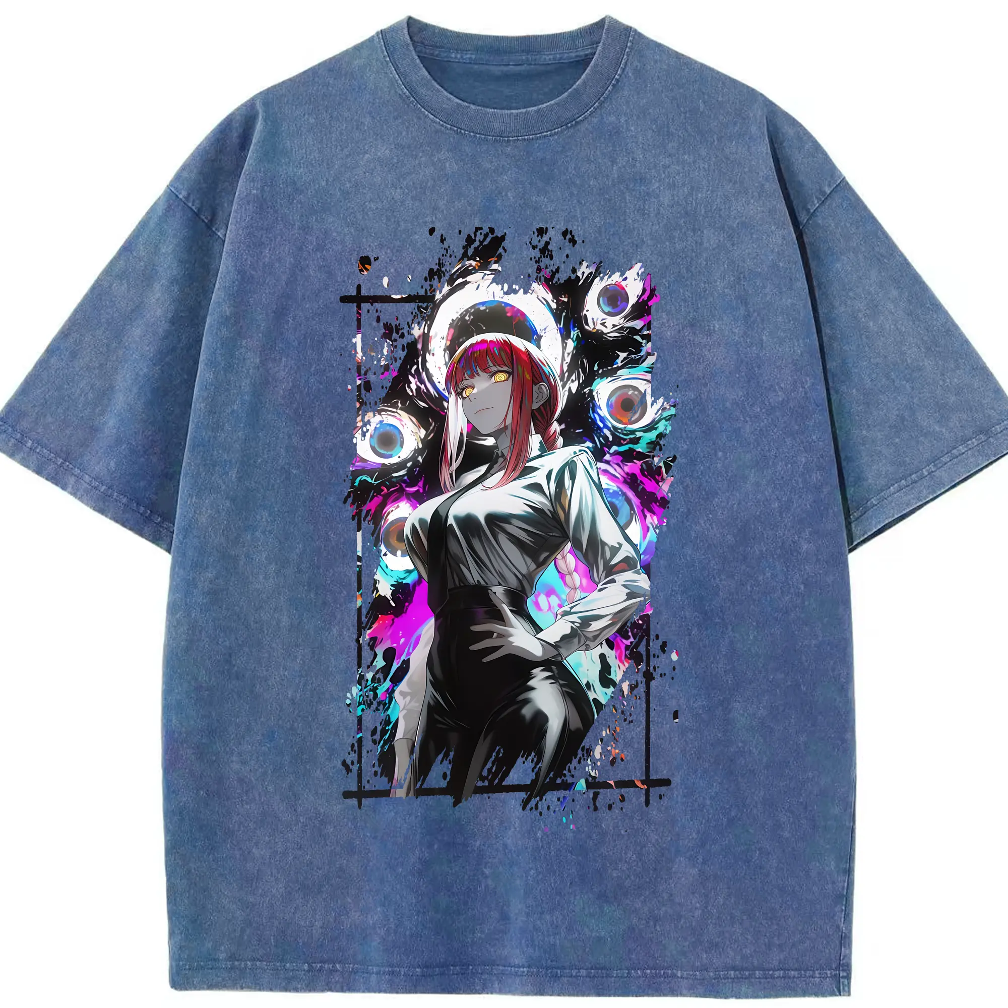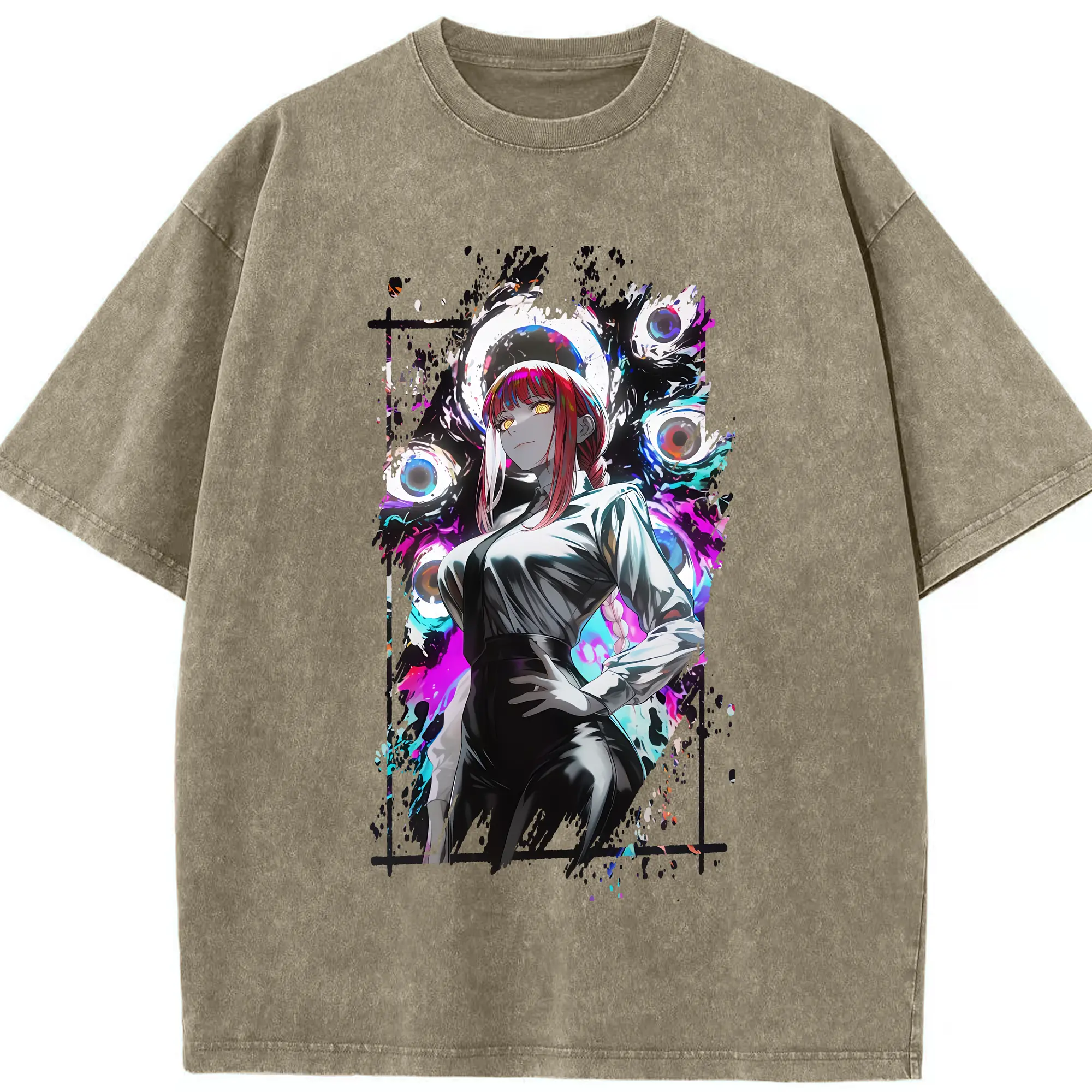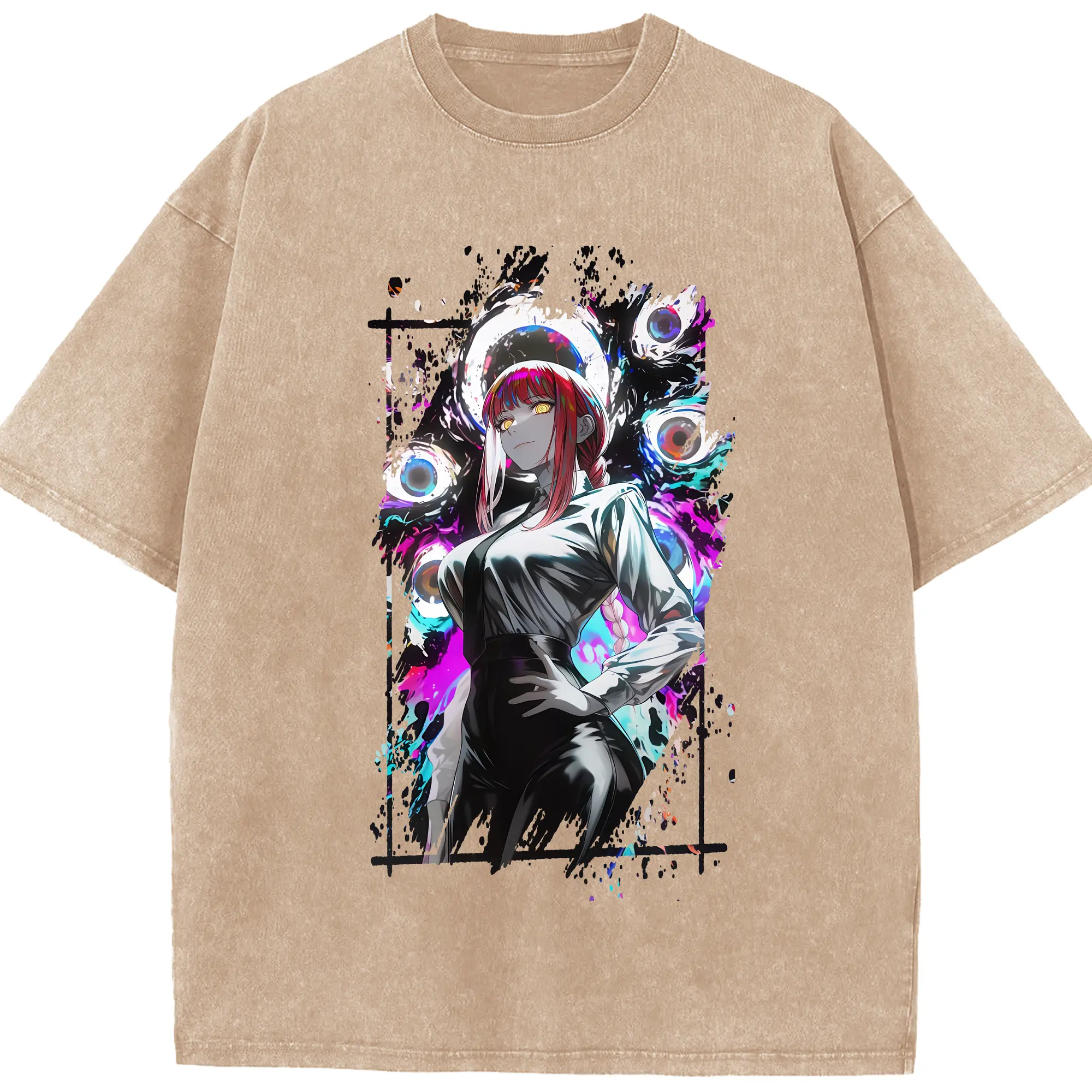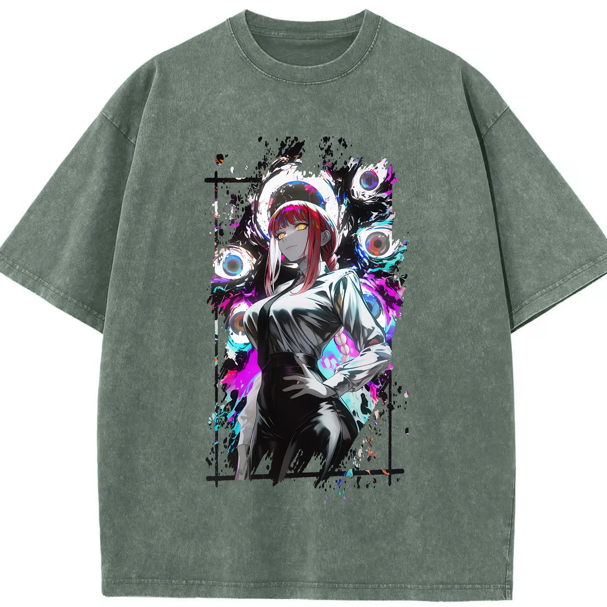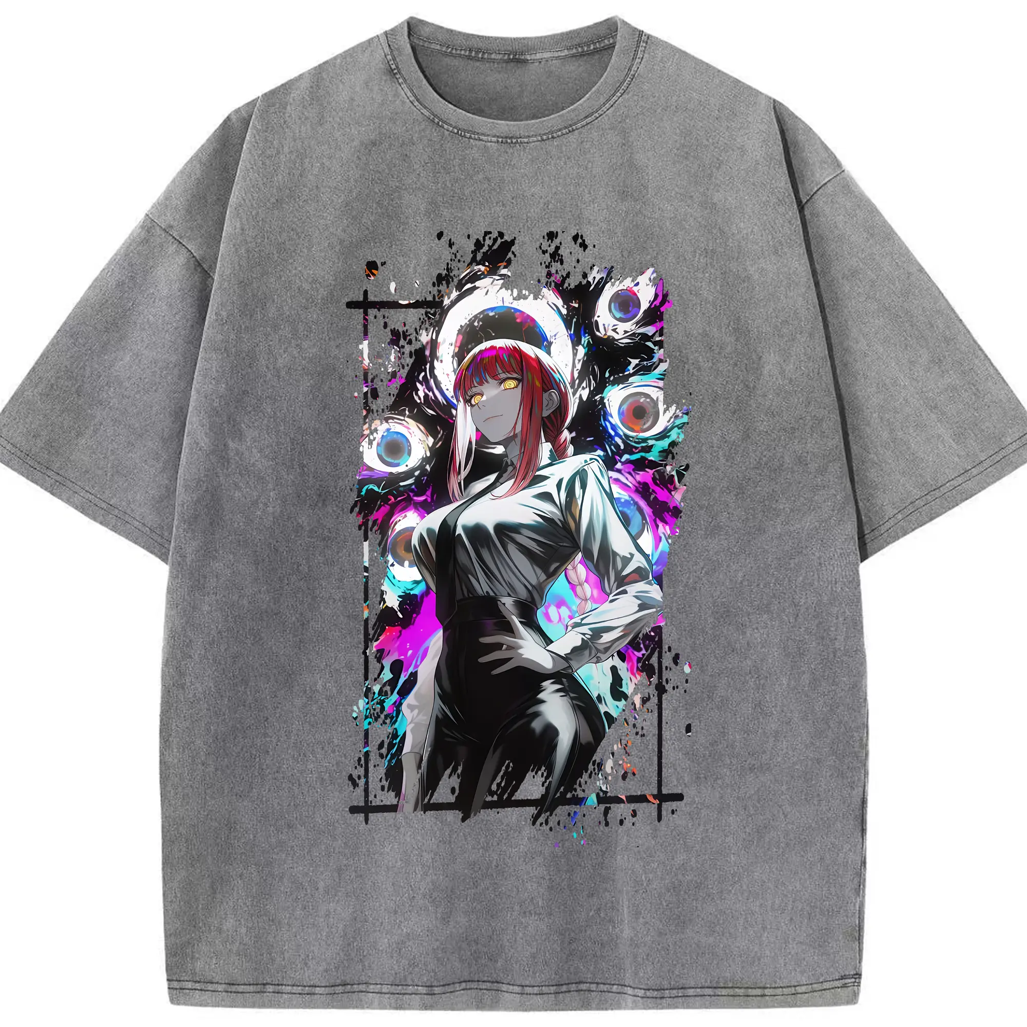 チェンソーマン グッズ,マキマ - 綿100% ヴィンテージ風 半袖Tシャツ ・ 背面プリント ・ 柔らか肌触り ・ 通気性 快適 ・ スポーツ カジュアル 外出用