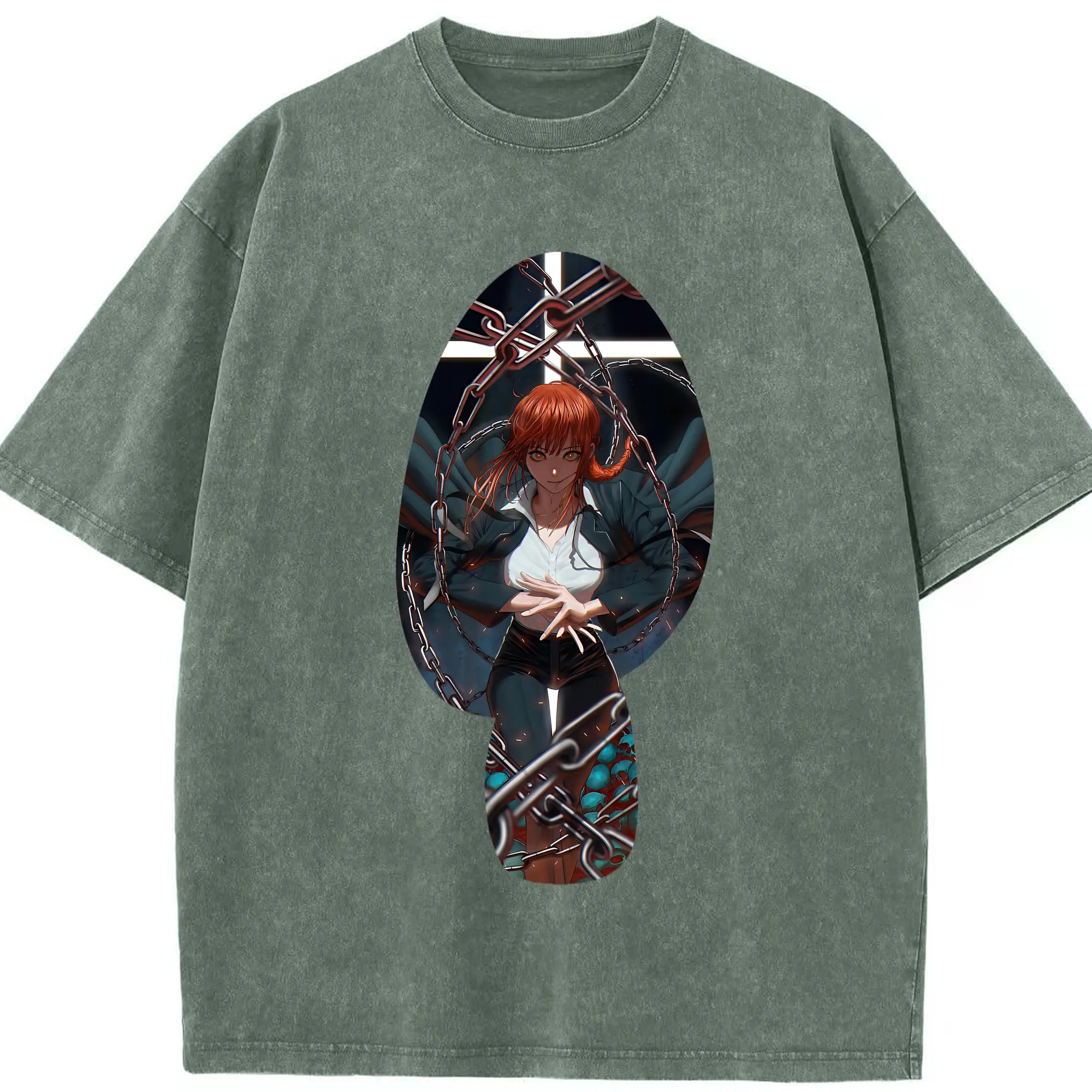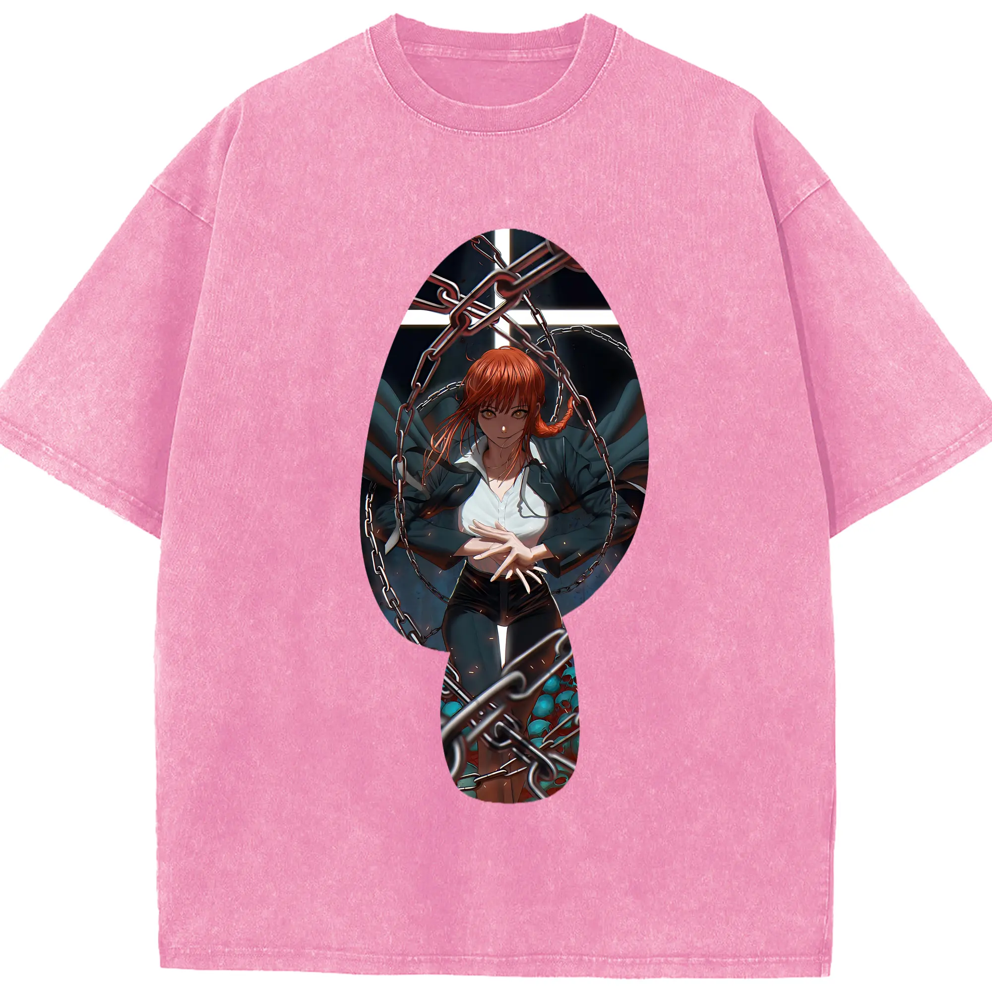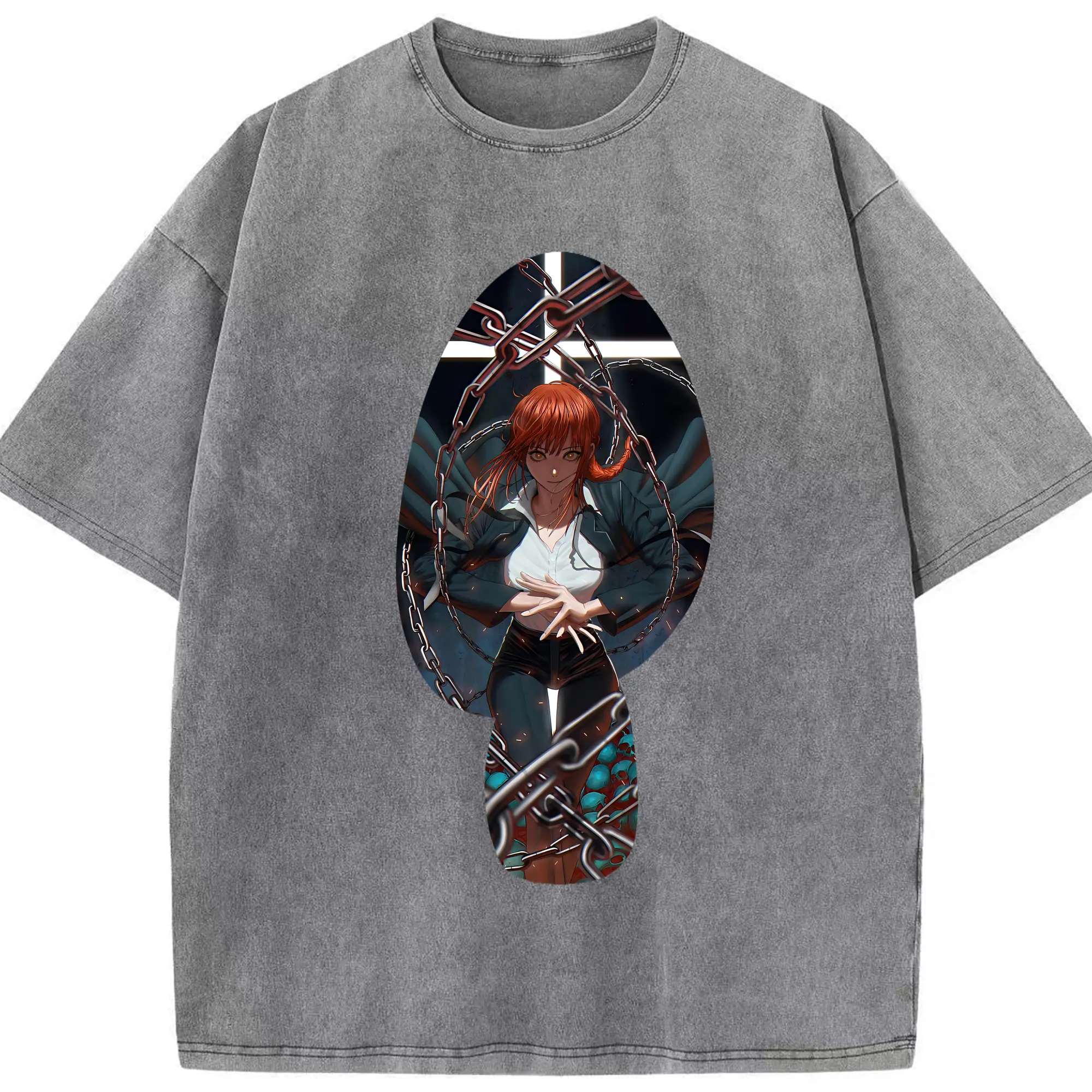 チェンソーマン グッズ,マキマ - 綿100% ヴィンテージ風 半袖Tシャツ ・ 背面プリント ・ 柔らか肌触り ・ 通気性 快適 ・ スポーツ カジュアル 外出用