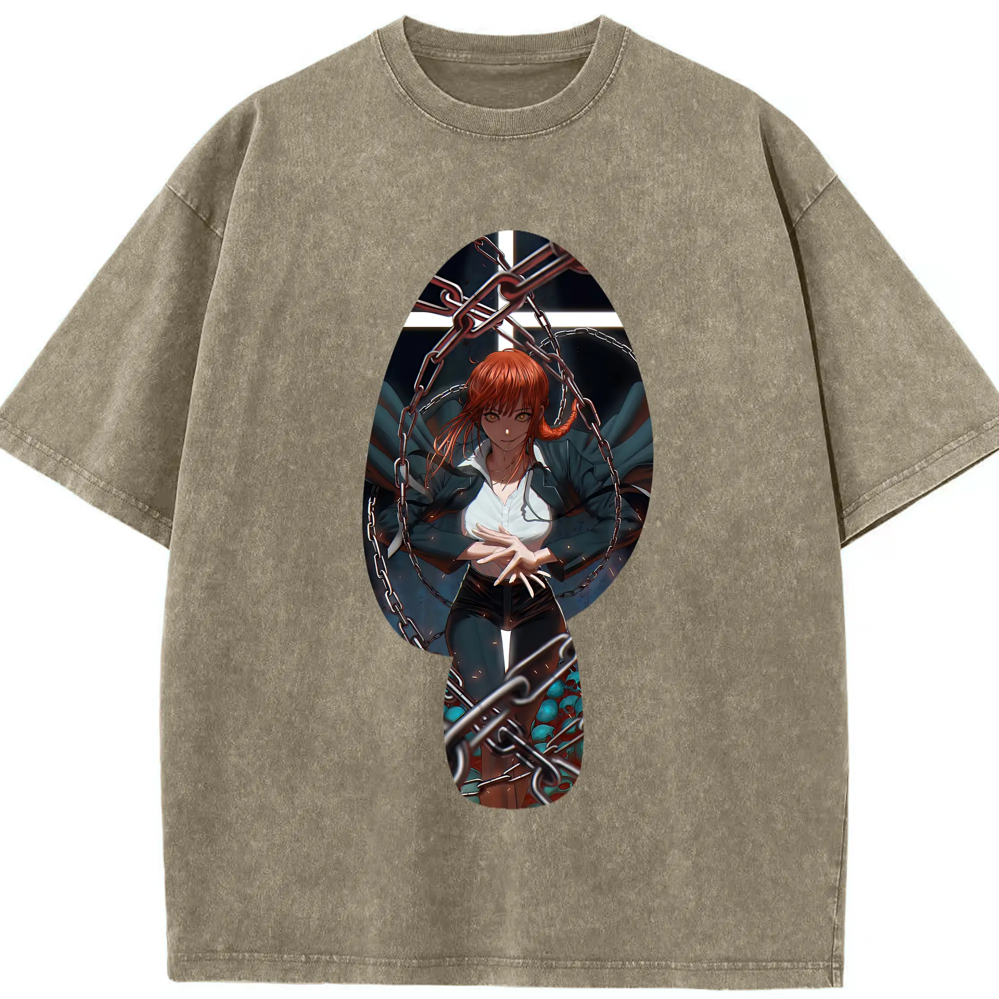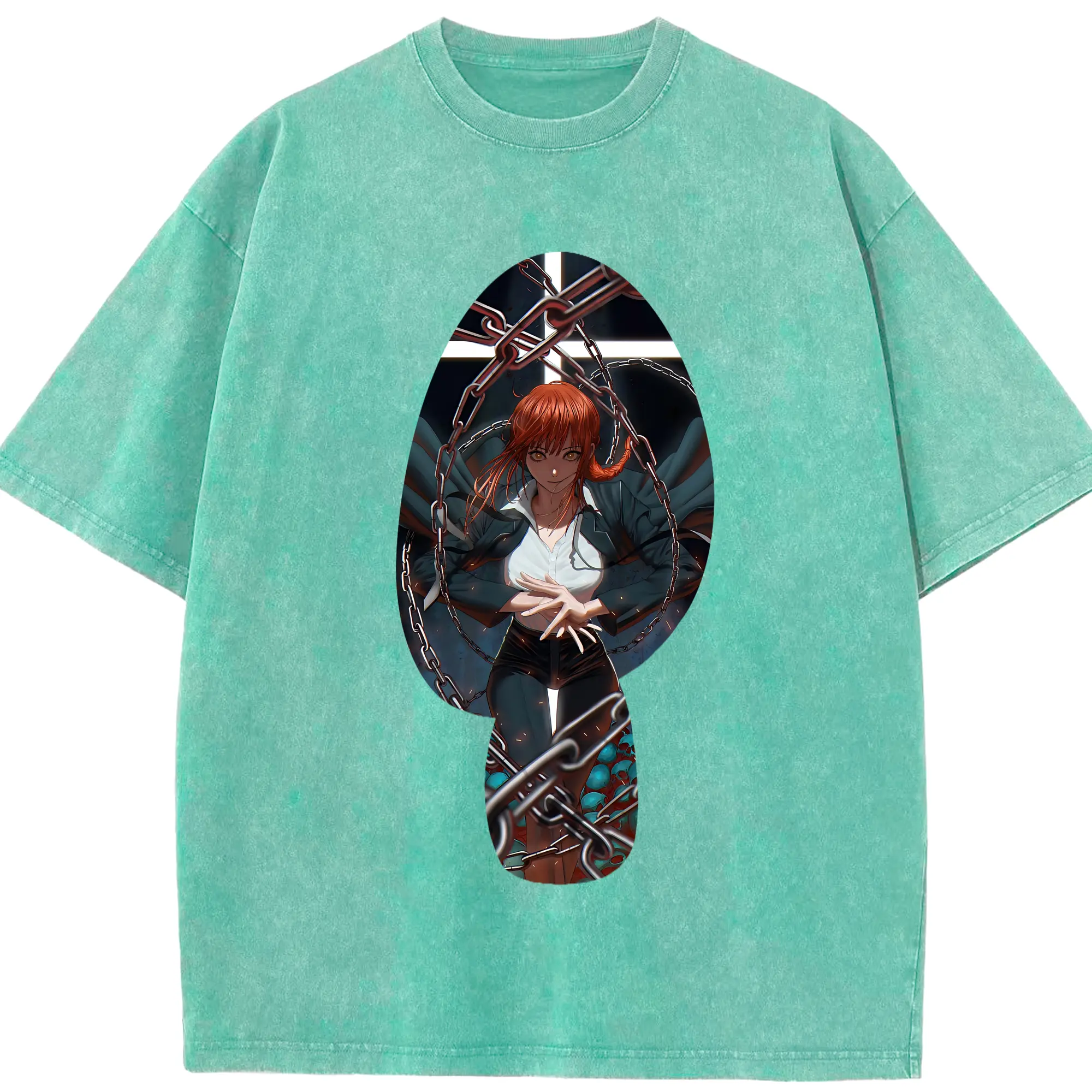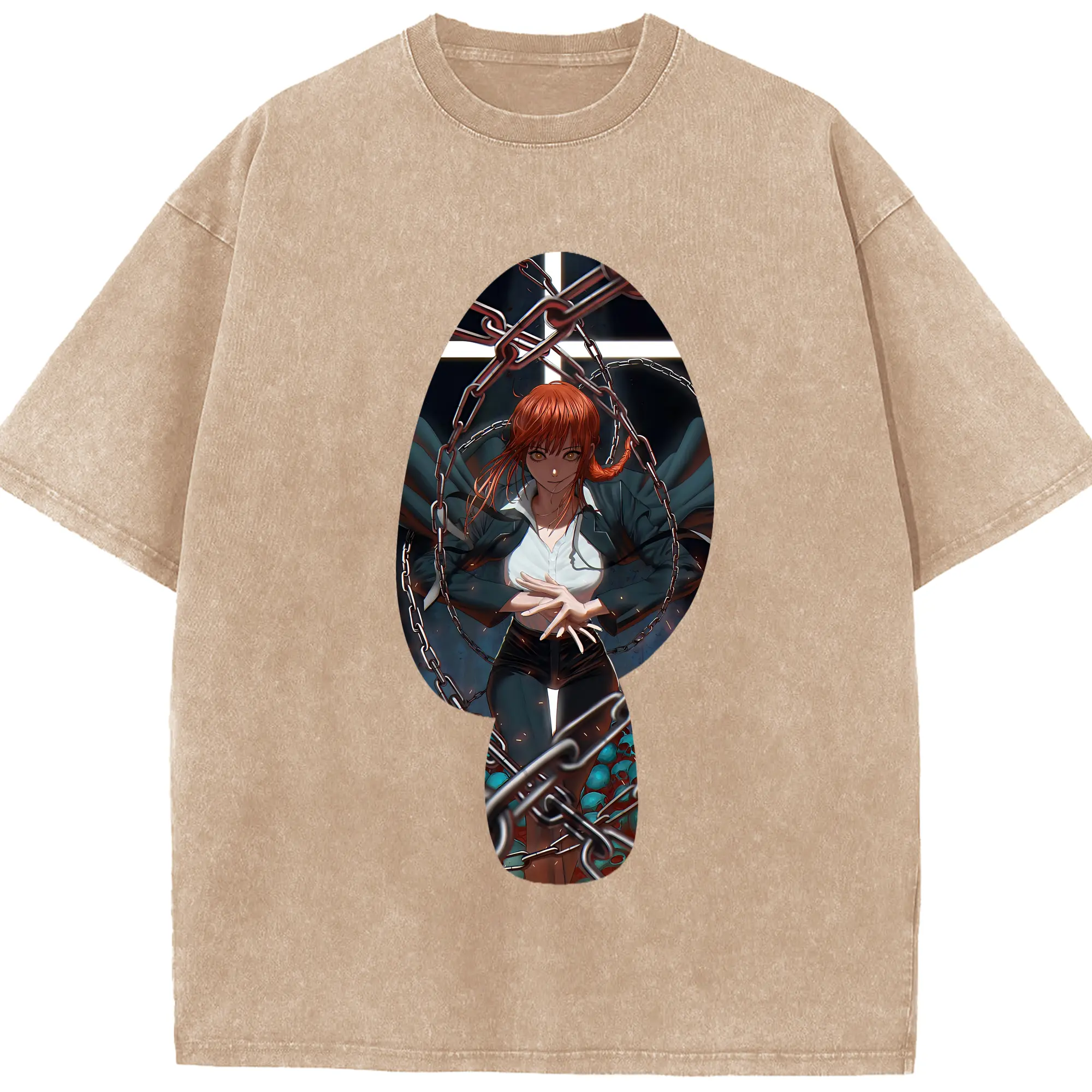 チェンソーマン グッズ,マキマ - 綿100% ヴィンテージ風 半袖Tシャツ ・ 背面プリント ・ 柔らか肌触り ・ 通気性 快適 ・ スポーツ カジュアル 外出用