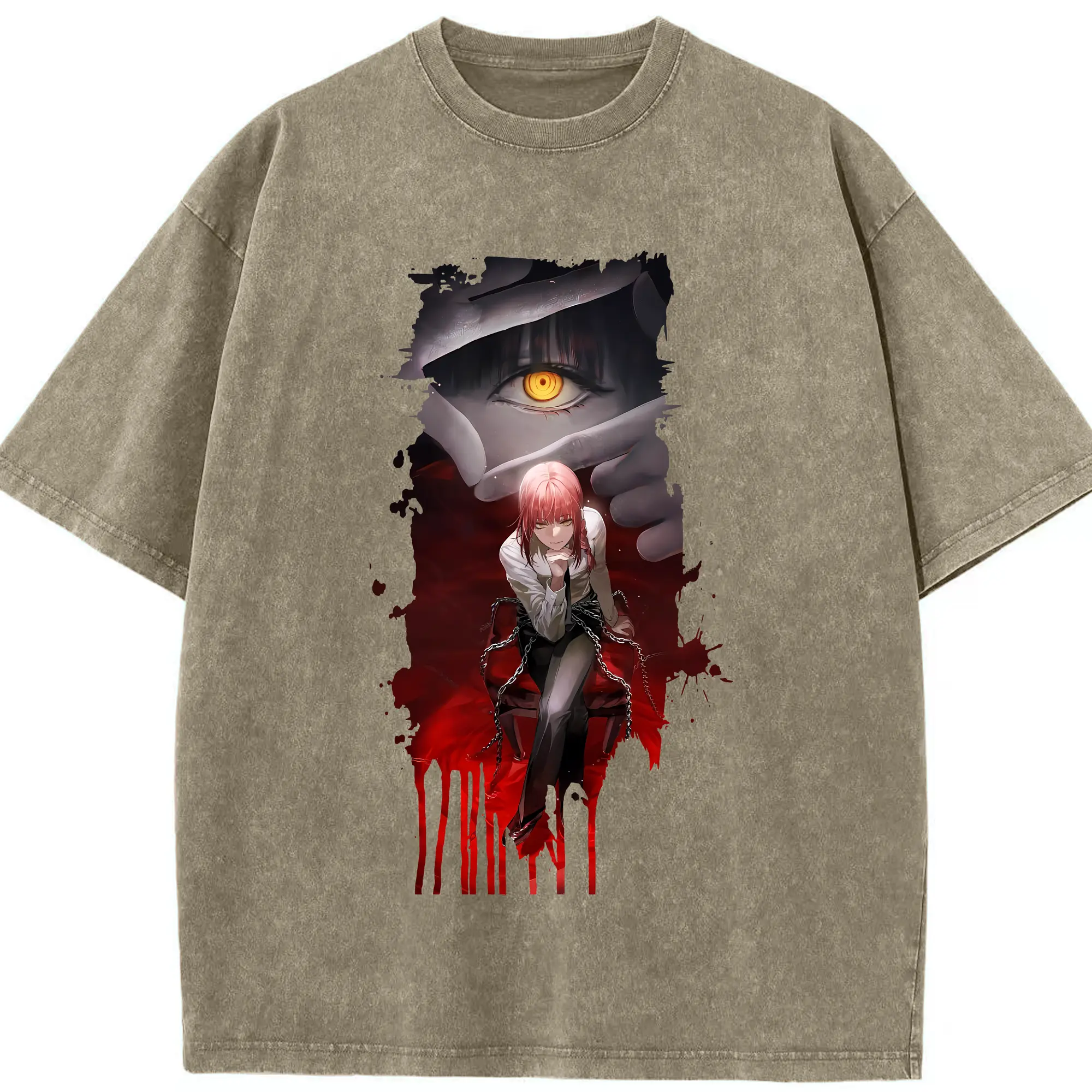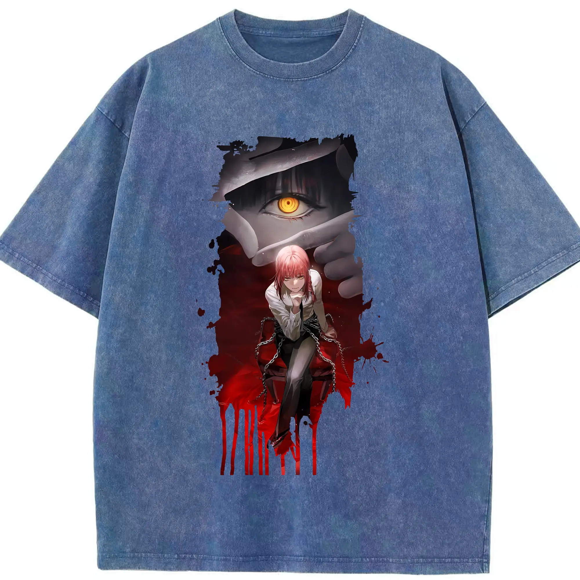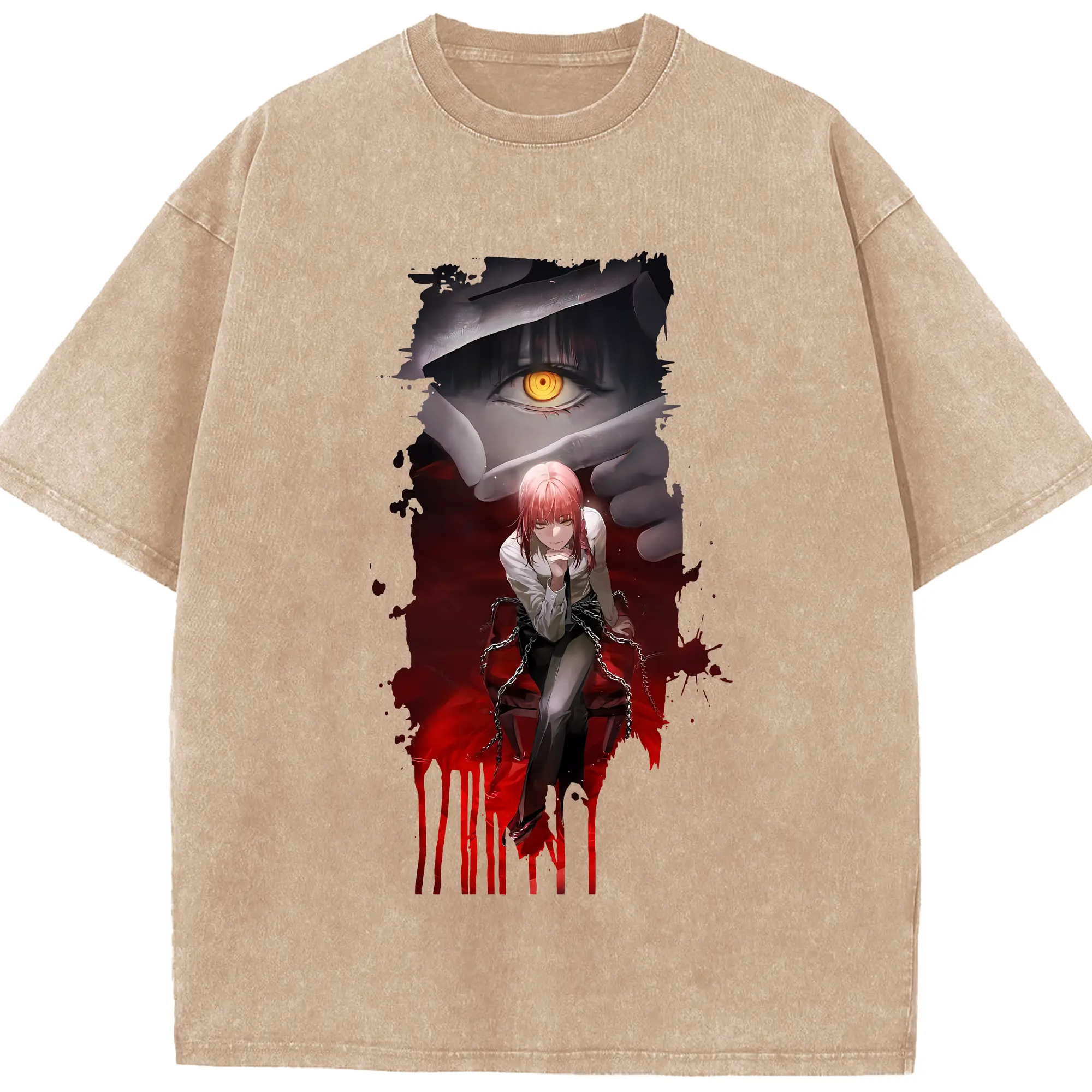 チェンソーマン グッズ,マキマ - 綿100% ヴィンテージ風 半袖Tシャツ ・ 背面プリント ・ 柔らか肌触り ・ 通気性 快適 ・ スポーツ カジュアル 外出用