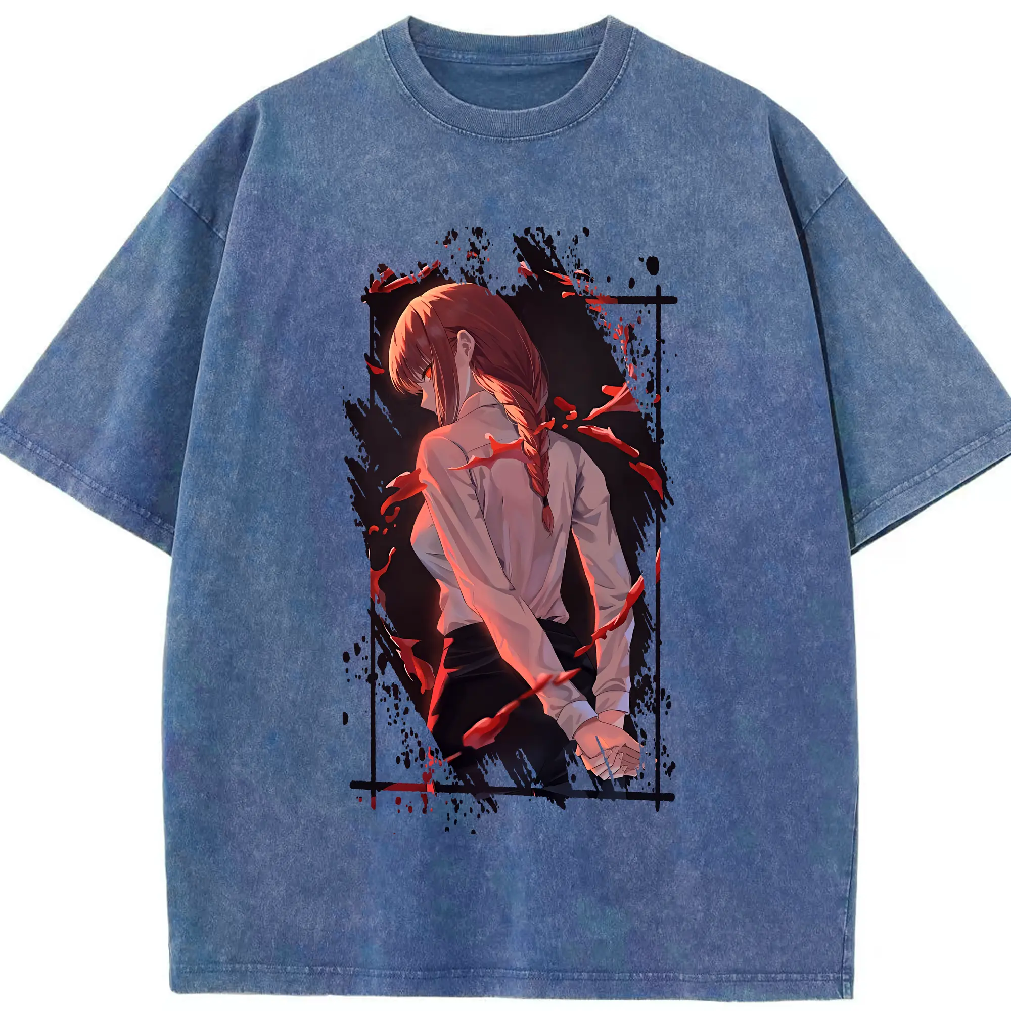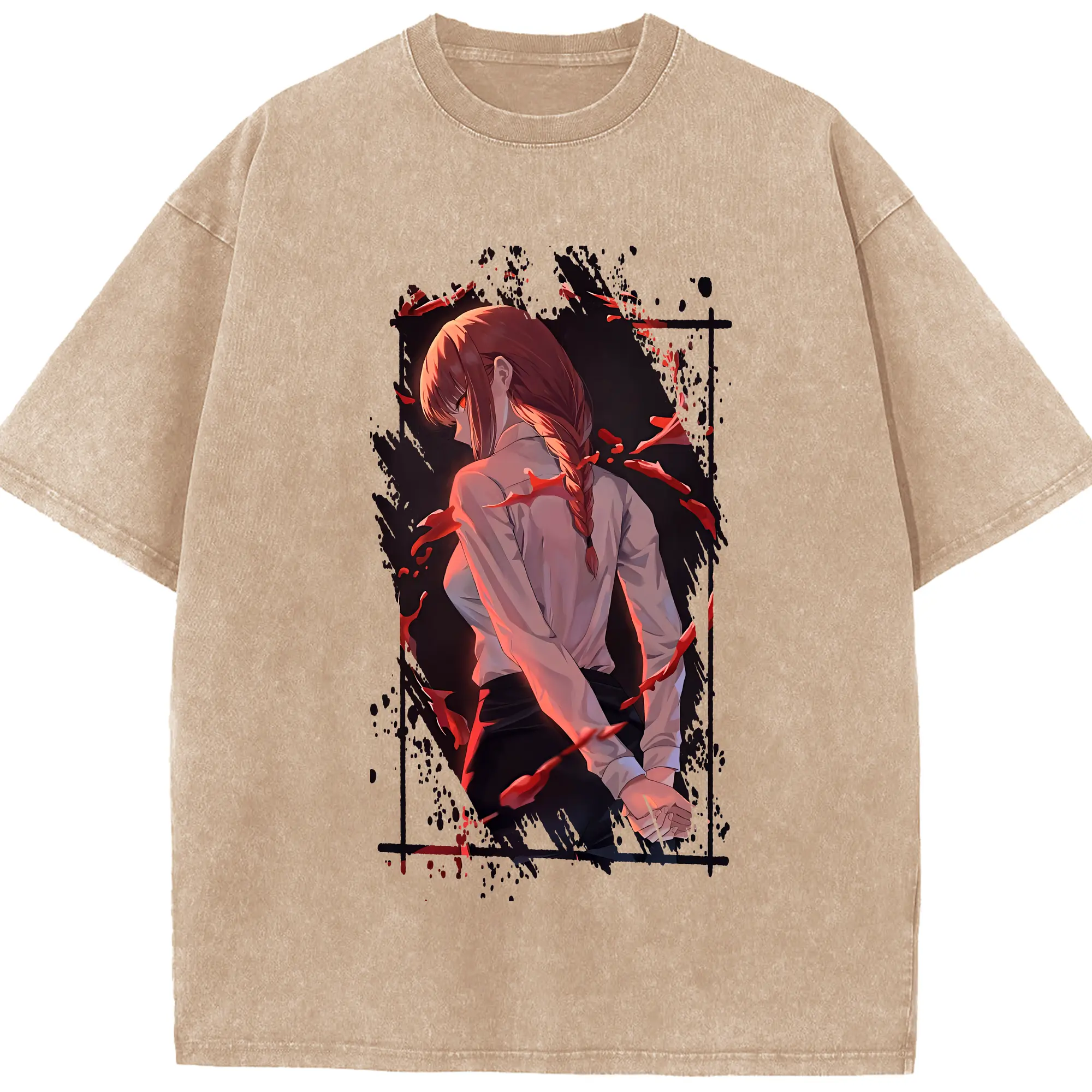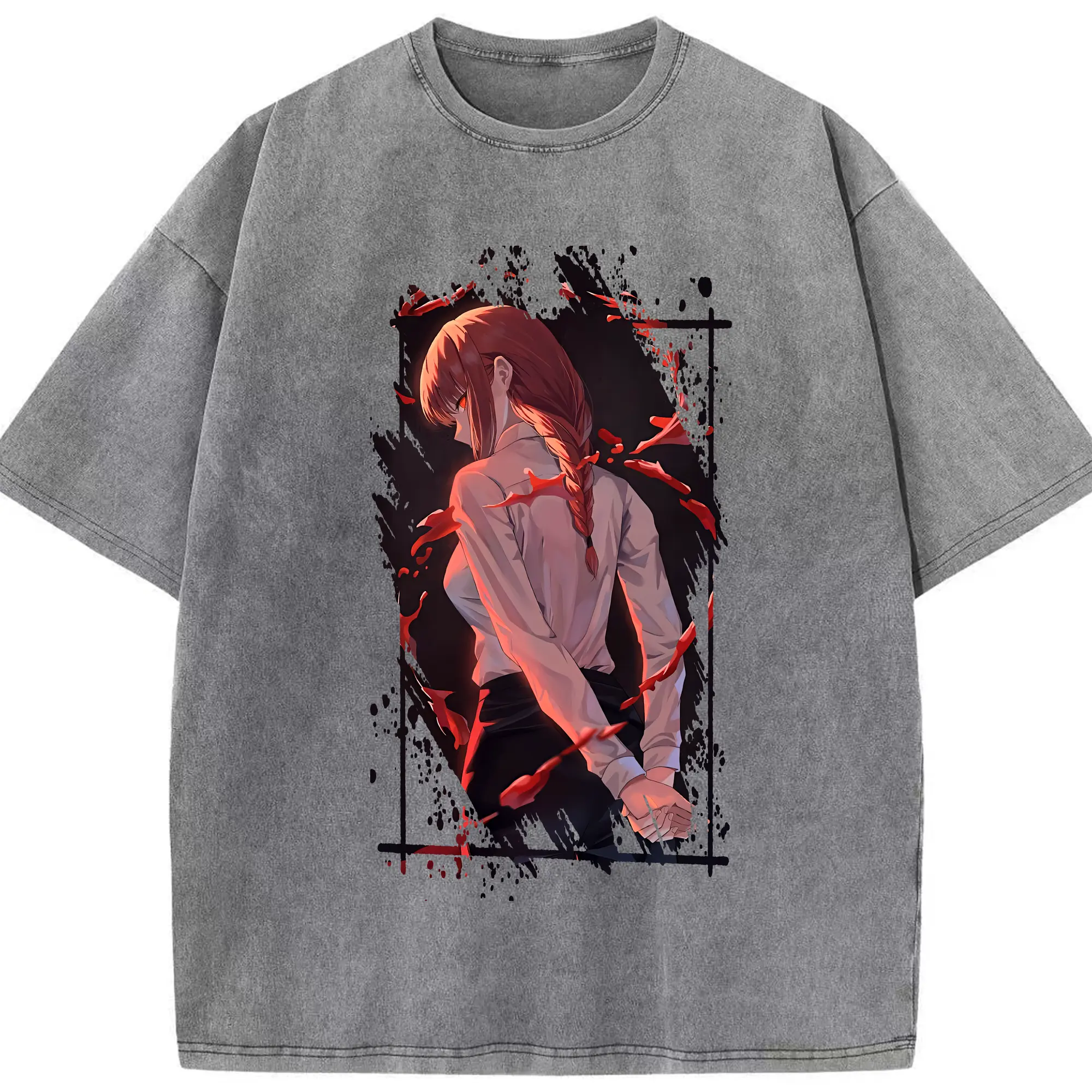 チェンソーマン グッズ,マキマ - 綿100% ヴィンテージ風 半袖Tシャツ ・ 背面プリント ・ 柔らか肌触り ・ 通気性 快適 ・ スポーツ カジュアル 外出用