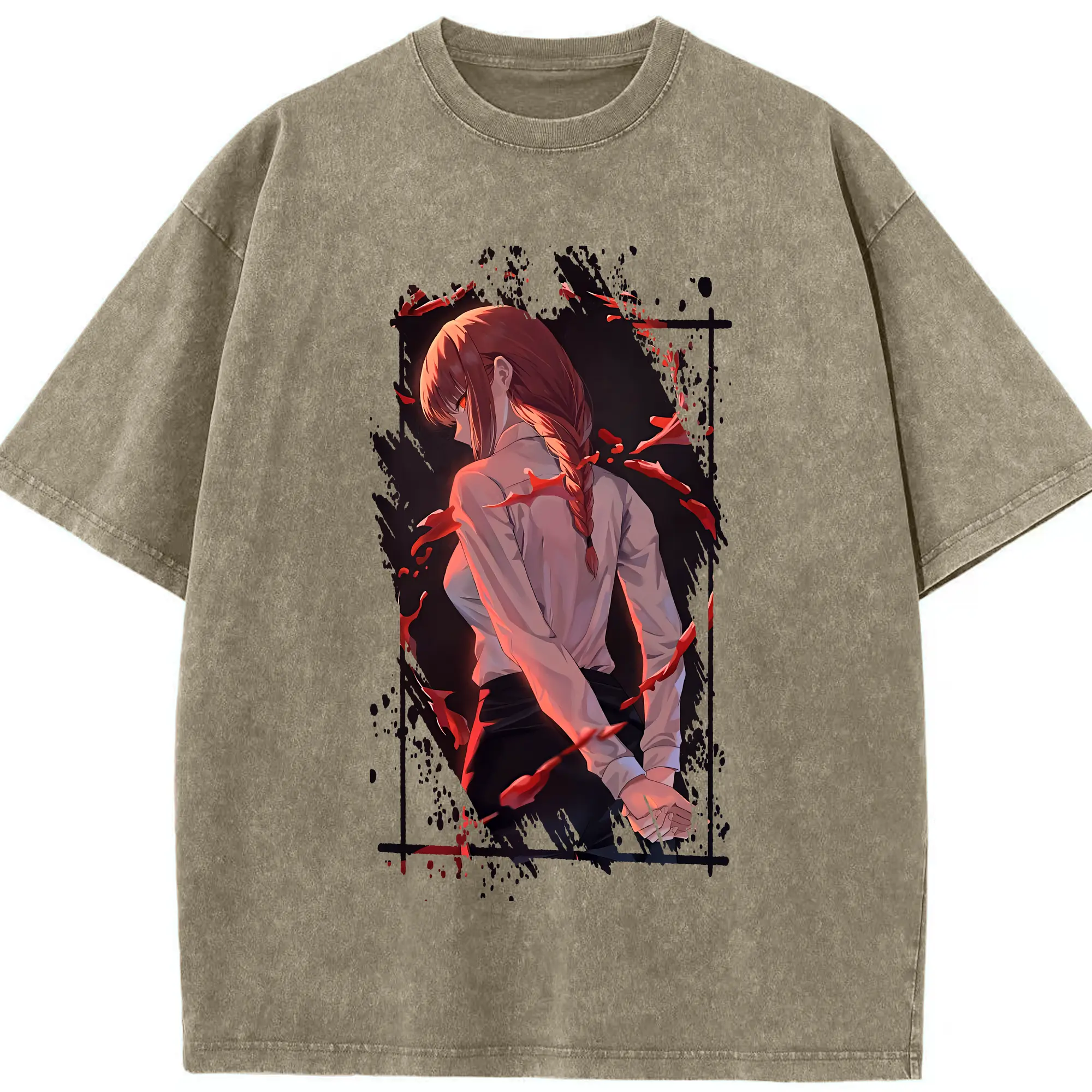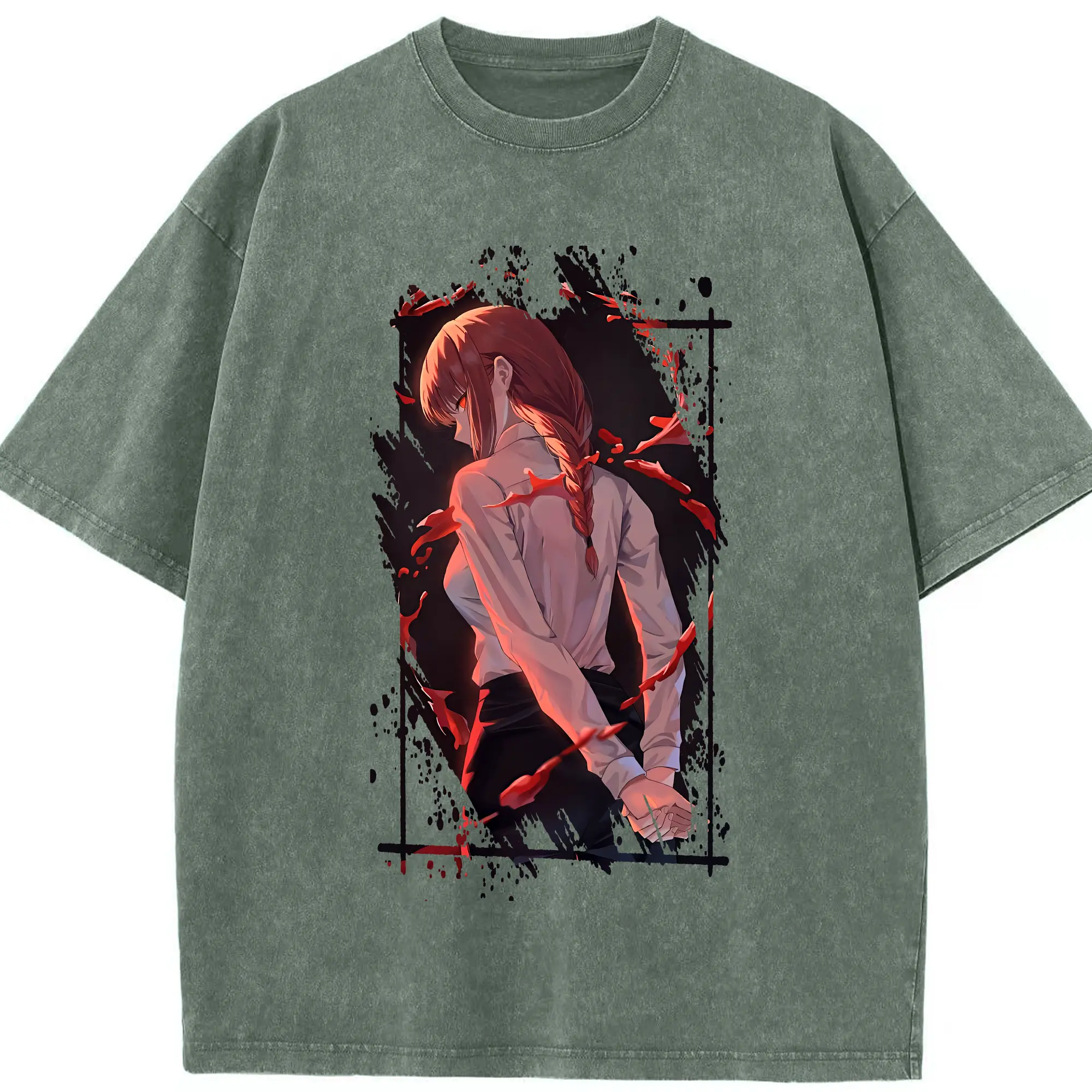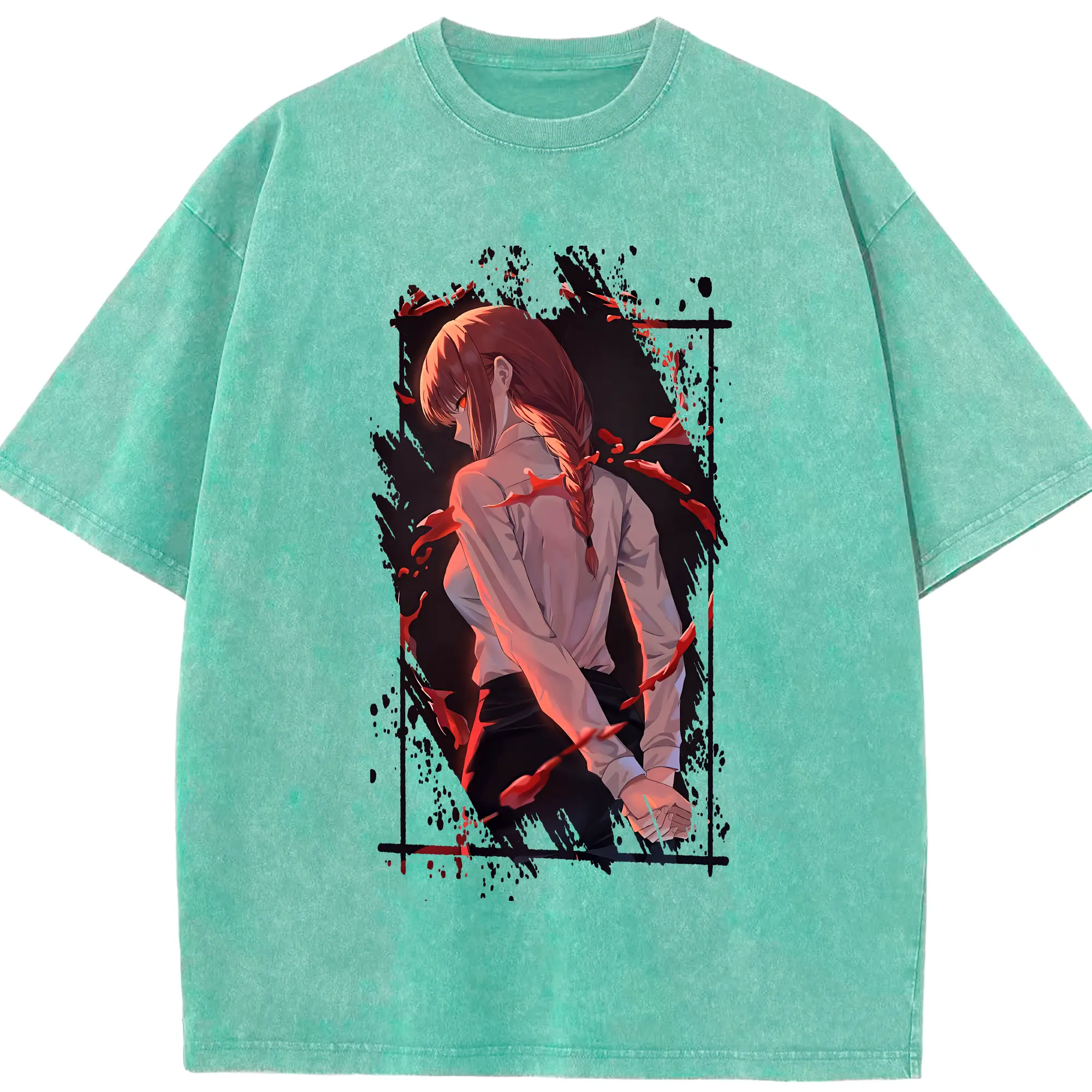 チェンソーマン グッズ,マキマ - 綿100% ヴィンテージ風 半袖Tシャツ ・ 背面プリント ・ 柔らか肌触り ・ 通気性 快適 ・ スポーツ カジュアル 外出用