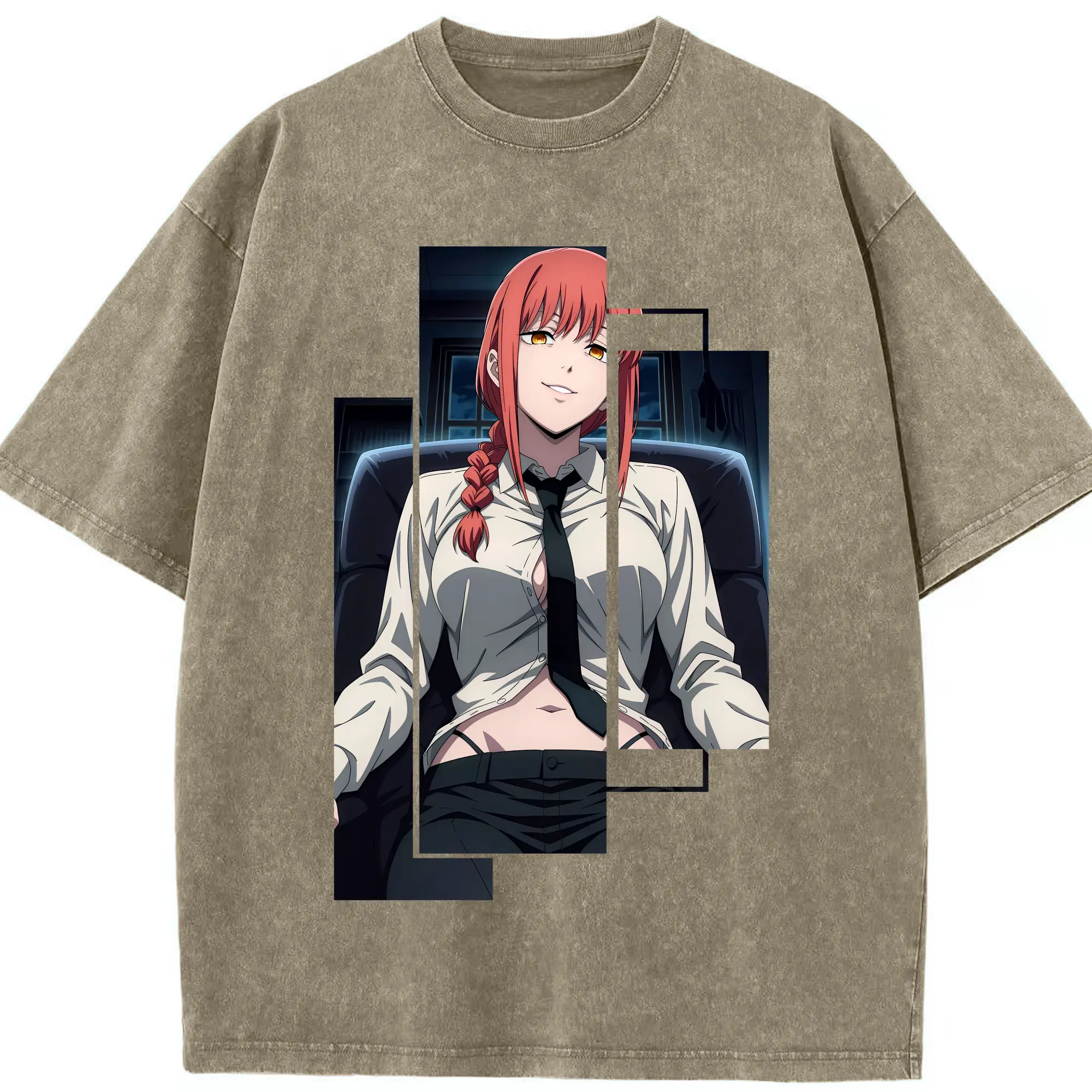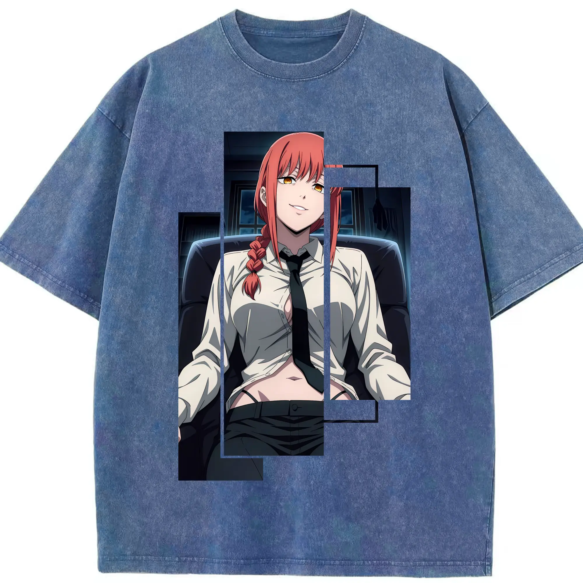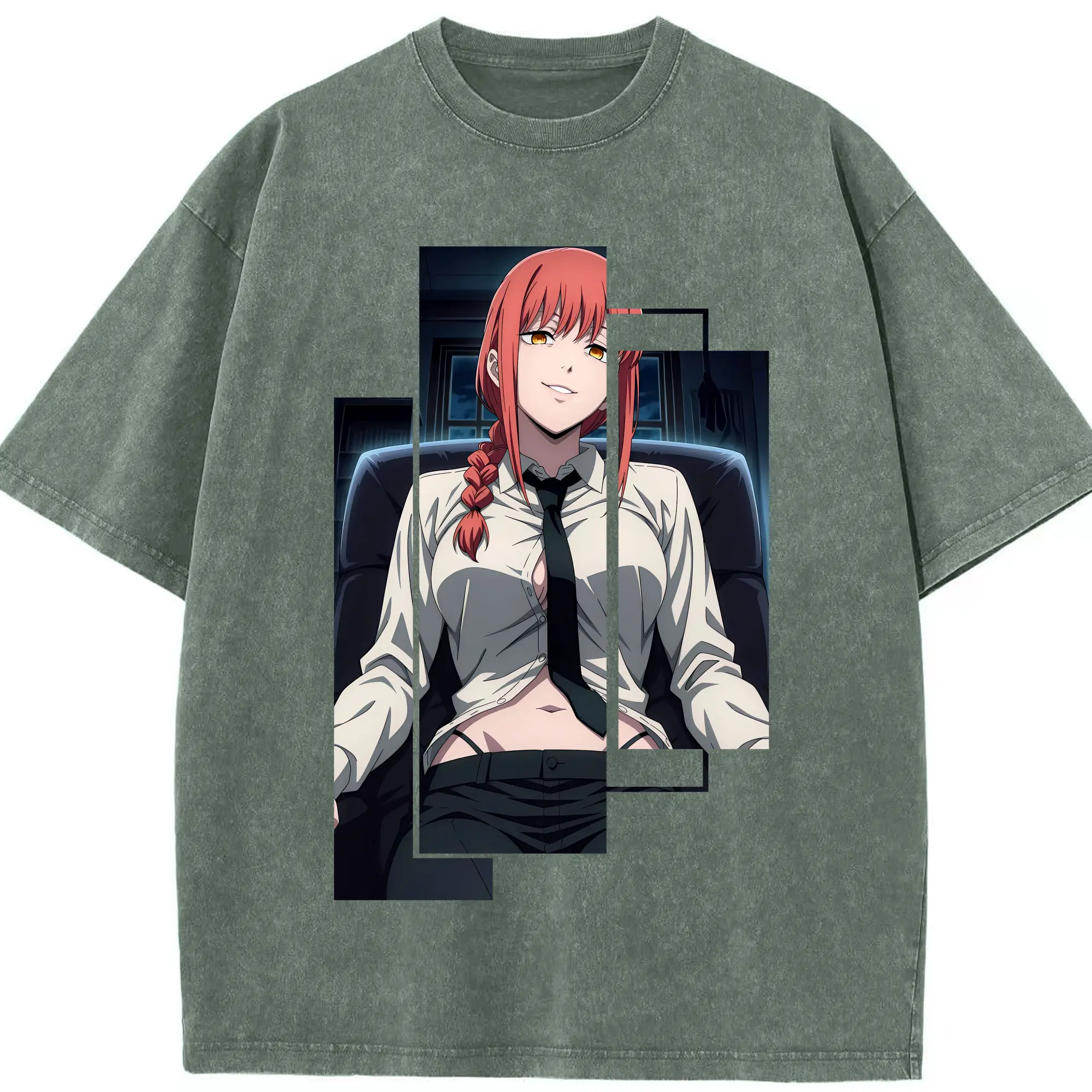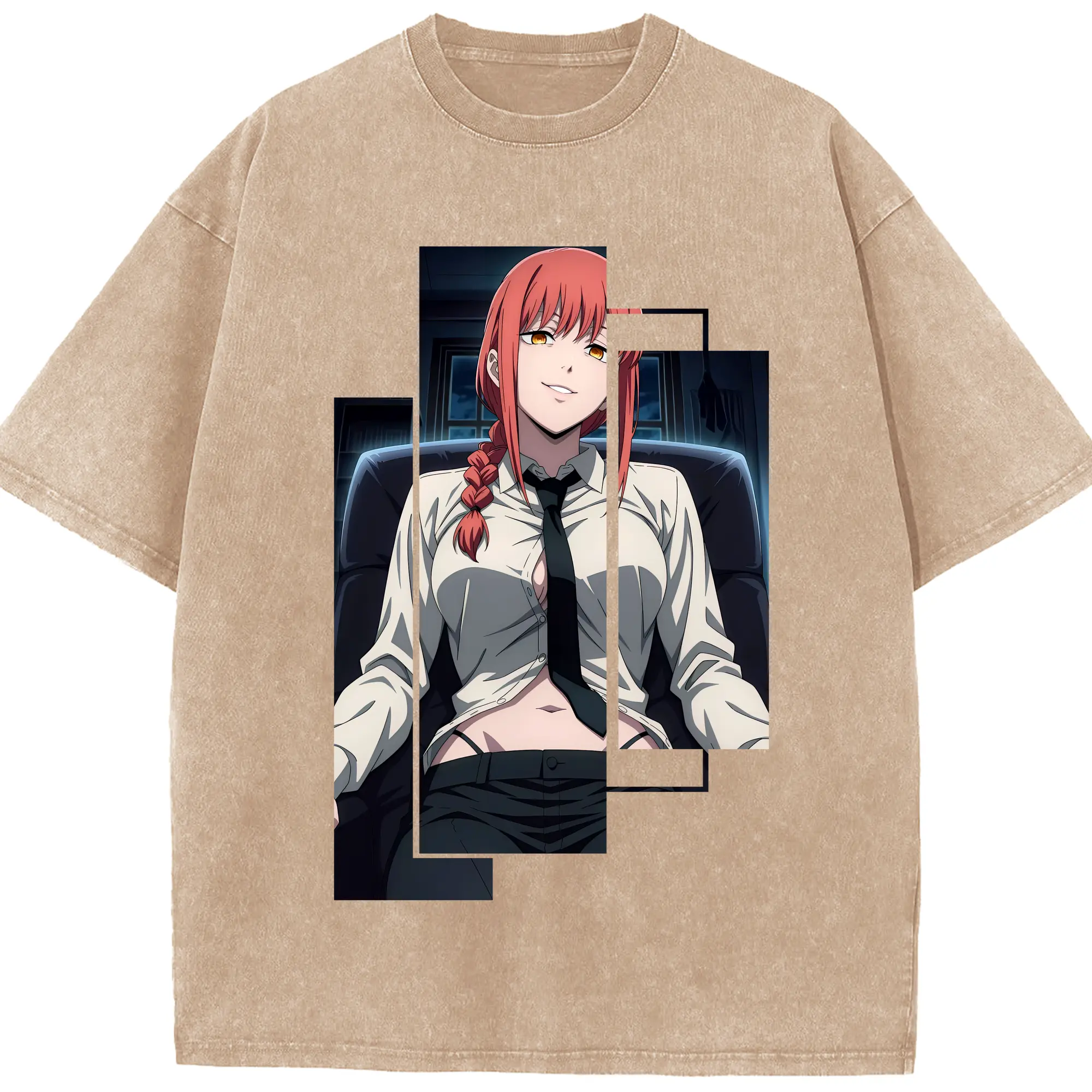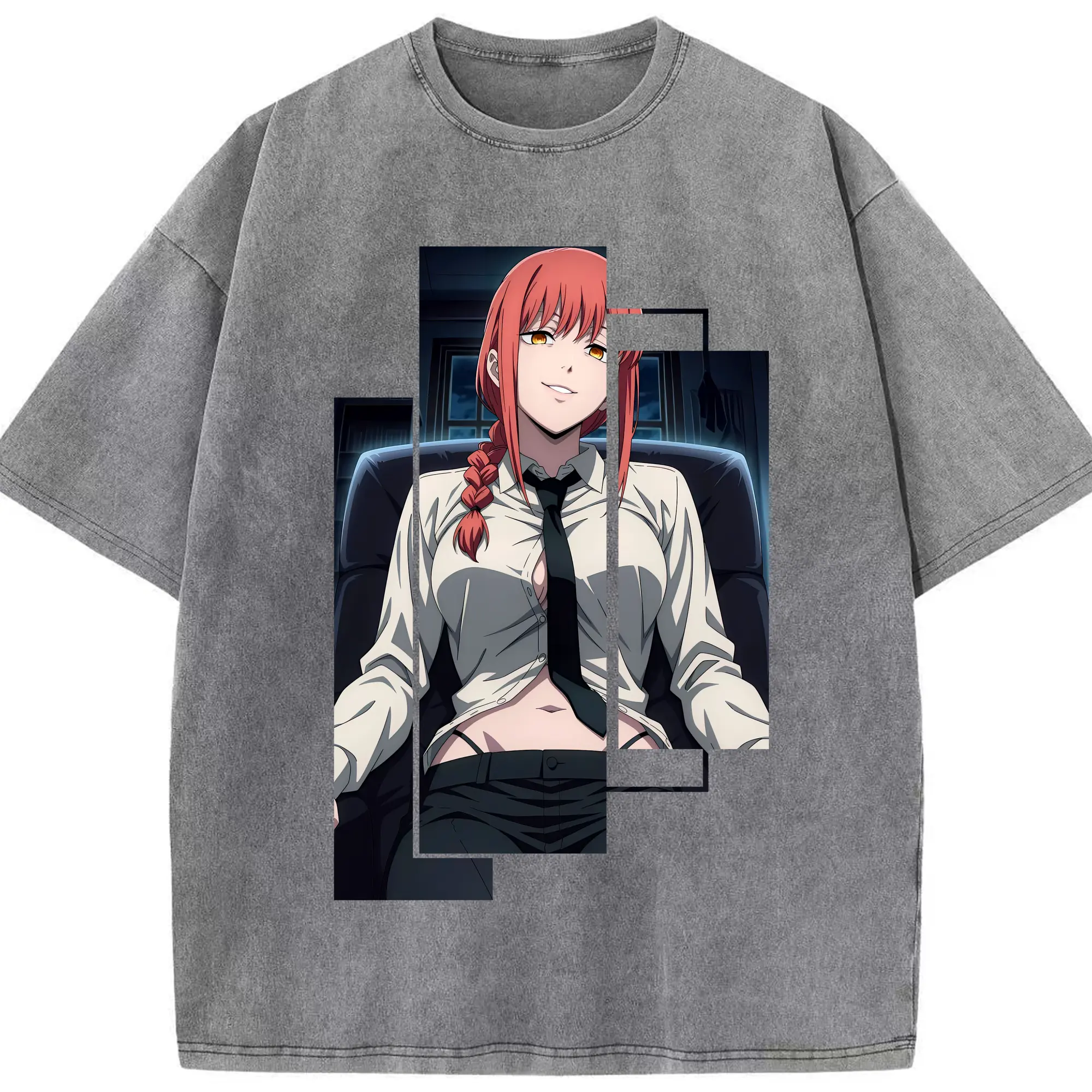 チェンソーマン グッズ,マキマ - 綿100% ヴィンテージ風 半袖Tシャツ ・ 背面プリント ・ 柔らか肌触り ・ 通気性 快適 ・ スポーツ カジュアル 外出用