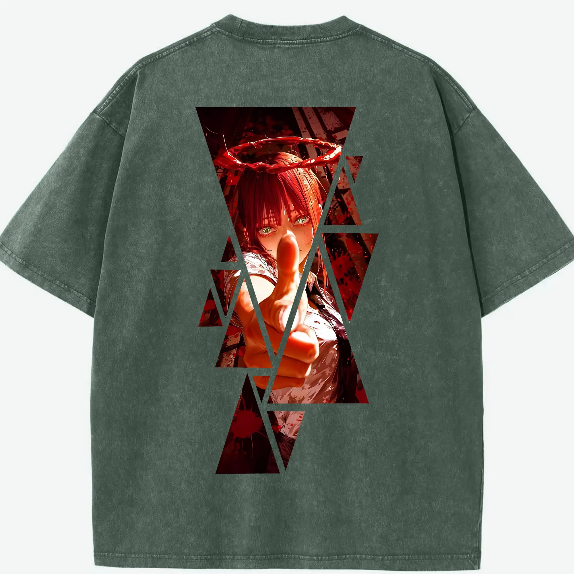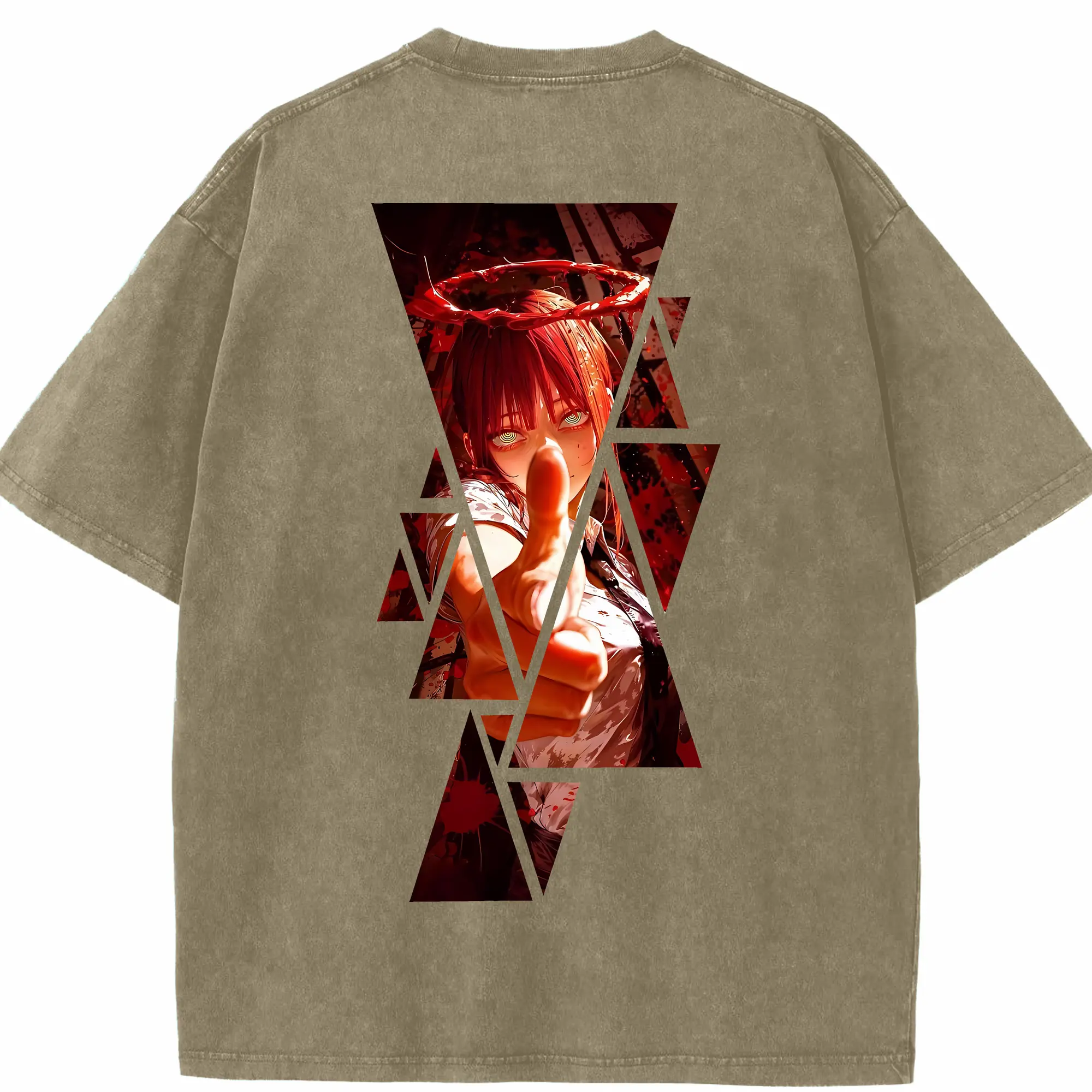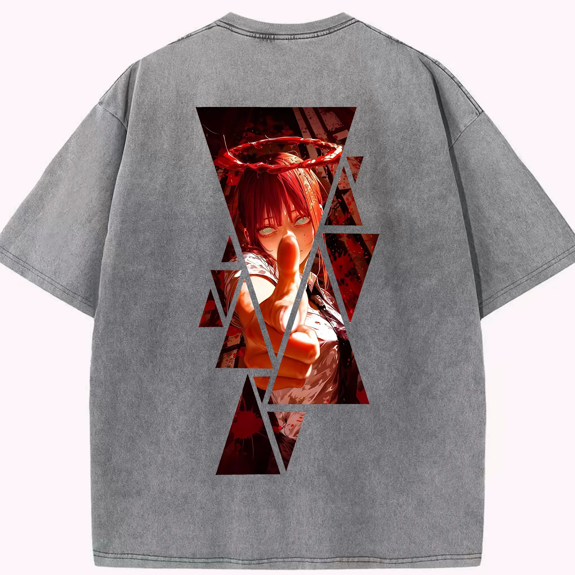 チェンソーマン グッズ,マキマ - 綿100% ヴィンテージ風 半袖Tシャツ ・ フロントプリント ・ 柔らか肌触り ・ 通気性 快適 ・ スポーツ カジュアル 外出用