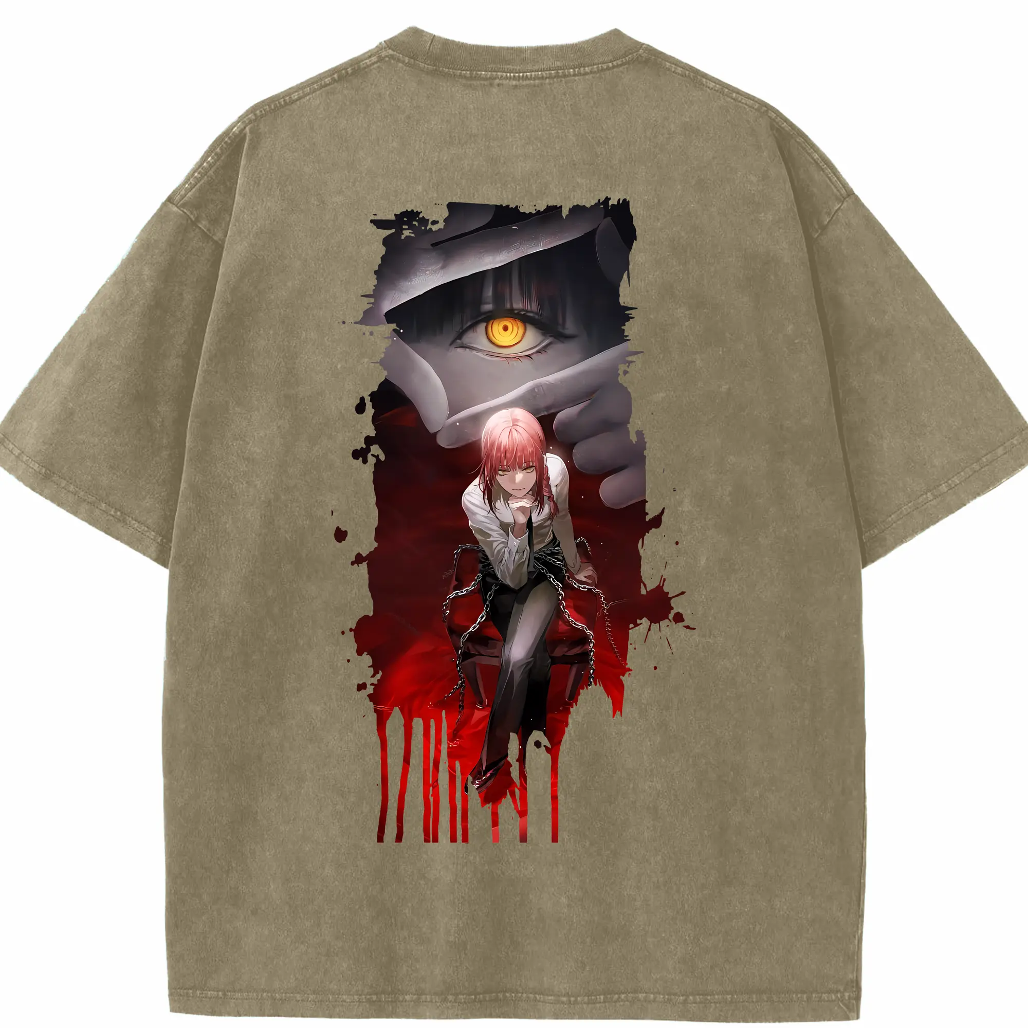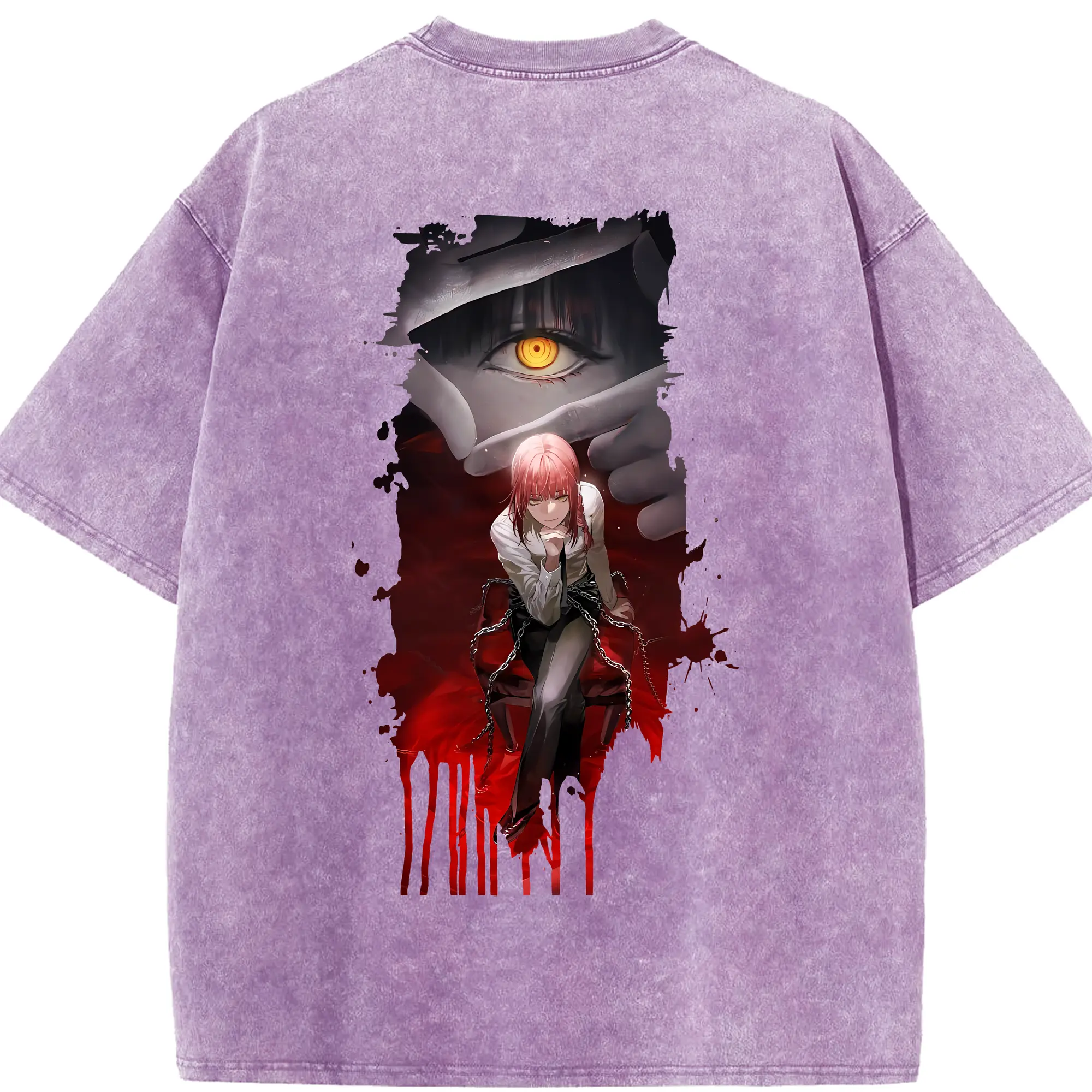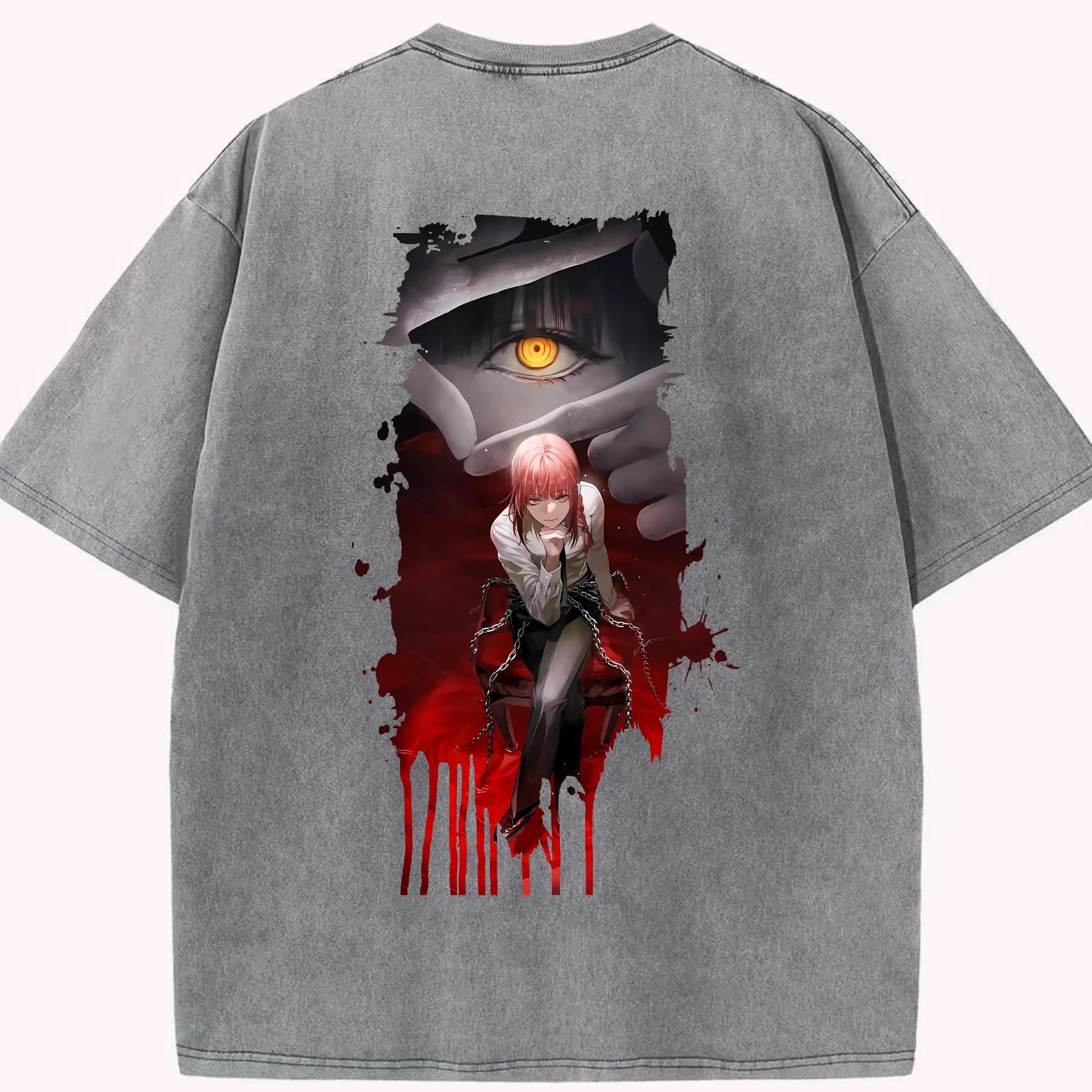 チェンソーマン グッズ,マキマ - 綿100% ヴィンテージ風 半袖Tシャツ ・ フロントプリント ・ 柔らか肌触り ・ 通気性 快適 ・ スポーツ カジュアル 外出用